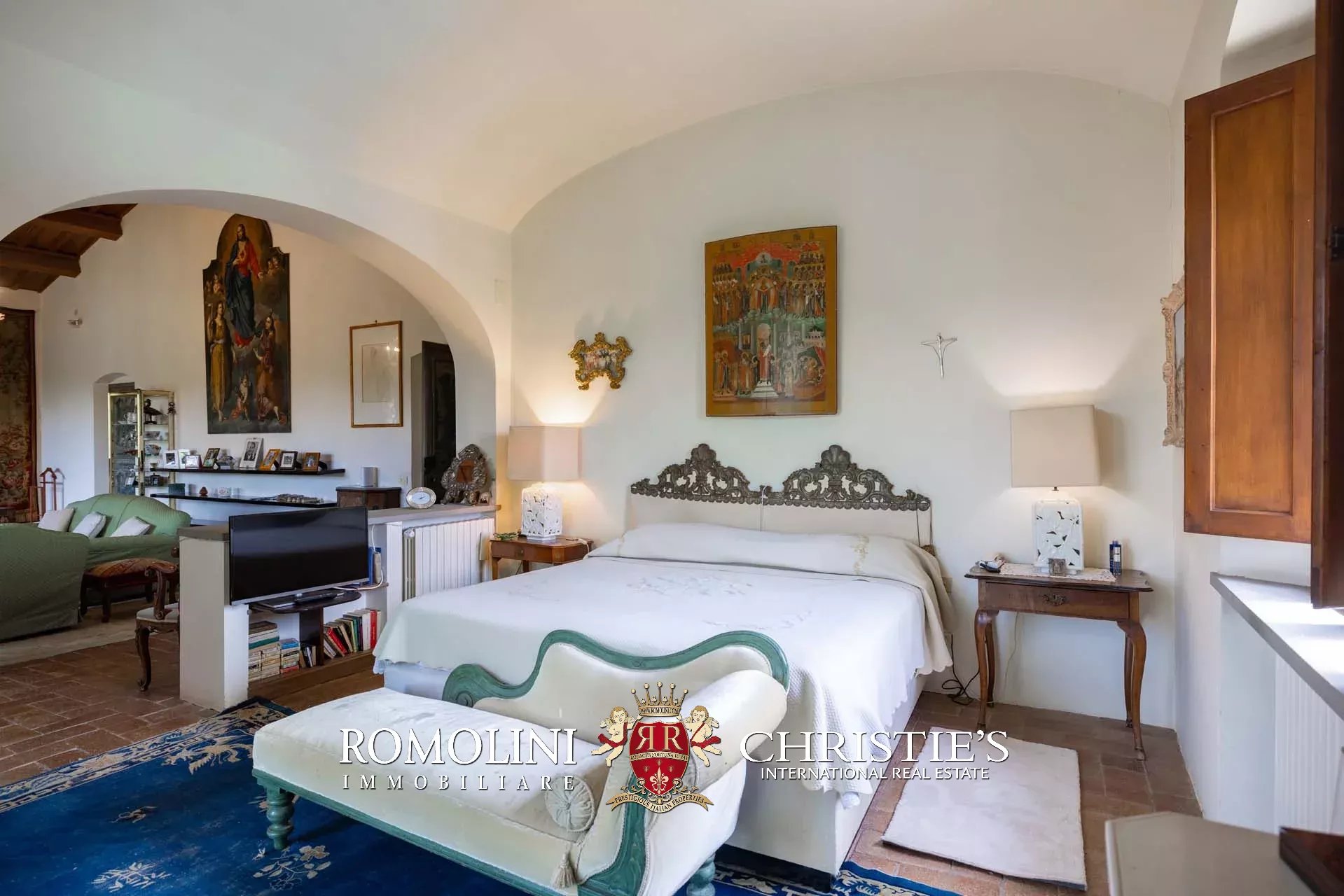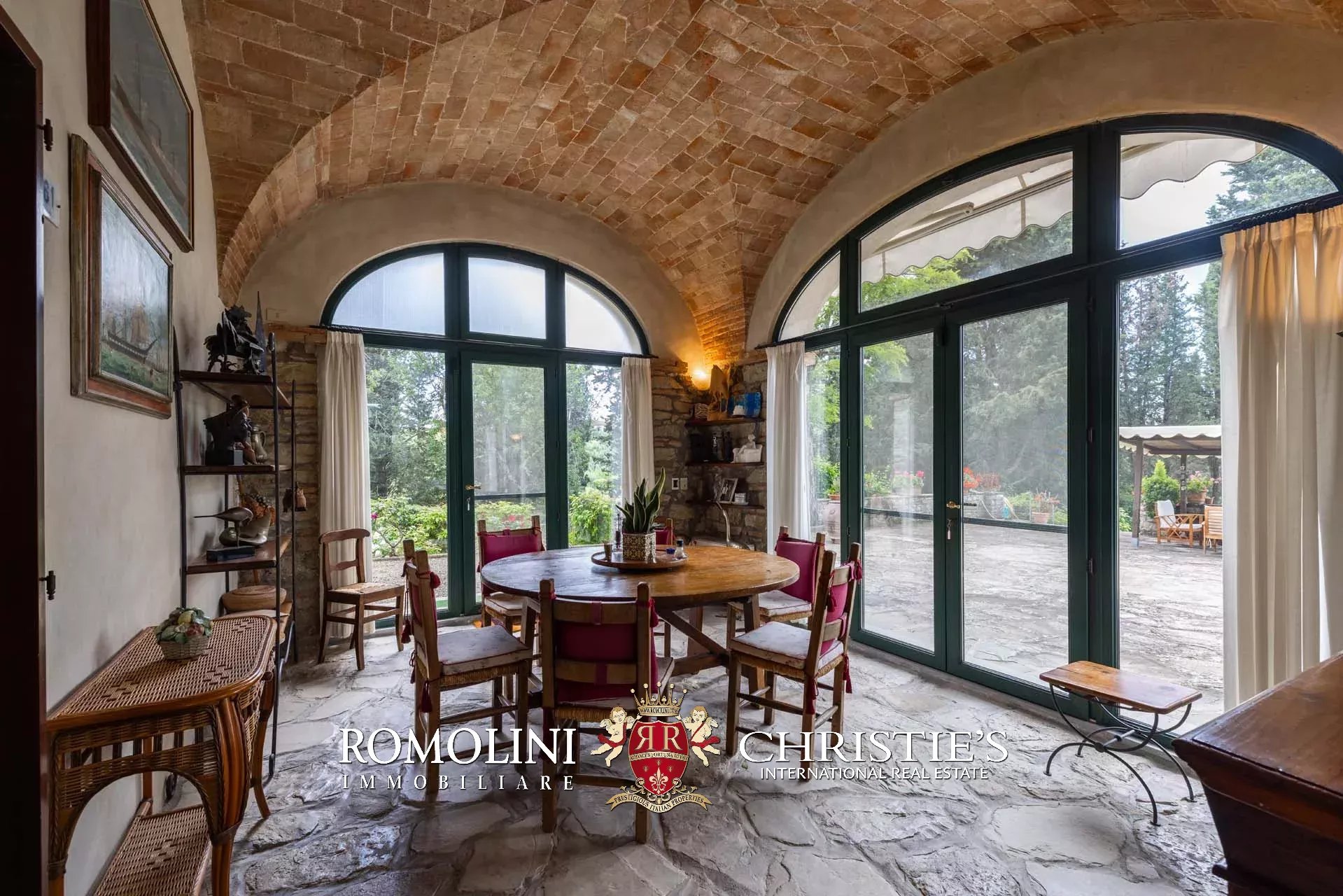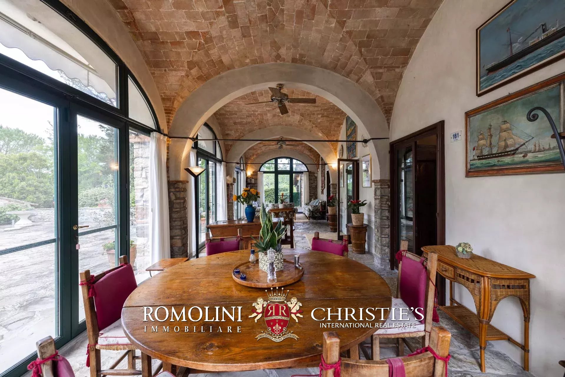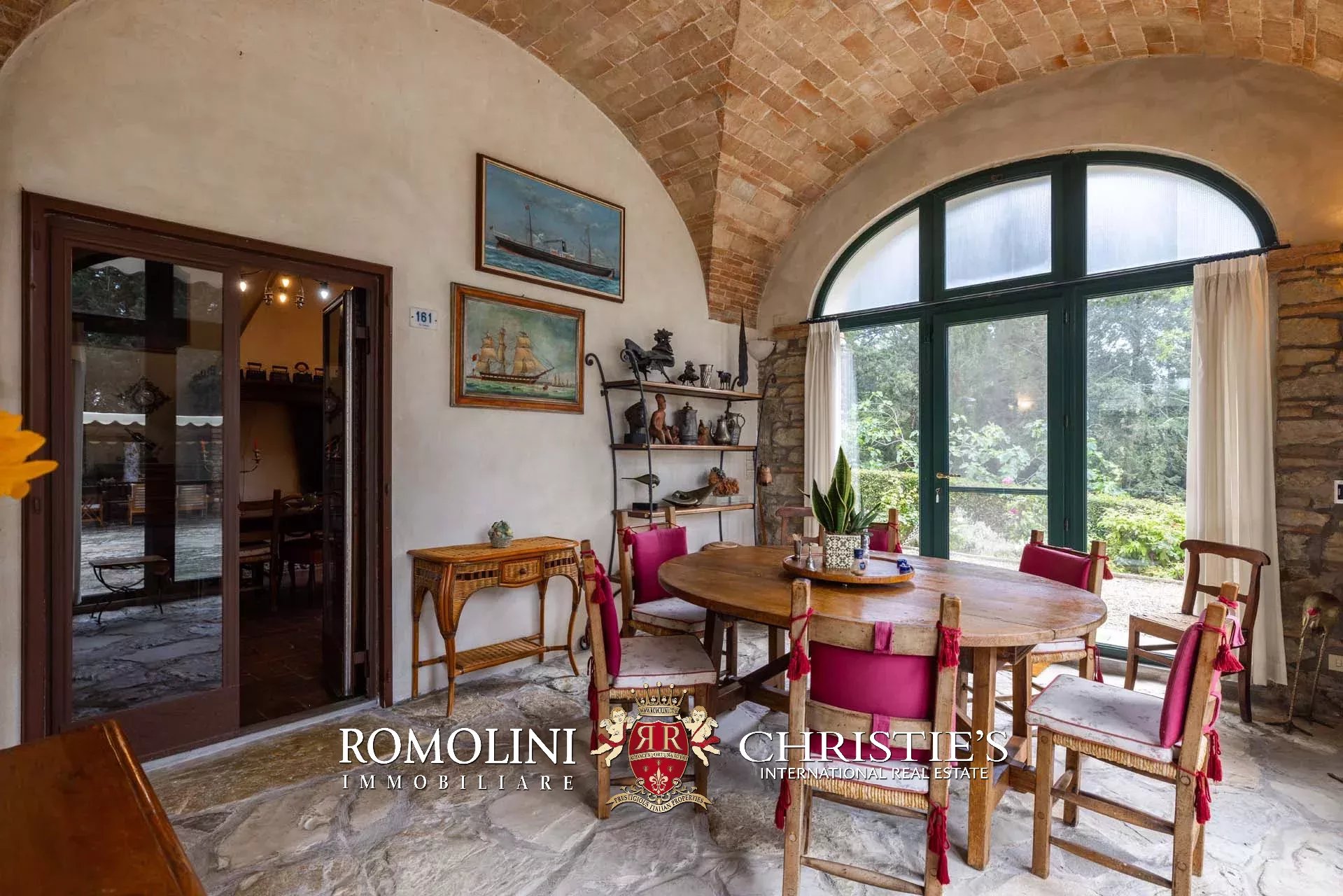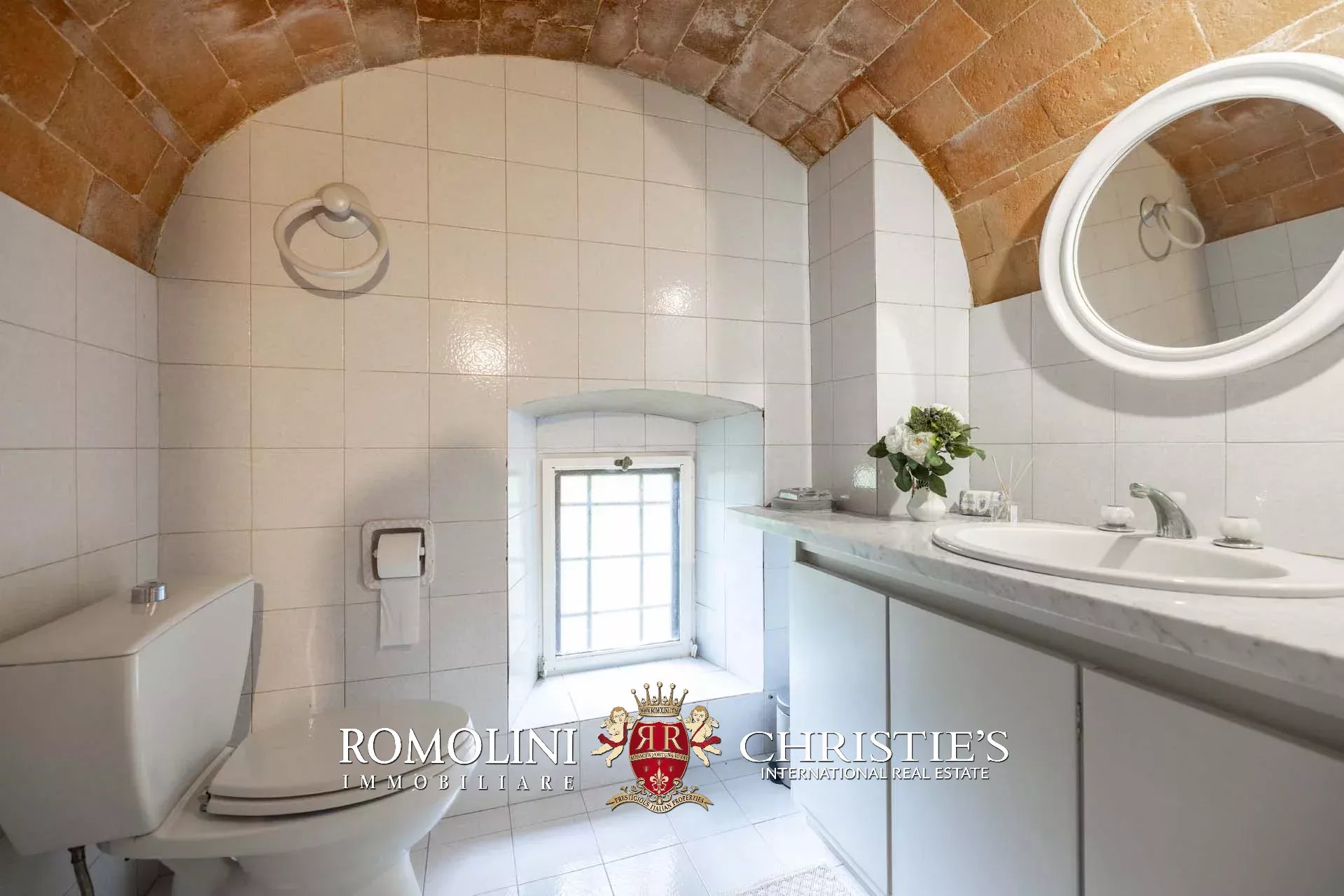 The dwelling has been tastefully renovated by the current owners, who have done everything possible to maintain the building’s most characteristic finishes: on the ground floor, the halls are all covered with cross vaults (exposed brick in both the loggia and dining room, plastered in the other rooms), while the loggia still has its stone floor, testifying to the fact that this was once an open space. Even the dining room still has the rustic charm of yesteryear with its large fireplace and original terracotta floors (characterized by an irregular, worn surface).