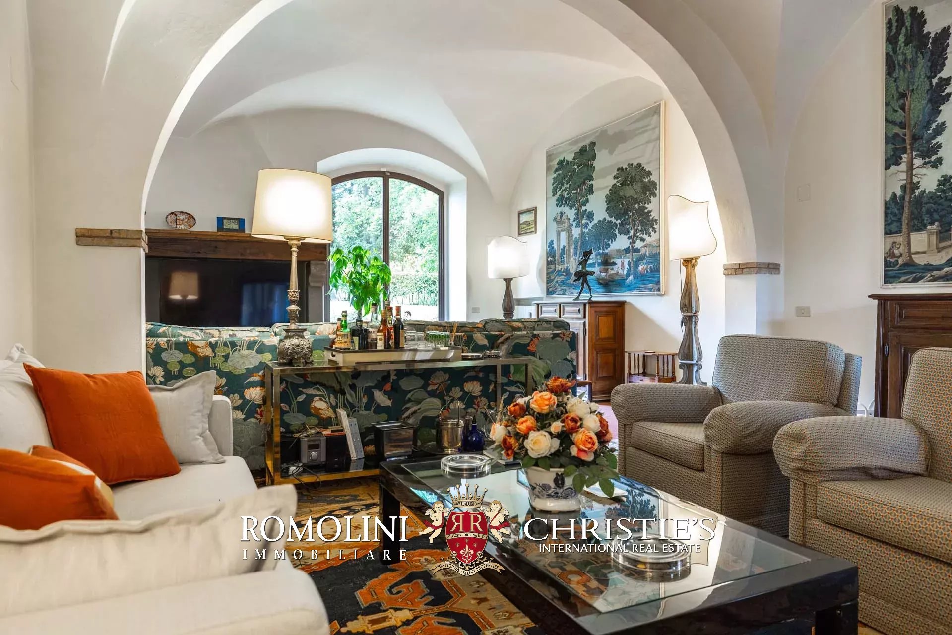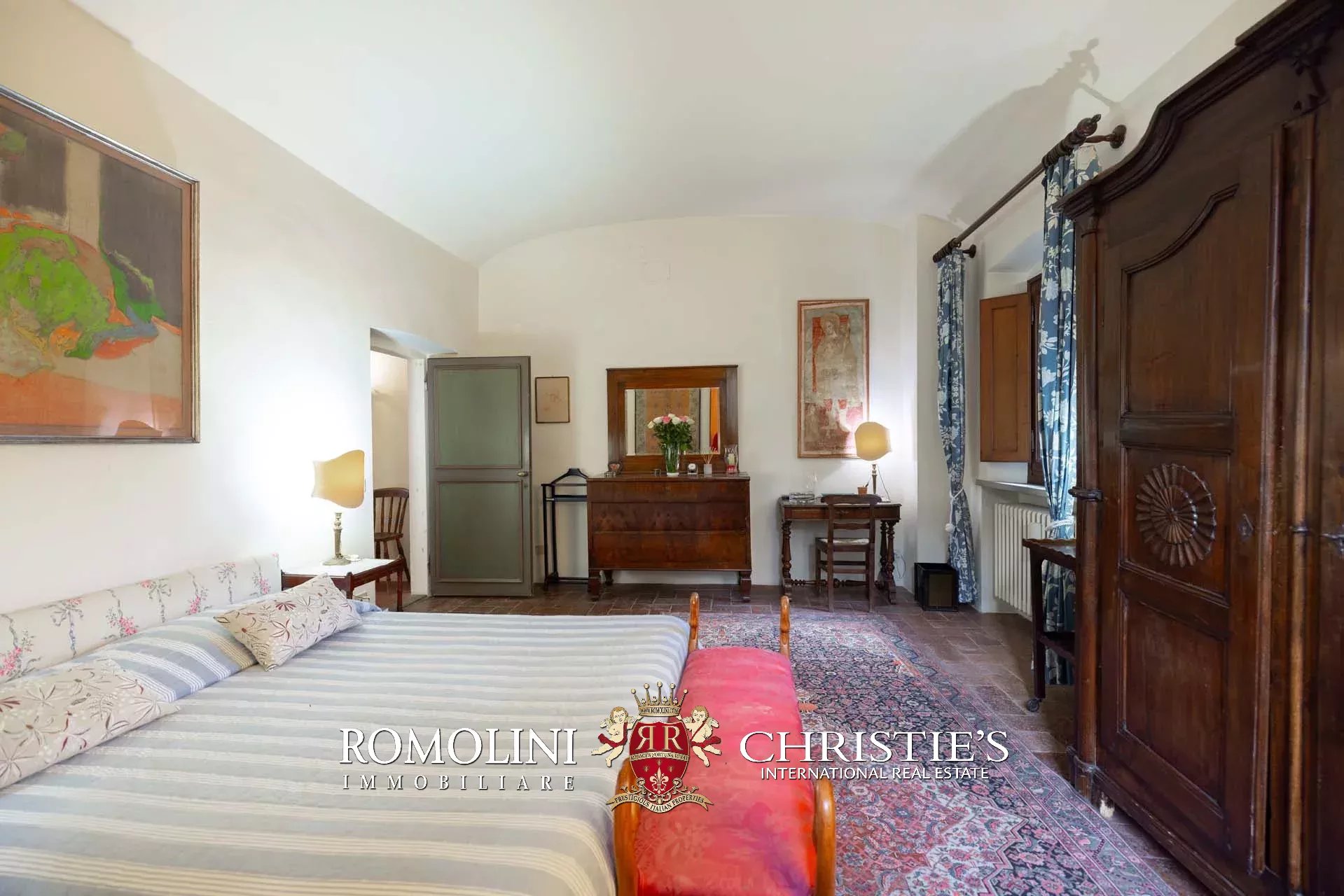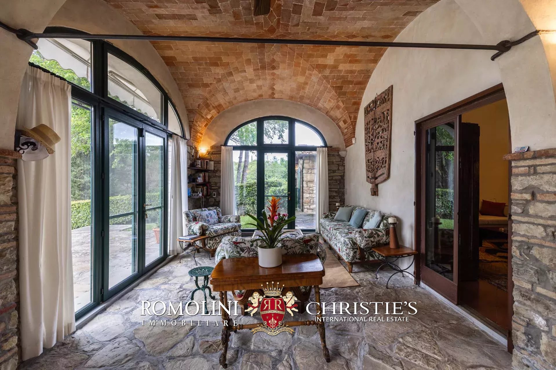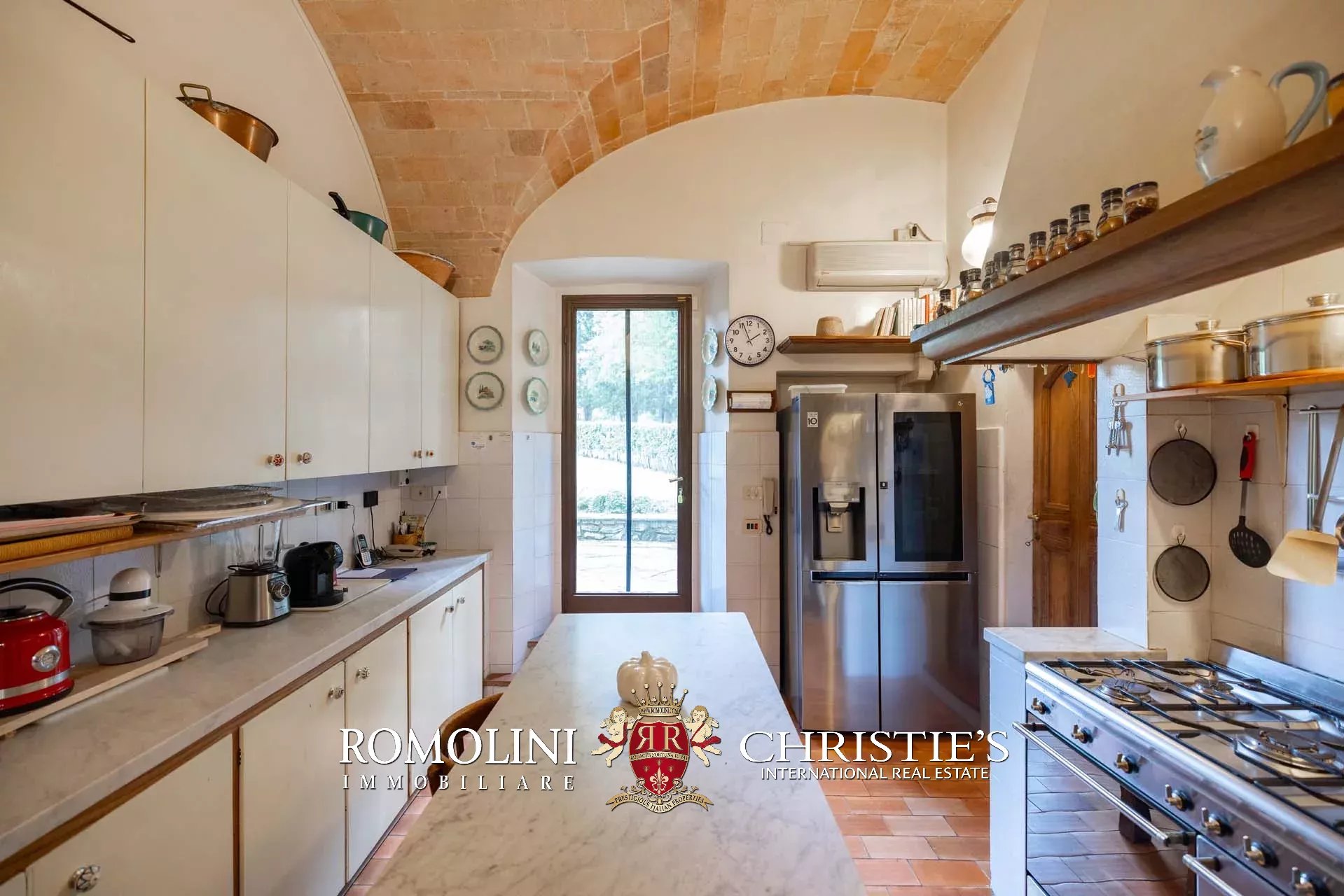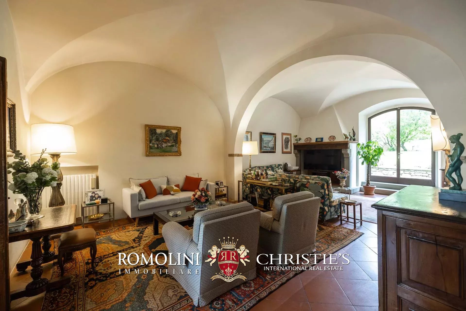 The dwelling has been tastefully renovated by the current owners, who have done everything possible to maintain the building’s most characteristic finishes: on the ground floor, the halls are all covered with cross vaults (exposed brick in both the loggia and dining room, plastered in the other rooms), while the loggia still has its stone floor, testifying to the fact that this was once an open space. Even the dining room still has the rustic charm of yesteryear with its large fireplace and original terracotta floors (characterized by an irregular, worn surface).