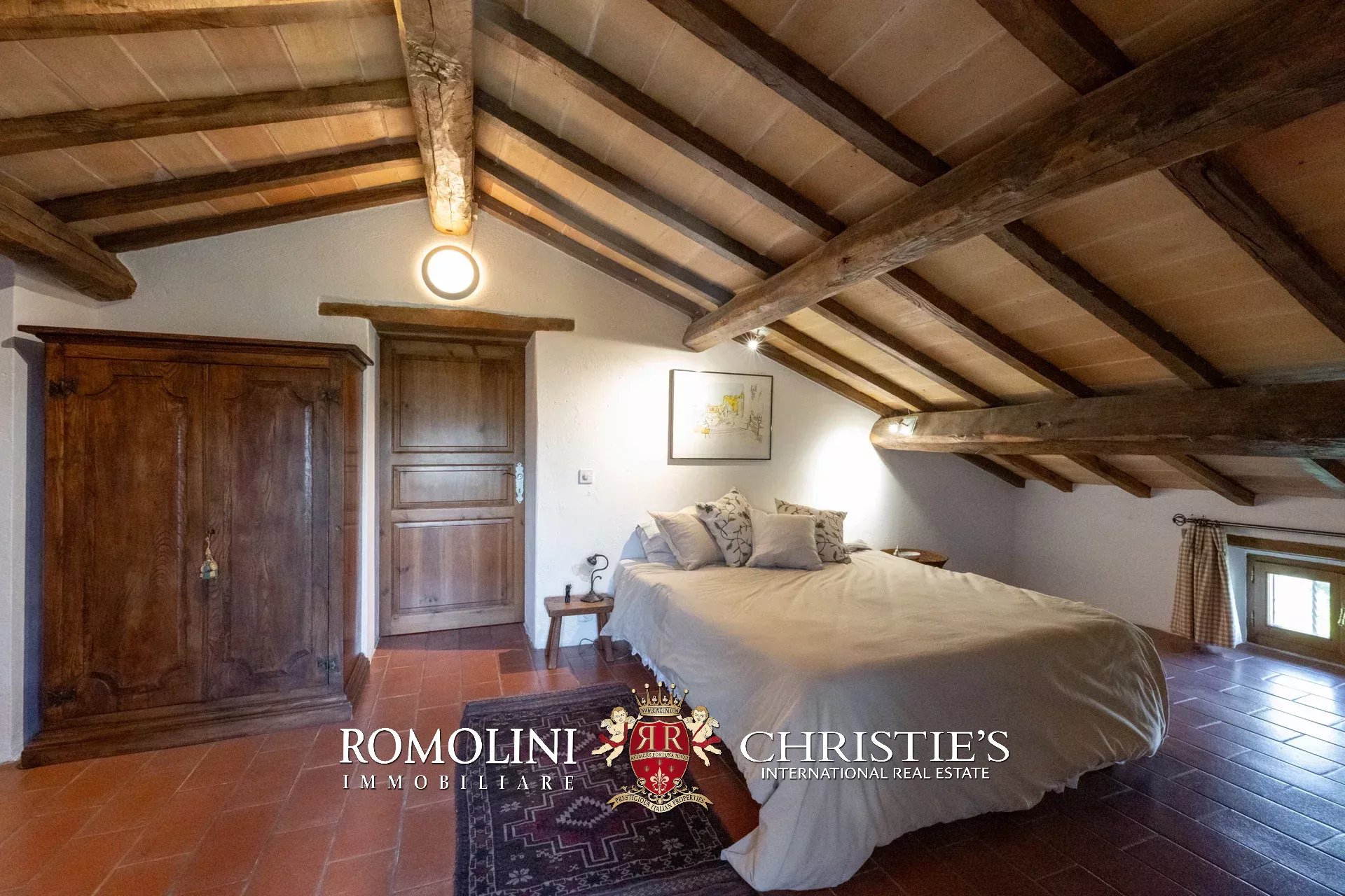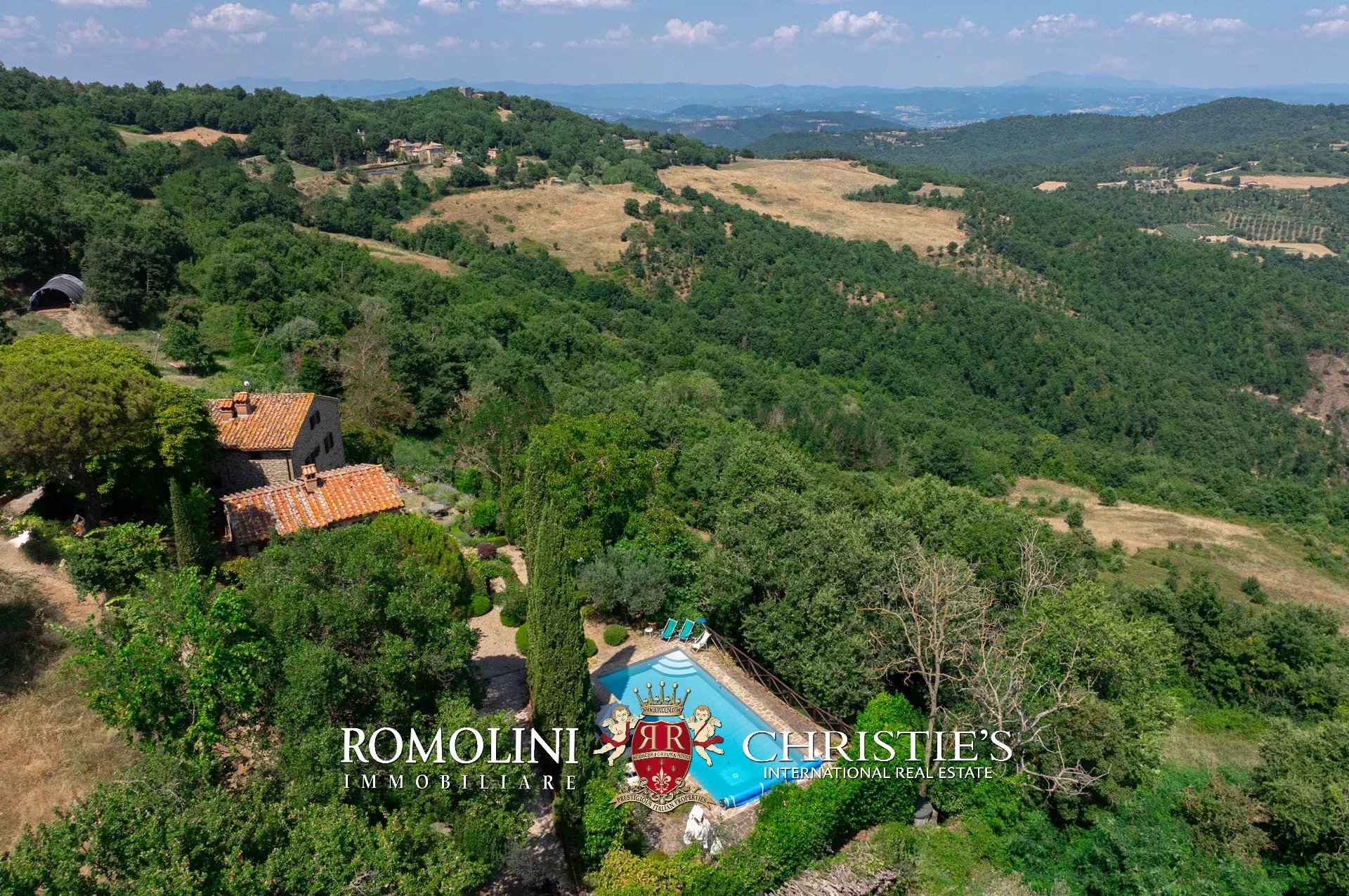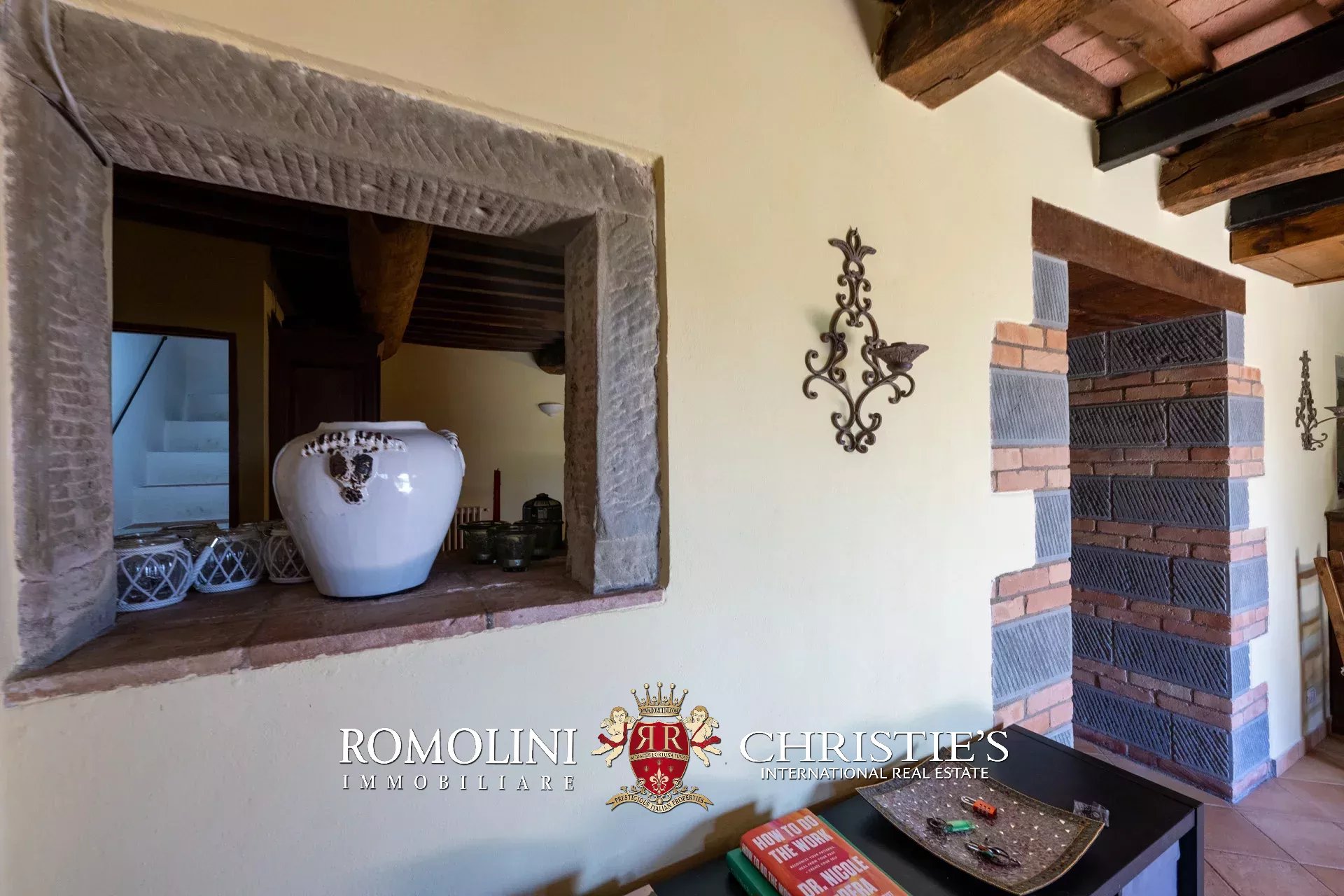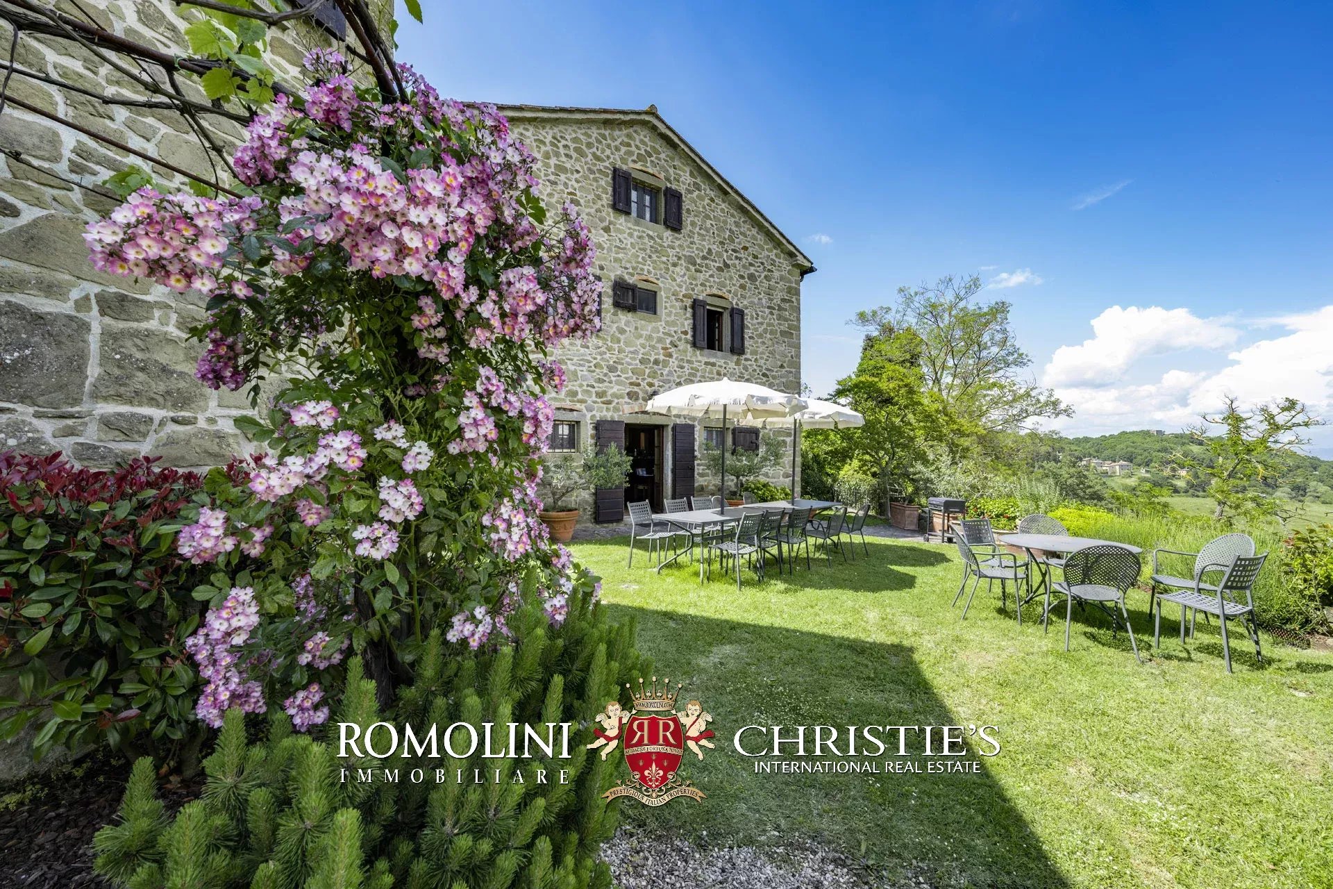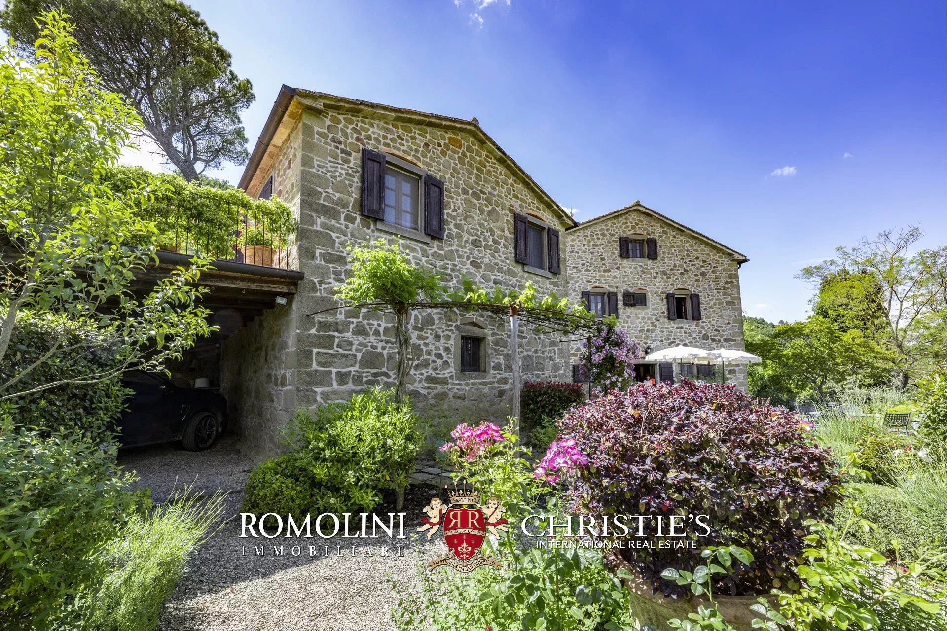 Just one kilometer from the border between Tuscany and Umbria, above the picturesque Niccone Valley, finely restored farmhouse with swimming pool for sale. The property, with a luxury standard, consists of two buildings: a traditional Umbrian farmhouse and a converted tobacco barn. Surrounded by terraces and steps, the house offers a unique setting with vineyards, olive groves and fruit trees, with dedicated corners for relaxation and contemplation. Despite being set in a small rural context, the property enjoys absolute privacy.