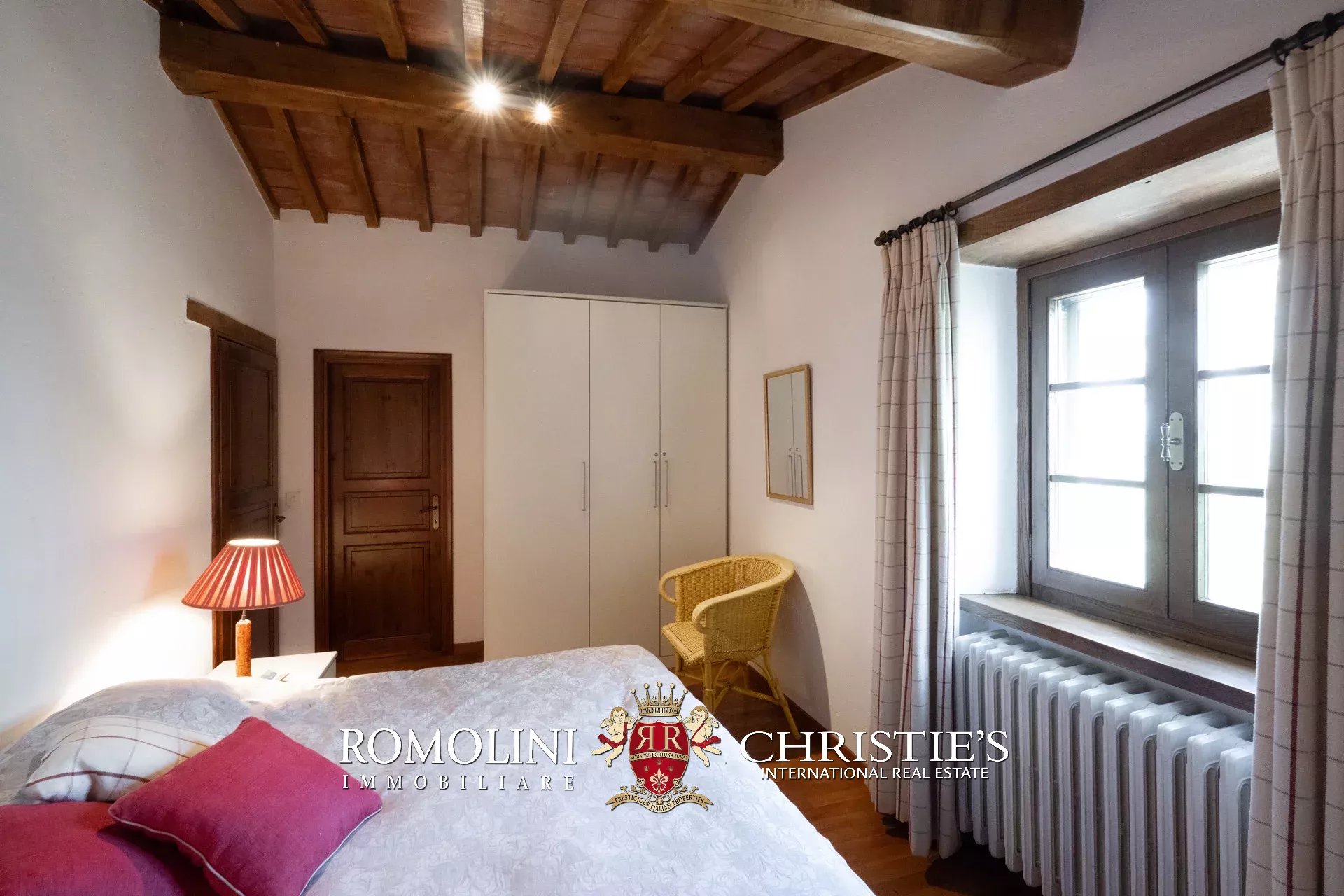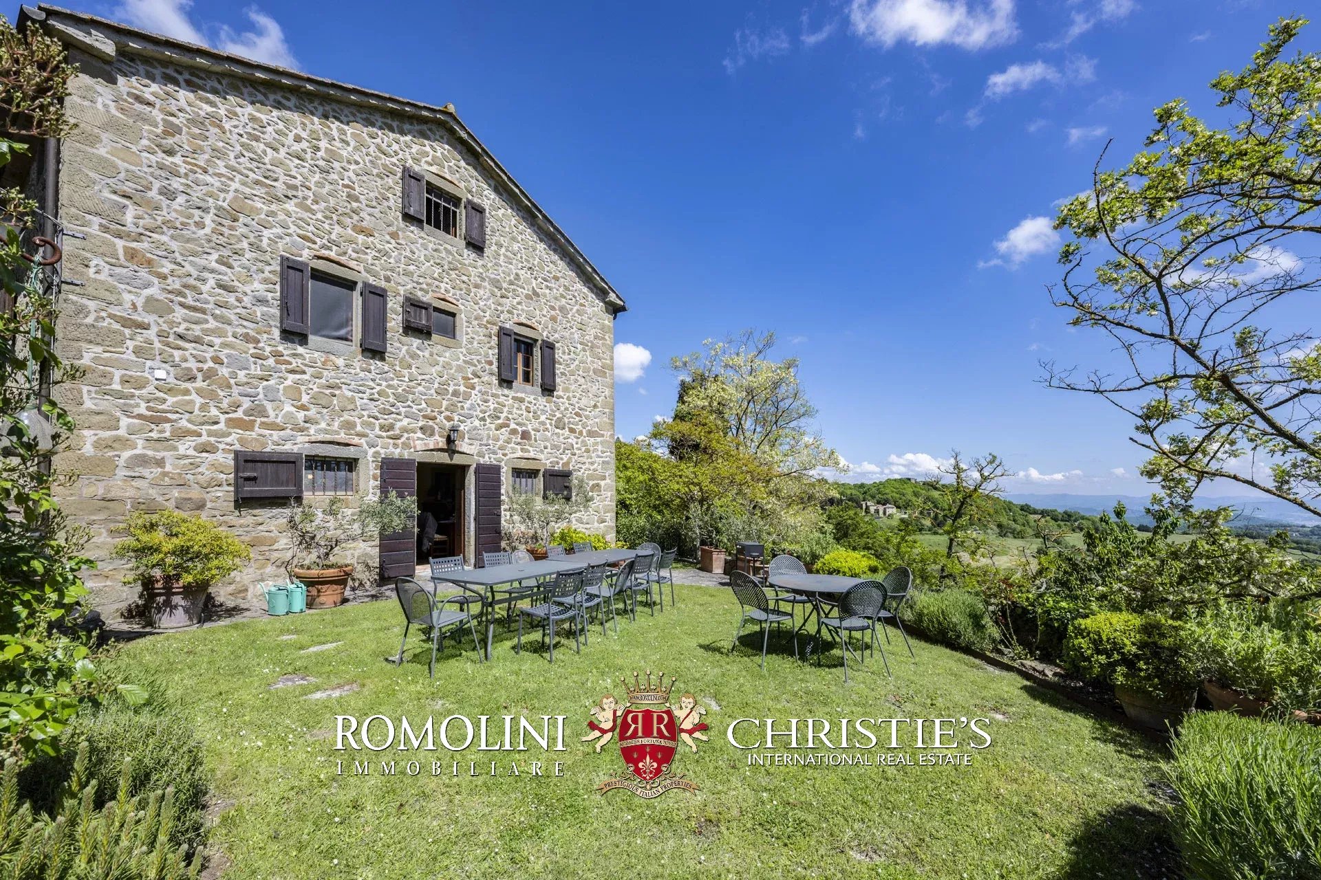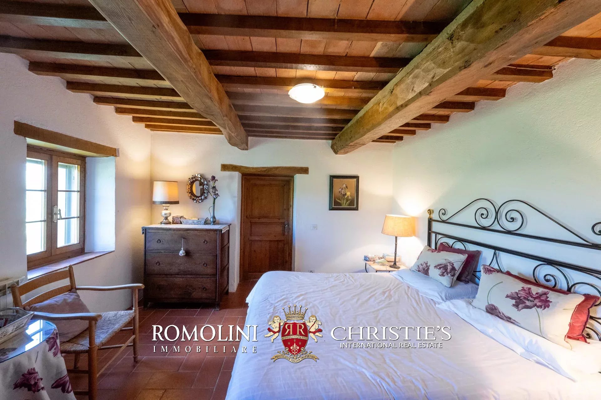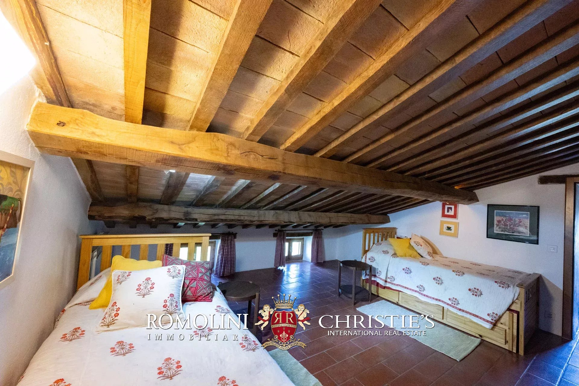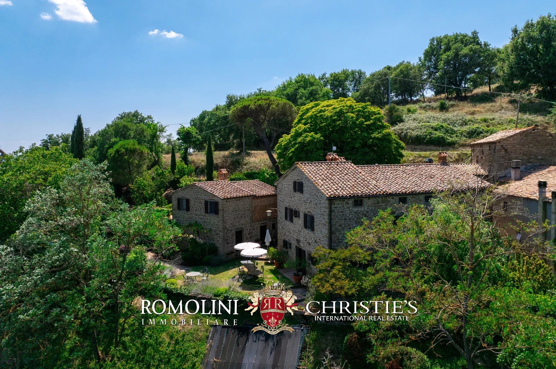 Just one kilometer from the border between Tuscany and Umbria, above the picturesque Niccone Valley, finely restored farmhouse with swimming pool for sale. The property, with a luxury standard, consists of two buildings: a traditional Umbrian farmhouse and a converted tobacco barn. Surrounded by terraces and steps, the house offers a unique setting with vineyards, olive groves and fruit trees, with dedicated corners for relaxation and contemplation. Despite being set in a small rural context, the property enjoys absolute privacy.