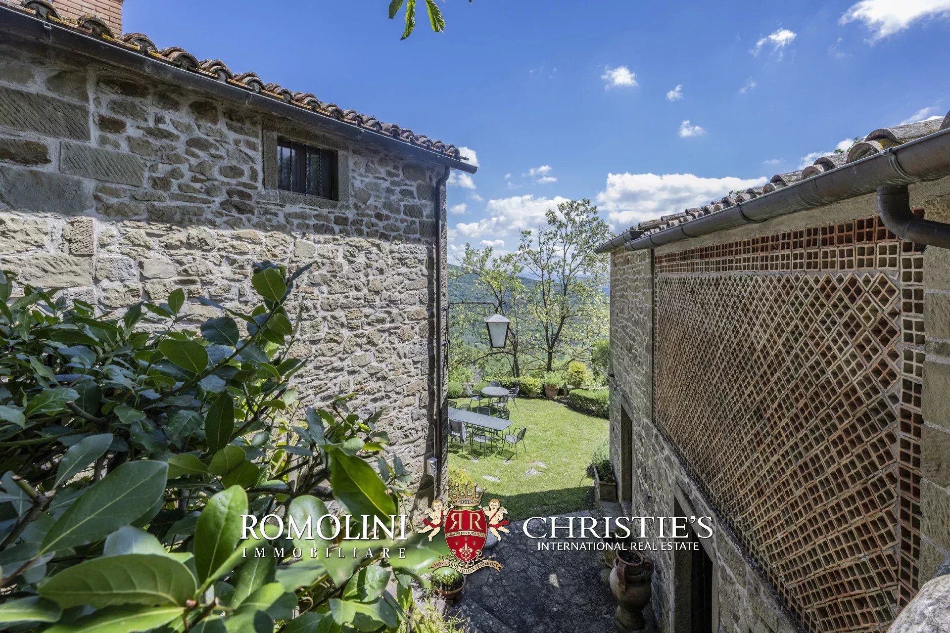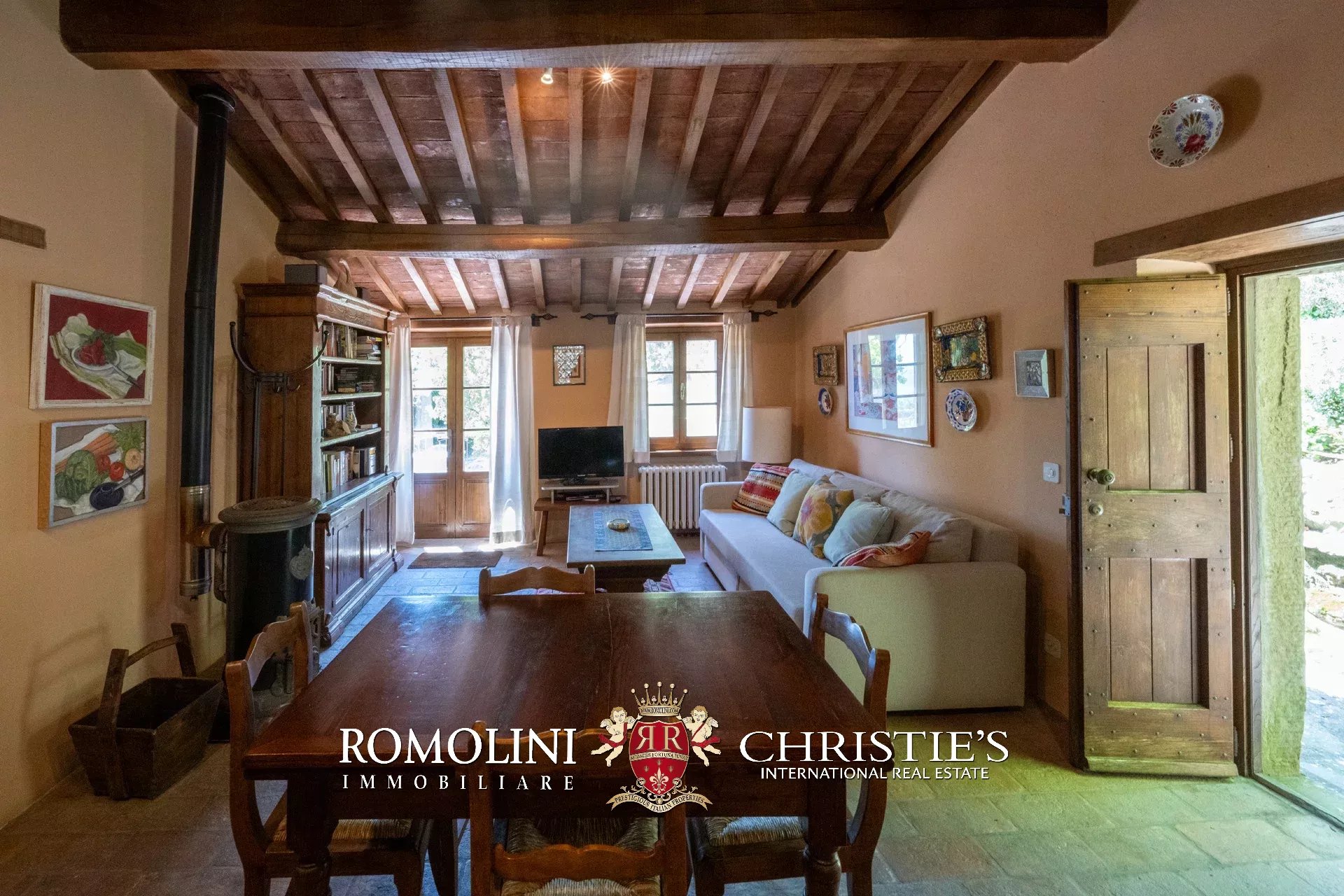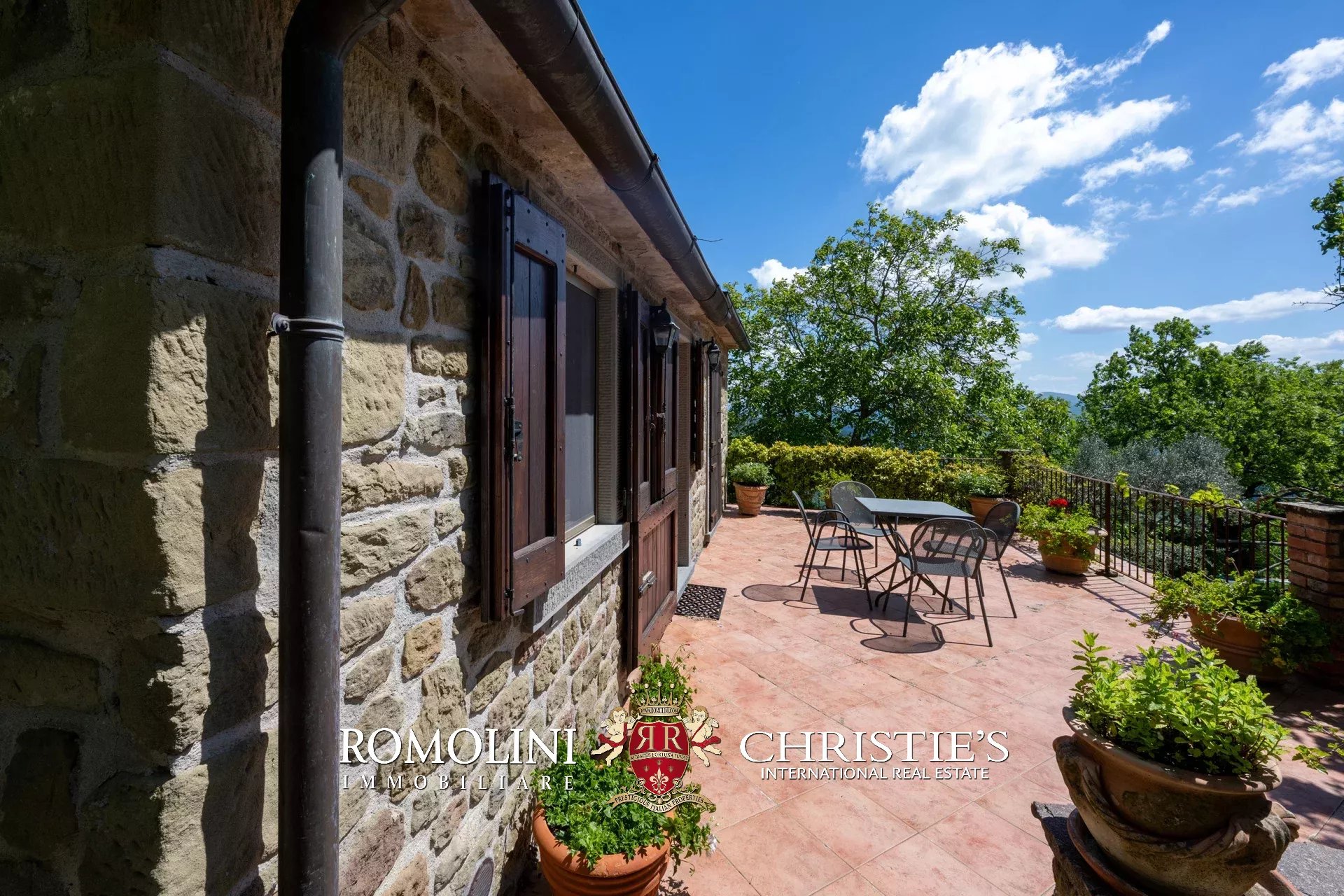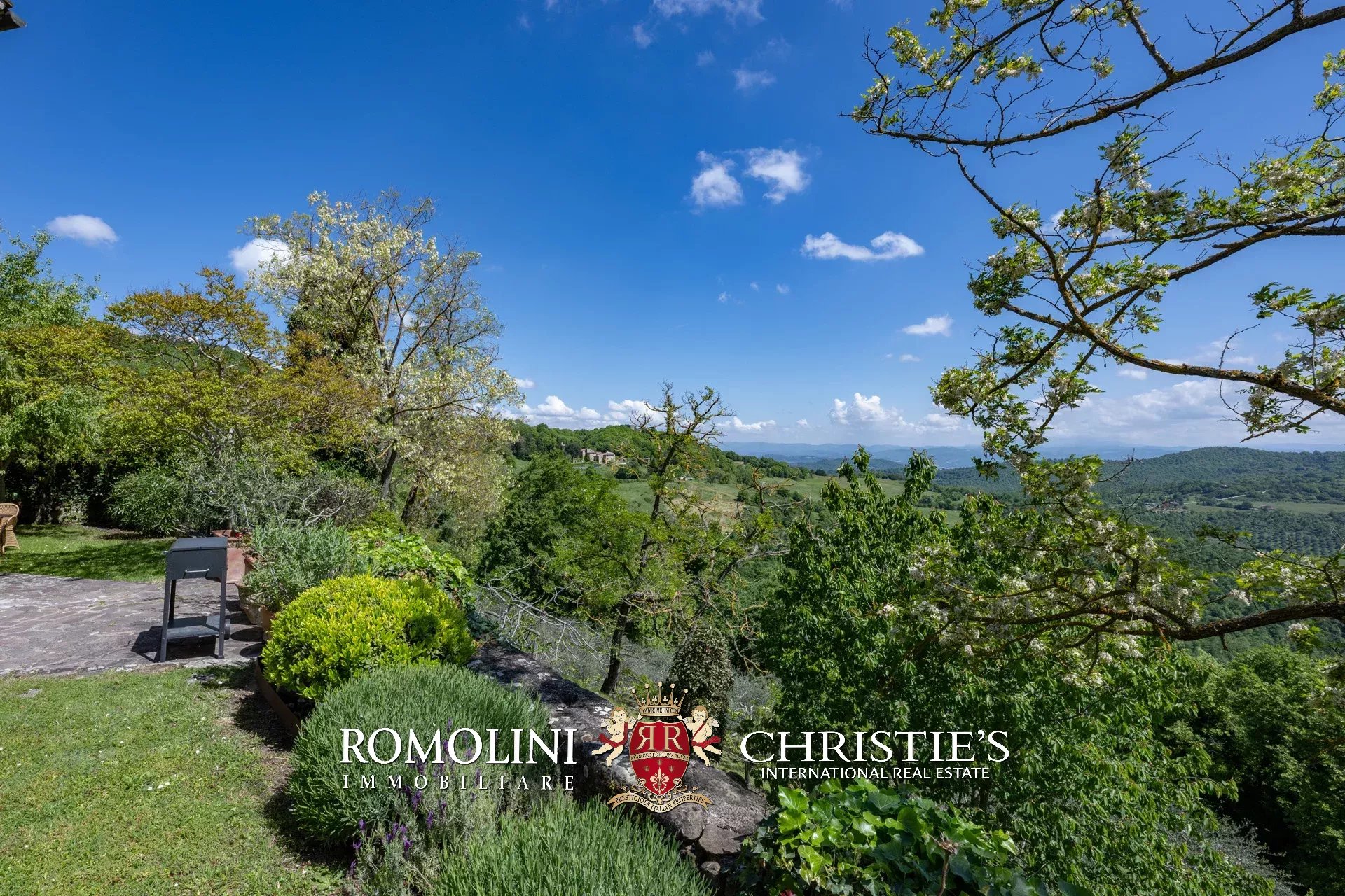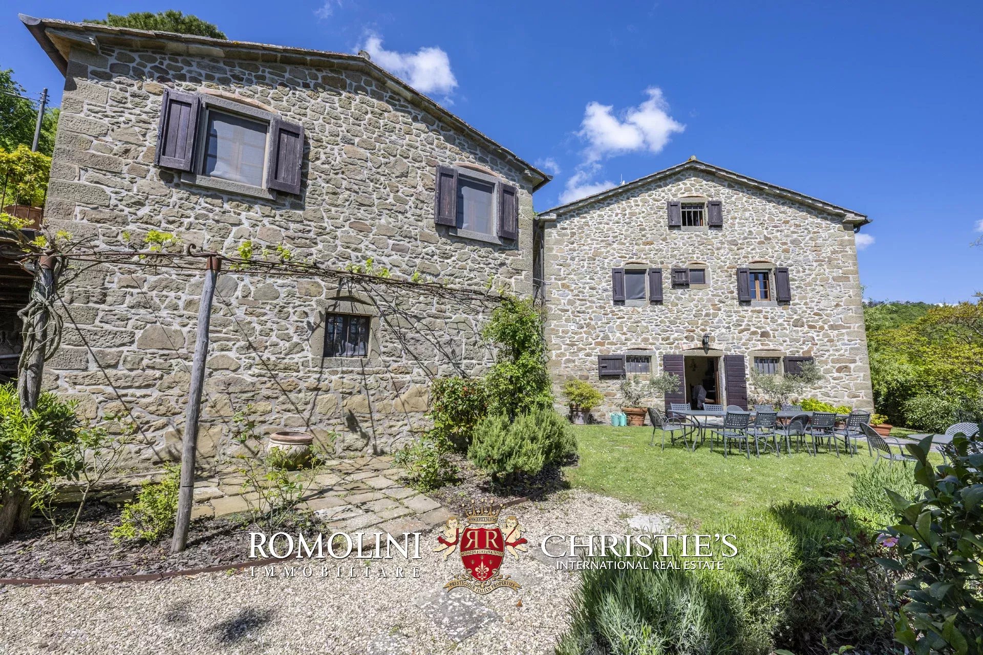 Just one kilometer from the border between Tuscany and Umbria, above the picturesque Niccone Valley, finely restored farmhouse with swimming pool for sale. The property, with a luxury standard, consists of two buildings: a traditional Umbrian farmhouse and a converted tobacco barn. Surrounded by terraces and steps, the house offers a unique setting with vineyards, olive groves and fruit trees, with dedicated corners for relaxation and contemplation. Despite being set in a small rural context, the property enjoys absolute privacy.