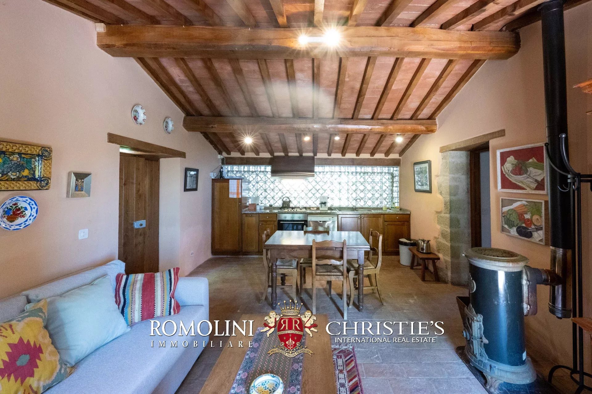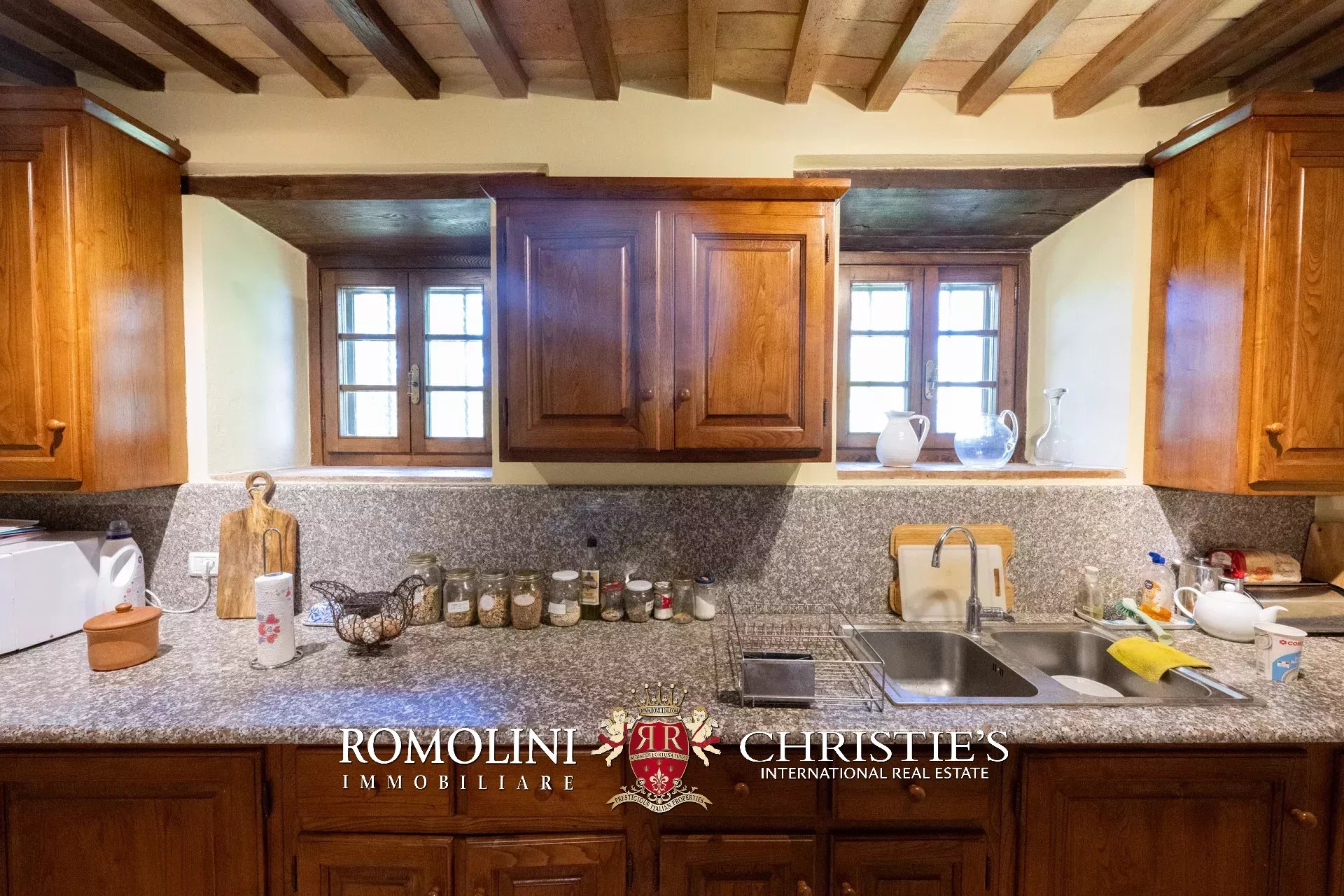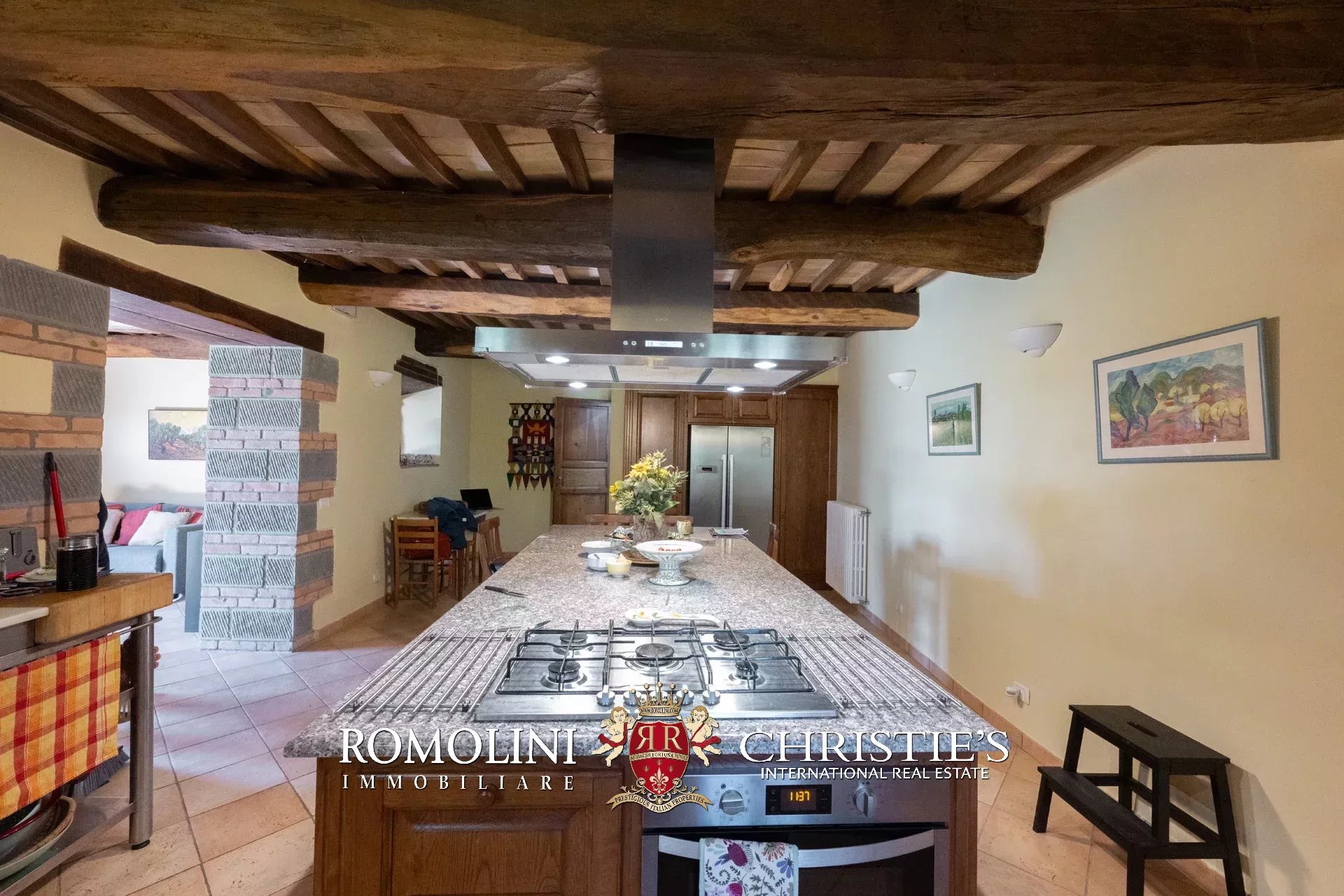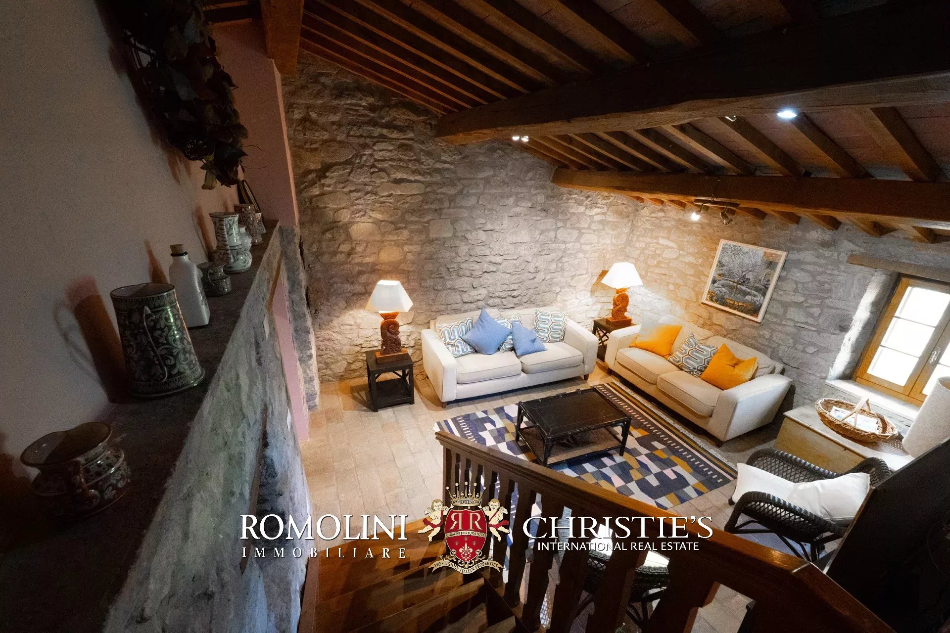The property features finishes typical of Umbrian and Tuscan farmhouses, representing a perfect blend of tradition and authenticity and creating a warm and welcoming environment. These finishes include terracotta and brick floors, often combined with terracotta tiles, which give a rustic yet elegant character to the interior spaces. Window and door openings are composed and regular, maintaining architectural harmony and enhancing natural light. The doors are mostly original, carefully restored to preserve the historic charm. The exposed stone interiors and original fireplaces contribute to an intimate and comfortable atmosphere, typical of country homes.