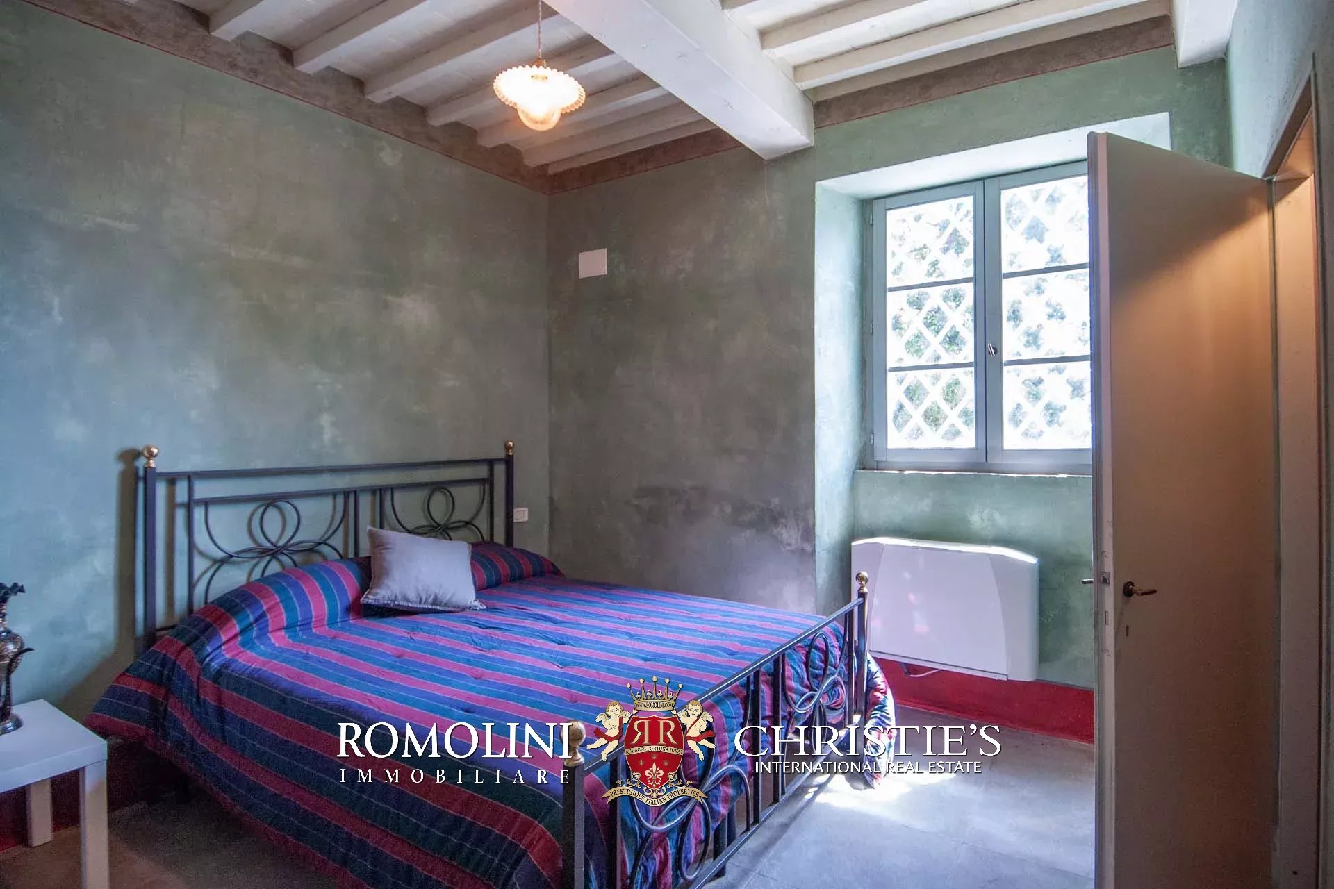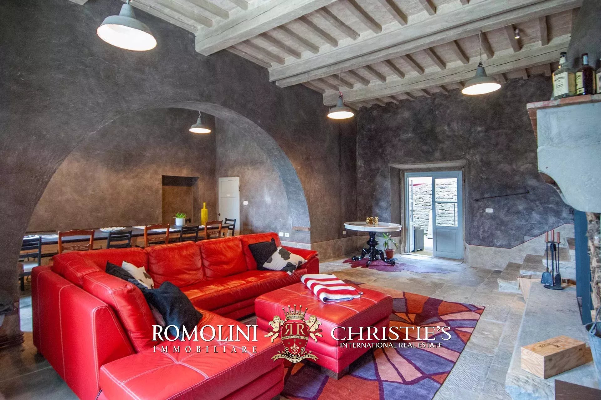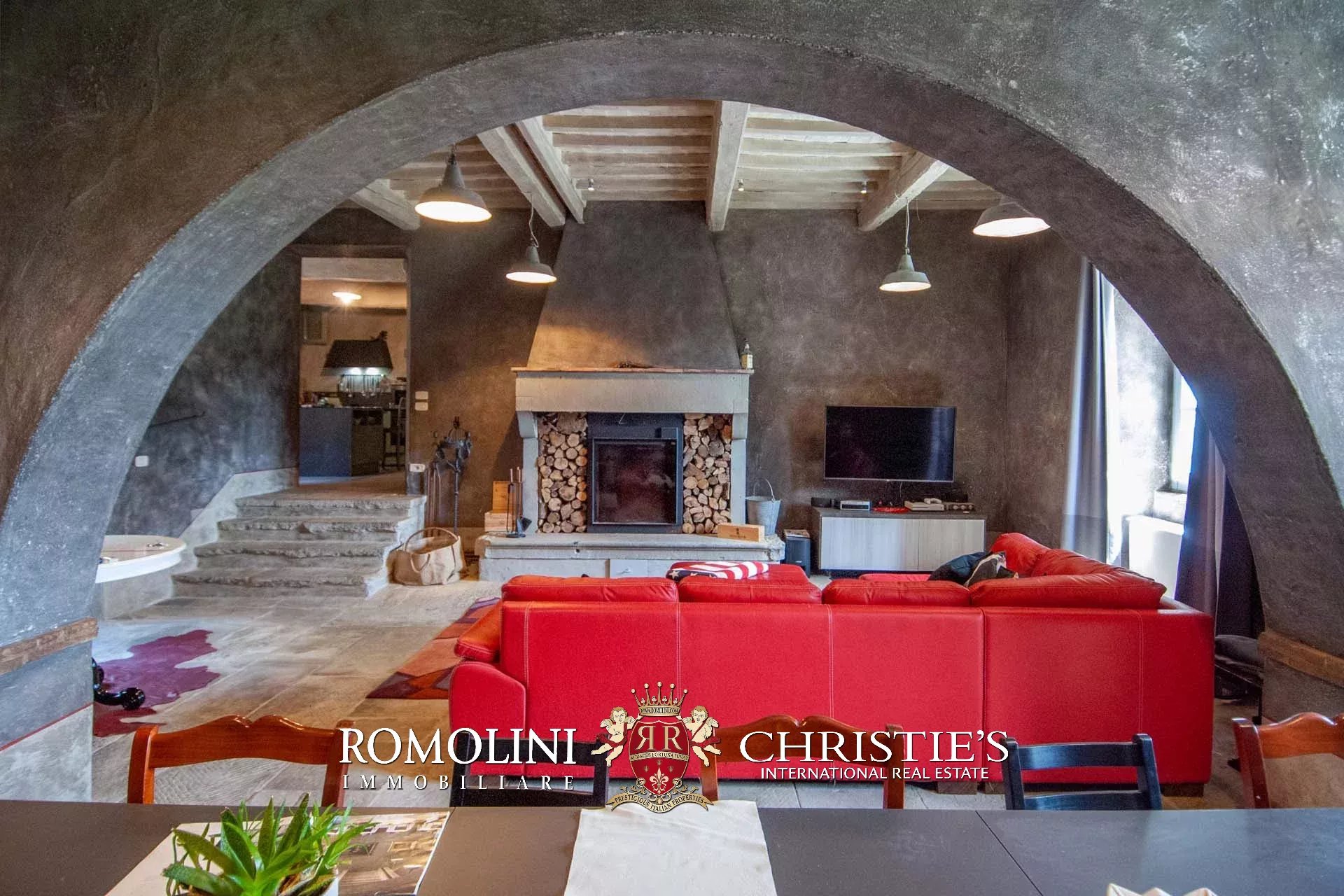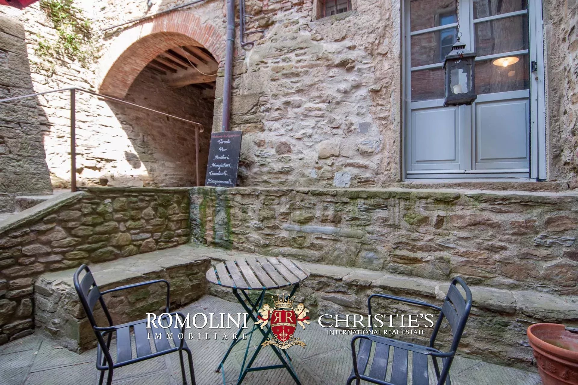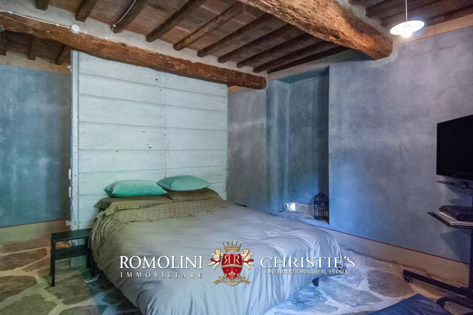 This 170-m² restored apartment is located inside a medieval castle between Anghiari and Arezzo. The property has been finely restored in 2011 to preserve its original charm and currently features 3 bedrooms and 3 bathrooms with a beautiful original living room. At the rear is a charming, private paved courtyard with access to the spacious cellar/workshop, while right next to the building is a 230-m² private garden.