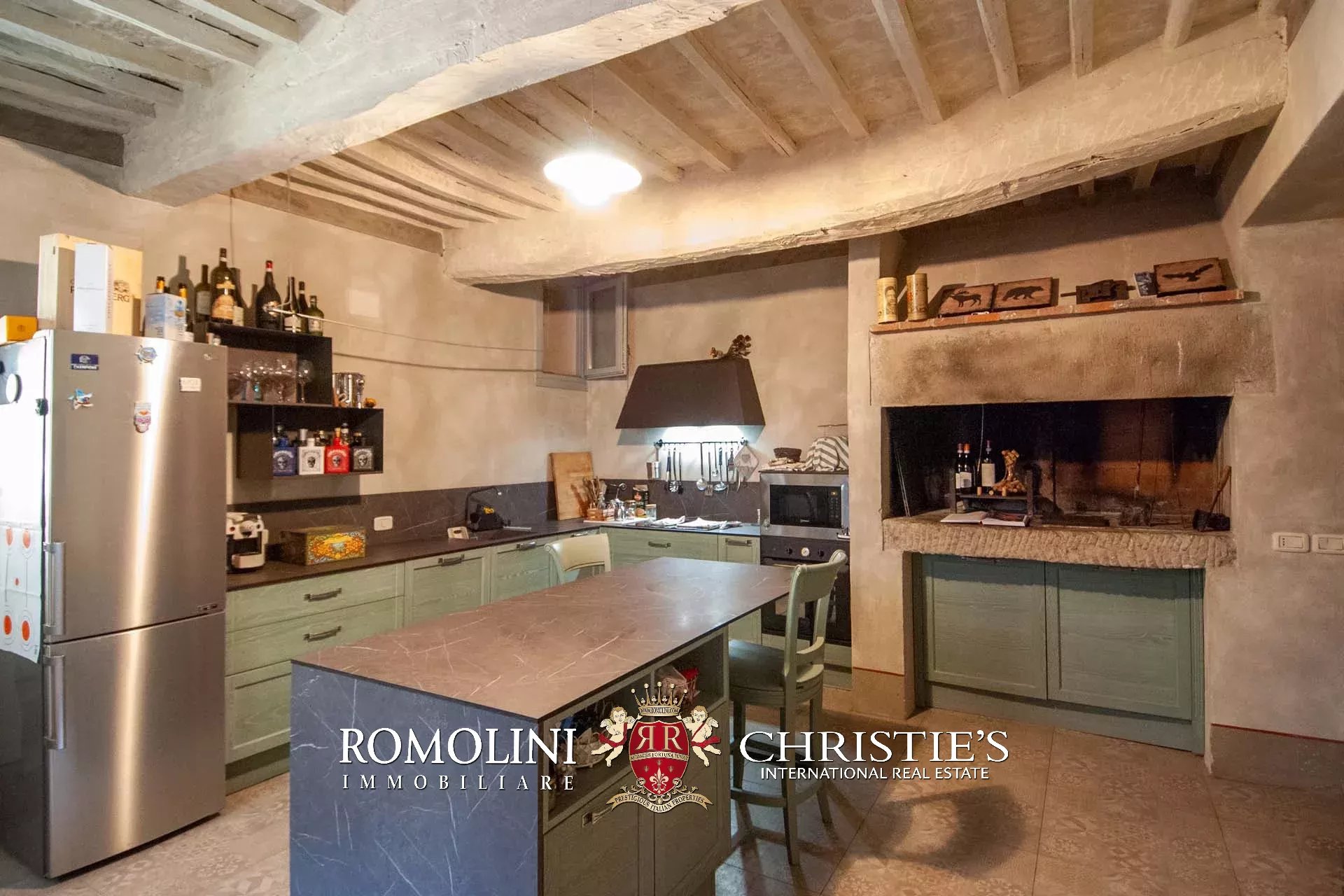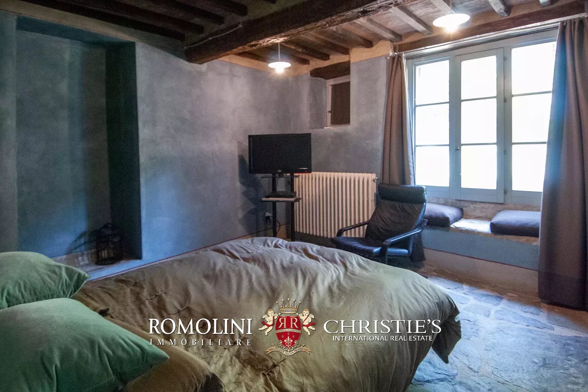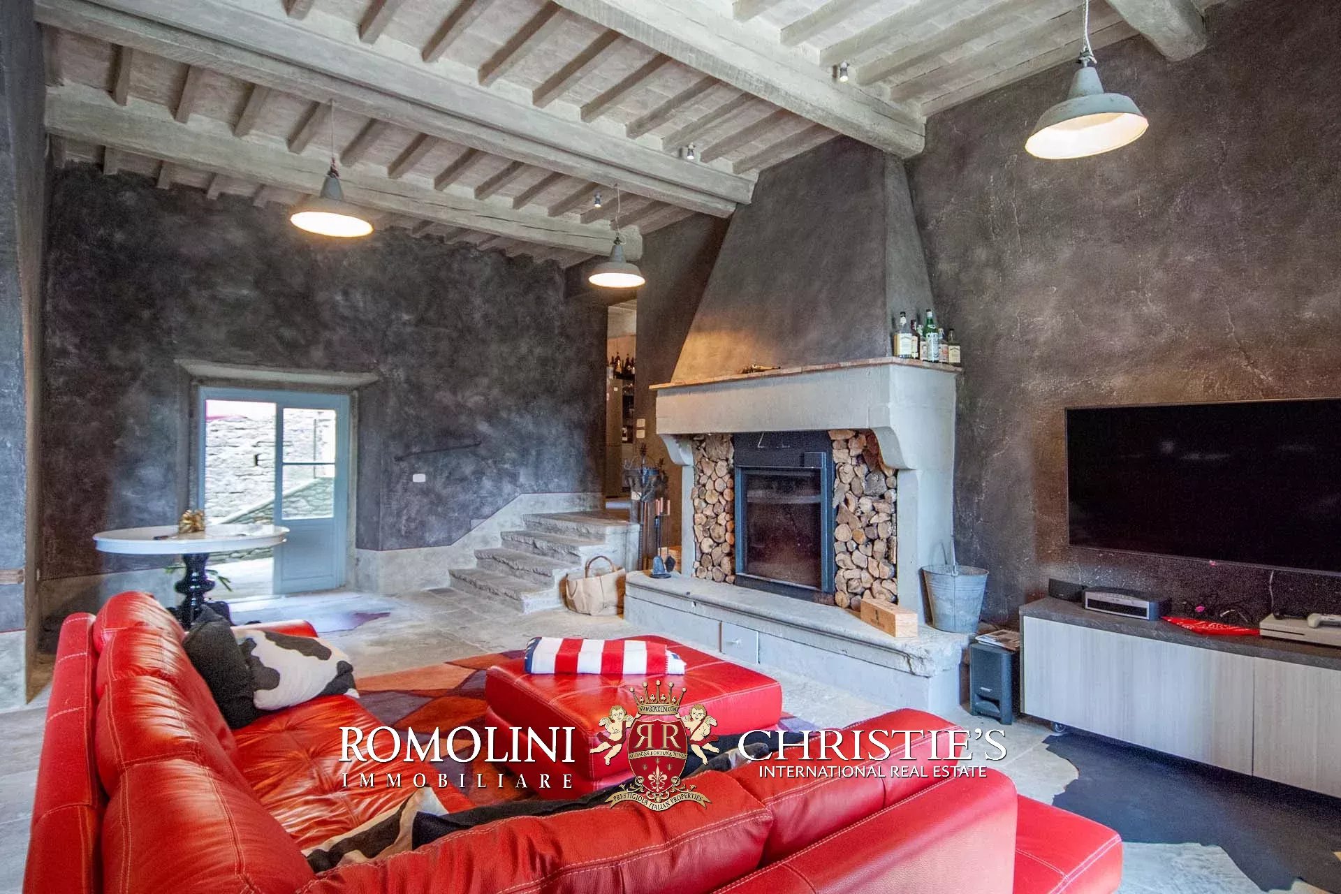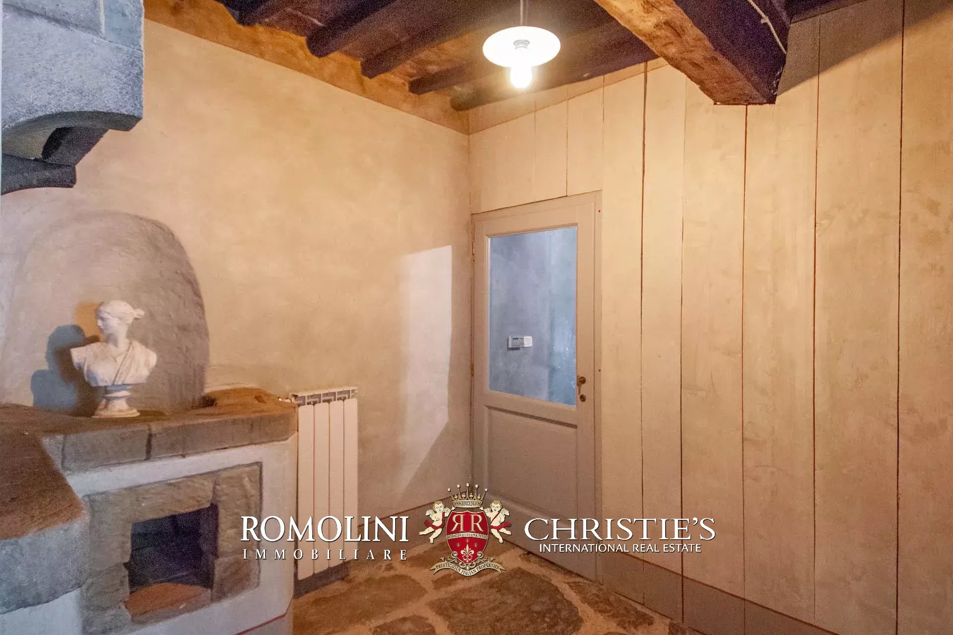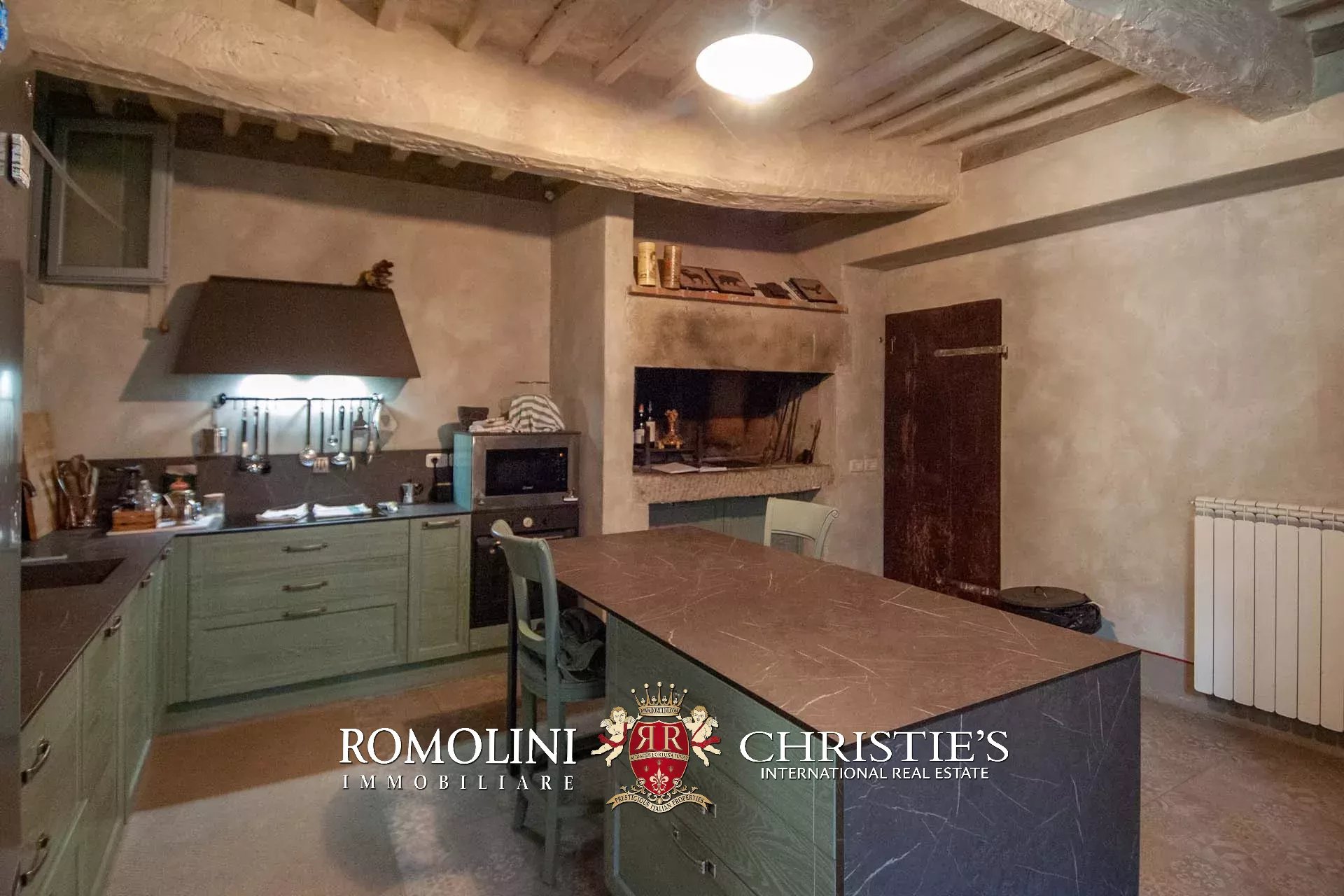 This 170-m² restored apartment is located inside a medieval castle between Anghiari and Arezzo. The property has been finely restored in 2011 to preserve its original charm and currently features 3 bedrooms and 3 bathrooms with a beautiful original living room. At the rear is a charming, private paved courtyard with access to the spacious cellar/workshop, while right next to the building is a 230-m² private garden.