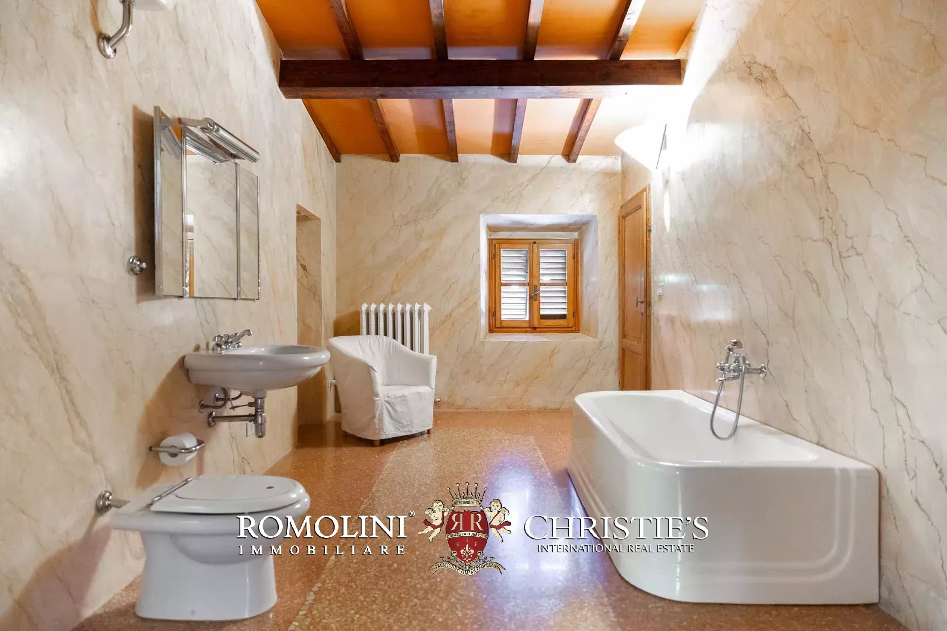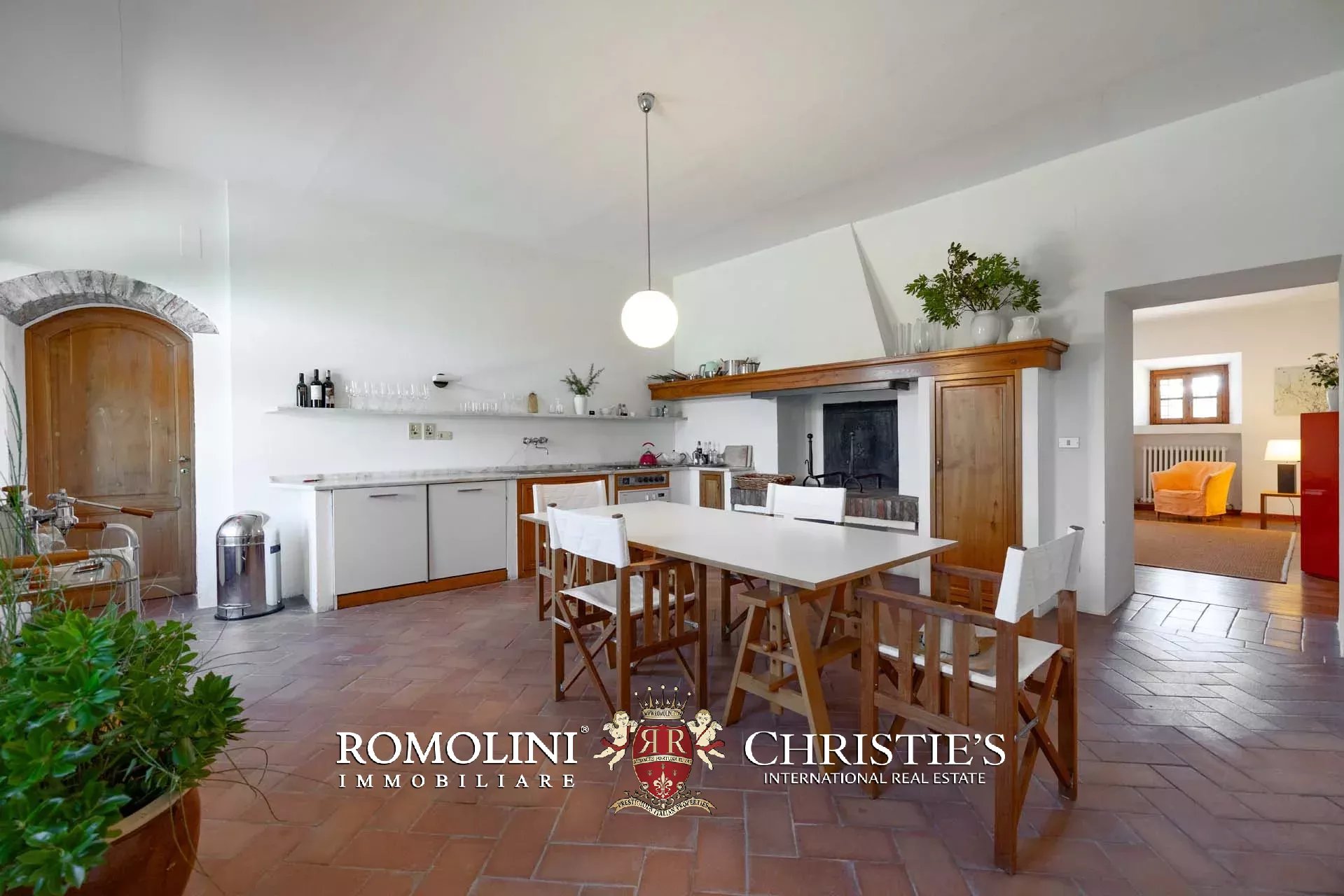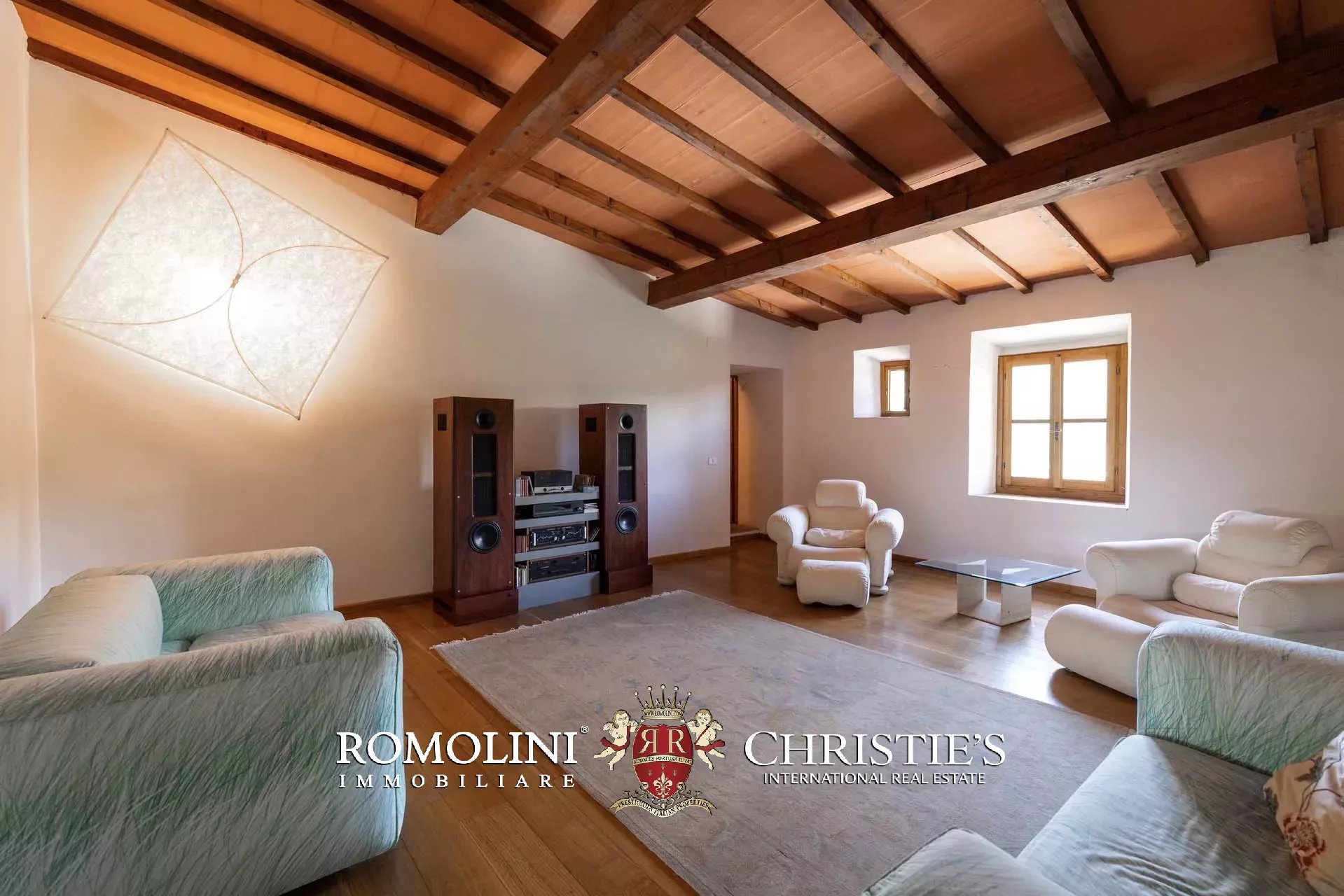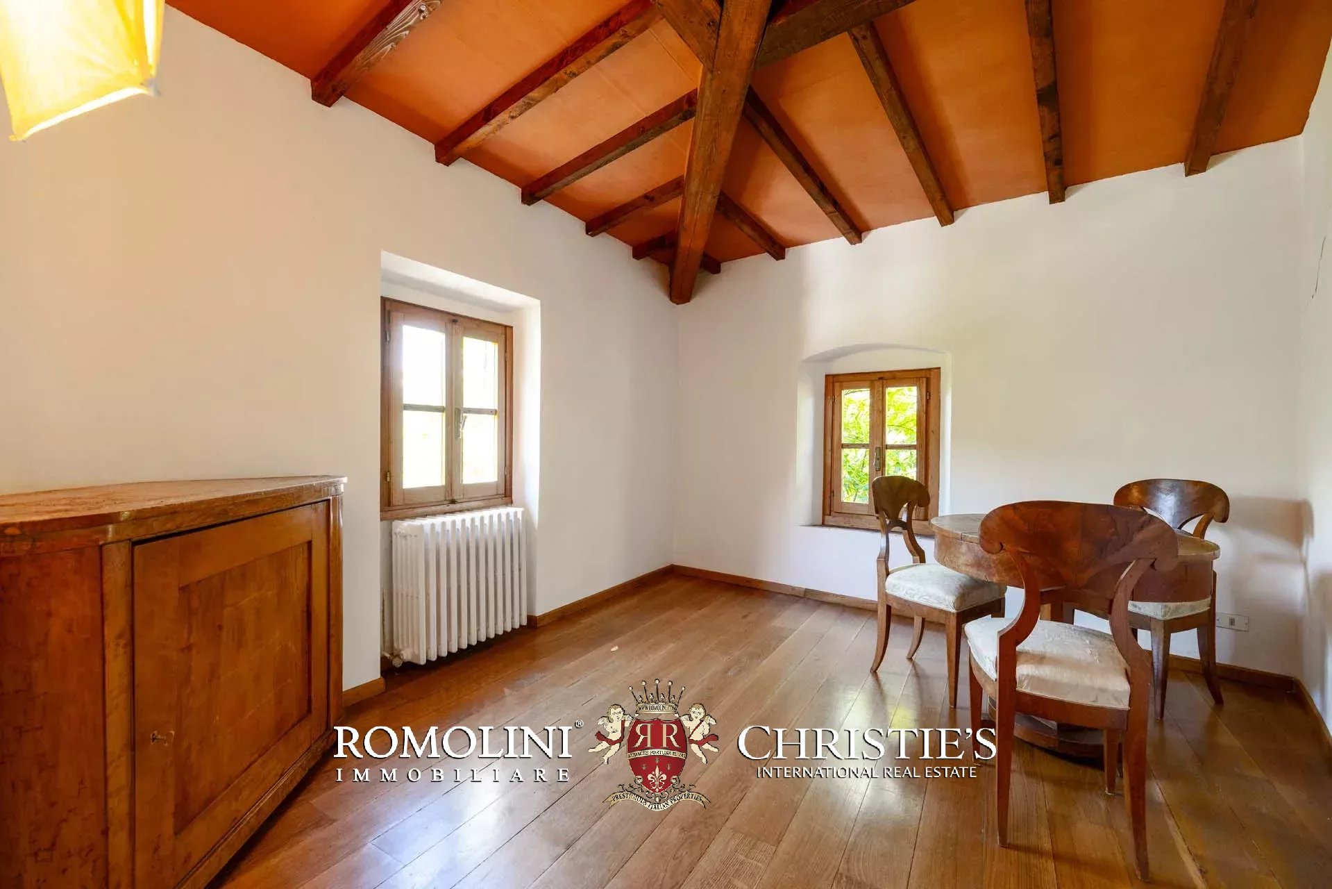 In a hilly and panoramic position on the first hills of Chianti, renovated stone farmhouse with for sale. The house (420 m² – 4,519 ft², 5 bedrooms and 2 bathrooms) is a rustic building, renovated keeping the original finishes, but characterized by good brightness (uncommon for historic buildings). Typical elements include original terracotta floors, chestnut beams and exposed stone masonry. The house is currently divided into two independent units plus two cellars on the ground floor.
