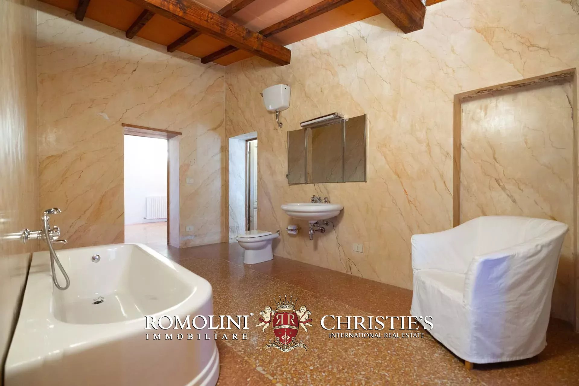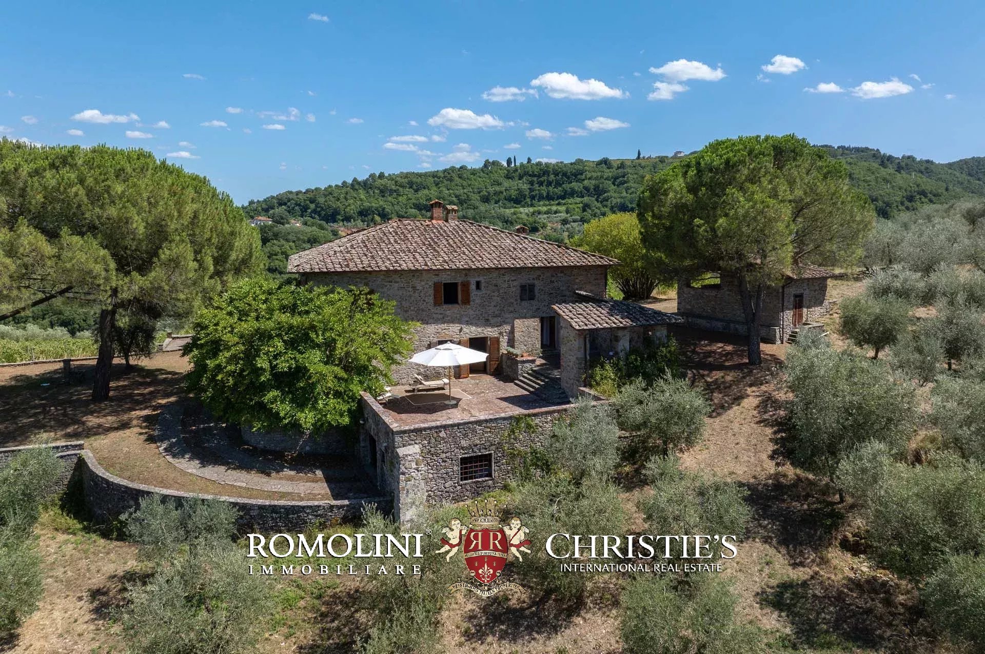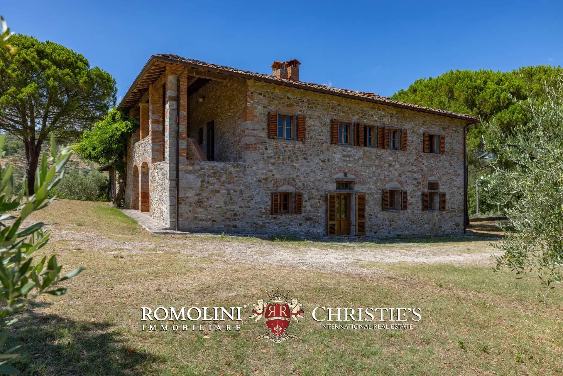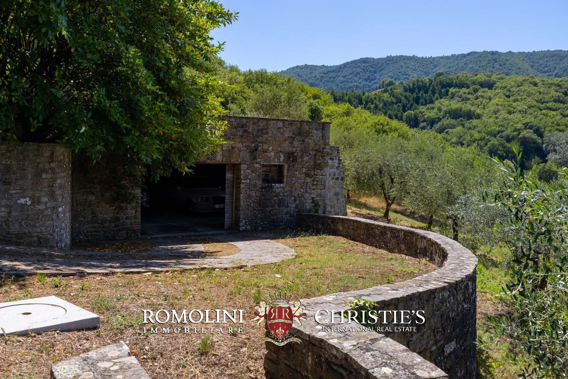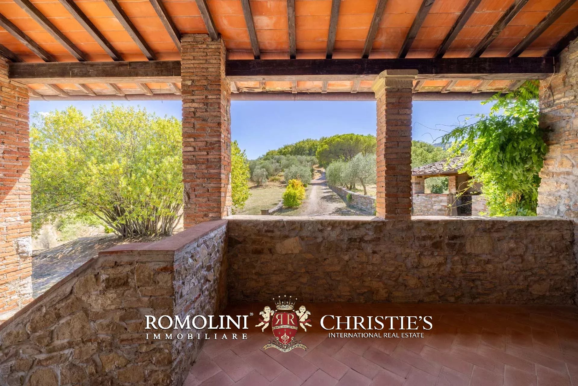 The property is located in an area of great charm, an oasis nestled among olive groves, vineyards and woods, a short distance from the main services and connections and is accessible via a short stretch of unpaved road in good condition (about 600 m). The closest town can be reached in about 5’ by car, the Montevarchi train station (with direct connections to Florence and Rome) in 15’ and the Valdarno highway exit in 20’.