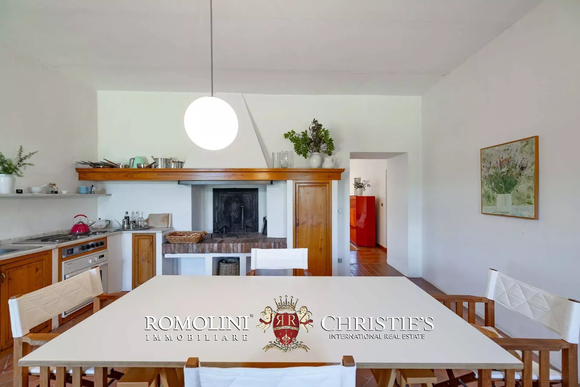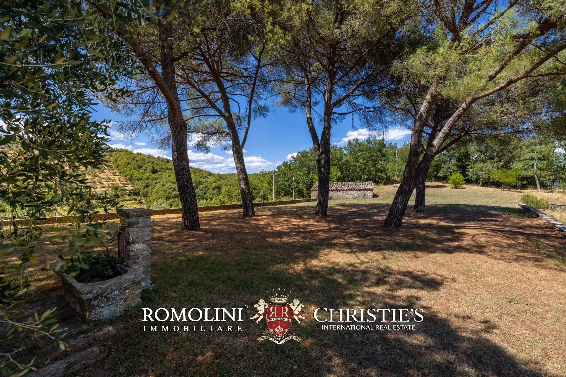The farmhouse is surrounded by a well-maintained 8,700-m² park dotted with olive trees and ornamental plants. The terraces offer incredible views of the surrounding countryside and ensure perfect spaces for outdoor moments in summer.