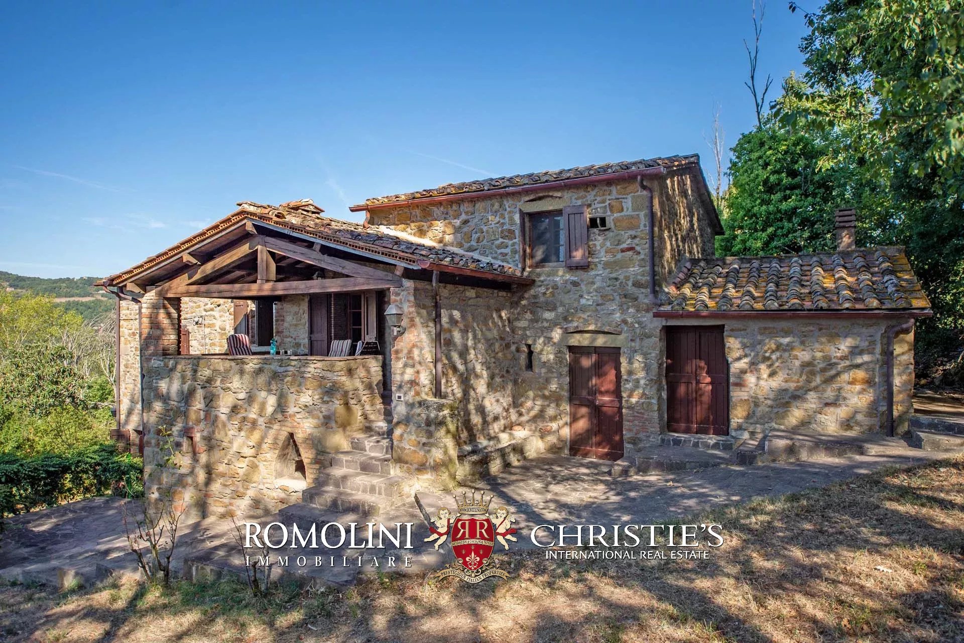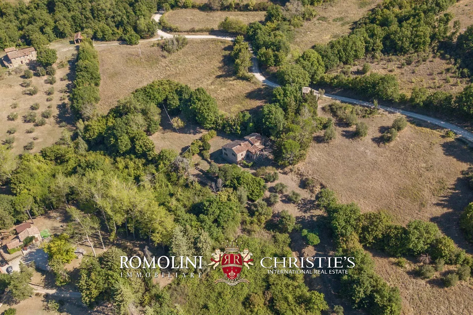 At the border between Umbria and Tuscany, in a panoramic position, stone country house with barn and garden. The building (200 m²) currently houses 3 bedrooms and 2 bathrooms and is readily habitable, with only small updates necessary. The barn to be restored (50 m²) could become a cozy guesthouse. Roughly 6,000 m² of garden with olive trees complete the property.