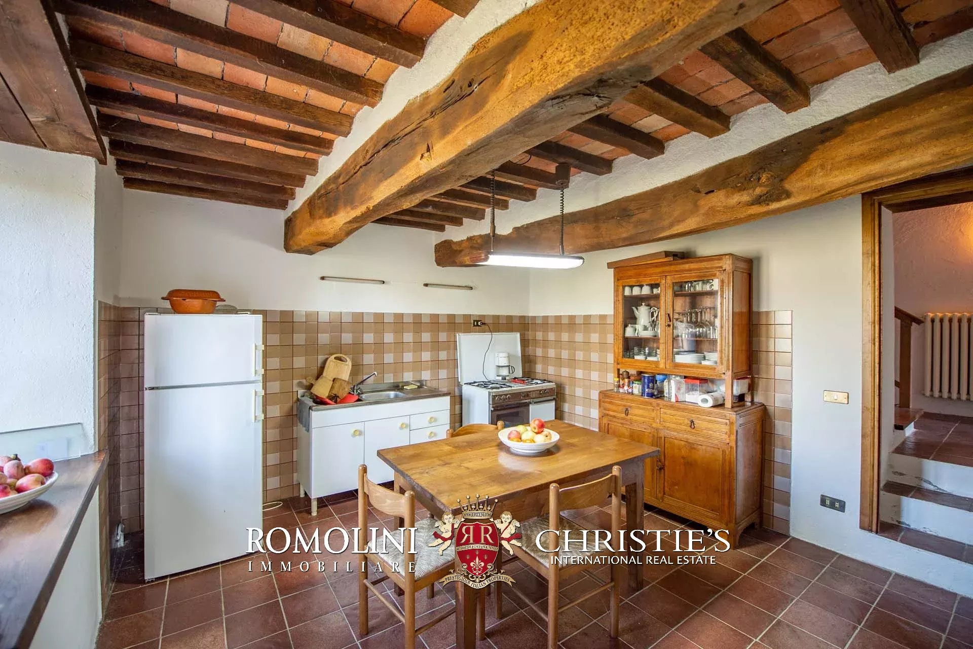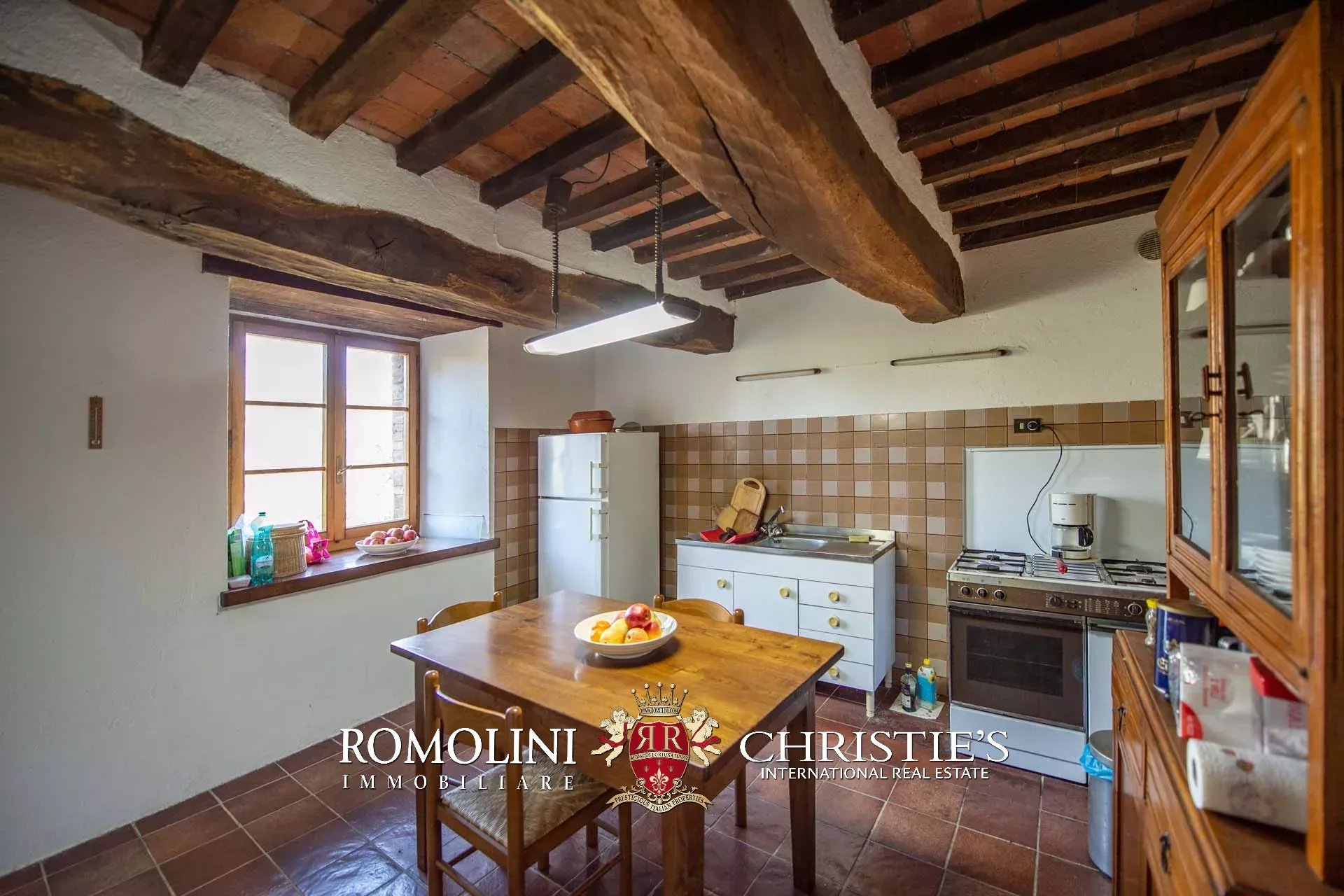 The country house is in good structural condition and only needs a few updating works to be exploited in its full potential. The rustic features, such as stone walls, wooden beams and terracotta floors, are all well preserved and give the building its unique fascination.