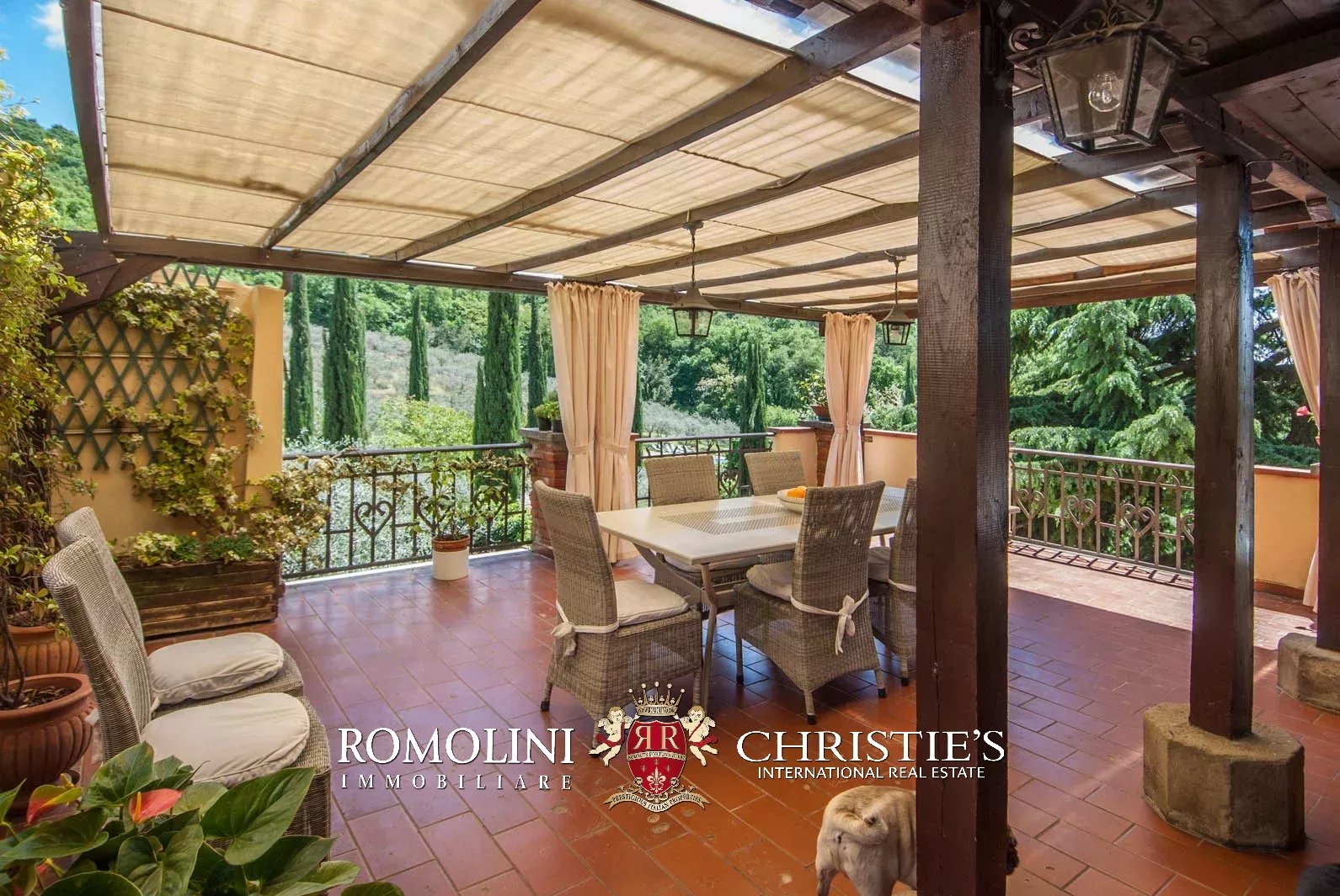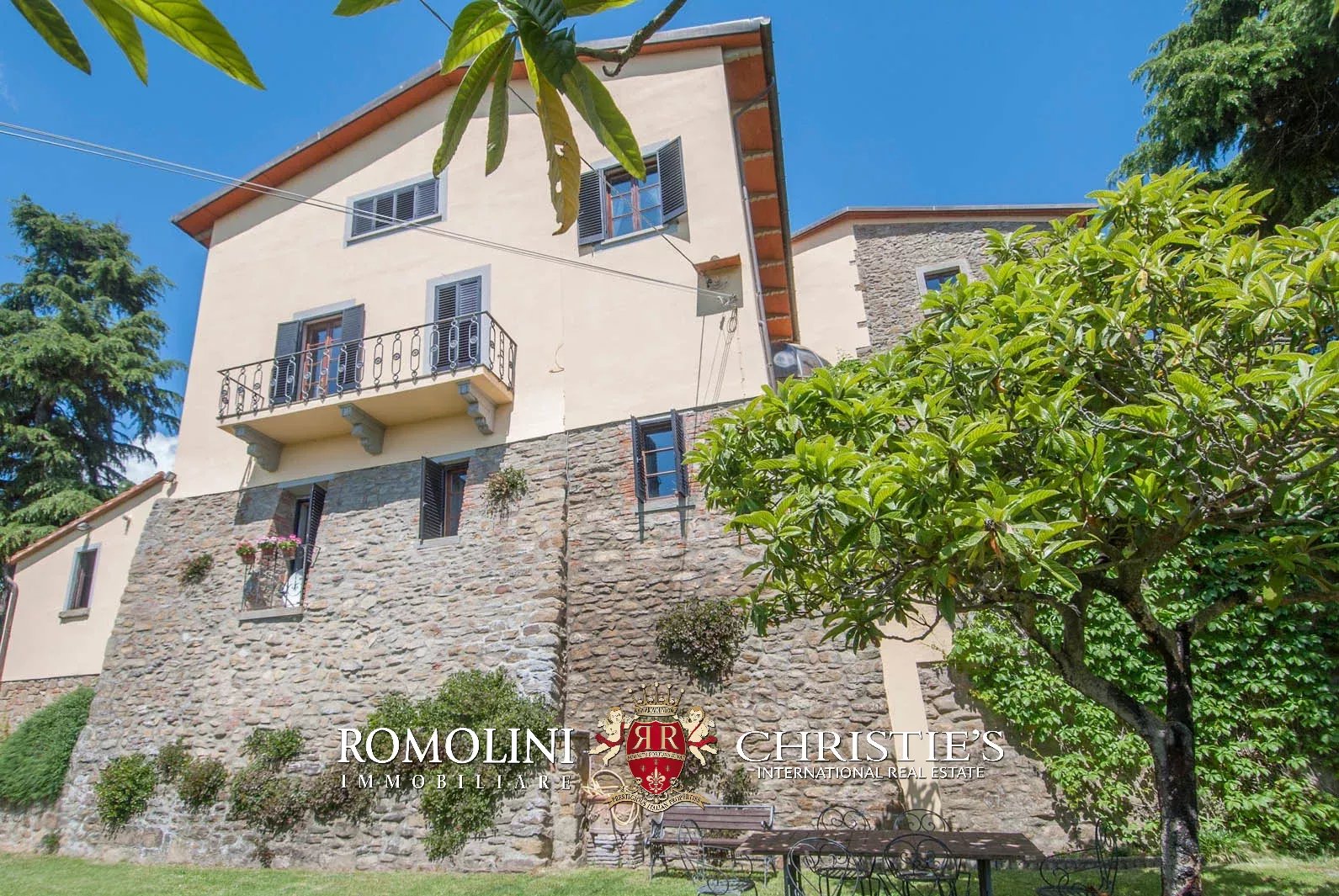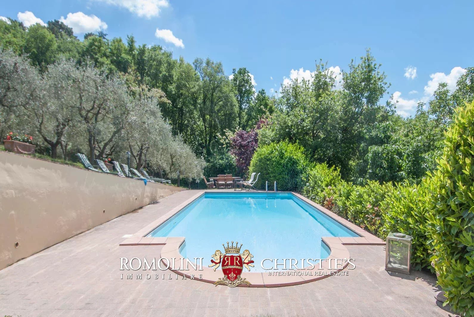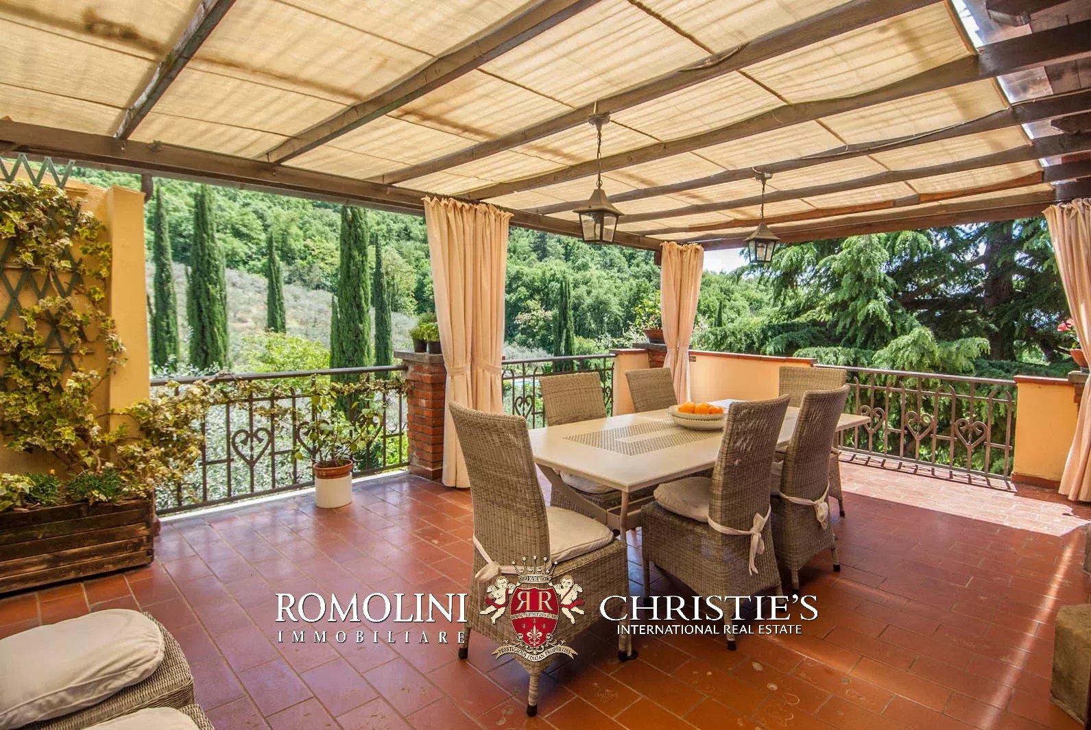 Externally, the villa is surrounded by a fenced land of 1.5 hectares (3.7 acres), partially covered in woodlands and olive grove. The covered terrace at the first floor offers a wonderful vista on the surrounding landscape.