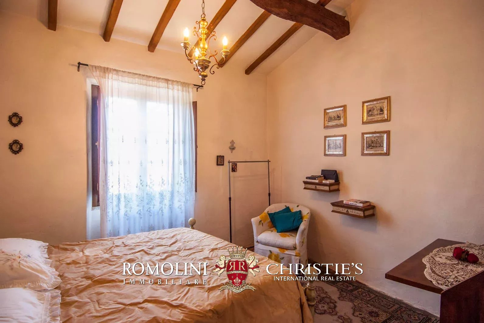 The villa is surrounded by the countryside but at the same time really close to several services, granted by the nearby city of Arezzo (7km; 15’). The location of the residence allows one to quickly reach several of the most beautiful cities of Tuscany, such as the papal Pienza (53km; 55’), the Etruscan Cortona (27km; 30’), the medieval Siena (66km; 1h) e the Renaissance Florence (70km; 1h). Even the seaside is not too far, with Viareggio being 174kms away (1h 50’).