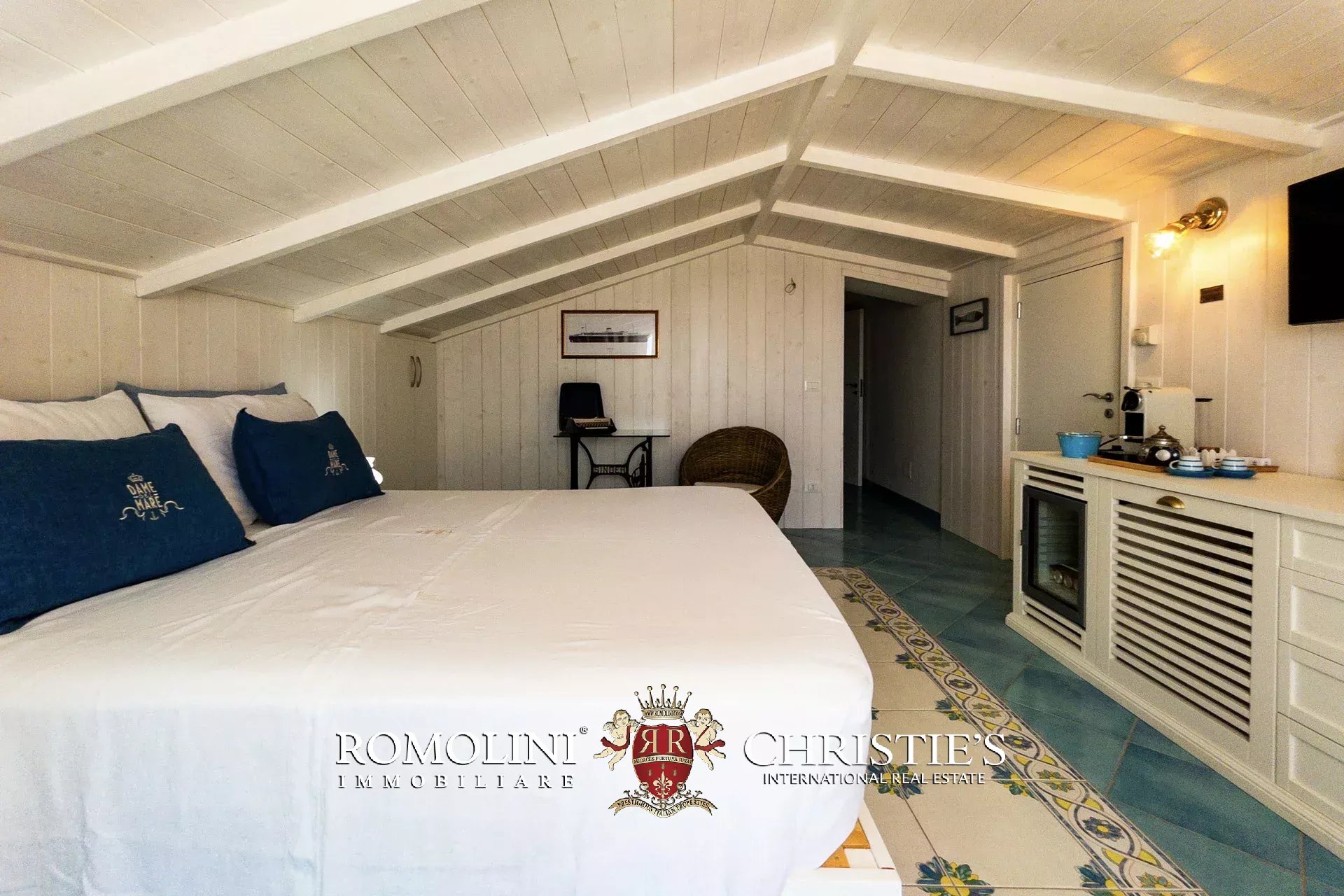 On the second floor, accessible via a self-contained staircase, there is a second guesthouse consisting of a bedroom, bathroom, and a peculiar walk-in closet, with access to a practicable panoramic terrace, from which you can enjoy a breathtaking view of the sea.