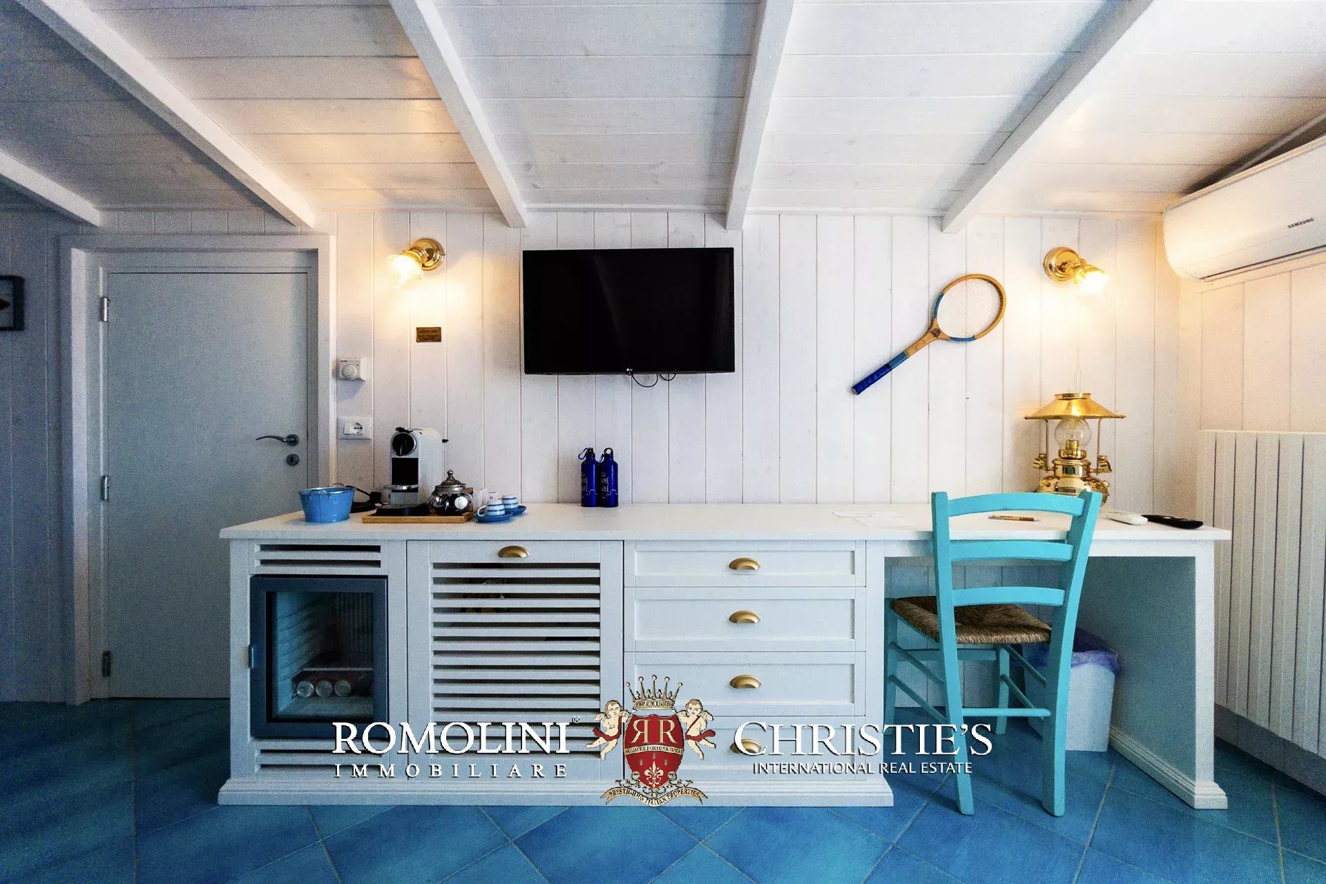 Equipped with modern heating and cooling systems (radiators, fan coils, and air conditioning), the villa is connected to all public utilities and is sold fully furnished with high-end custom furniture.