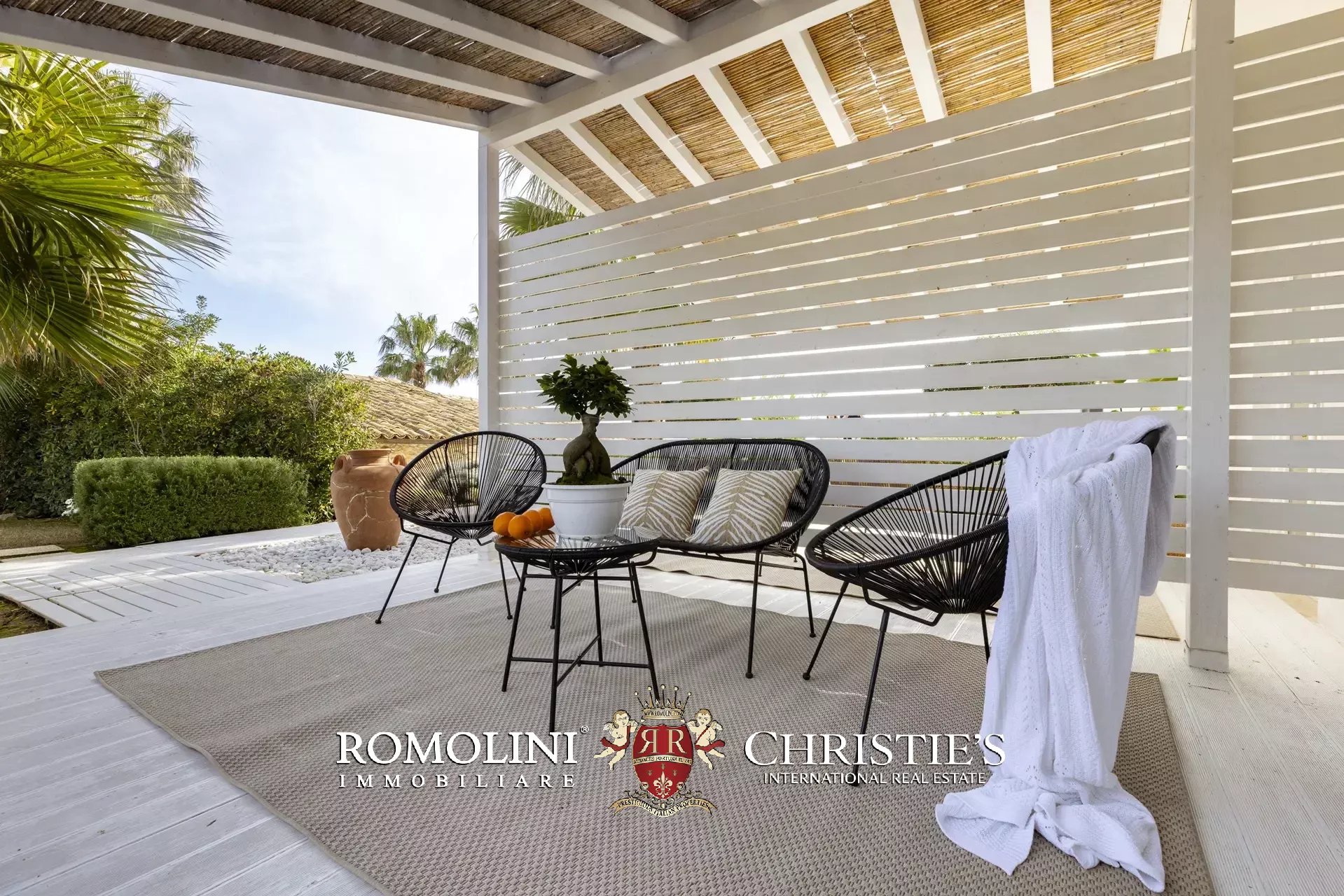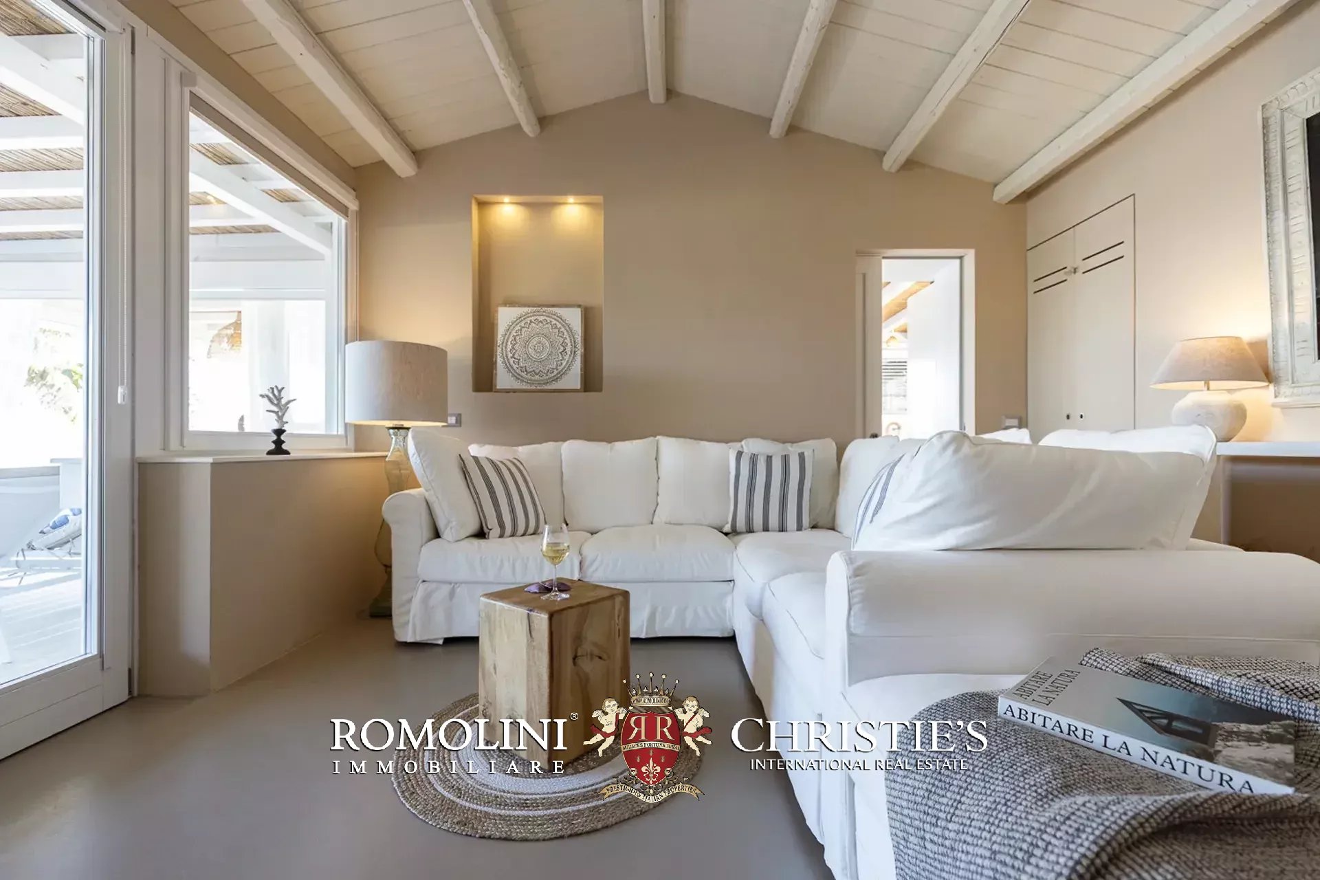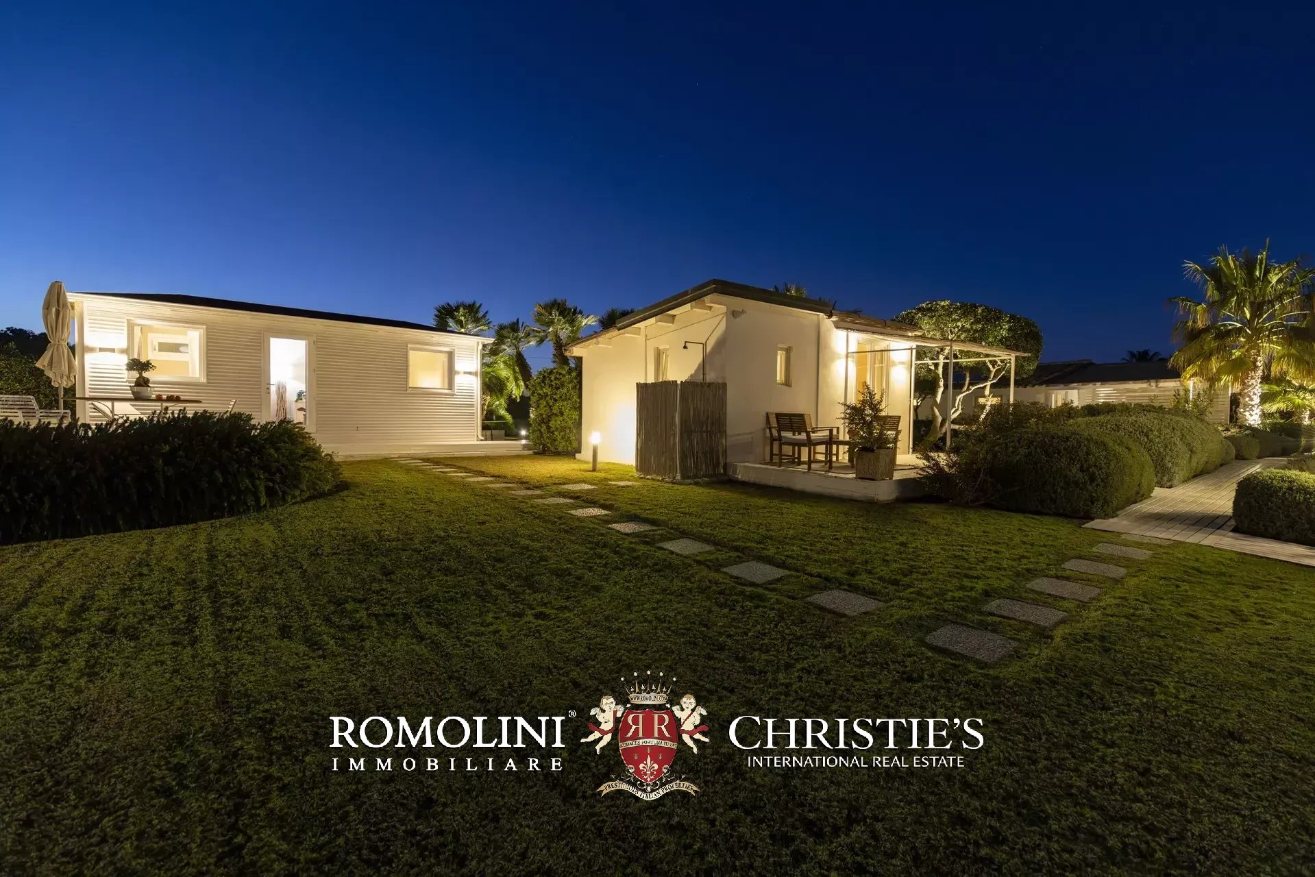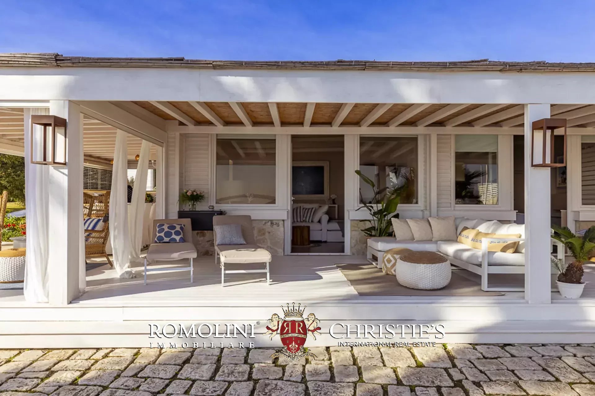 The outdoor spaces, the real strength of the property, extend over approximately 2,700 m² of Mediterranean garden, cared for and rich in aromatic essences, lawns, and seasonal flowering. From the automatic gate, access a large terraced area with covered and uncovered parking spaces, from which wooden walkways, stone pathways, and pebble terraces connect the various housing units. Each room has its own whitewashed wooden private terrace, furnished with shaded areas and spaces dedicated to relaxation.
