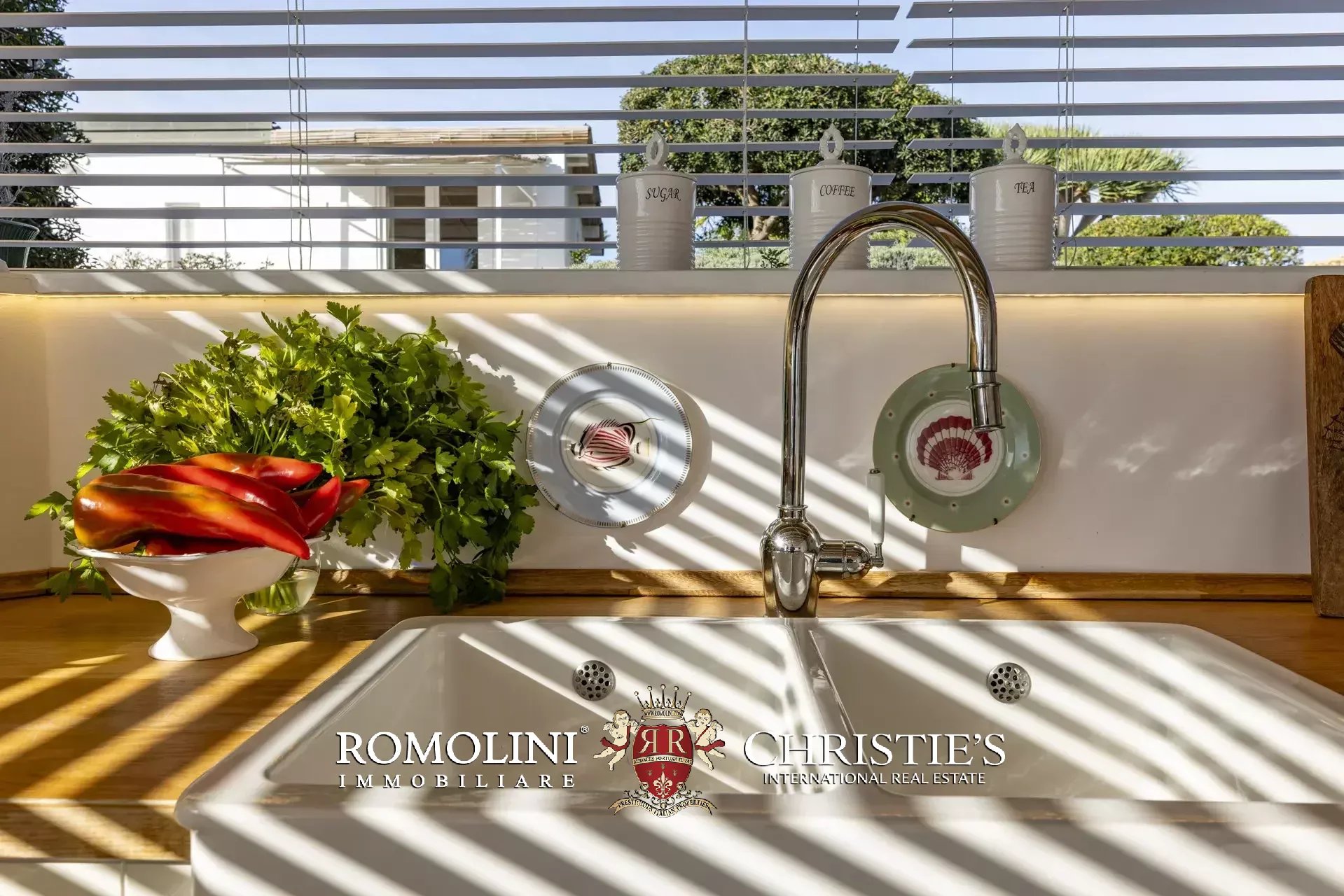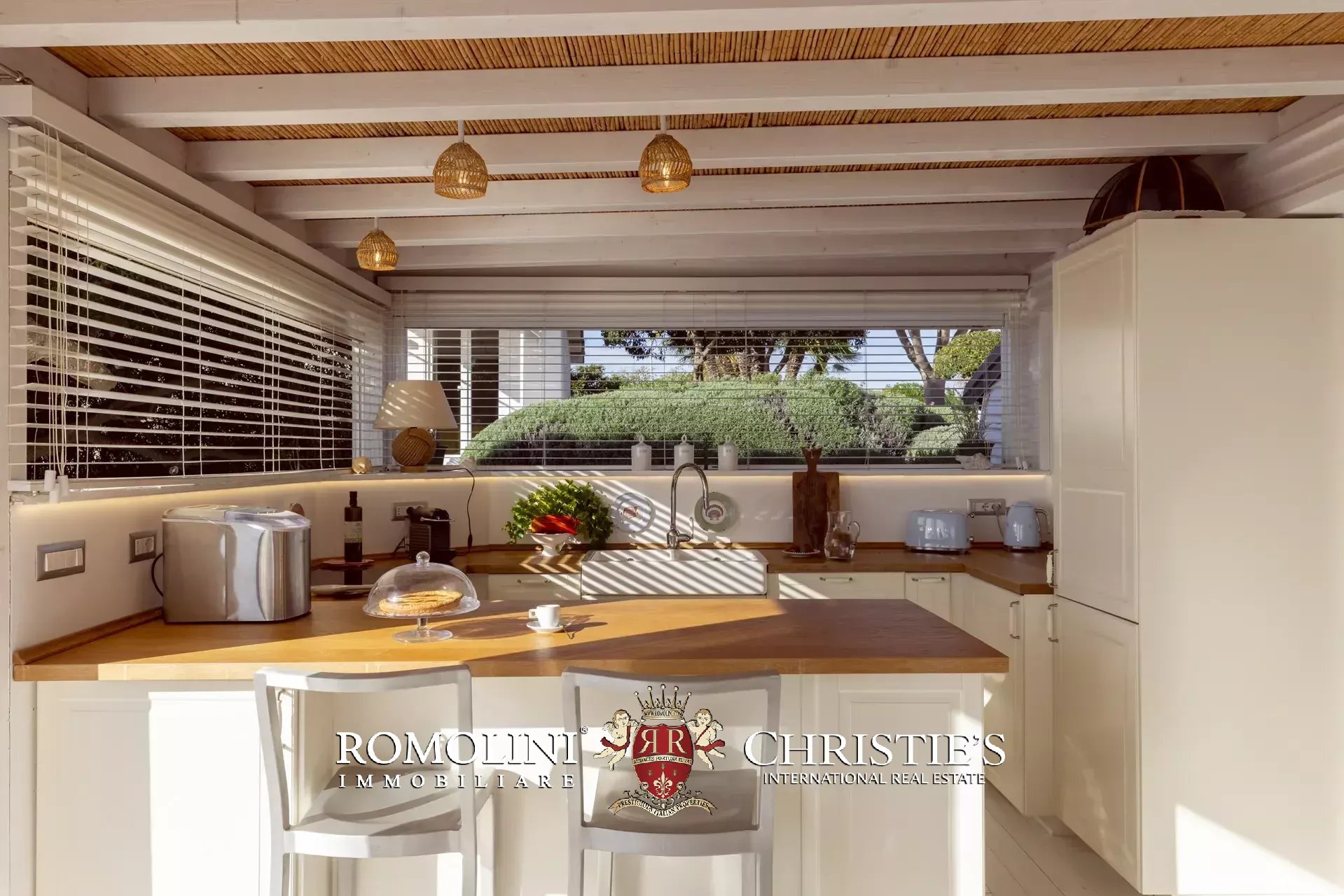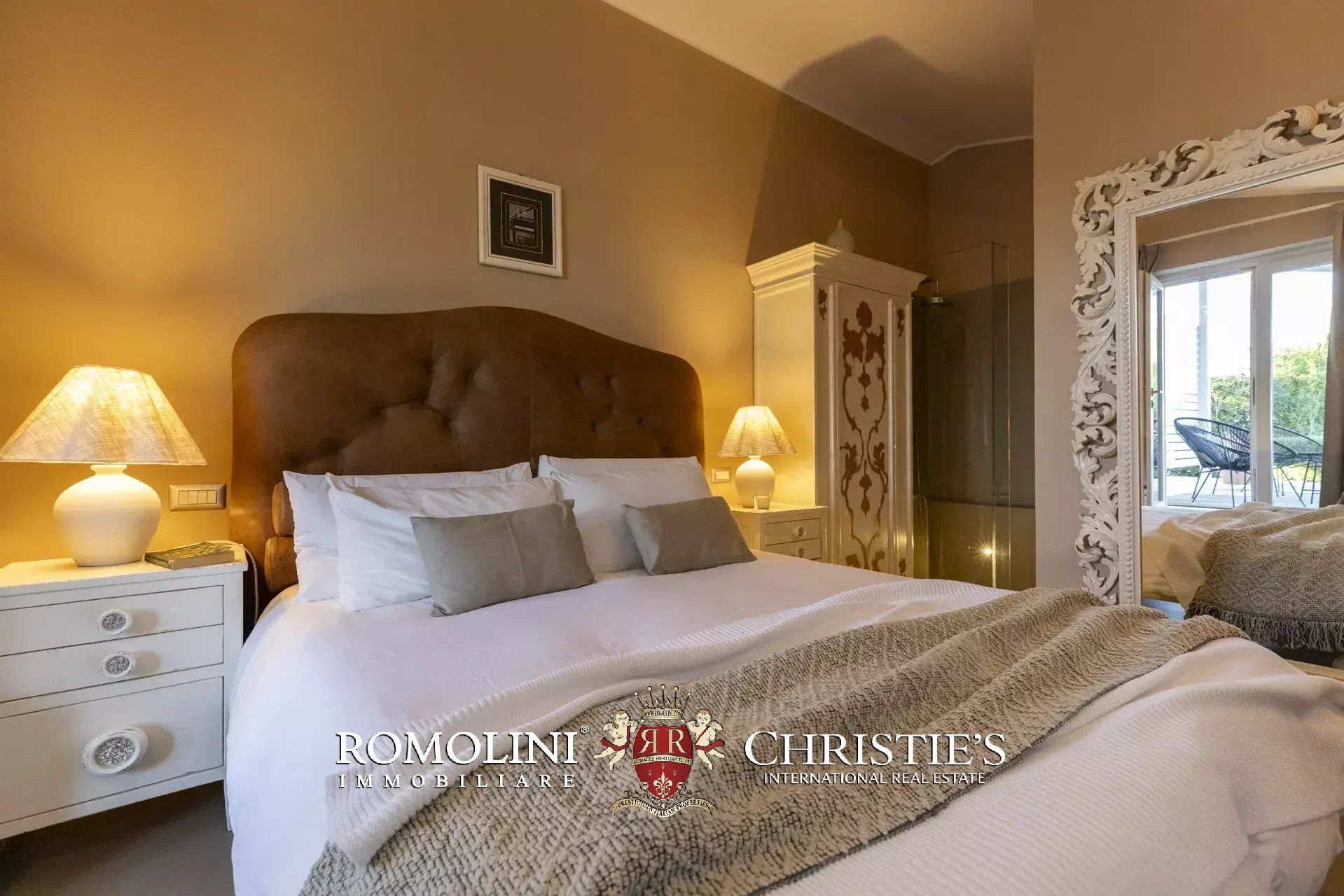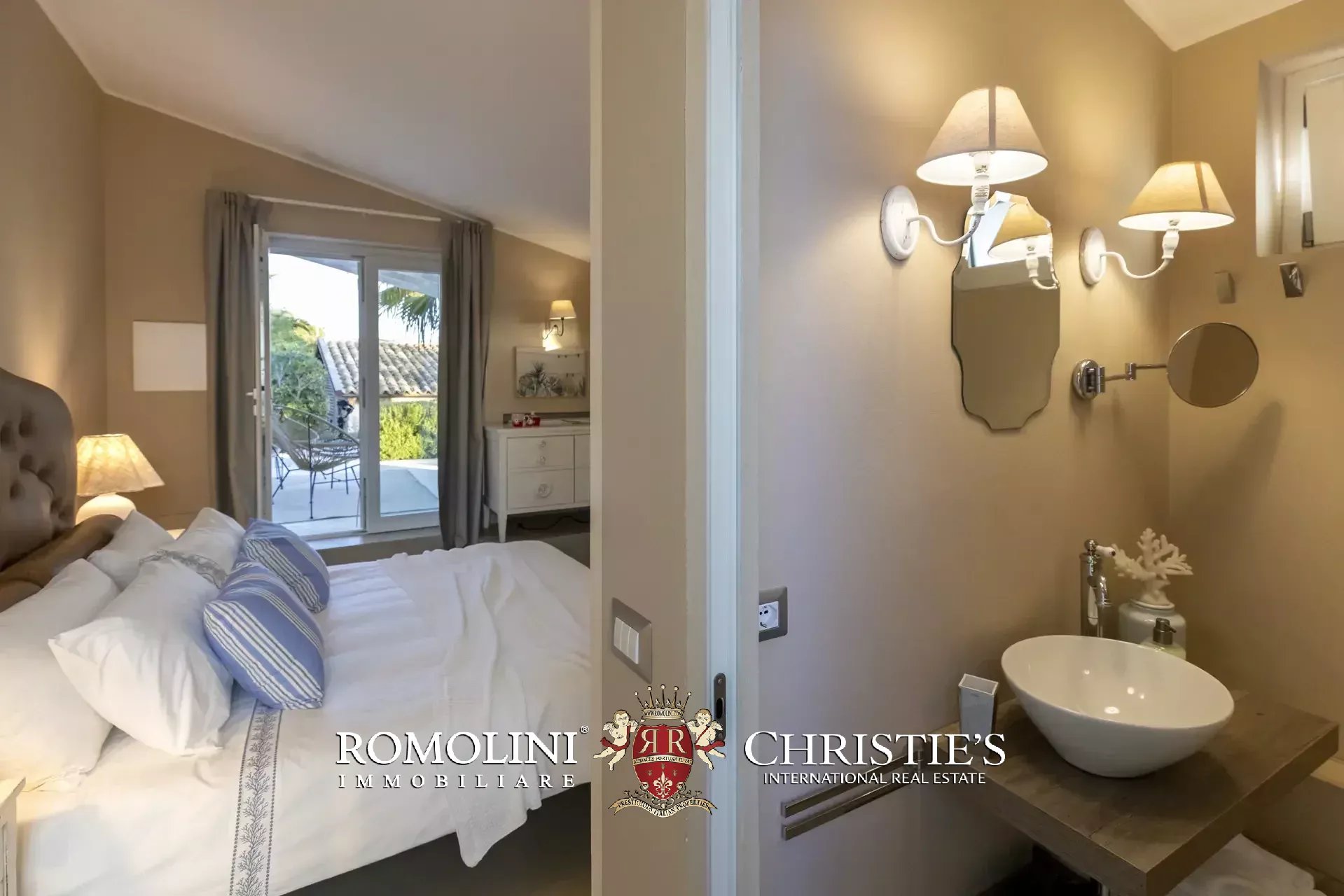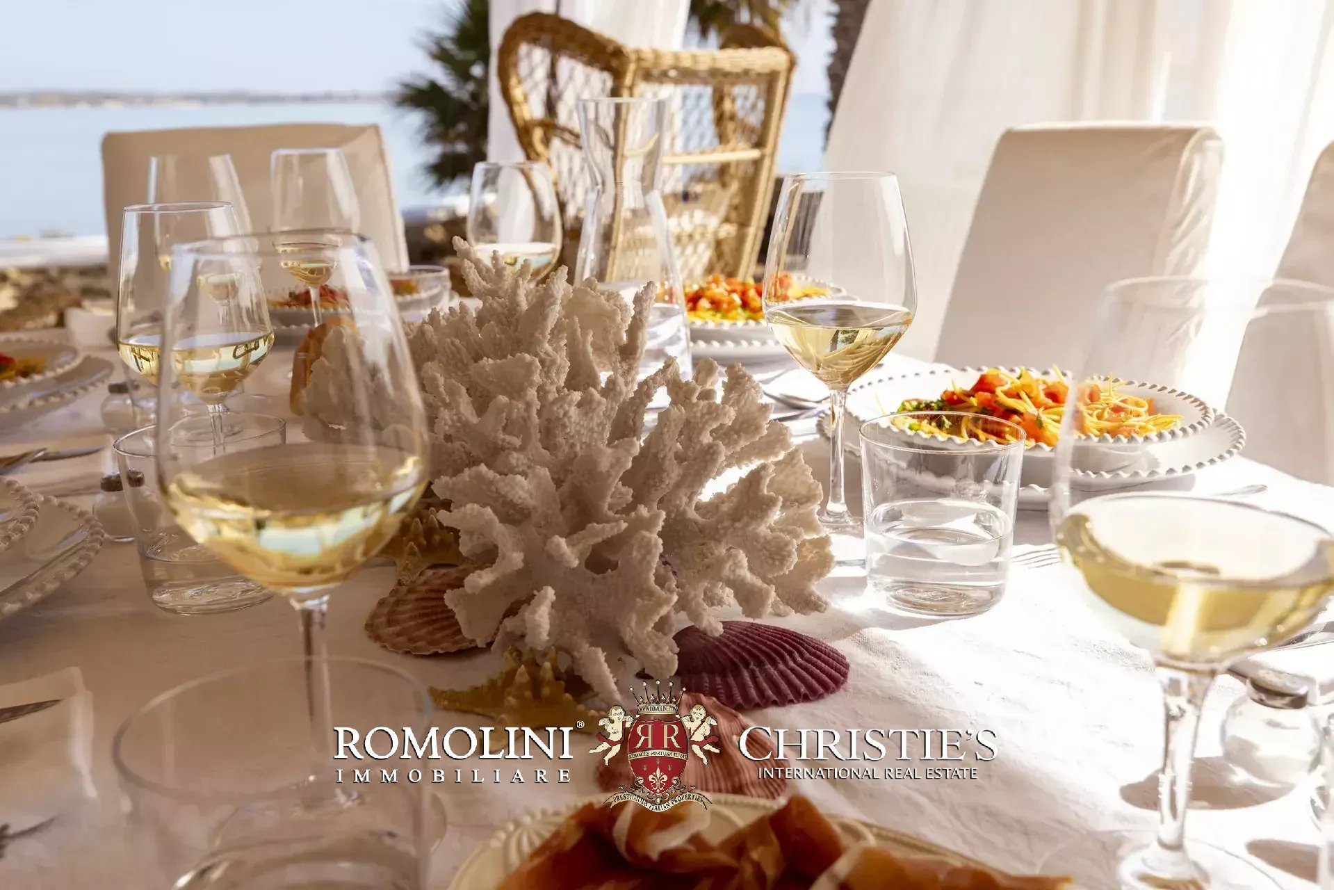 The outdoor spaces, the real strength of the property, extend over approximately 2,700 m² of Mediterranean garden, cared for and rich in aromatic essences, lawns, and seasonal flowering. From the automatic gate, access a large terraced area with covered and uncovered parking spaces, from which wooden walkways, stone pathways, and pebble terraces connect the various housing units. Each room has its own whitewashed wooden private terrace, furnished with shaded areas and spaces dedicated to relaxation.