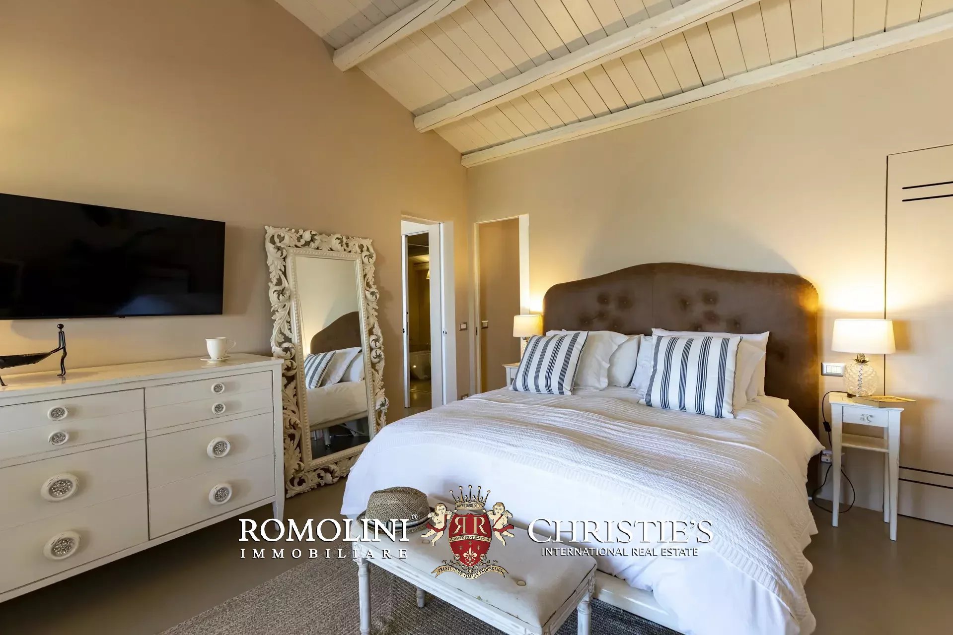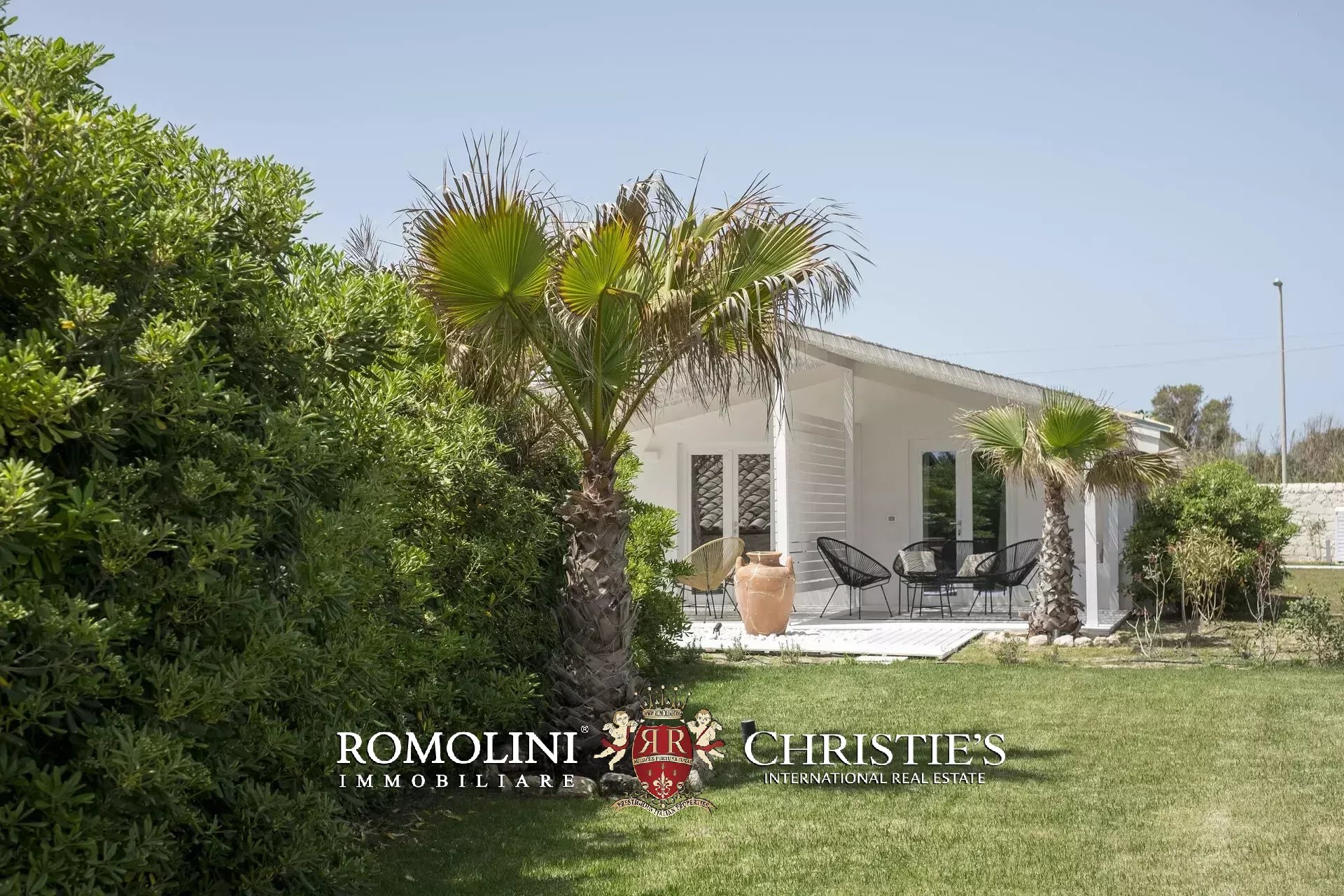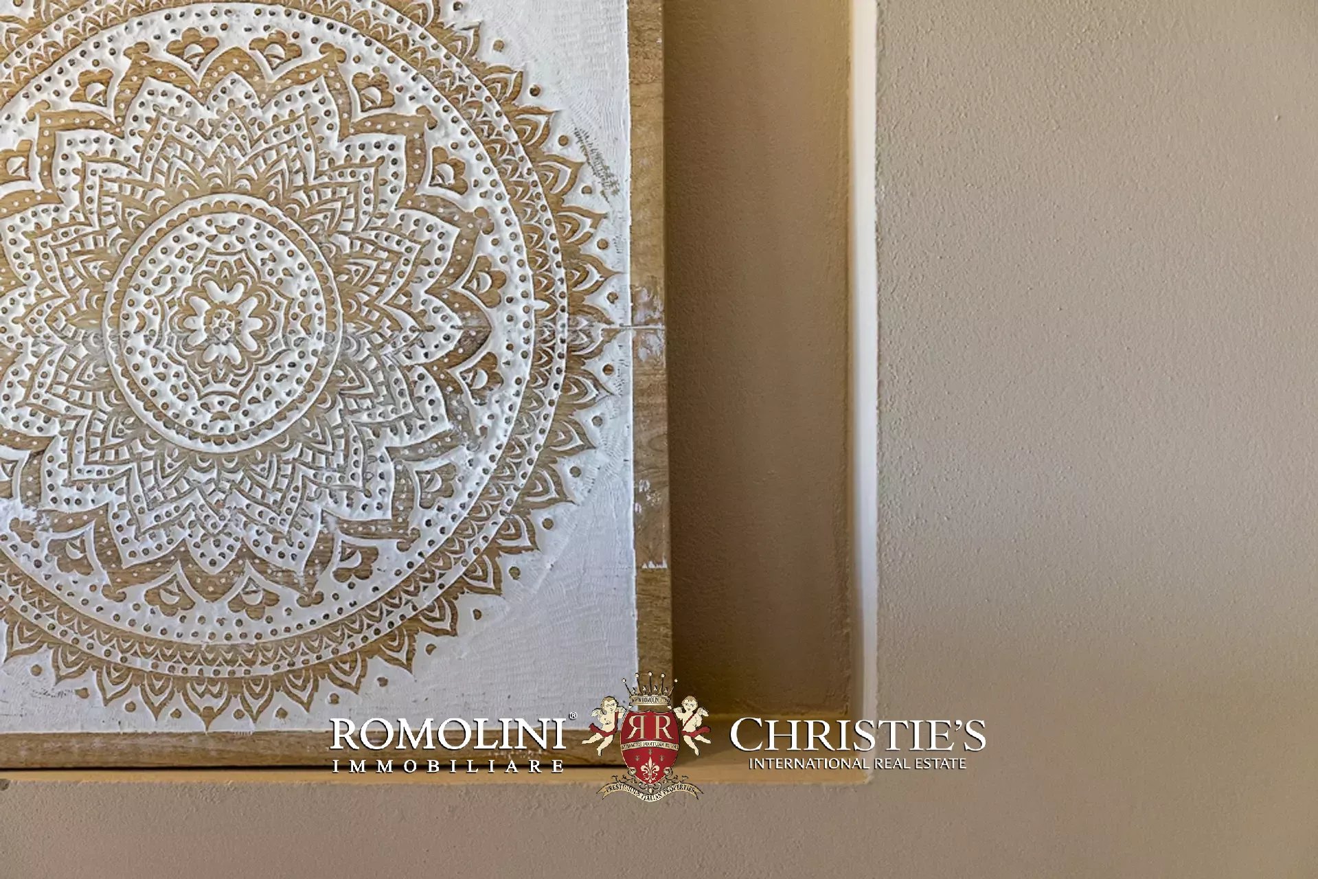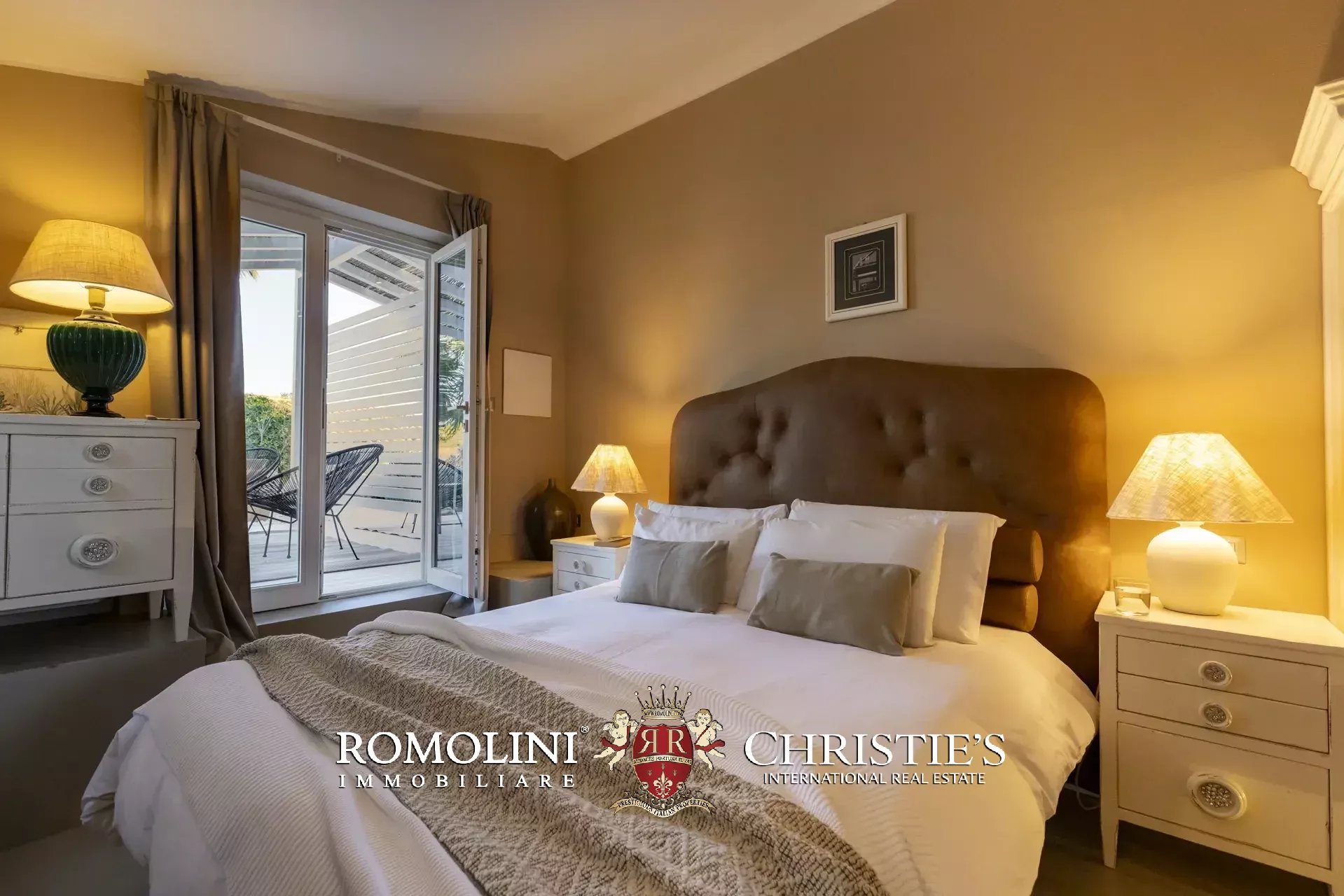 The outdoor spaces, the real strength of the property, extend over approximately 2,700 m² of Mediterranean garden, cared for and rich in aromatic essences, lawns, and seasonal flowering. From the automatic gate, access a large terraced area with covered and uncovered parking spaces, from which wooden walkways, stone pathways, and pebble terraces connect the various housing units. Each room has its own whitewashed wooden private terrace, furnished with shaded areas and spaces dedicated to relaxation.