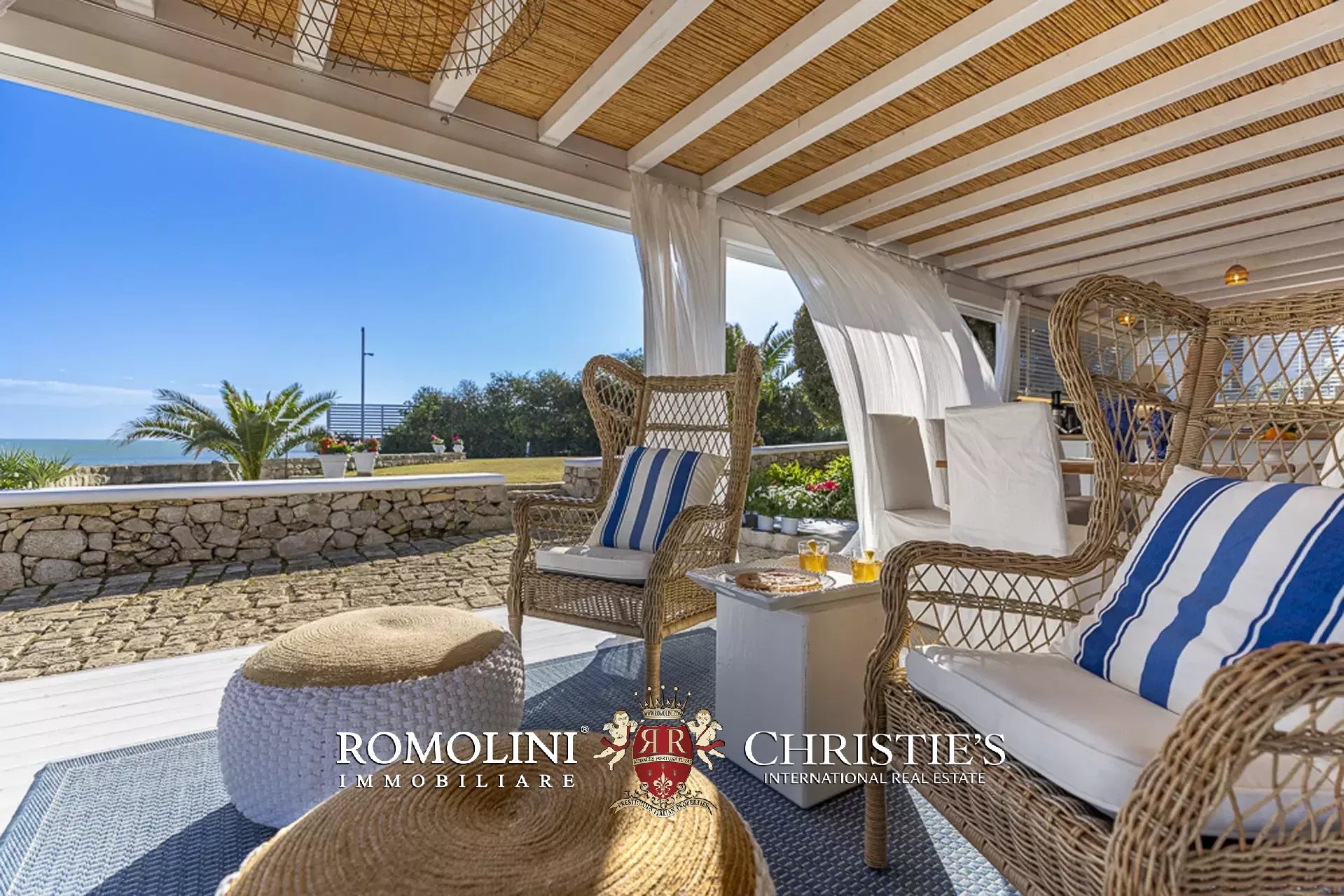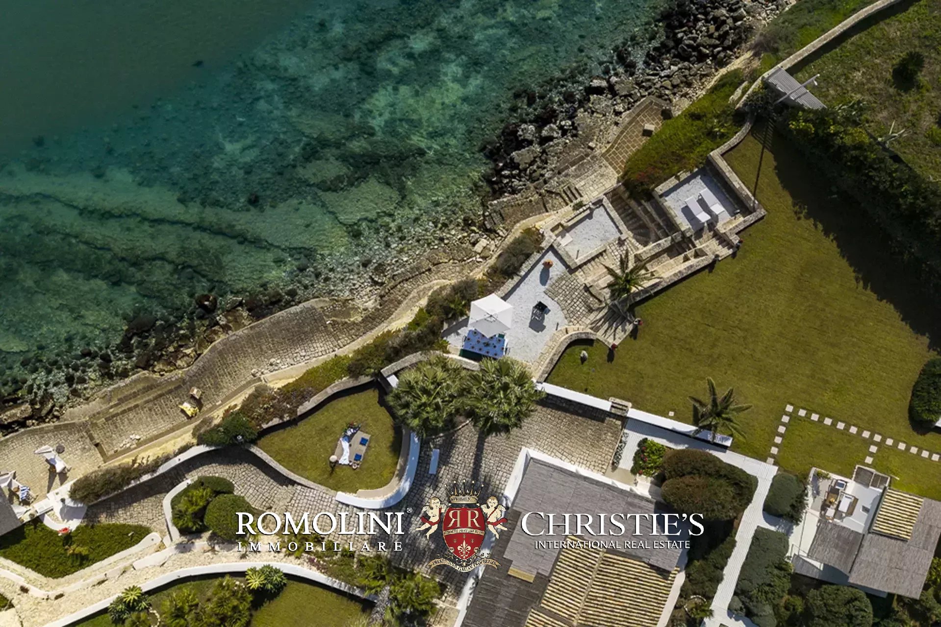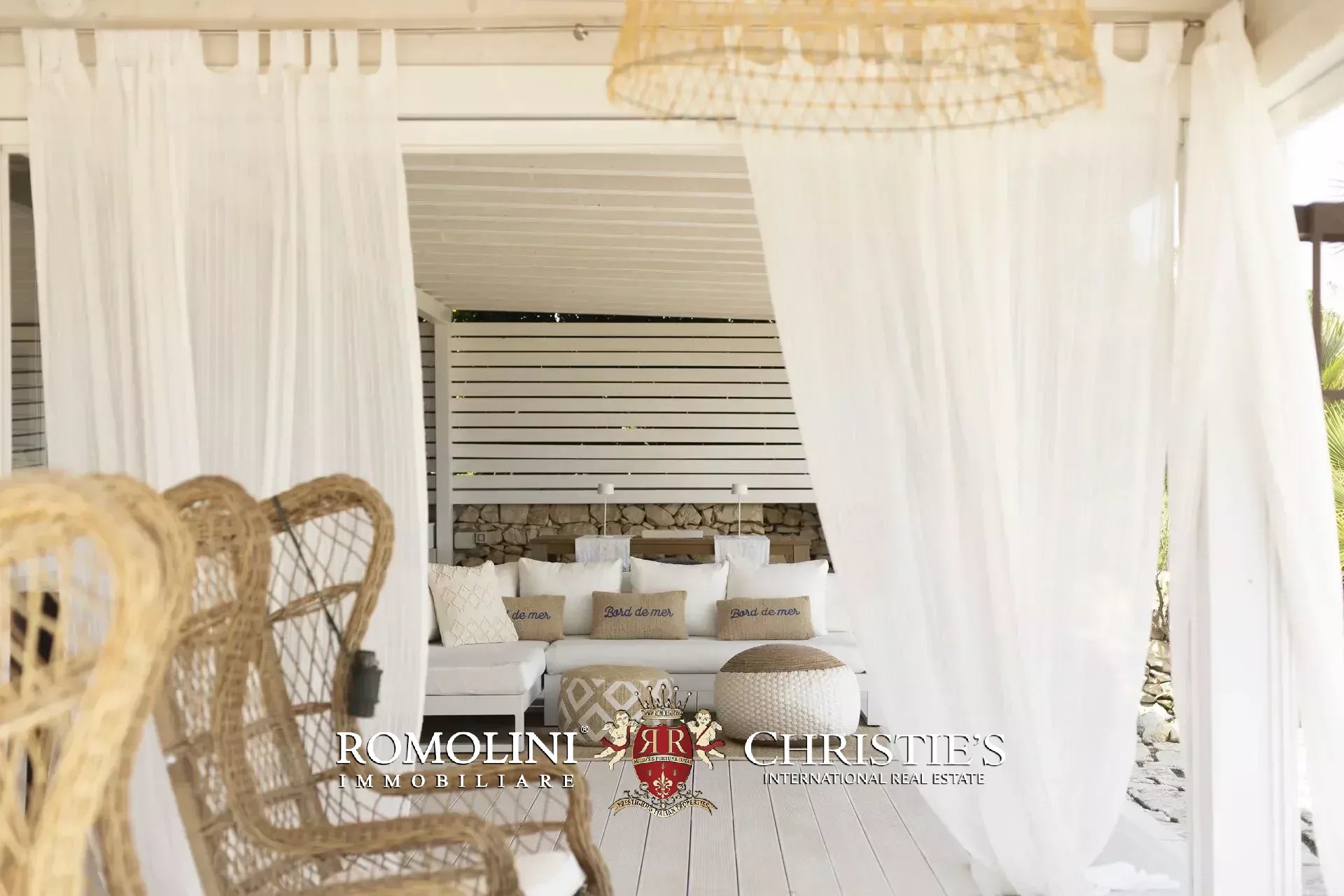The heart of the property is represented by the large panoramic terrace overlooking the sea, designed as a natural extension of the indoor spaces and ideal for fully enjoying outdoor socializing, among lunches, moments of relaxation, and views of extraordinary beauty. From here, a short staircase leads to a stone platform directly on the sea, equipped with a shaded pergola, sun loungers, and an outdoor shower, from which it is possible to comfortably access the crystal-clear waters. There are also additional outdoor showers serving the green areas and the descent to the sea.