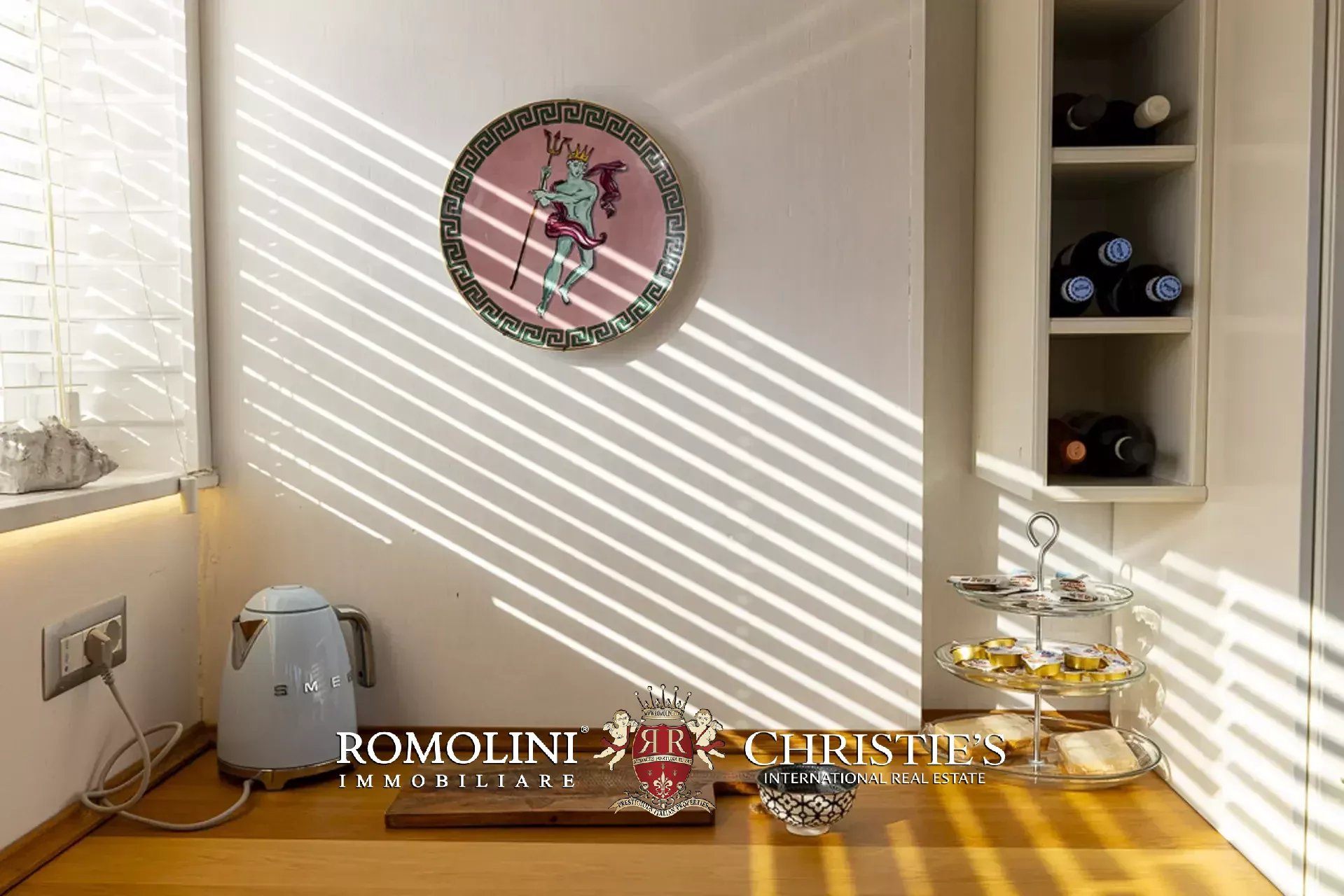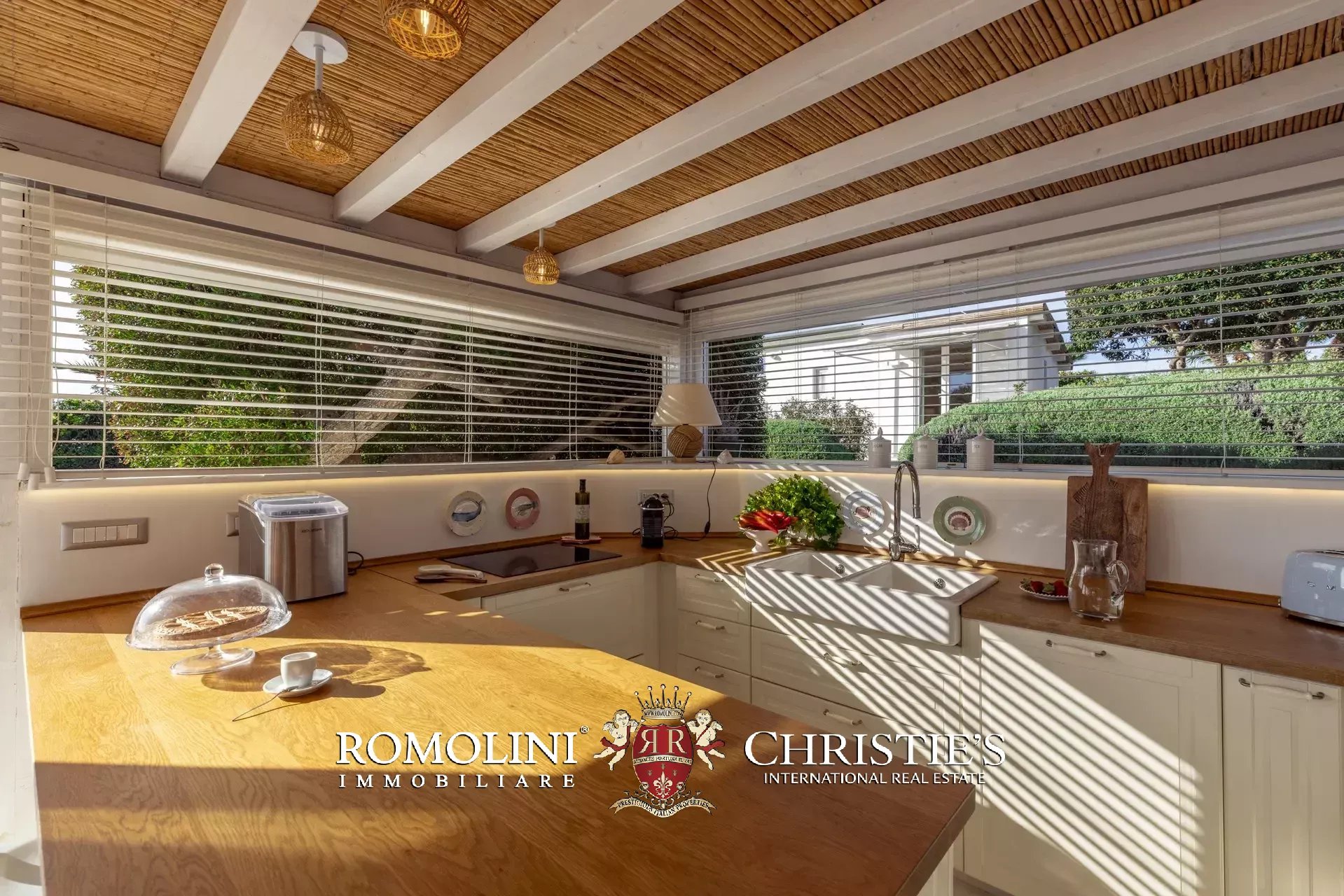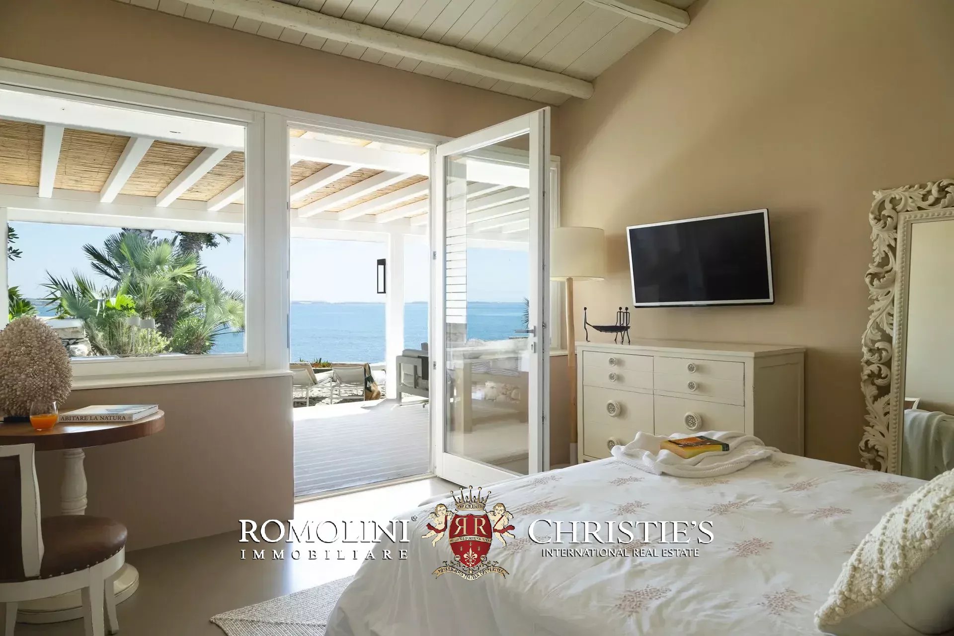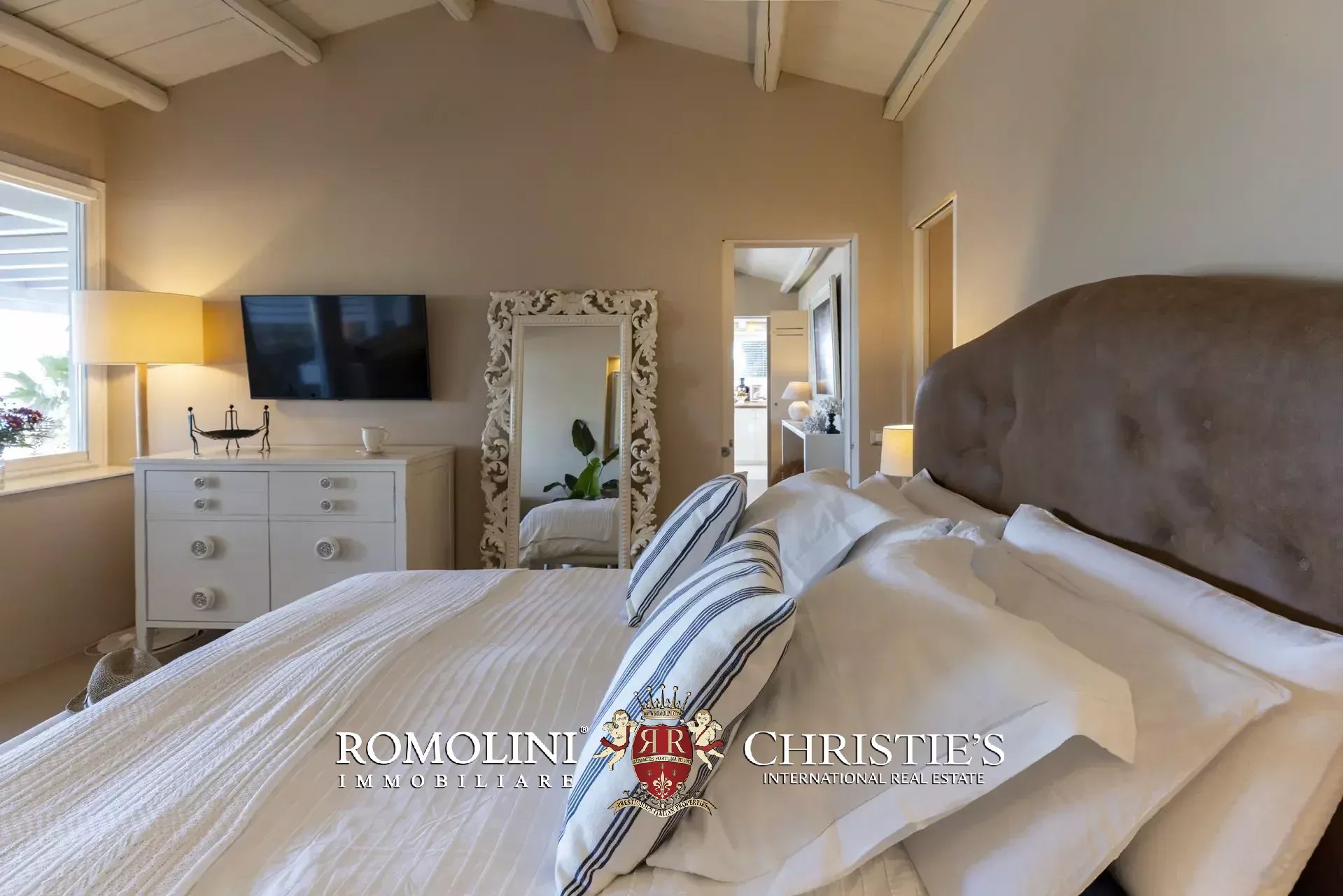 The heart of the property is represented by the large panoramic terrace overlooking the sea, designed as a natural extension of the indoor spaces and ideal for fully enjoying outdoor socializing, among lunches, moments of relaxation, and views of extraordinary beauty. From here, a short staircase leads to a stone platform directly on the sea, equipped with a shaded pergola, sun loungers, and an outdoor shower, from which it is possible to comfortably access the crystal-clear waters. There are also additional outdoor showers serving the green areas and the descent to the sea.
