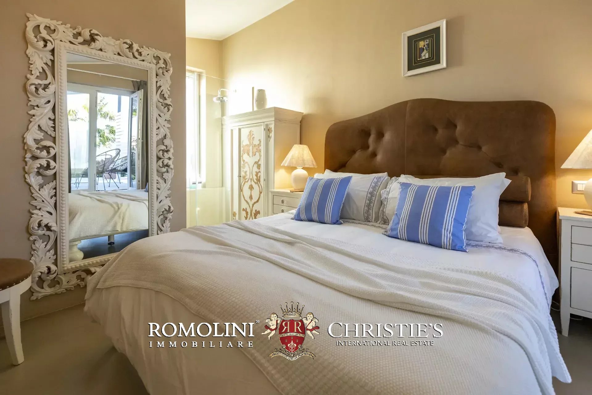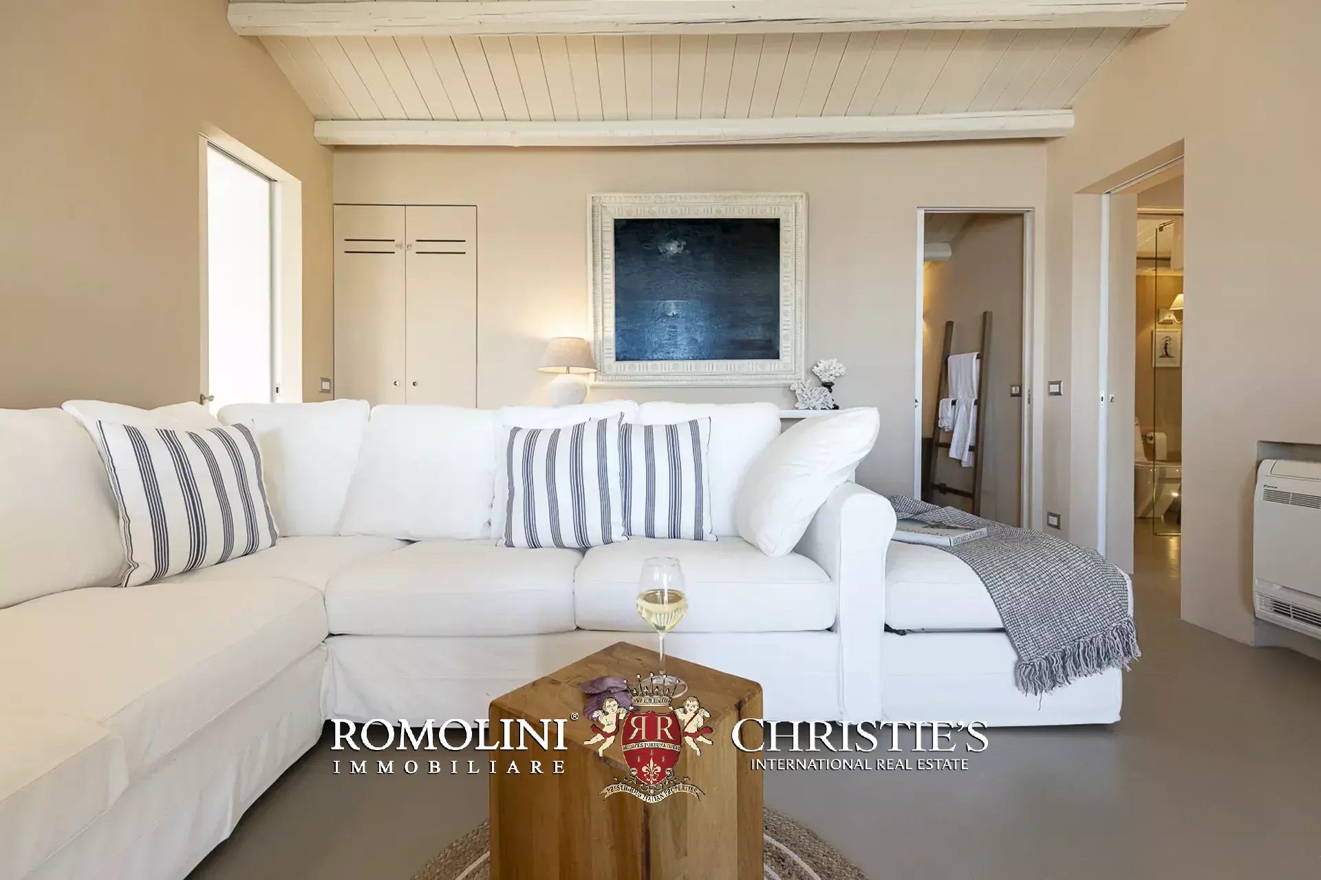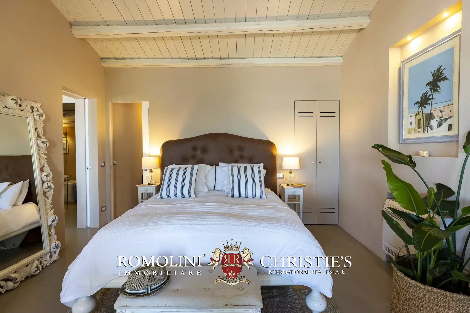 The guesthouses (110 m² – 1,184 ft²) host additional rooms, all designed to ensure independence and privacy. In particular, one of the annexes houses two double bedrooms, each with autonomous access, en-suite bathroom, and shaded private terrace; another outbuilding hosts a double bedroom with en-suite bathroom and exclusive sea view terrace. Each room has been designed to enhance the direct relationship with the outside, offering panoramic glimpses and reserved spaces for relaxation.