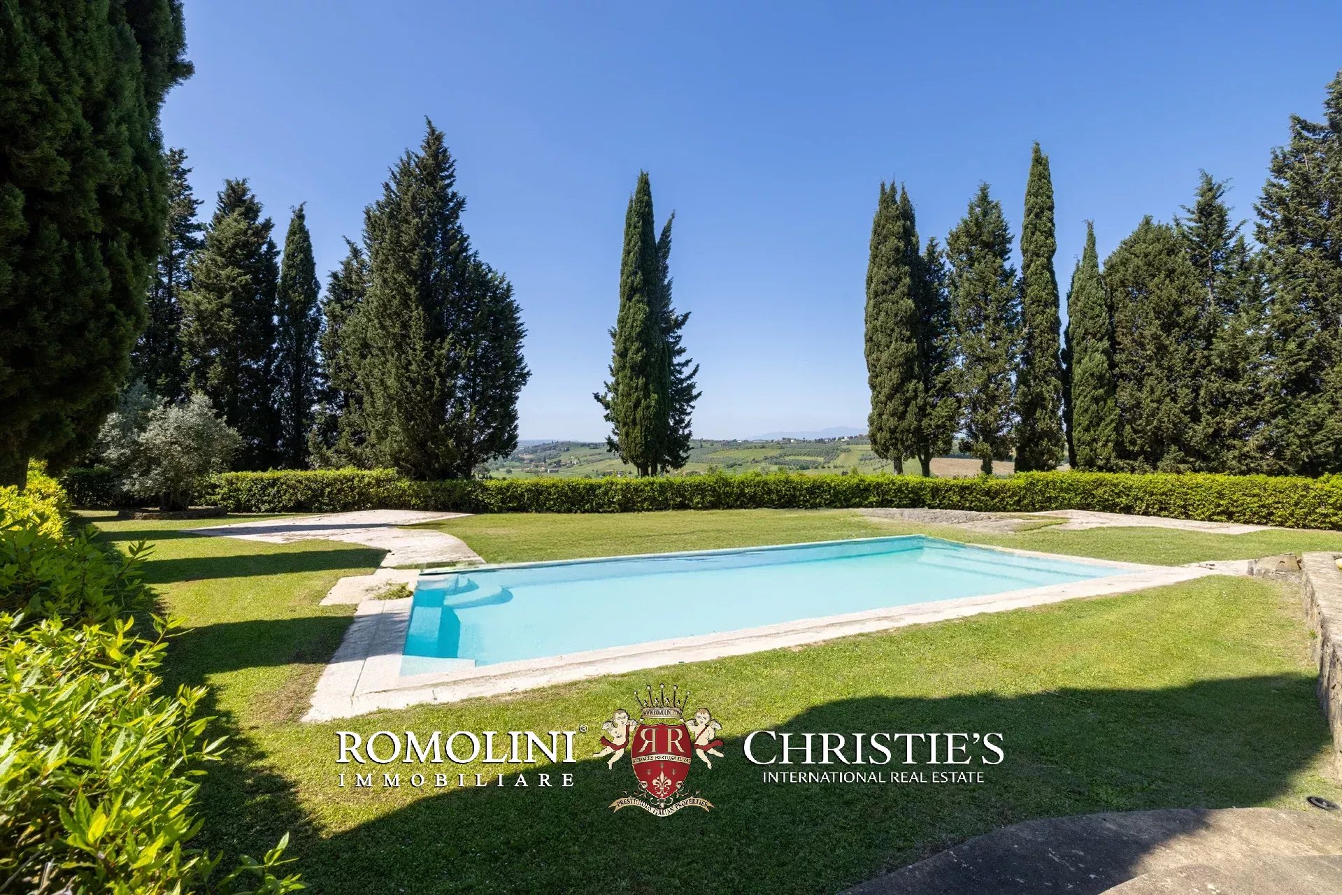 On the hills of Vinci, not far from Florence and Empoli, 36.2-hectare estate with historic villa, wine cellar and vineyards for sale. The property boasts several buildings (totaling more than 3,600 m², partly to be restored) that could be easily adapted to an accommodation business thanks to the presence of several independent apartments. The agricultural land includes an IGT vineyard (15.0 ha) and a large olive grove (7.7 ha).
