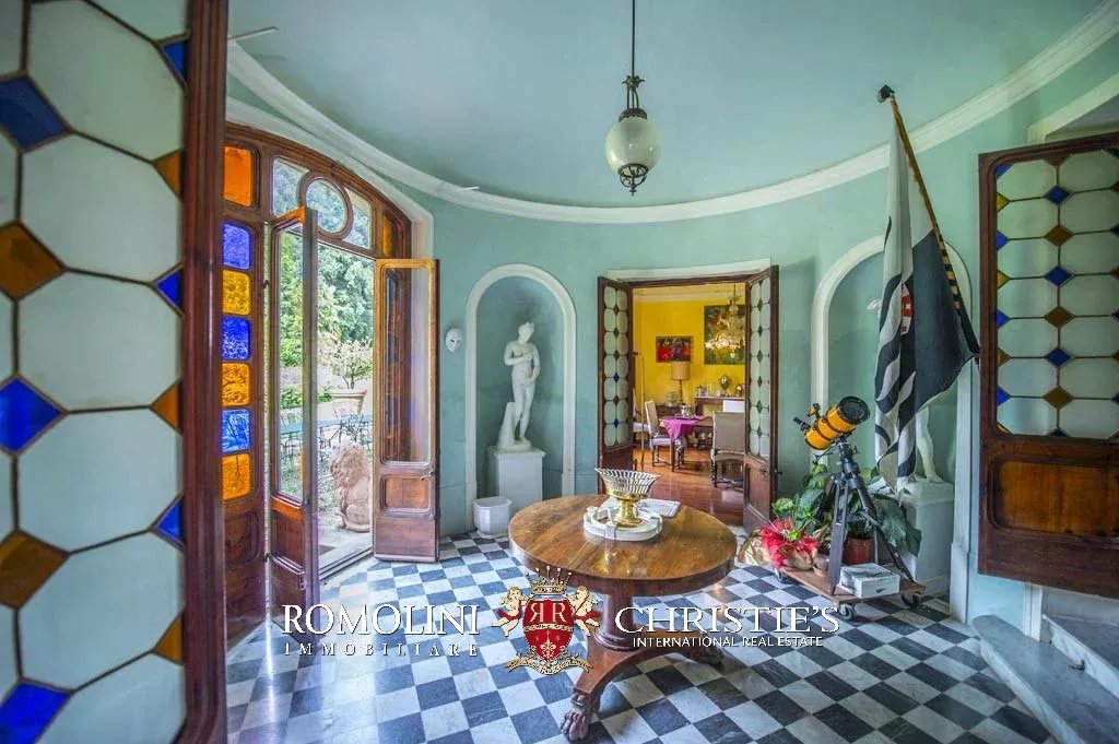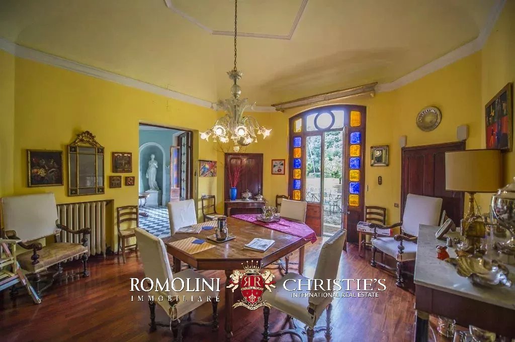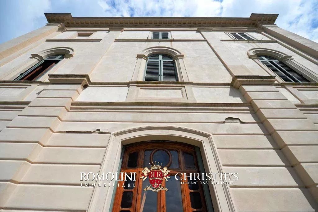 La proprietà è completamente recintata e la villa si accede mediante un sentiero con fiori, panchine e statue. Costruita nella seconda metà del XIX secolo, la villa ha una superficie complessiva di 1.000 mq e si dispone su tre piani con una elegante facciata con balcone.