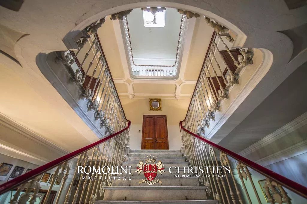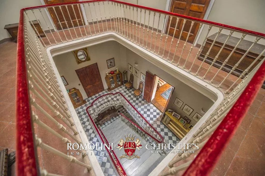 Una grande scalinata conduce al primo piano dove si trovano quattro camere da letto, ciascuna con bagno privato, un salone, due appartamenti, tutti con soggiorno, cucina, camera da letto e bagno.