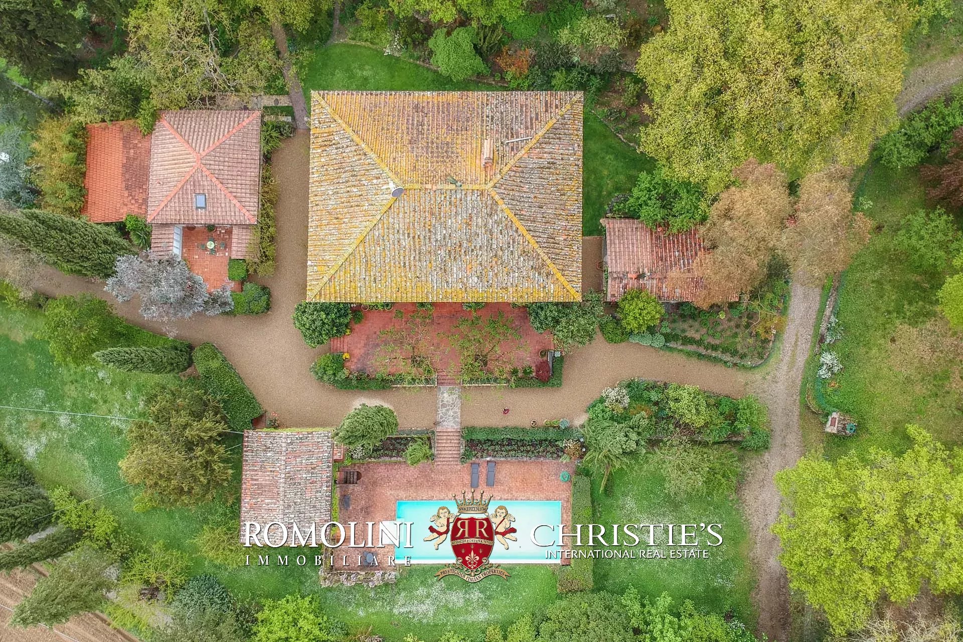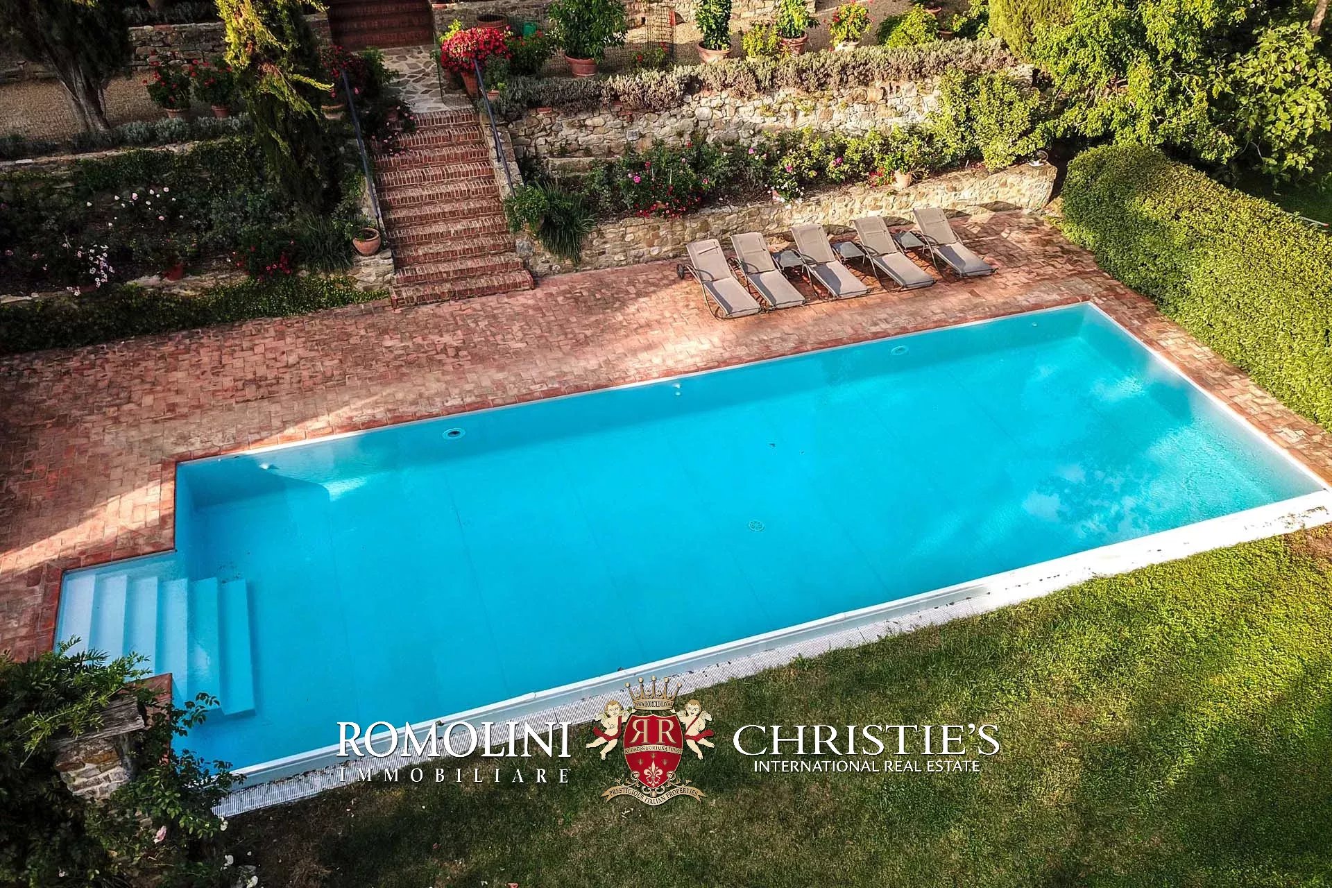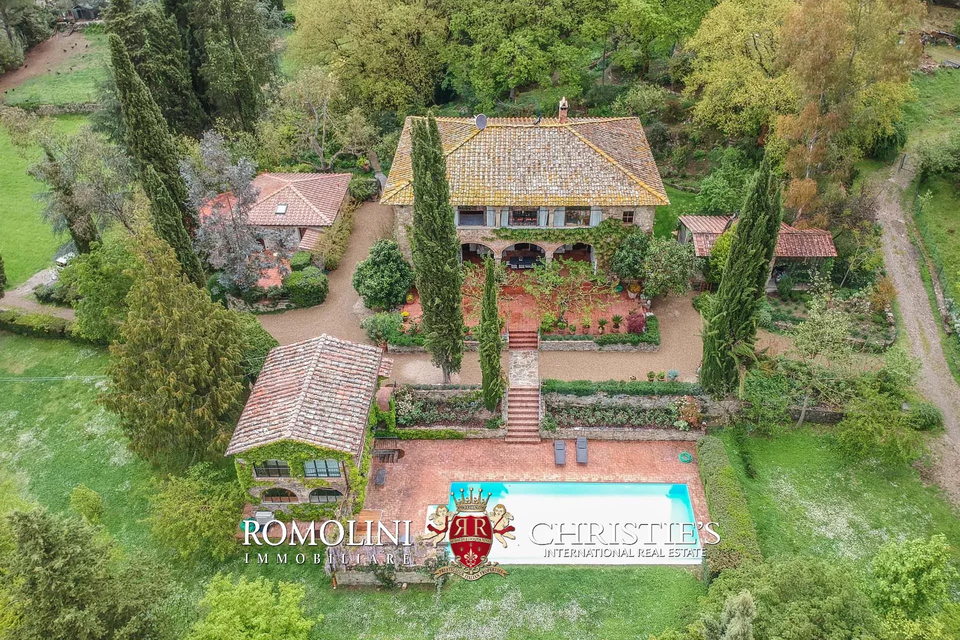 Non lontano da Pergine Valdarno, in posizione collinare e panoramica, troviamo questa tenuta di 15,7 ha con villa del XVII secolo e oliveto (1.550 piante).