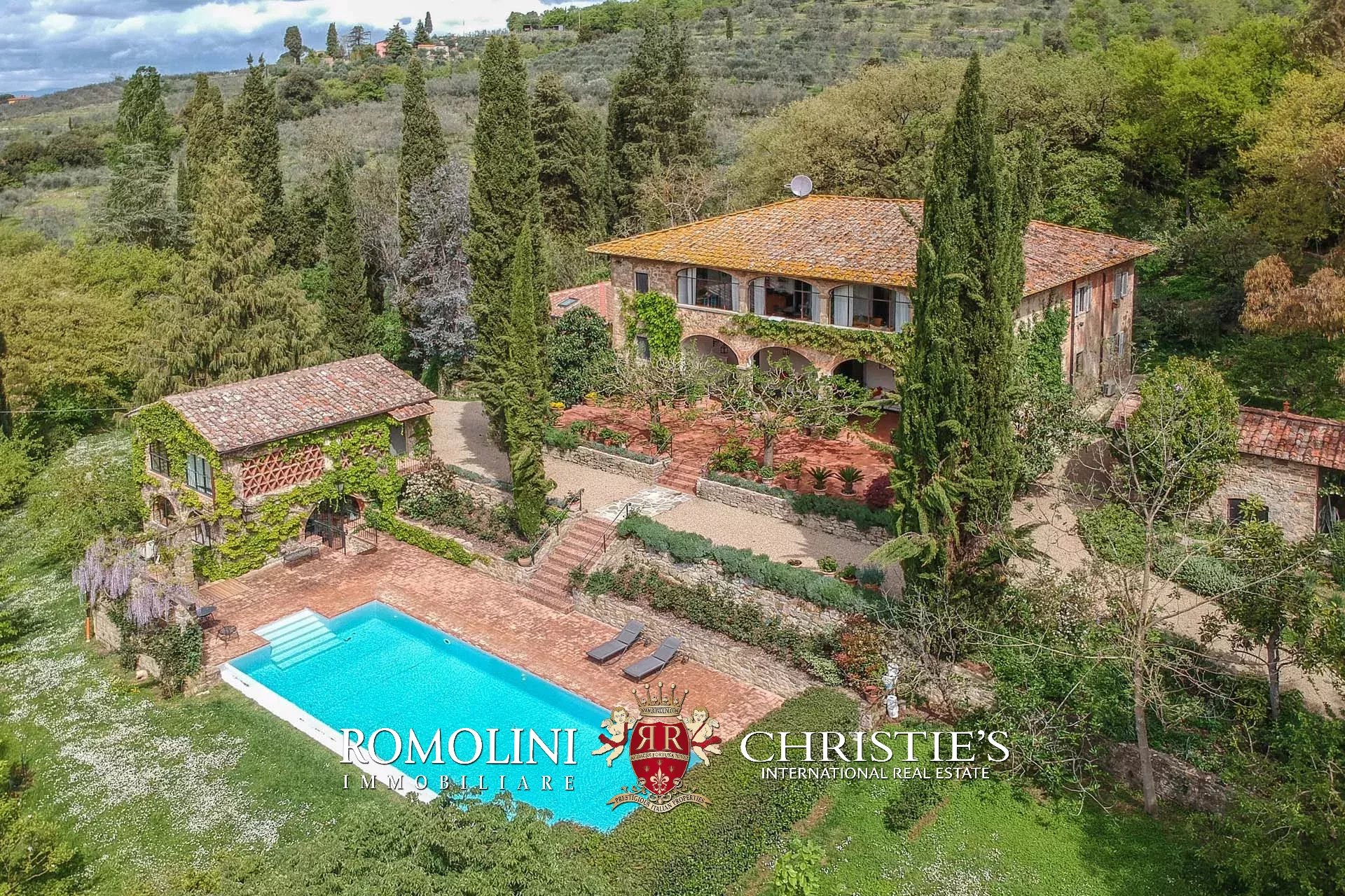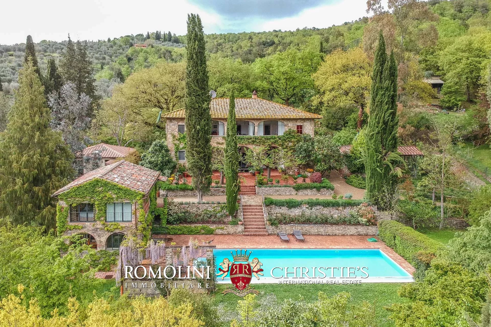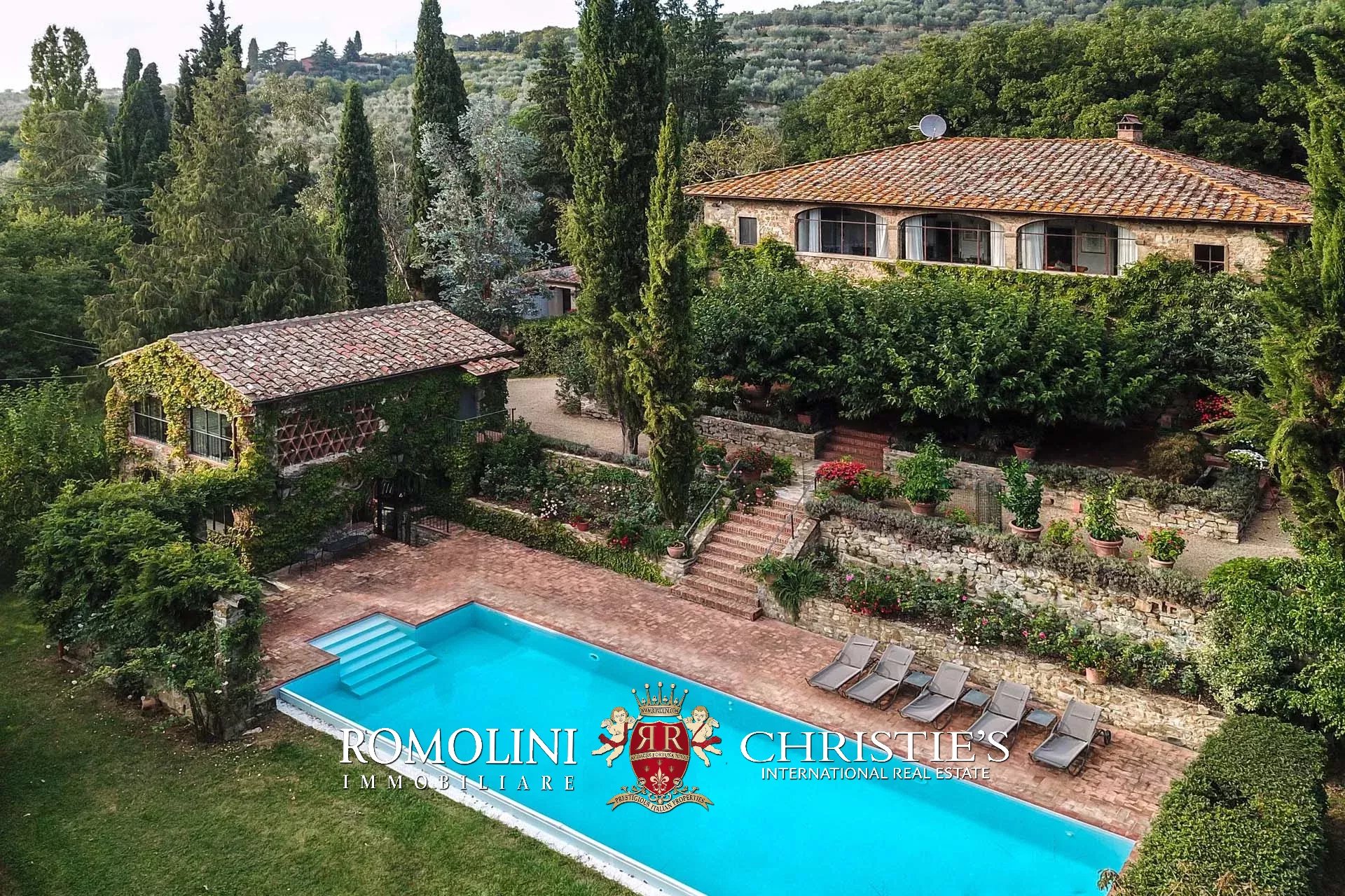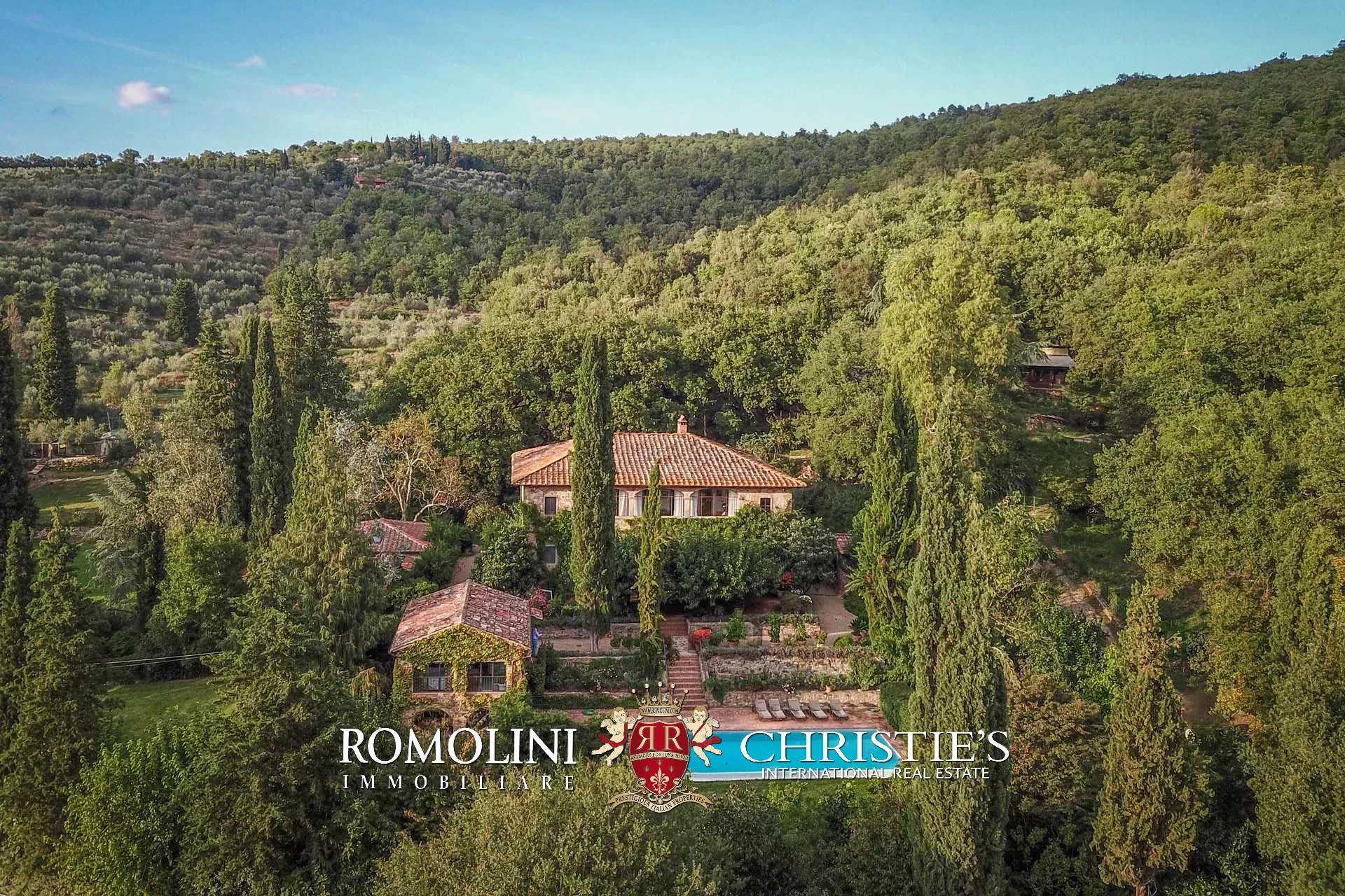 Non lontano da Pergine Valdarno, in posizione collinare e panoramica, troviamo questa tenuta di 15,7 ha con villa del XVII secolo e oliveto (1.550 piante).