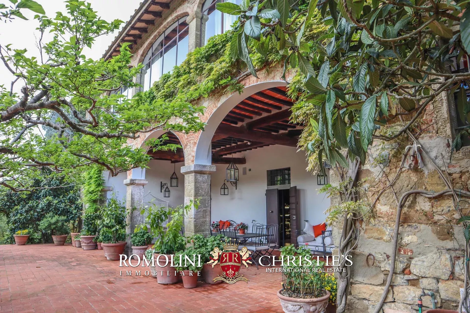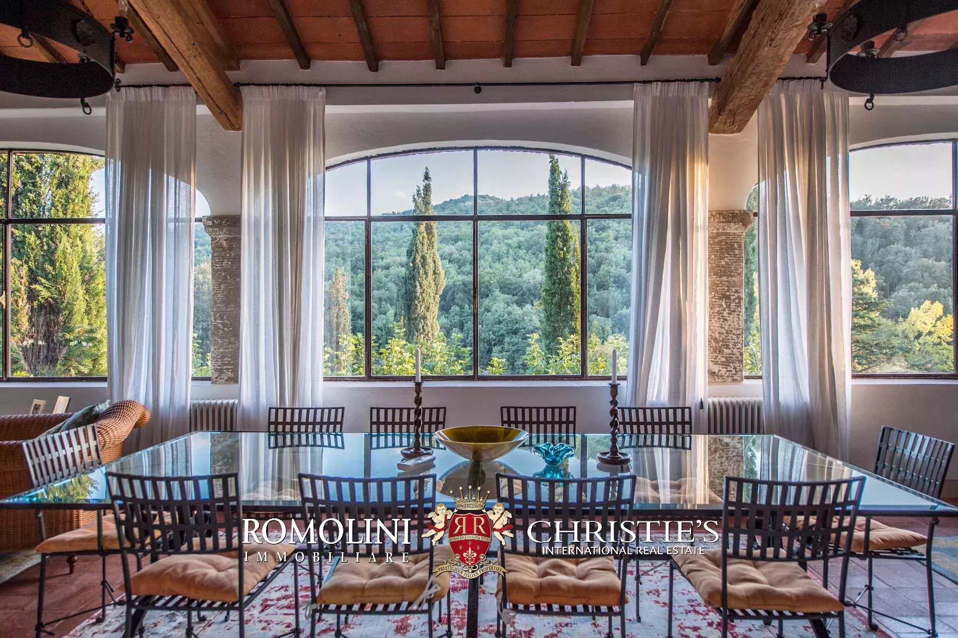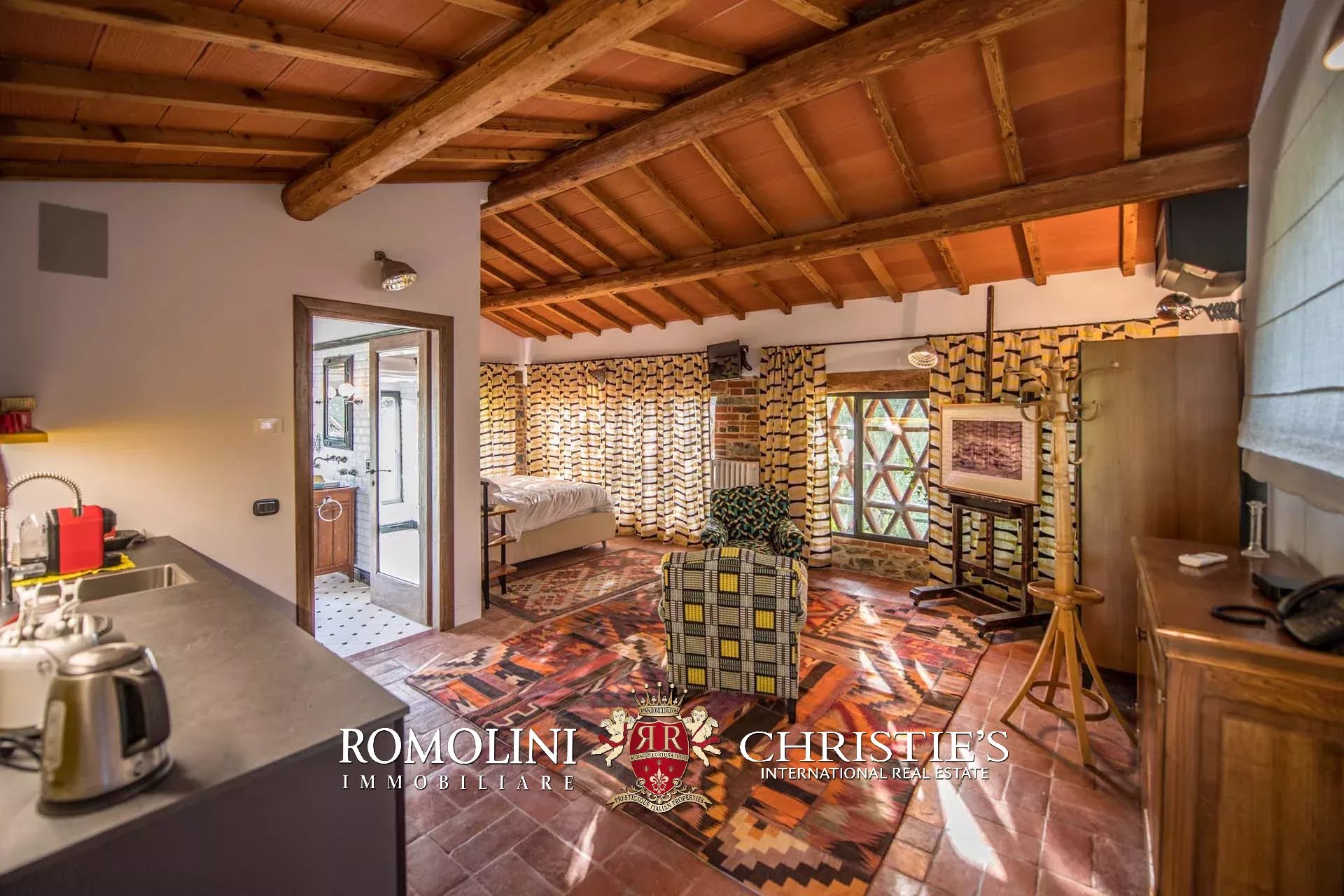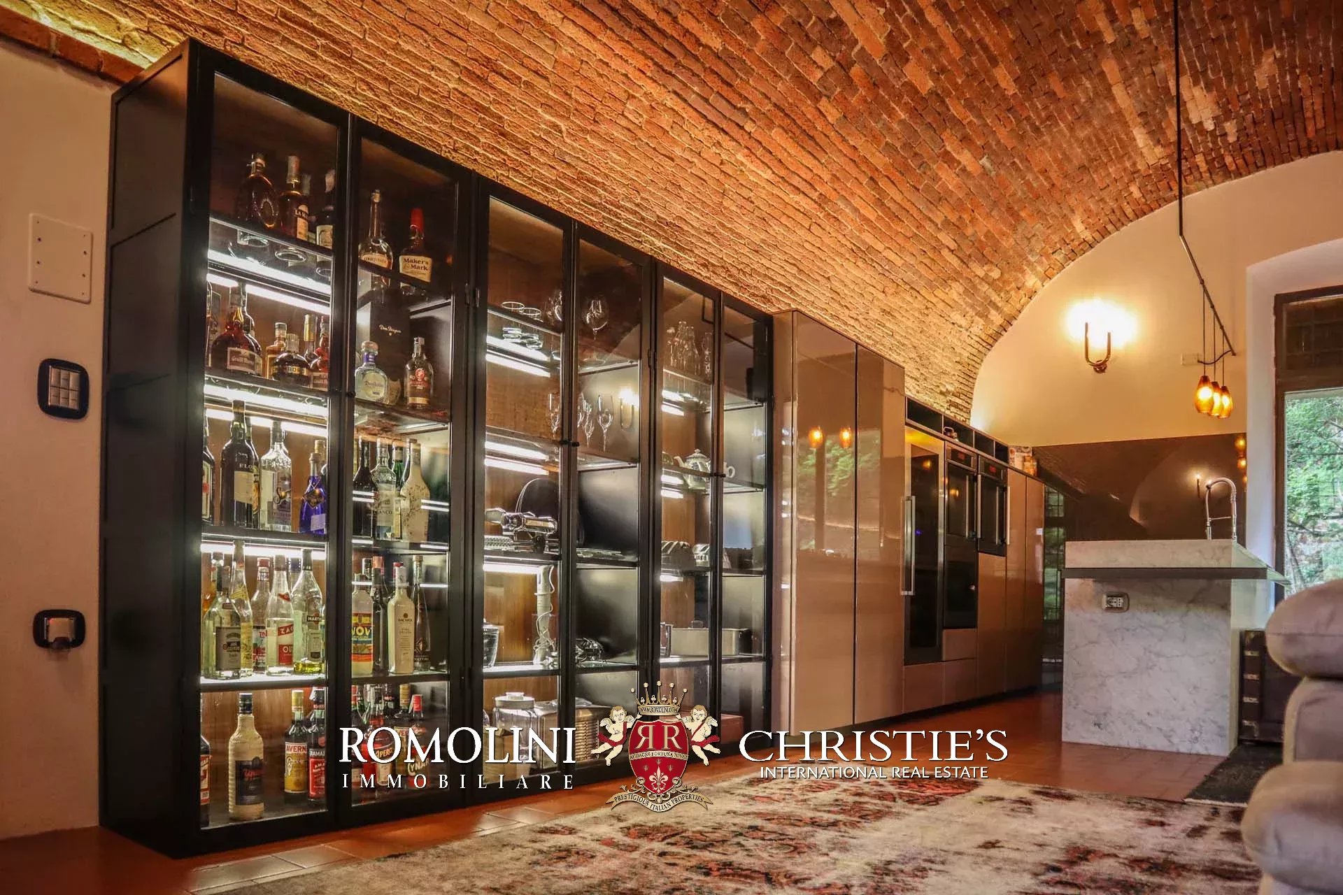 Recentemente ristrutturata dai nuovi proprietari, la villa ha mantenuto il suo aspetto rurale con pavimenti in cotto, travi in legno, archi, un imponente camino in pietra, una scala in pietra, un portico e una loggia chiusa da ampie vetrate che ne permettono l’uso anche in inverno.