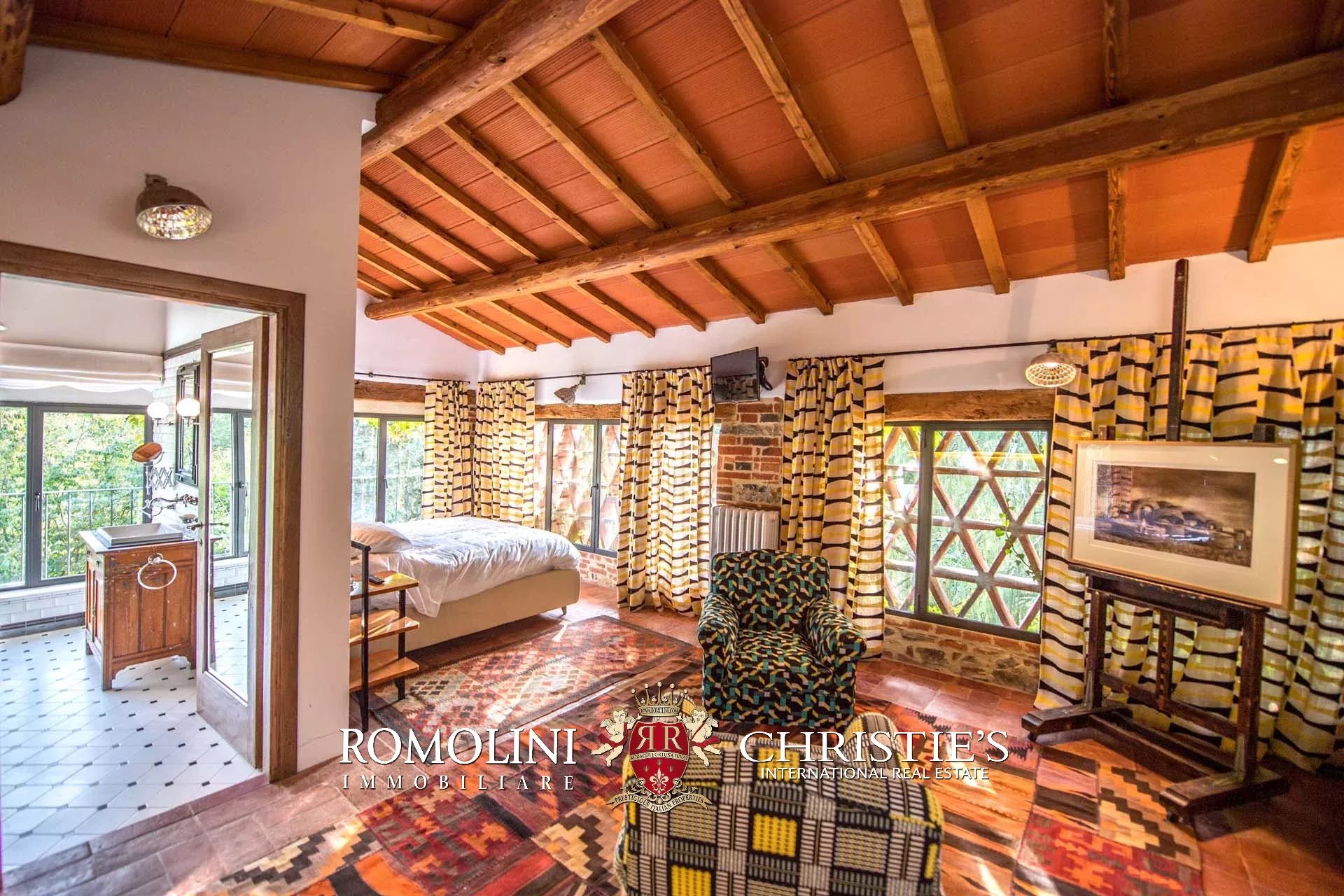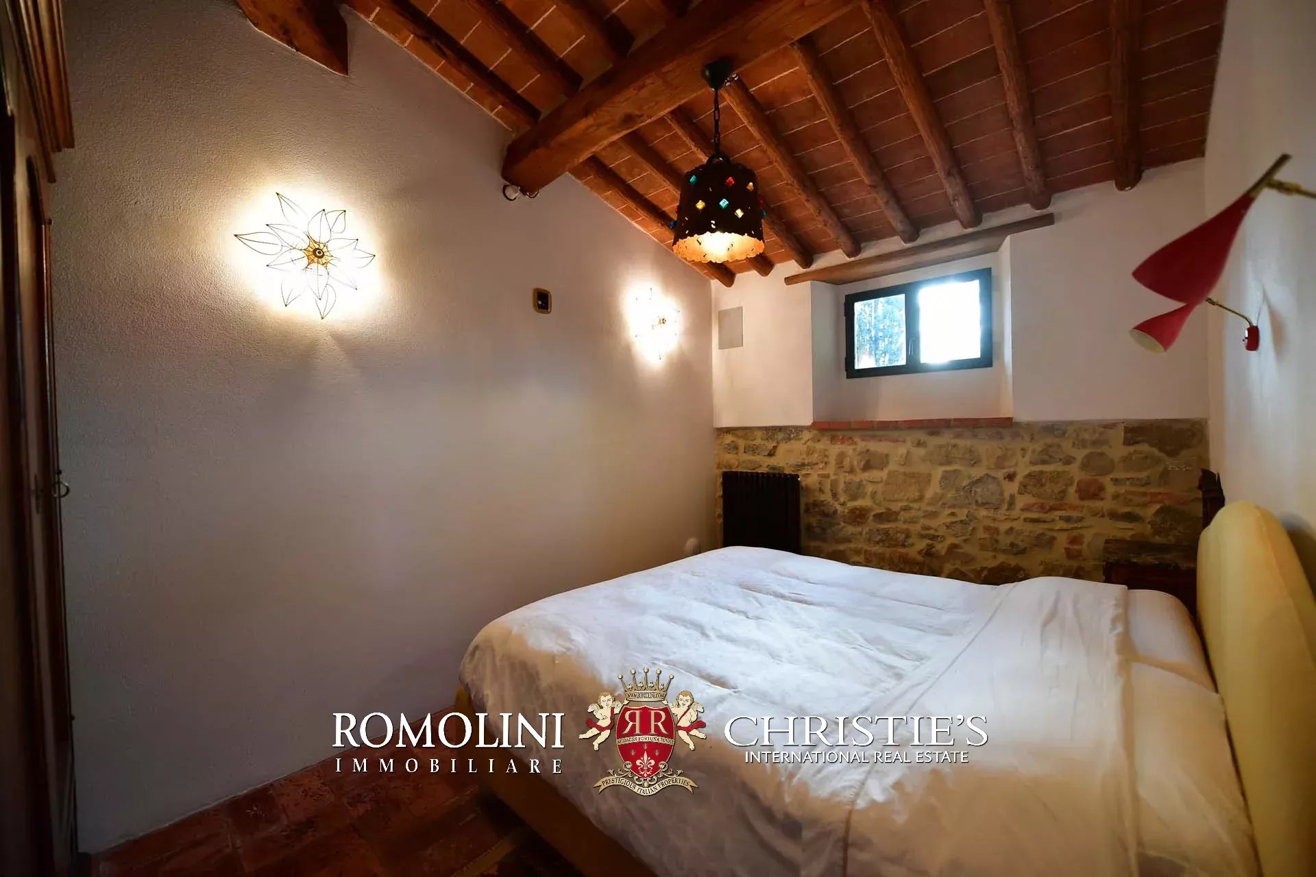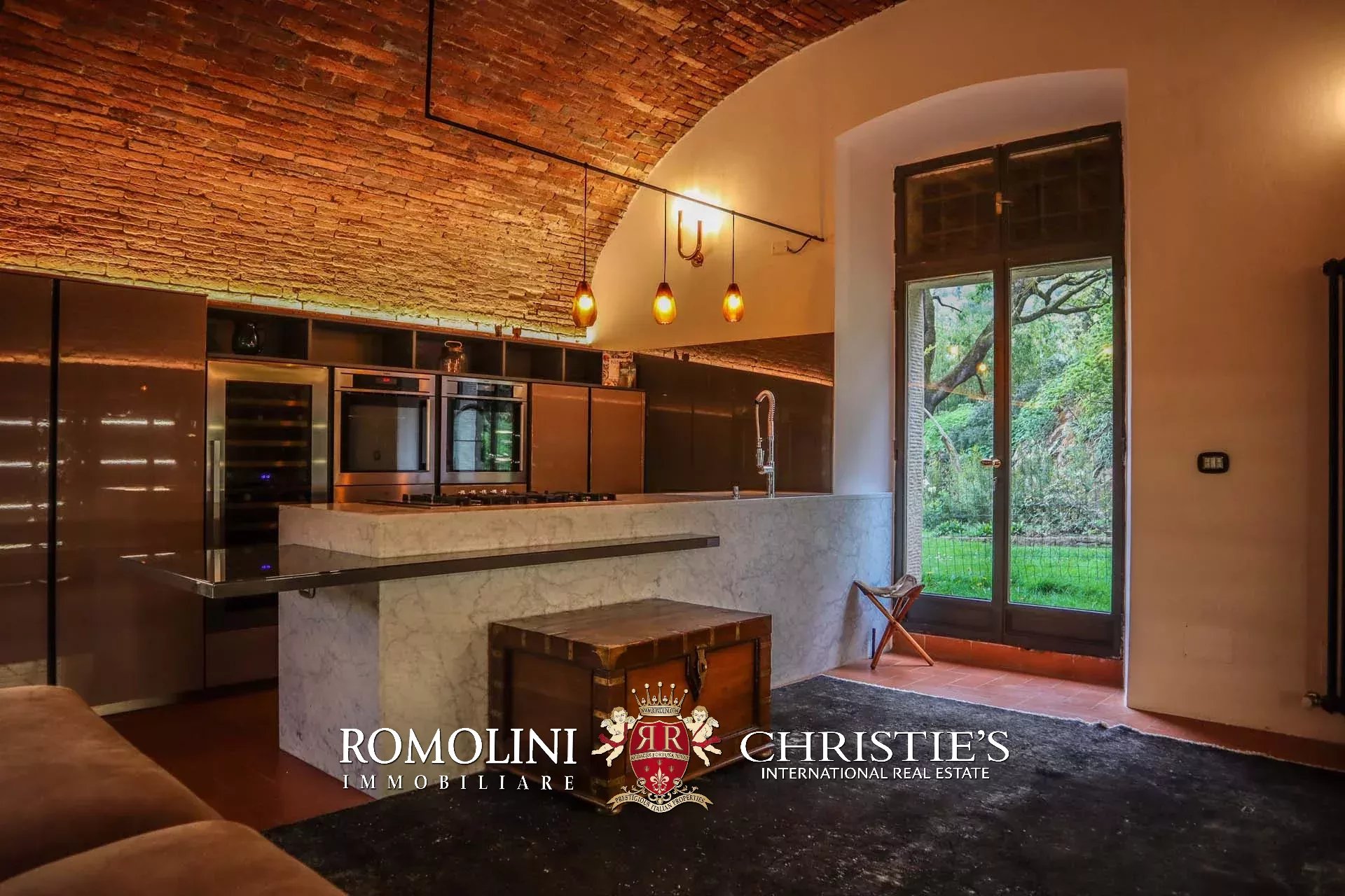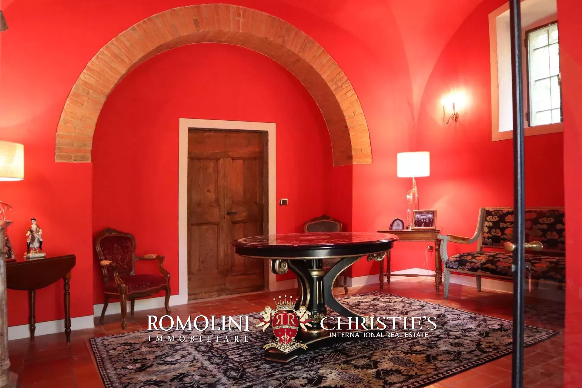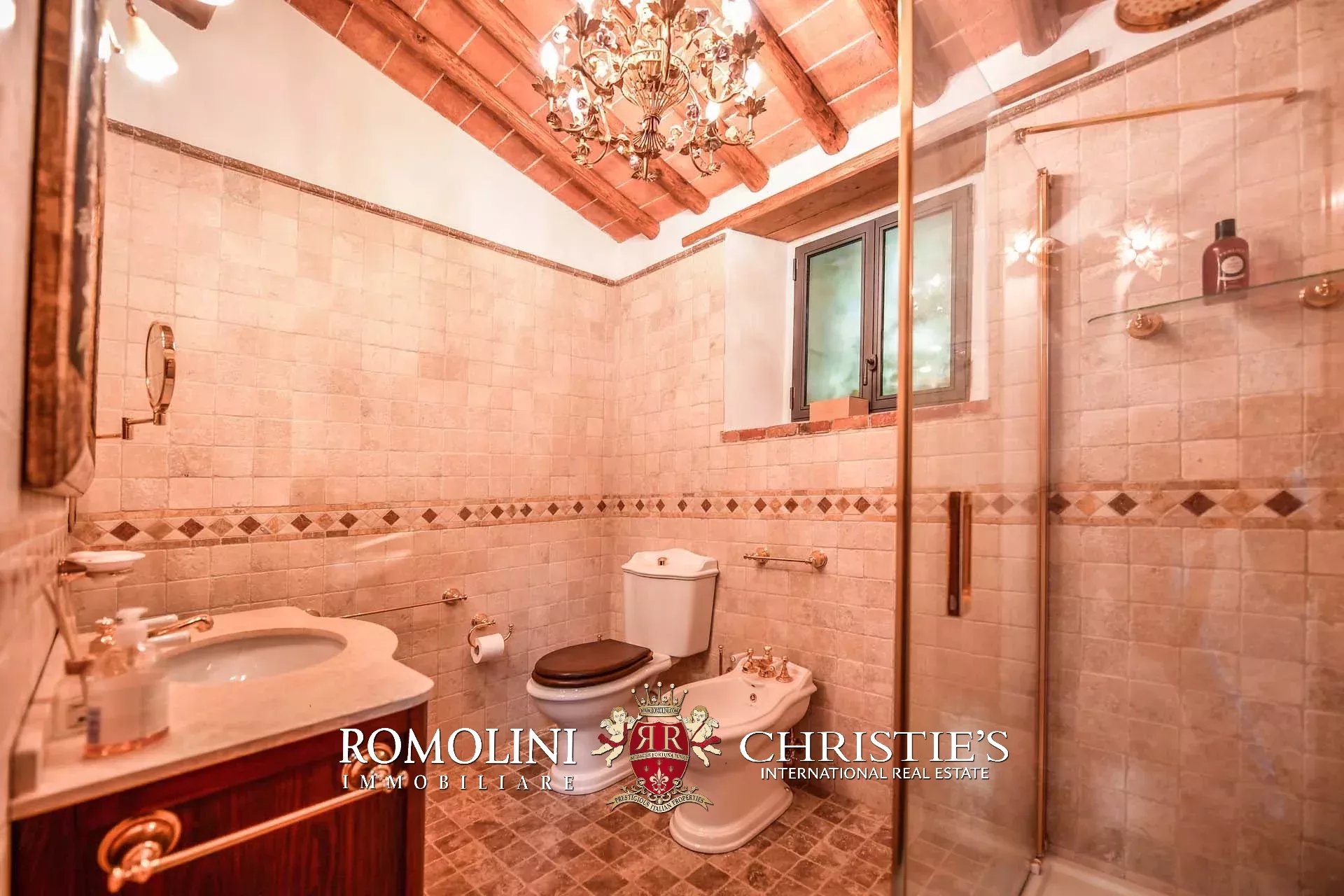 Recentemente ristrutturata dai nuovi proprietari, la villa ha mantenuto il suo aspetto rurale con pavimenti in cotto, travi in legno, archi, un imponente camino in pietra, una scala in pietra, un portico e una loggia chiusa da ampie vetrate che ne permettono l’uso anche in inverno.