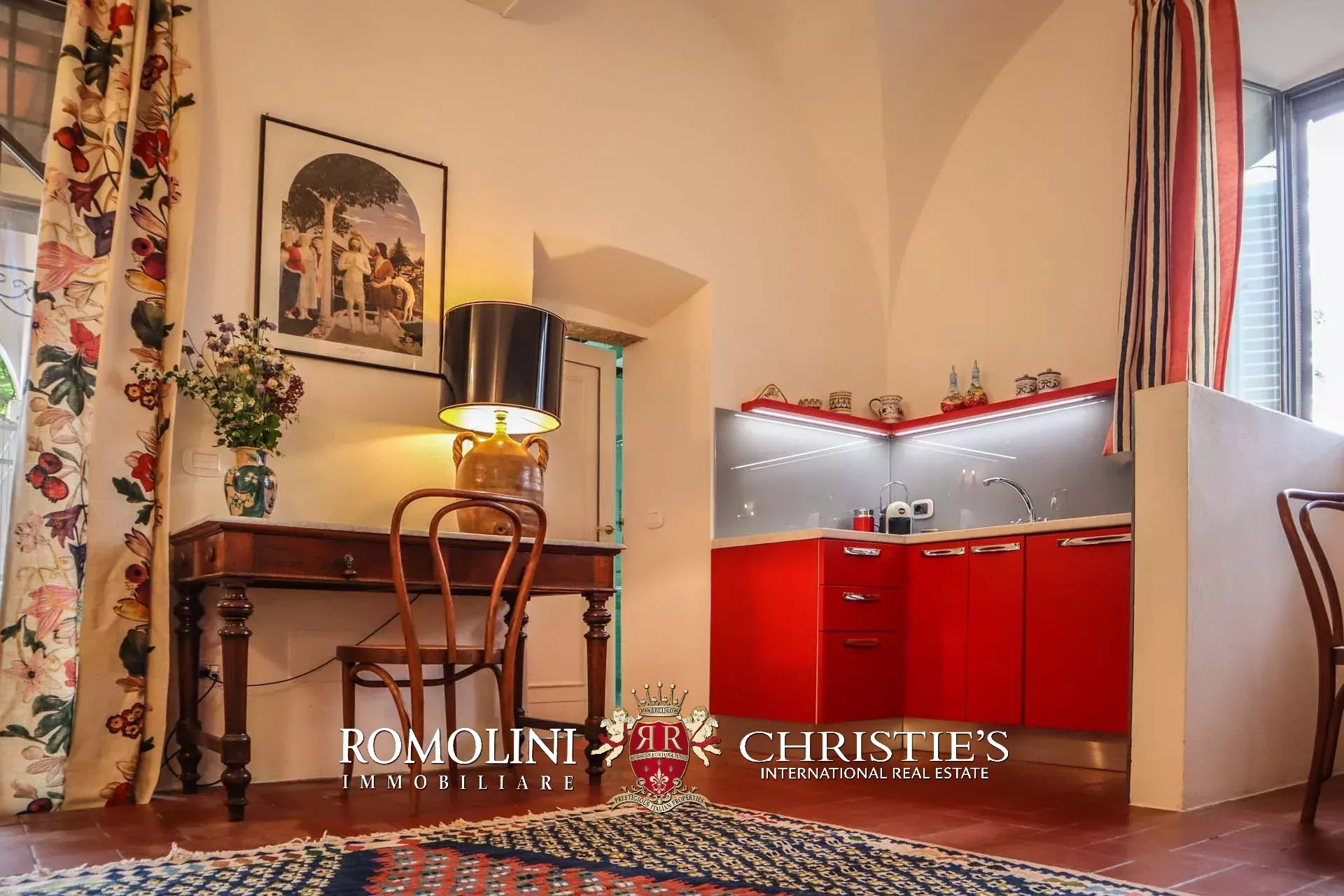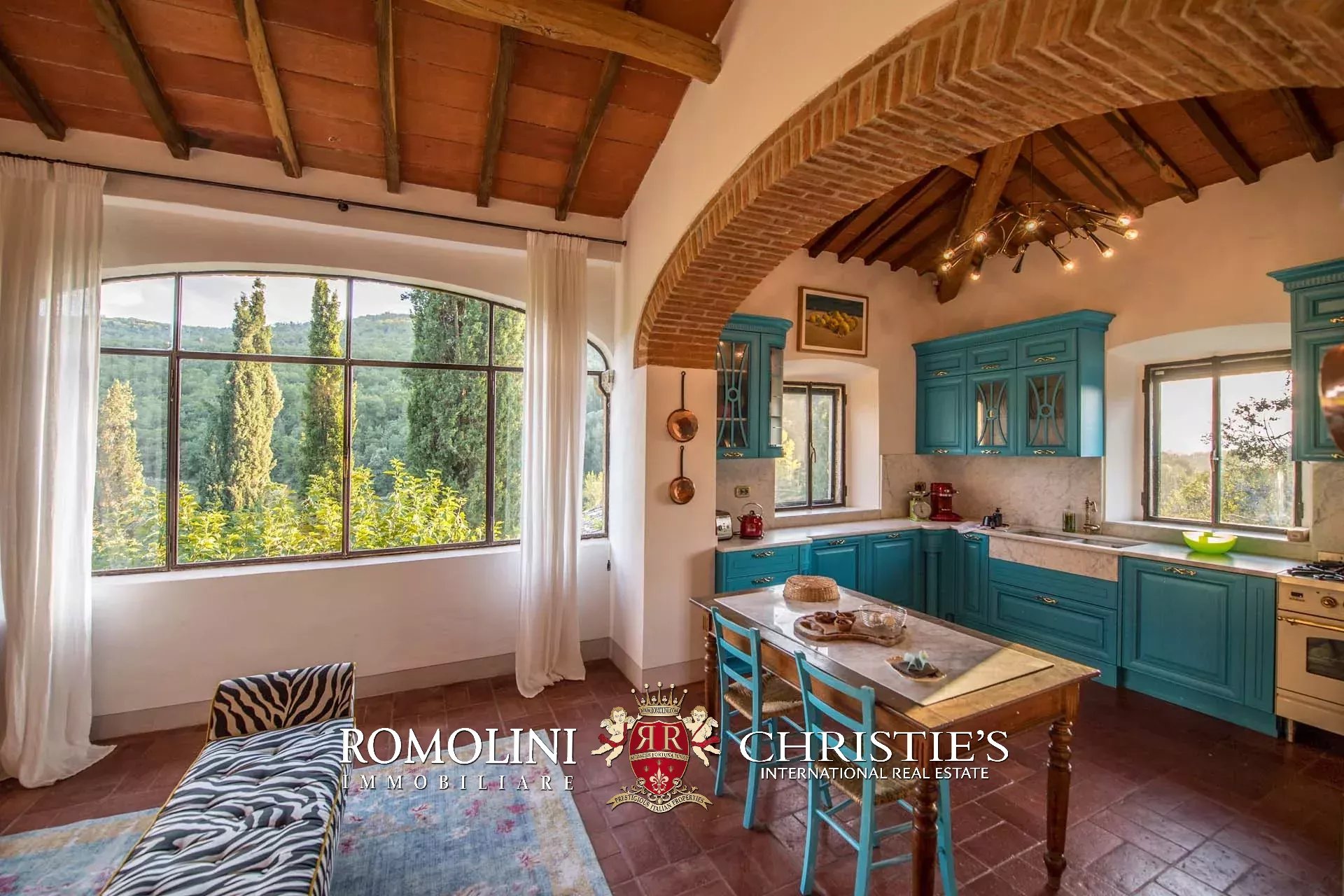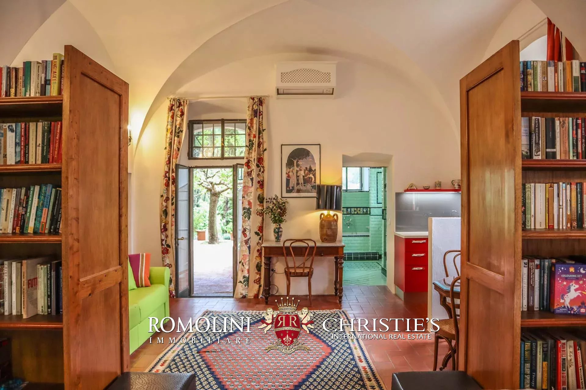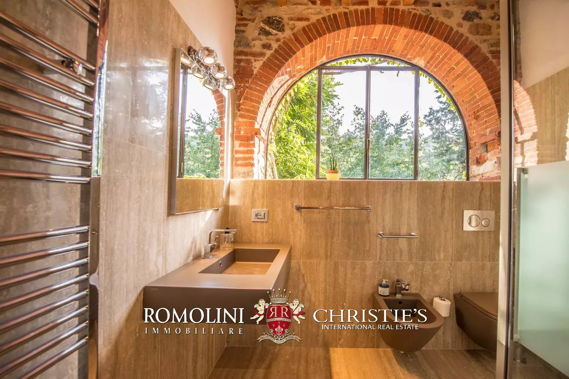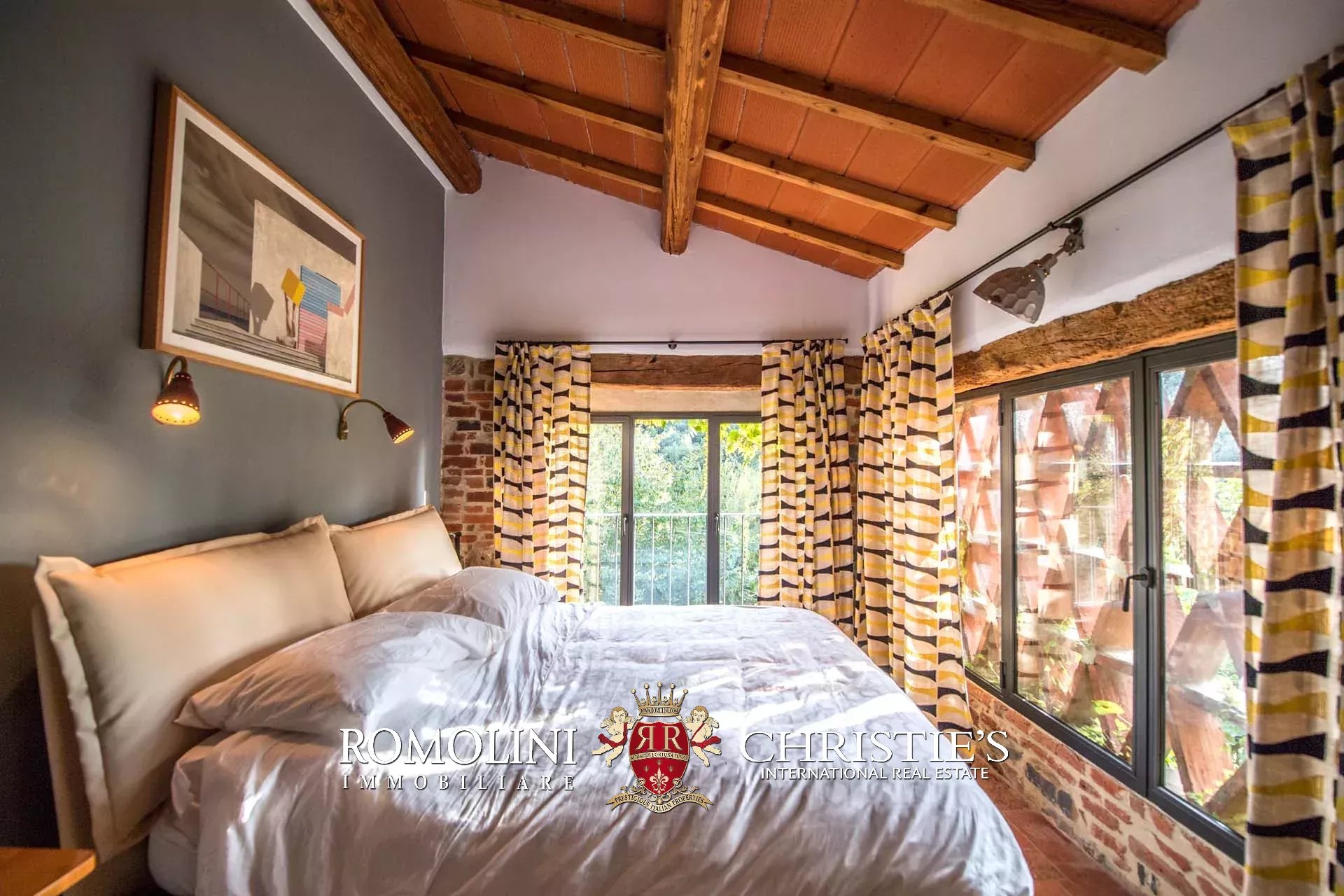 Recentemente ristrutturata dai nuovi proprietari, la villa ha mantenuto il suo aspetto rurale con pavimenti in cotto, travi in legno, archi, un imponente camino in pietra, una scala in pietra, un portico e una loggia chiusa da ampie vetrate che ne permettono l’uso anche in inverno.