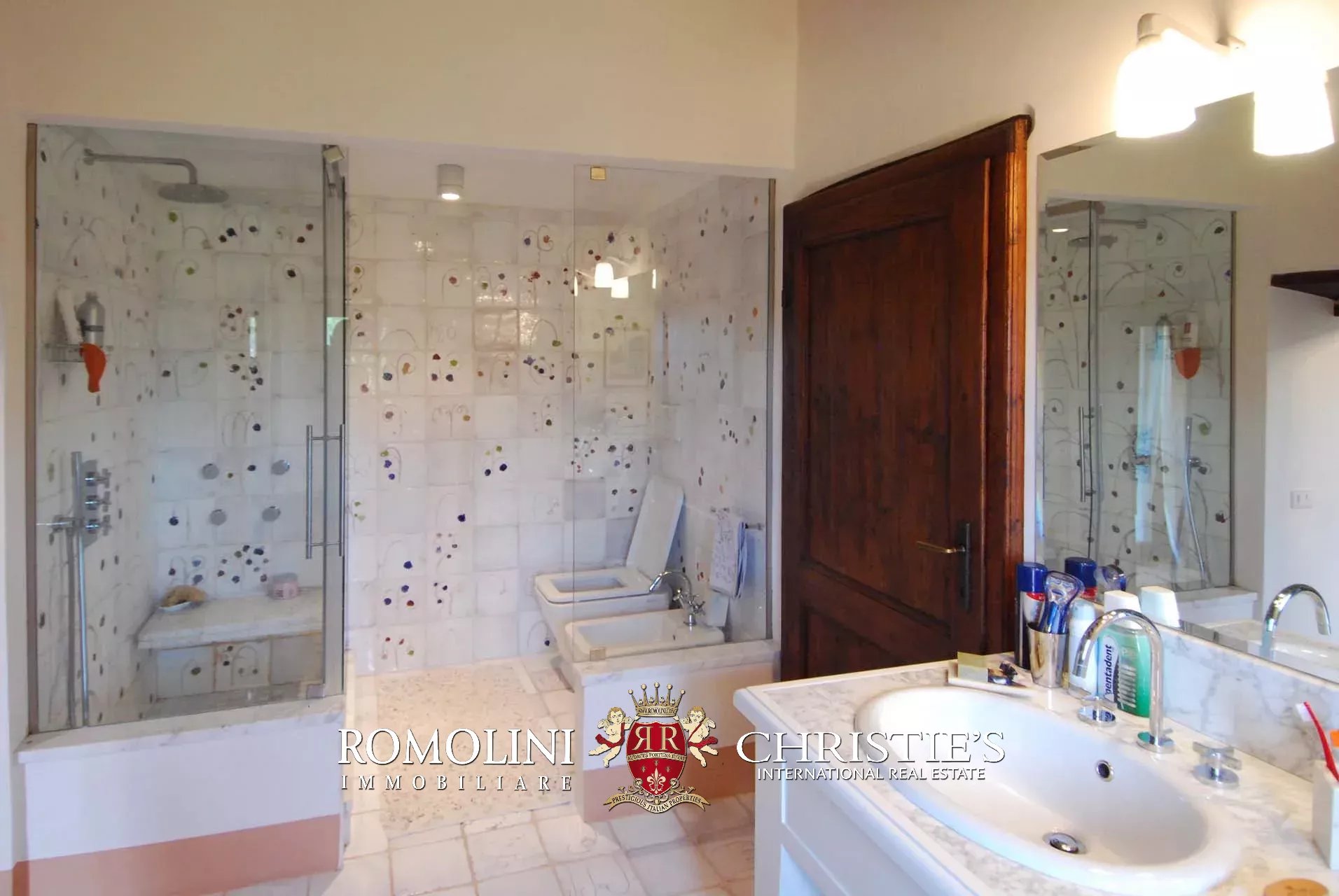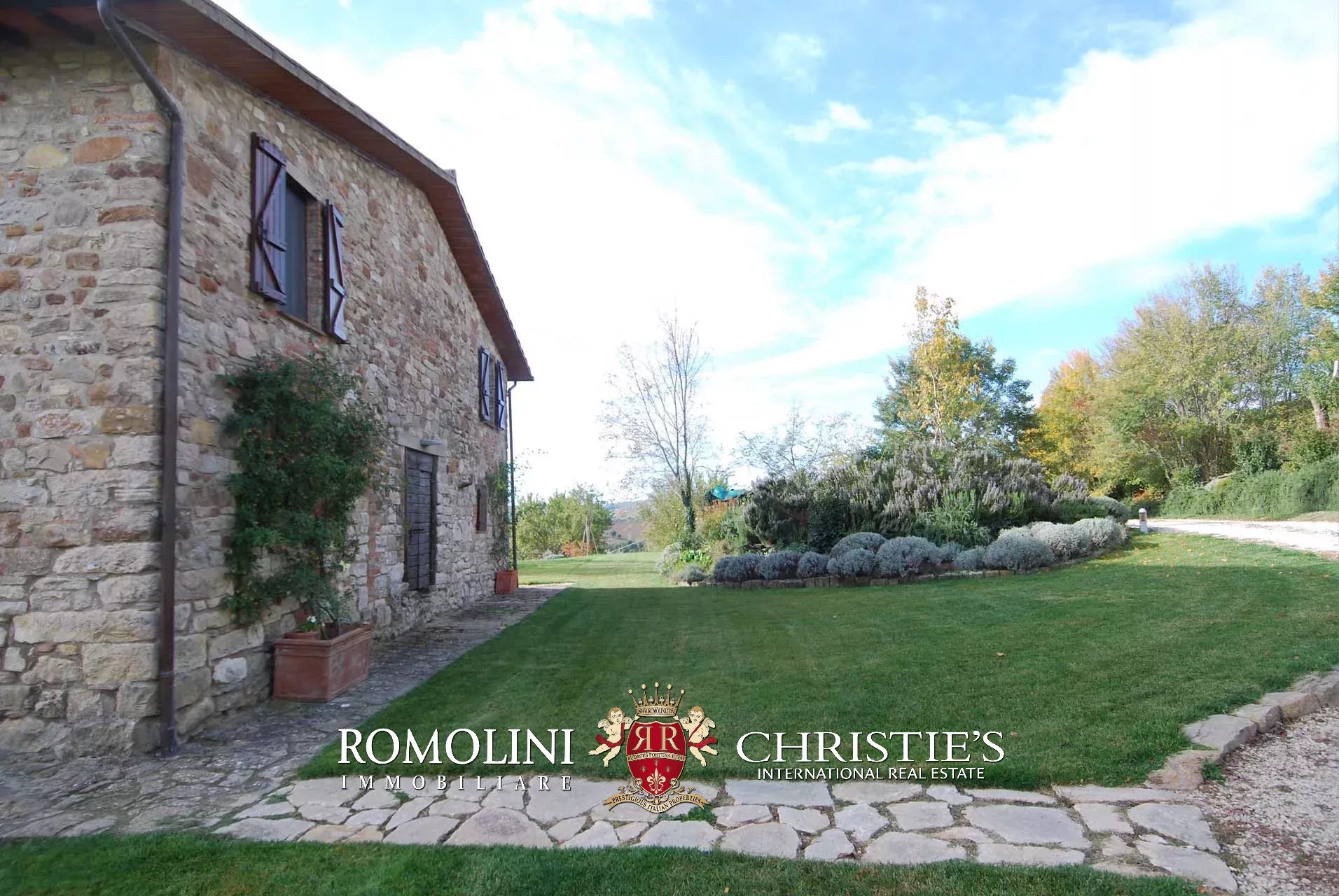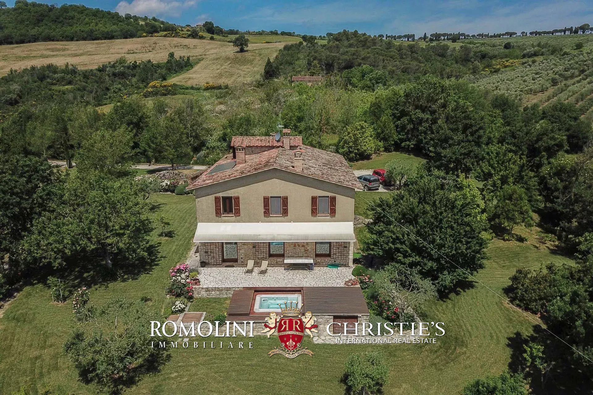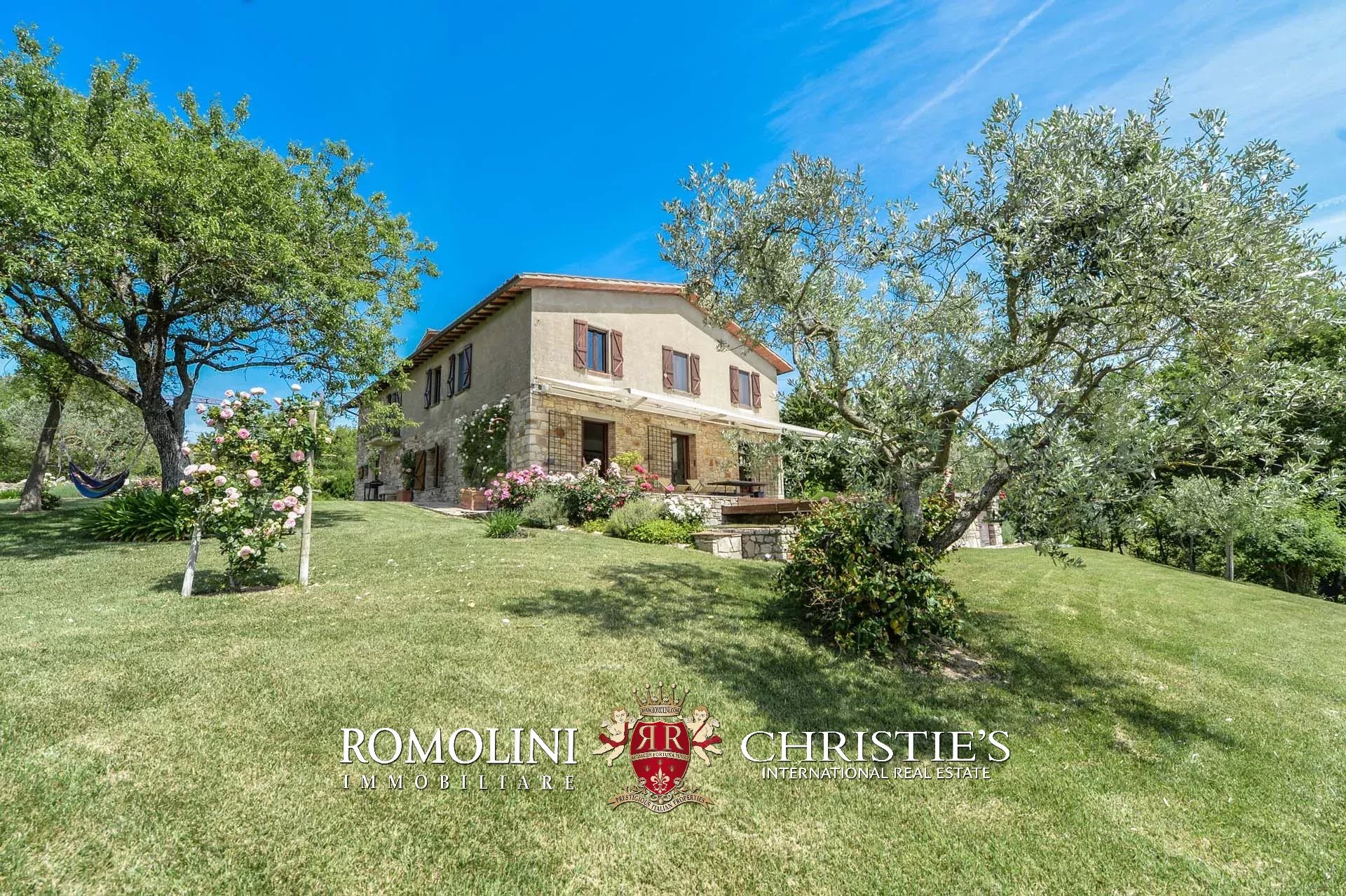 La villa dispone di circa 3.000 mq di terreno, coperti da un curatissimo giardino all’inglese decorato con ulivi, cipressi, alberi da frutto, rose, viburni e ortensie.
