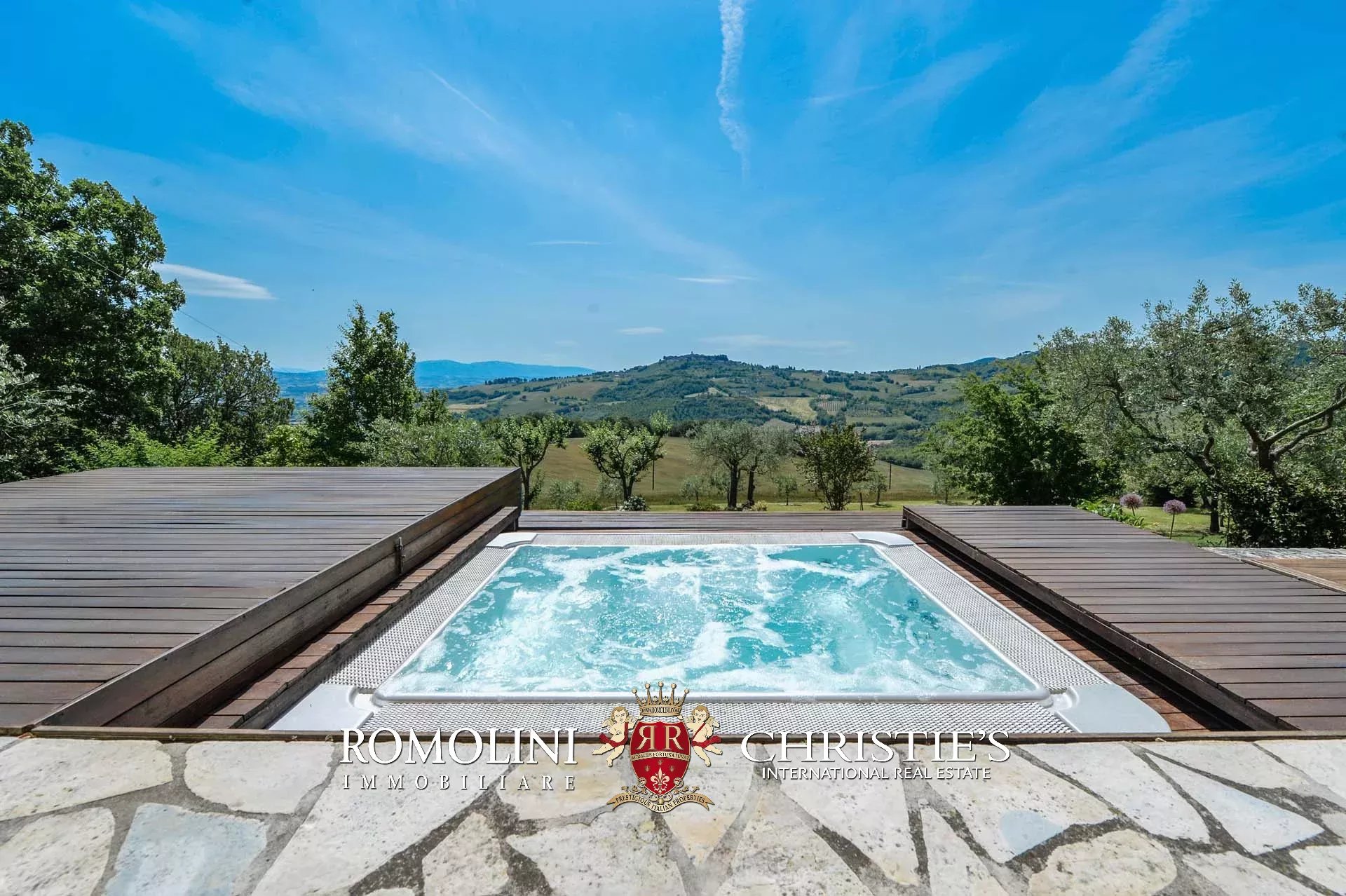 In posizione panoramica sulle colline di Todi, nel cuore dell’Umbria, questo casale ristrutturato di 400 mq offre un totale di 5 camere e 3 bagni. L’edificio è circondato da un curatissimo giardino all’inglese punteggiato di alberi decorativi e fiori e dispone di un patio pavimentato con vasca idromassaggio e solarium.