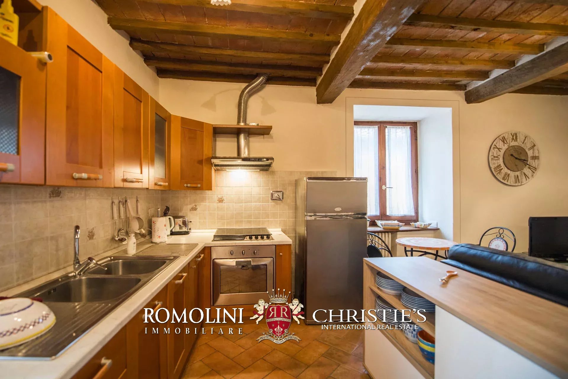 La proprietà è stata ristrutturata preservandone inalterate le caratteristiche salienti tra cui muri in pietra, pavimenti in cotto e travi in legno. I pavimenti della zona notte sono coperti in parquet.