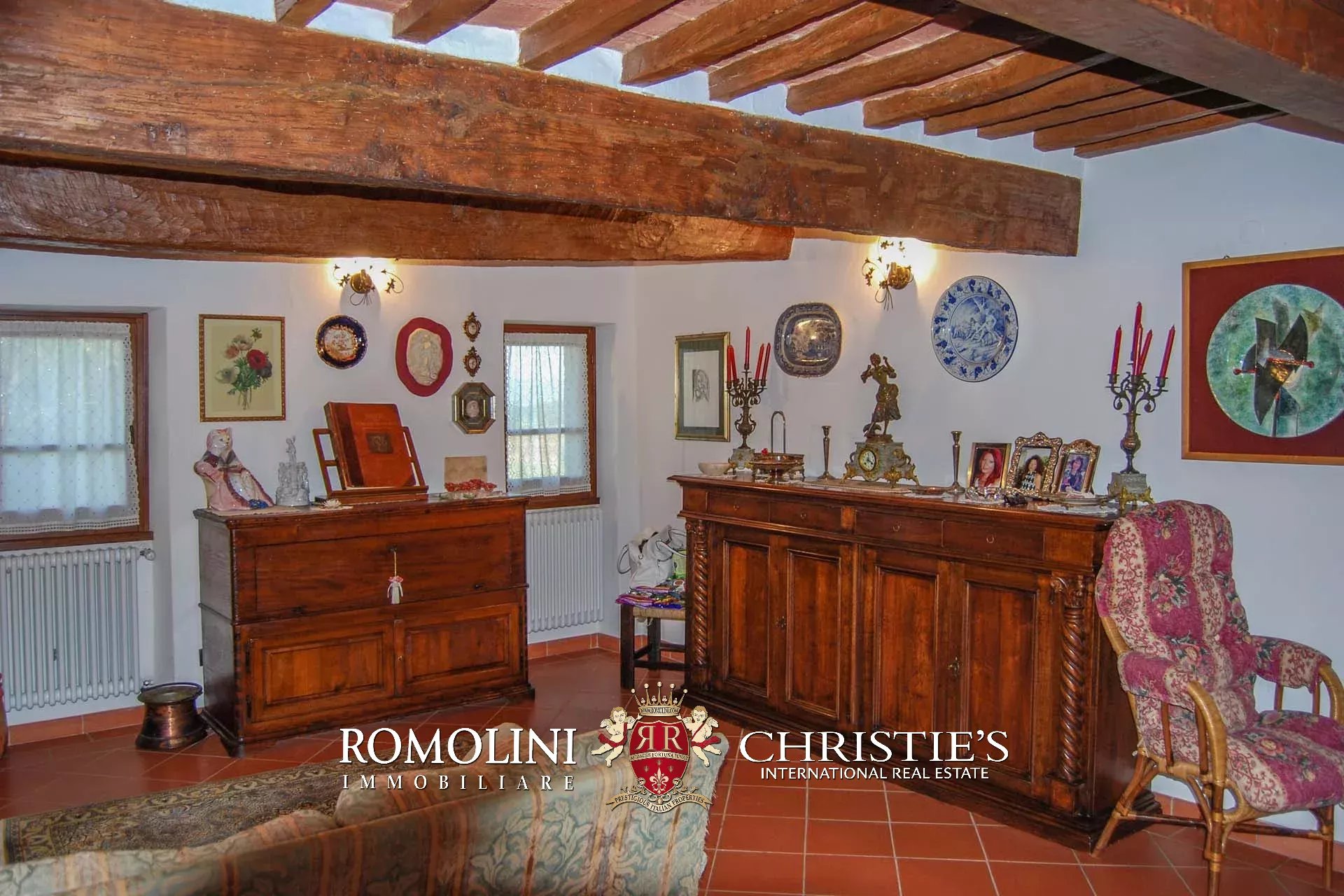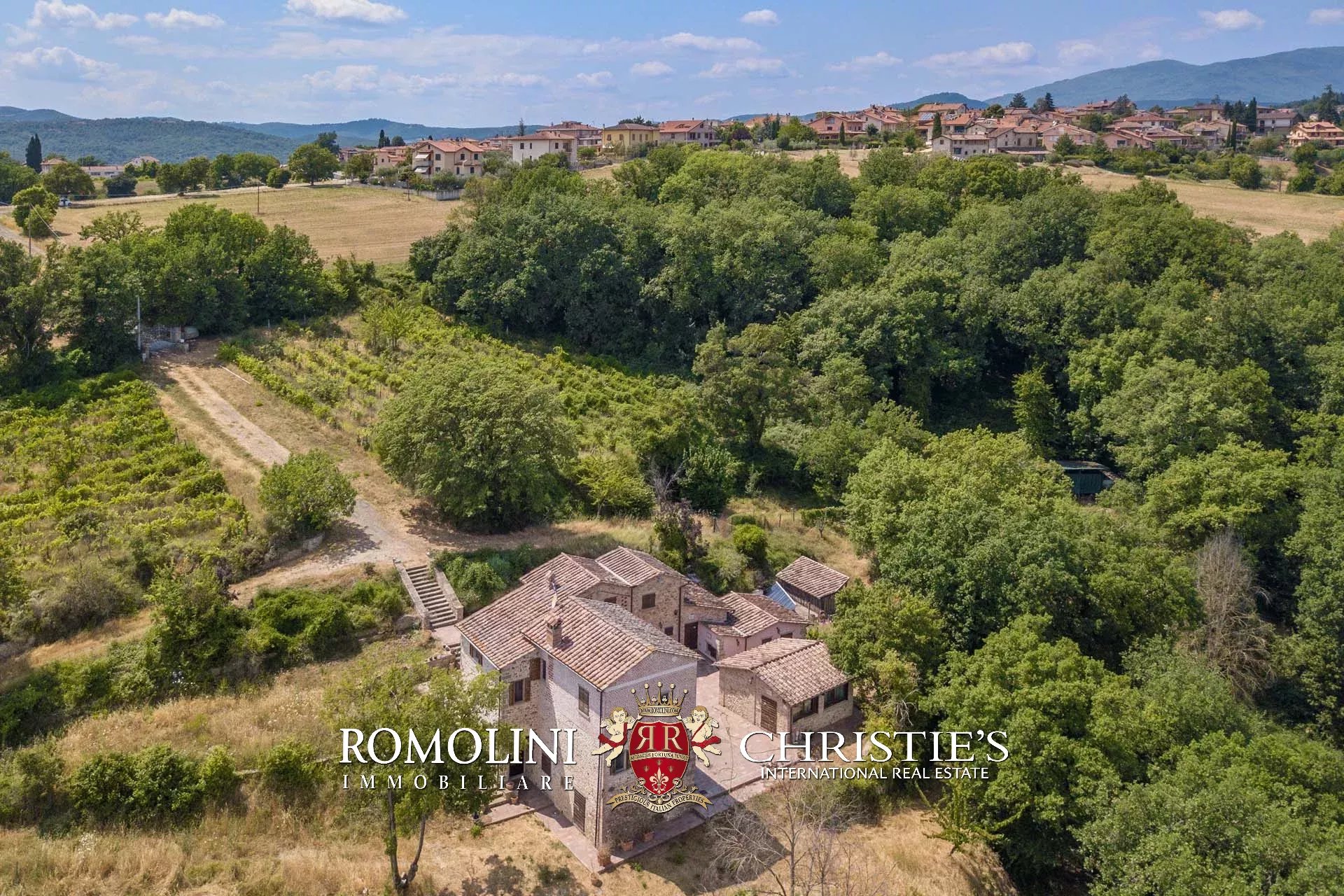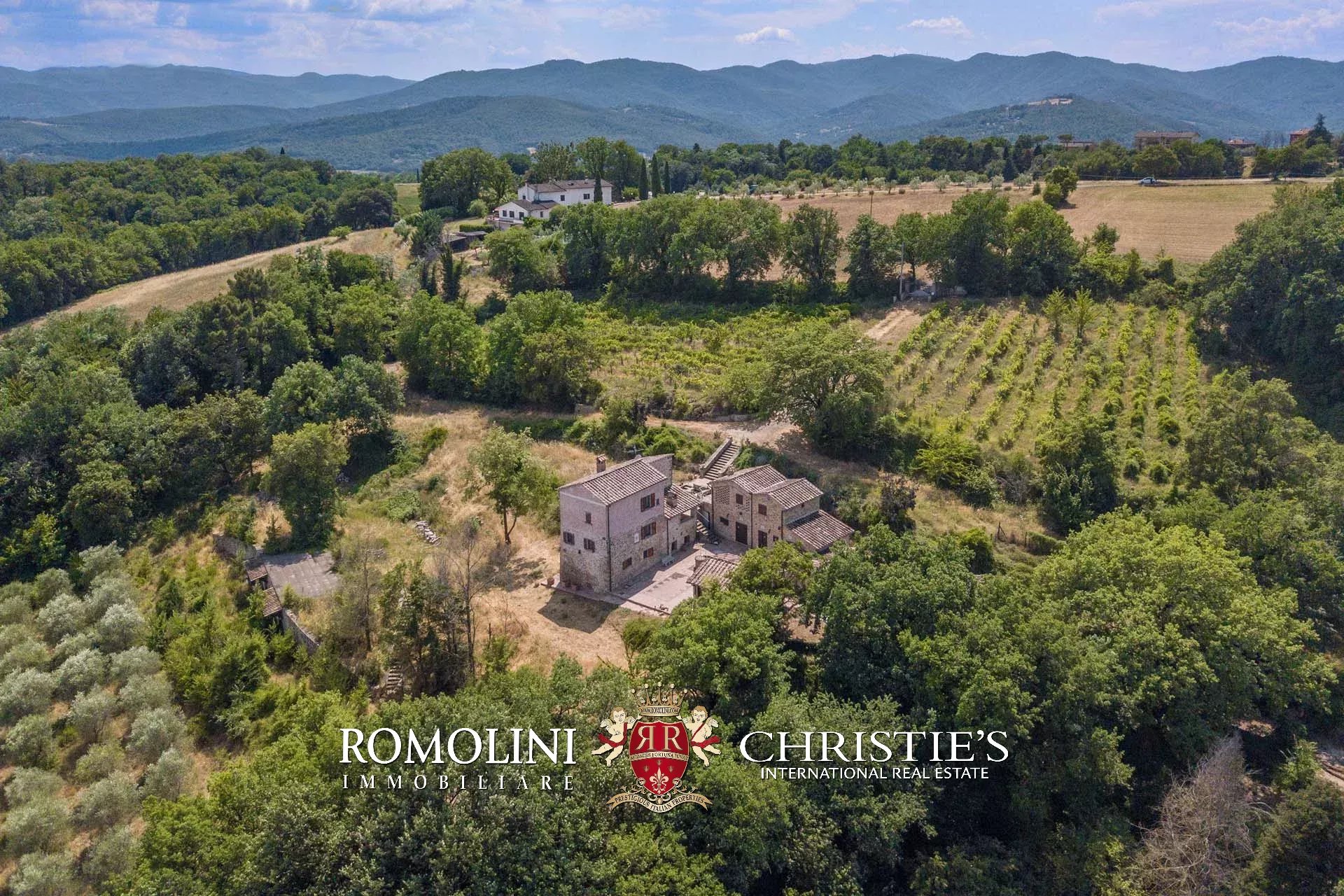 Appena fuori dal centro storico di Anghiari, in una posizione molto panoramica sulla Valtiberina, piccola tenuta di 10,5 ettari con borgo in pietra. I vari edifici della proprietà ospitano attualmente 10 camere e 8 bagni e sono adatti sia come residenza privata che come attività ricettiva. I 10,5 ettari di terreno includono un piccolo vigneto (1,2 ha) e un oliveto (2,0 ha con 300 alberi in piena produzione).
