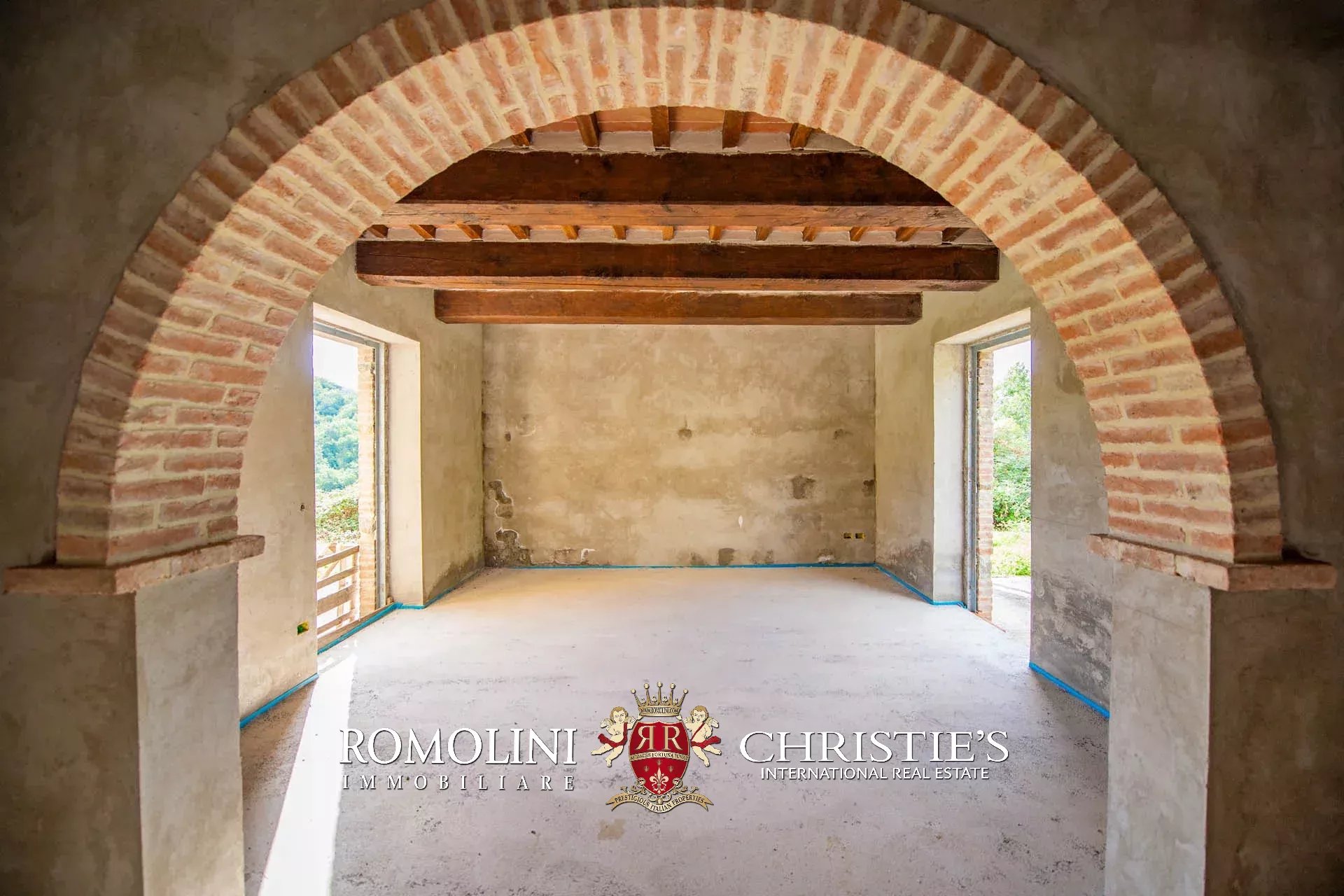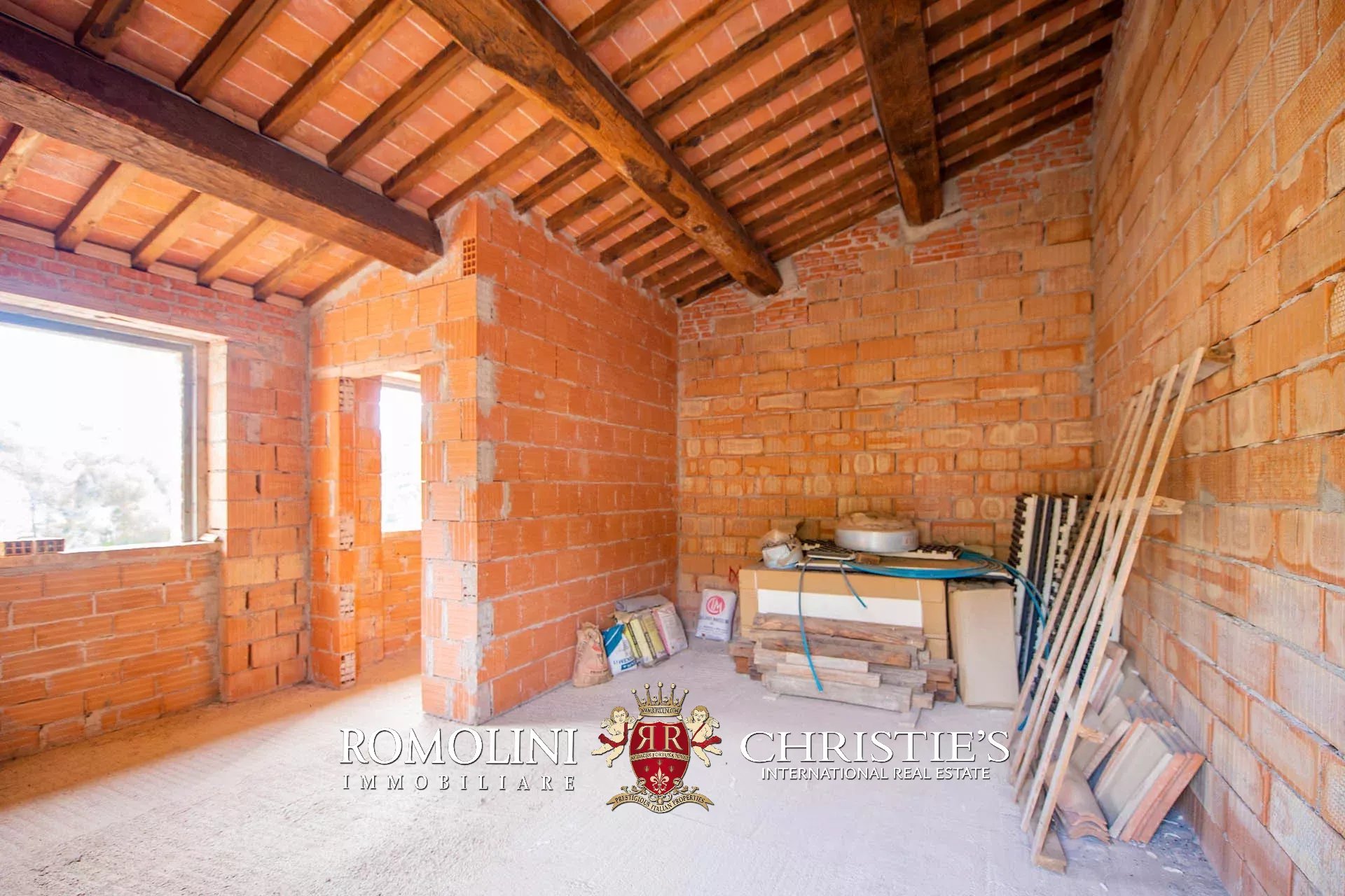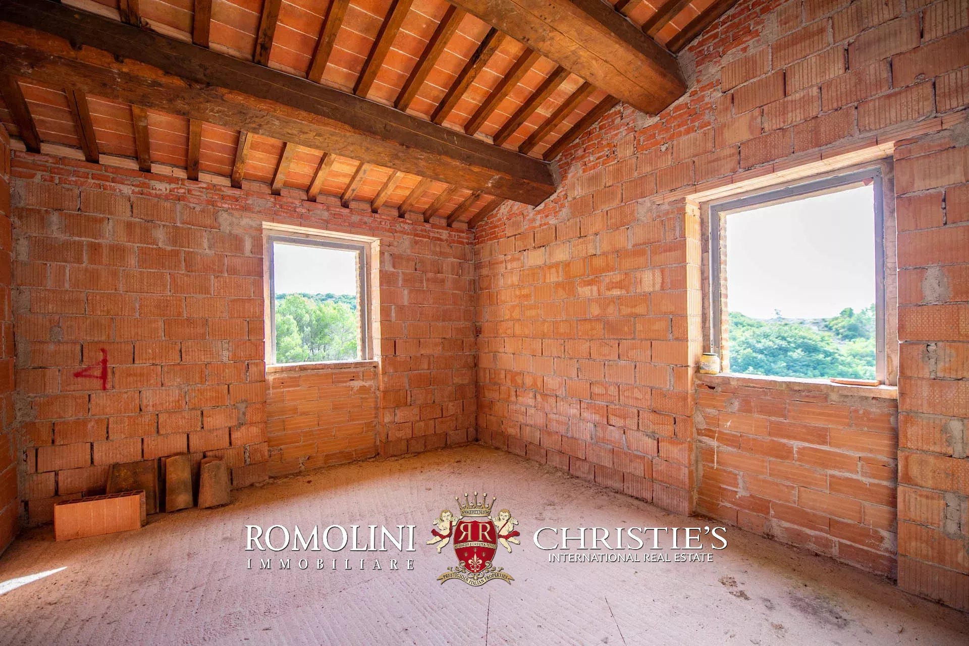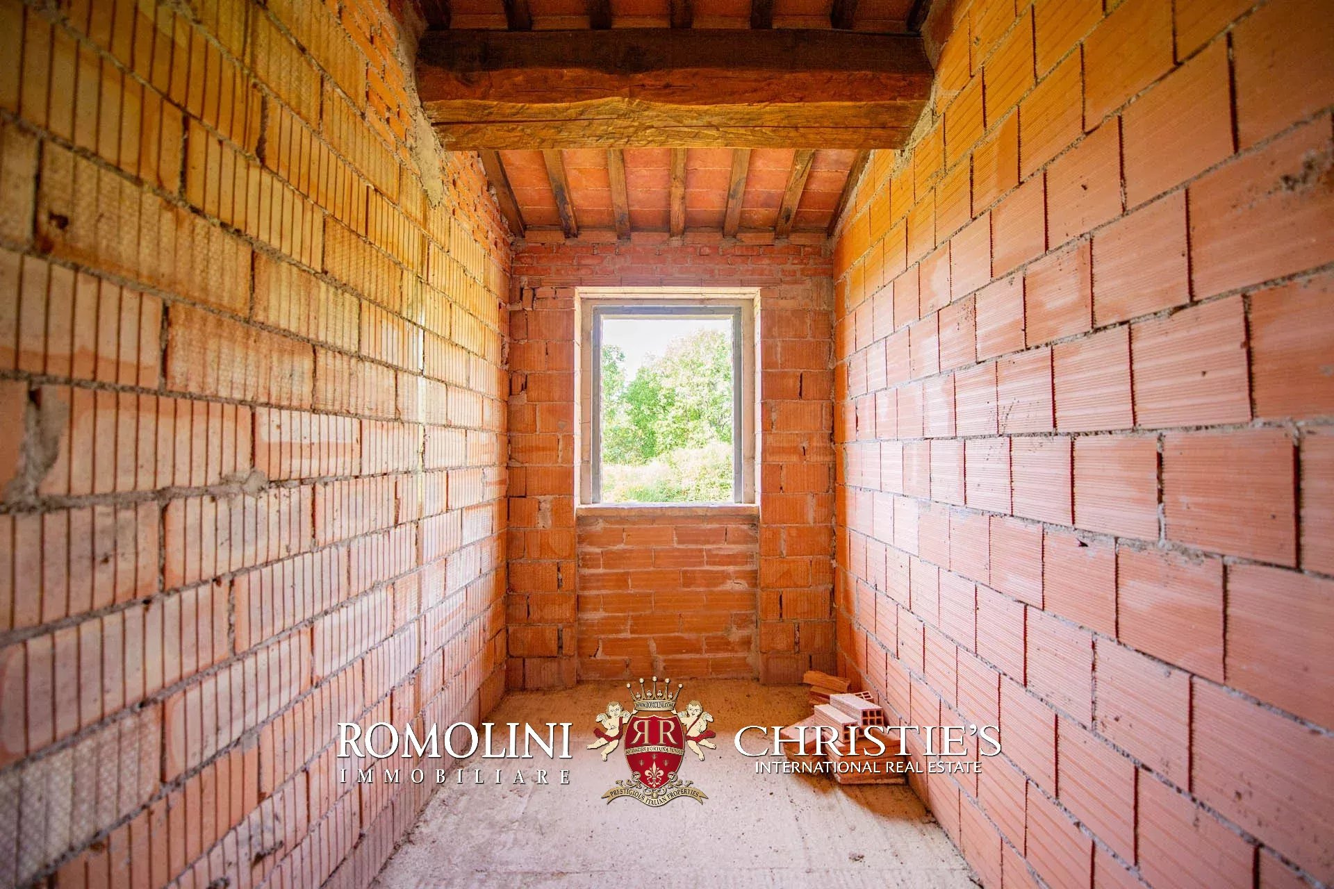 Il casale (280 m², 4 camere e 6 bagni) è attualmente in stato di grezzo, con lavori di consolidamento e rifacimento del tetto completati in anni recenti. Esiste già un progetto di distribuzione degli spazi interni che prevede la zona giorno al piano terra e la zona notte al primo piano.