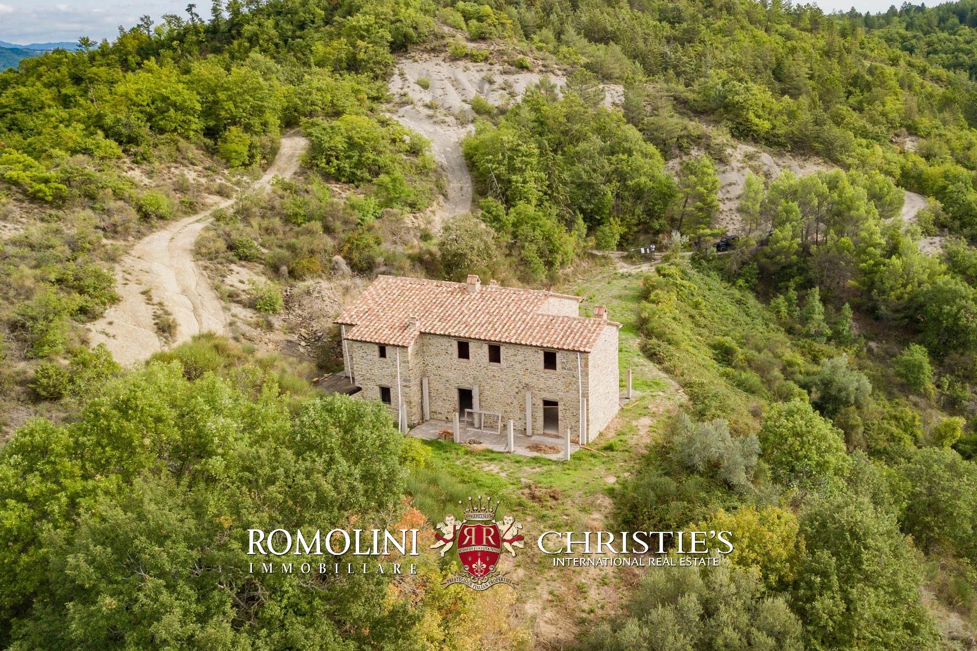 Sulle colline della Valtiberina, tra Montone e Città di Castello, casale da ristrutturare con 8,5 ettari di terreno. L’edificio è stato consolidato e necessita solo di lavori di finitura interna: il progetto attuale prevede la creazione di 4 camere e 6 bagni oltre a una spaziosa zona giorno al piano terra. Il terreno attorno all’edificio (circa 1.000 m²) offre spazio sufficiente per la creazione di un giardino panoramico e il bosco da taglio potrebbe fornire legna per il riscaldamento a costo ridotto.