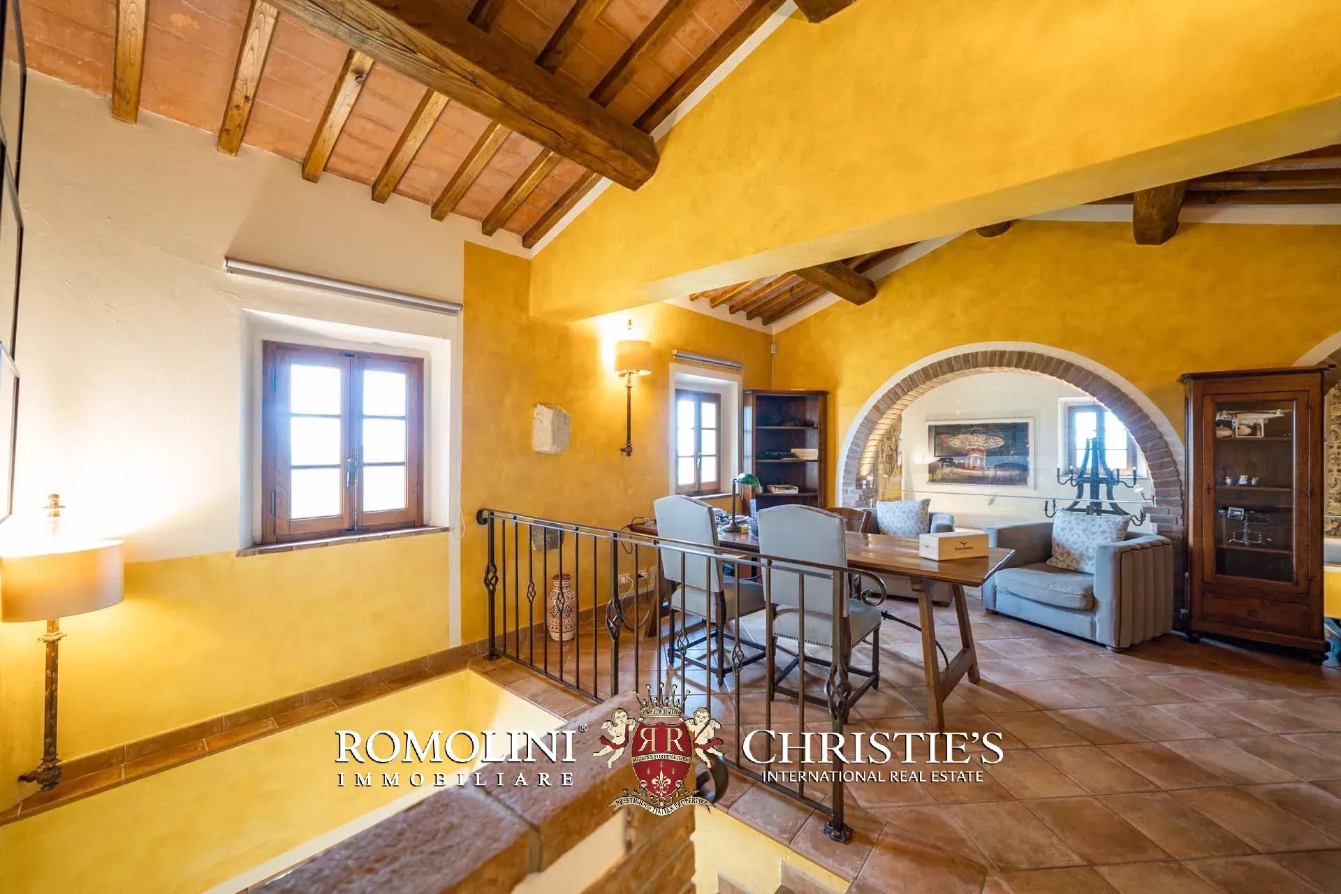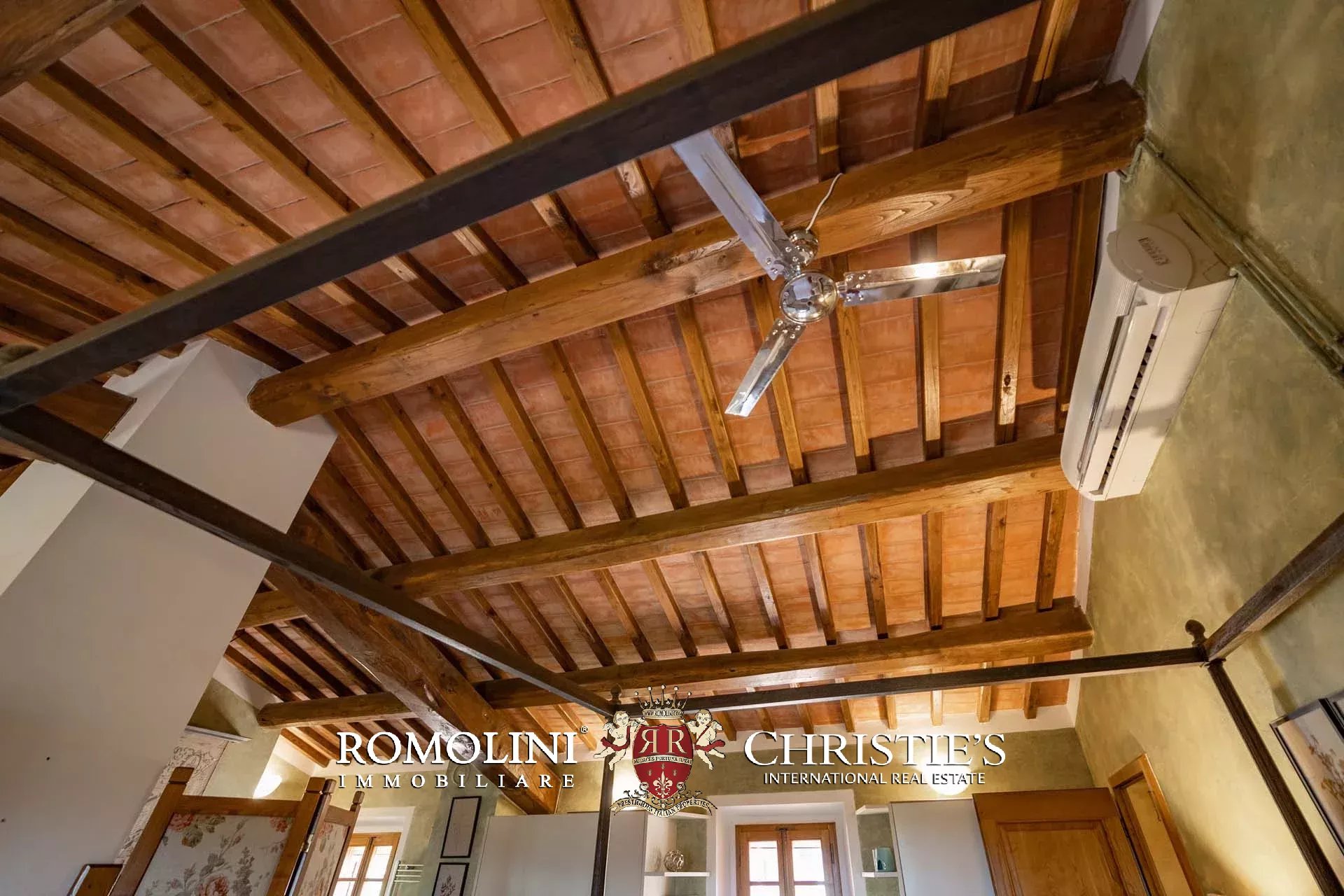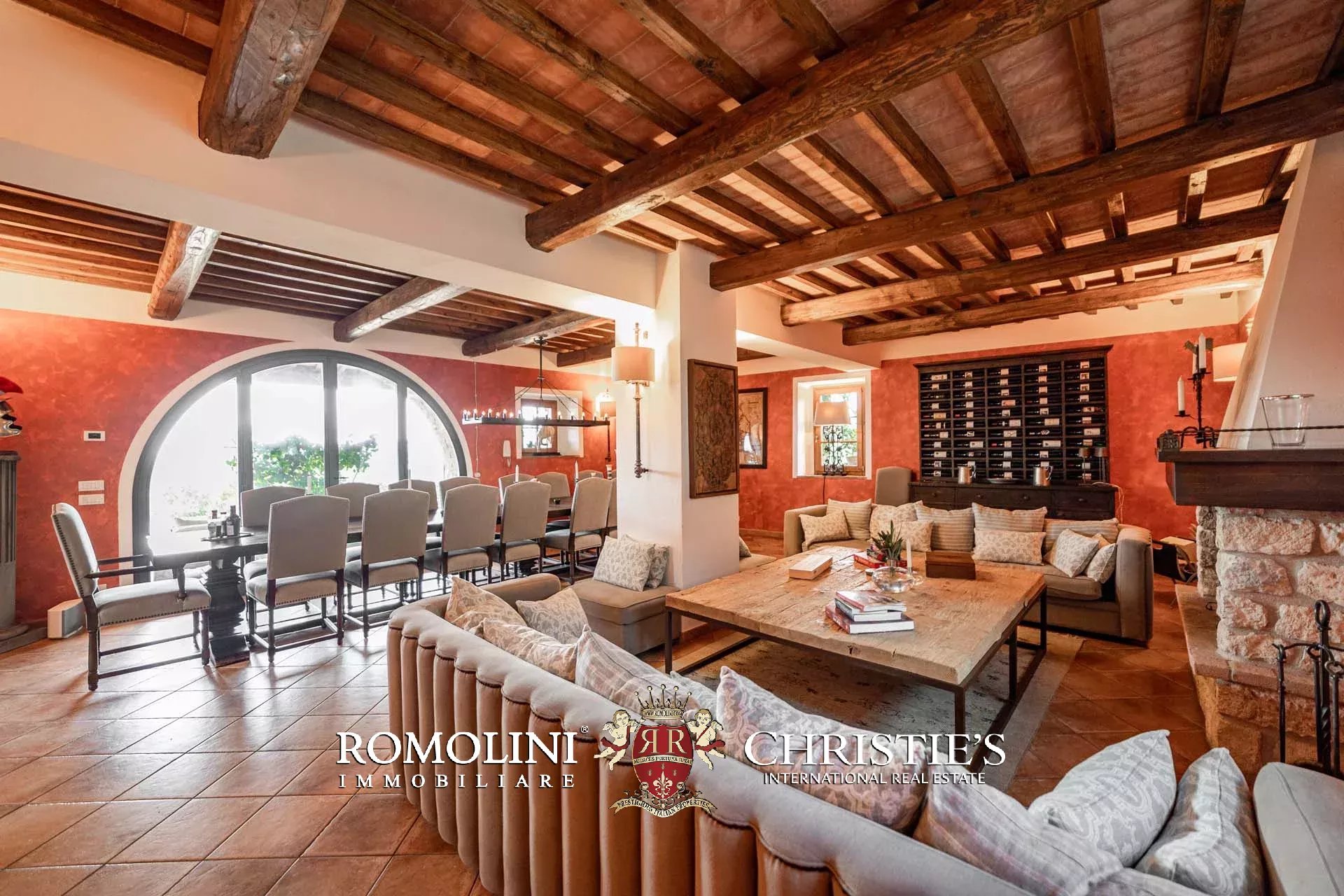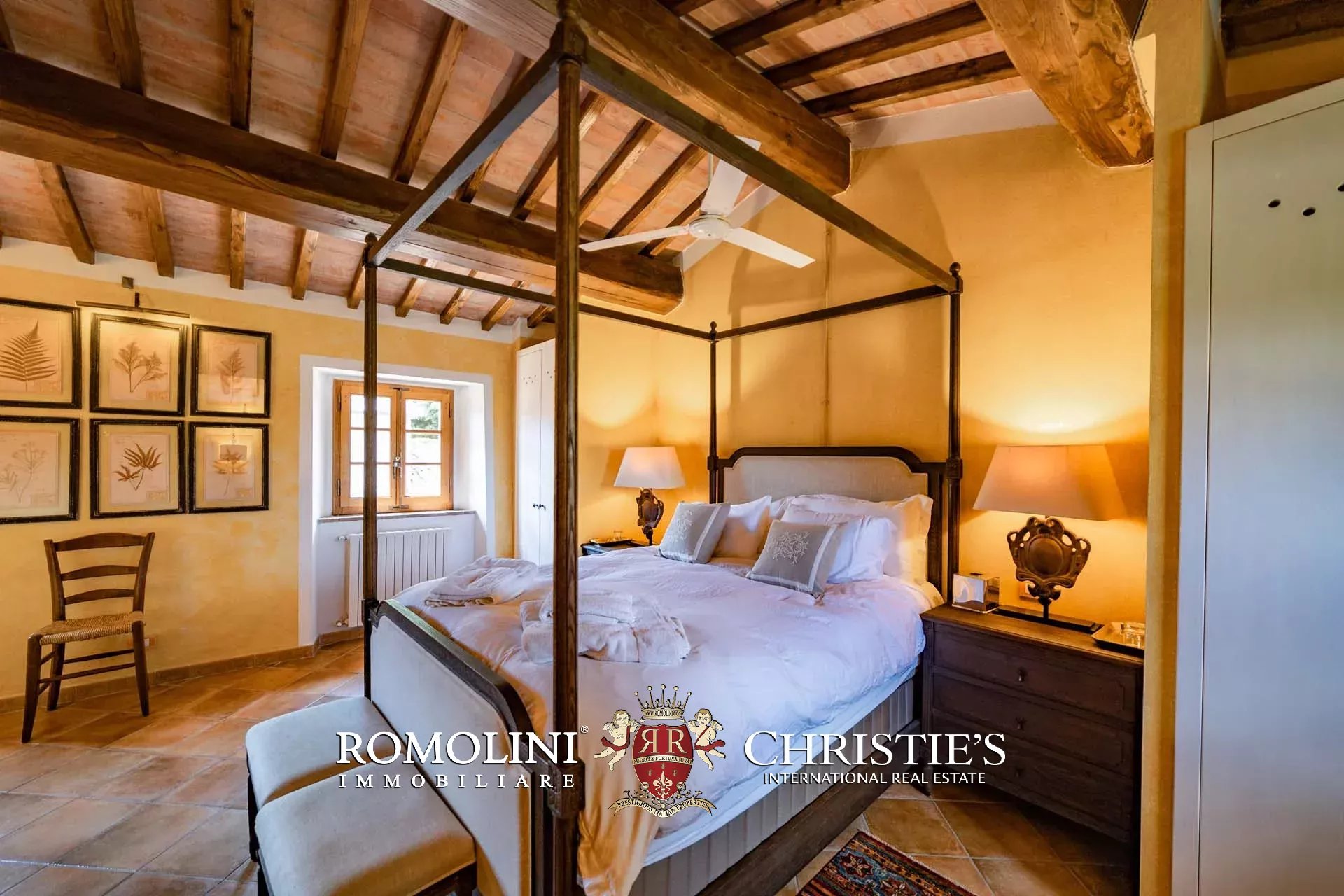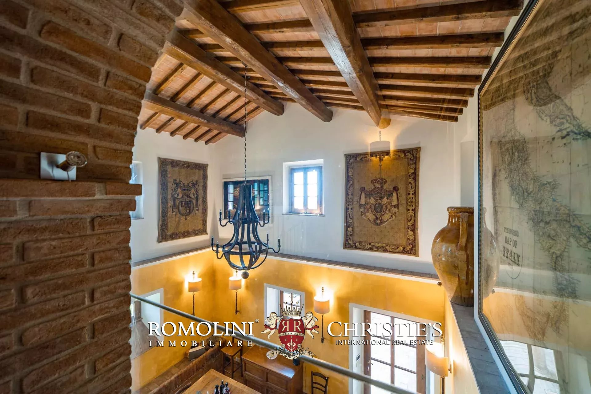 In posizione più privata e riservata, ma non meno panoramica, rispetto alla cantina si trova poi la villa storica (circa 600 m²), risalente al 1490, con i relativi annessi. L’edificio principale (dalla forma a ferro di cavallo e realizzato in pietra locale) è stato interamente ristrutturato, mantenendone tuttavia inalterate le caratteristiche salienti, e ospita oggi delle bellissime zone giorno e sette camere con bagno privato. All’esterno, la villa dispone di logge e terrazze pavimentate ideali per cene o piacevoli momenti di relax. Sotto la terrazza principale della villa si trova un garage.