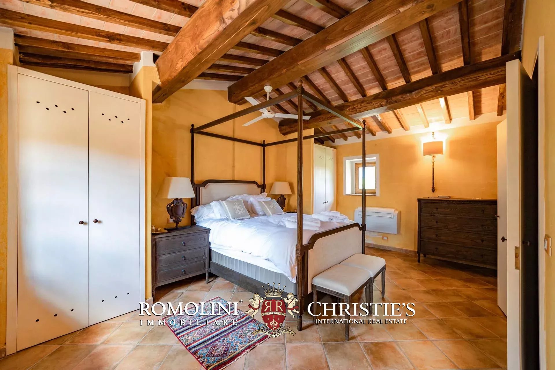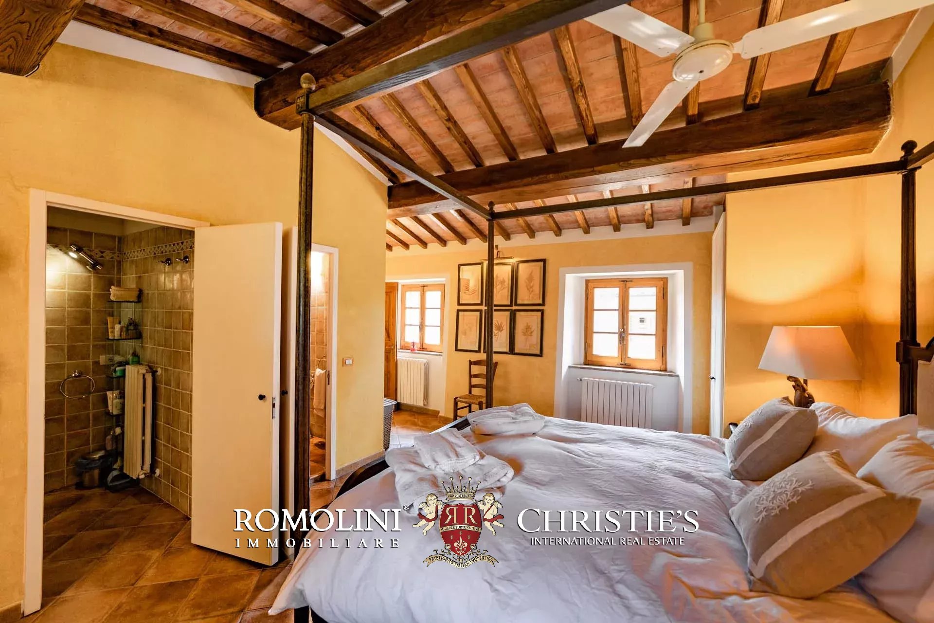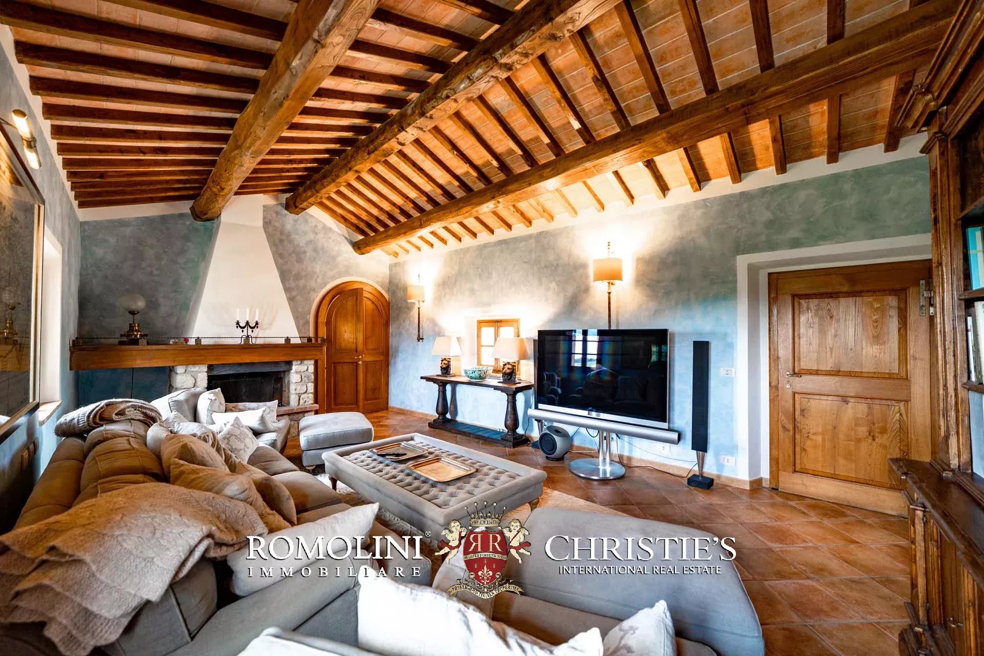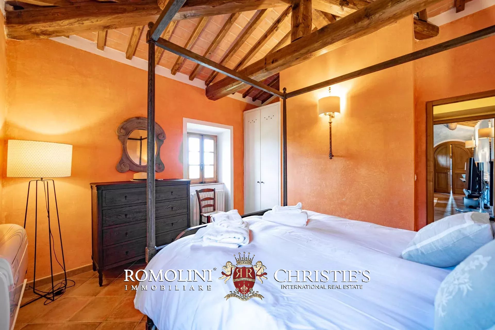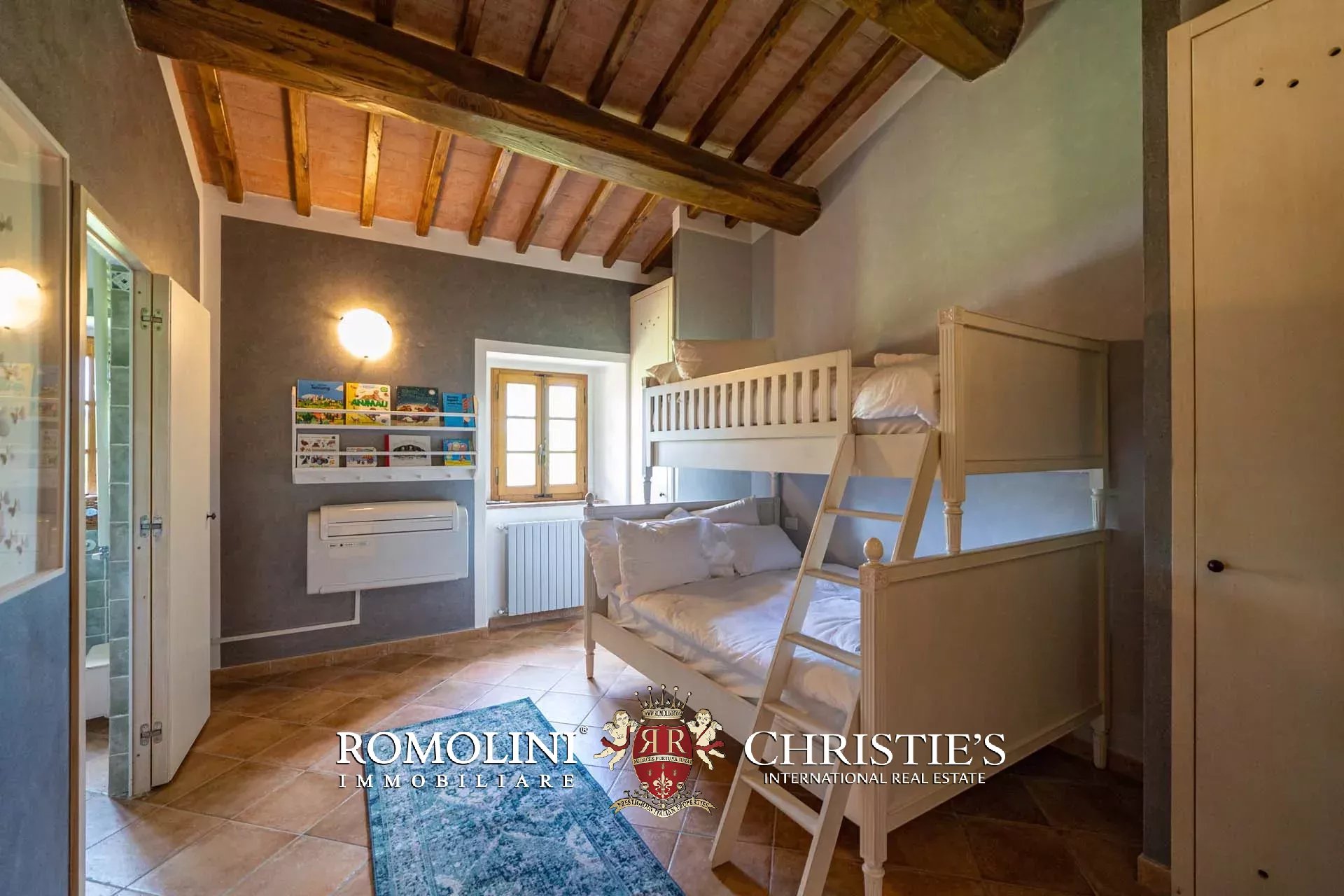 In posizione più privata e riservata, ma non meno panoramica, rispetto alla cantina si trova poi la villa storica (circa 600 m²), risalente al 1490, con i relativi annessi. L’edificio principale (dalla forma a ferro di cavallo e realizzato in pietra locale) è stato interamente ristrutturato, mantenendone tuttavia inalterate le caratteristiche salienti, e ospita oggi delle bellissime zone giorno e sette camere con bagno privato. All’esterno, la villa dispone di logge e terrazze pavimentate ideali per cene o piacevoli momenti di relax. Sotto la terrazza principale della villa si trova un garage.