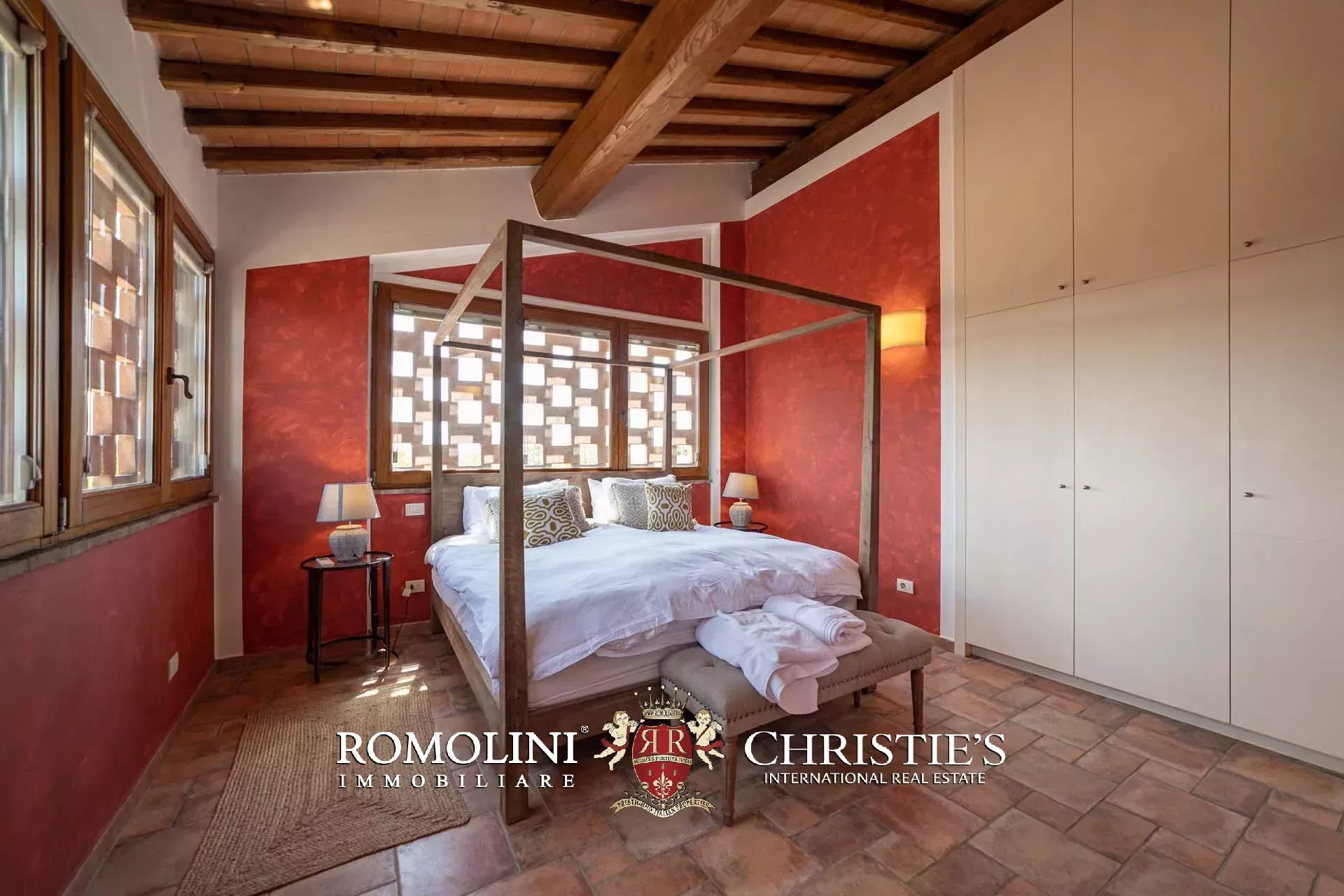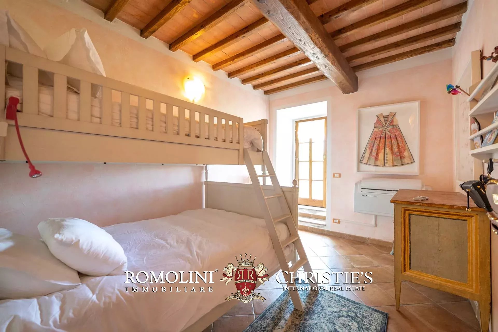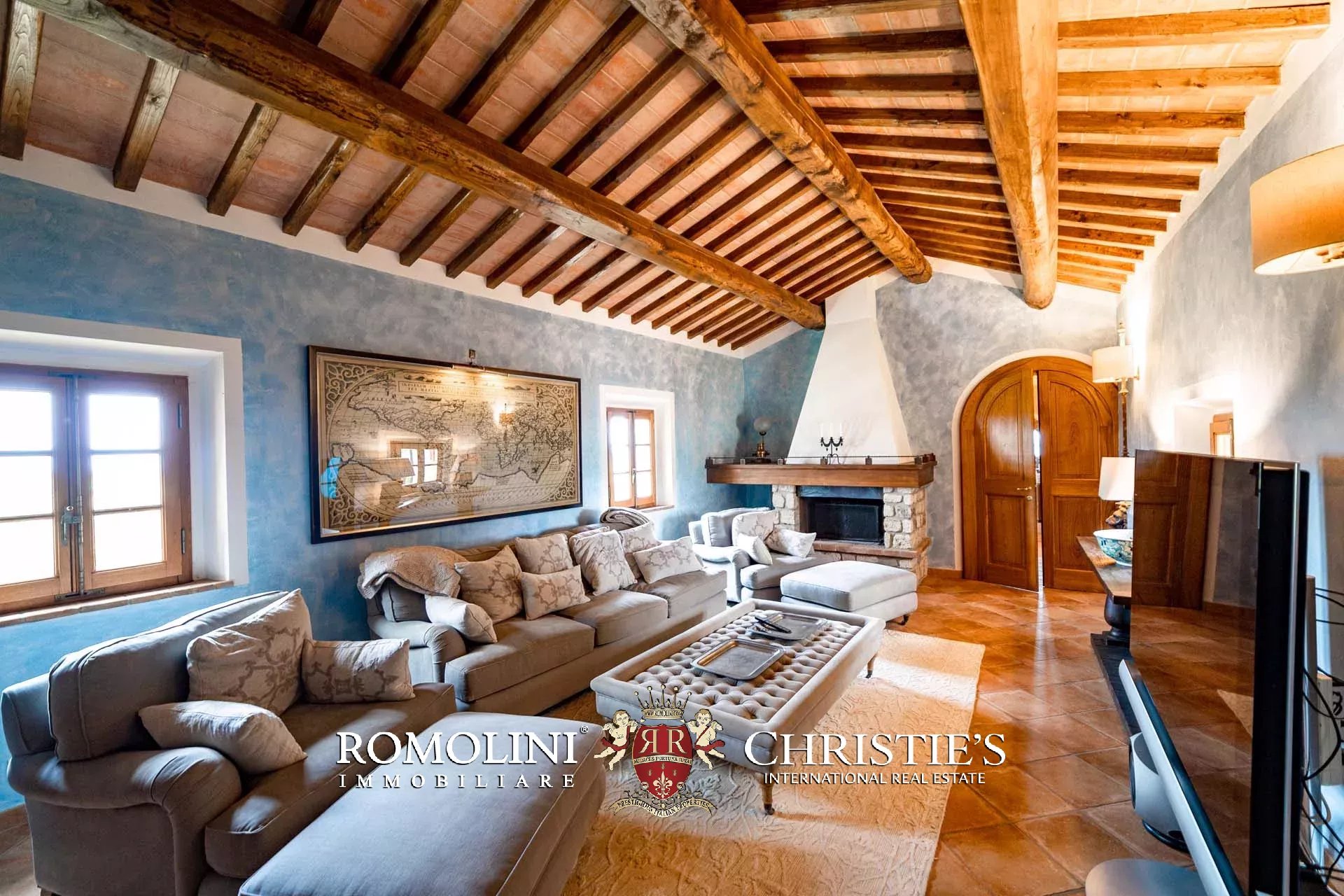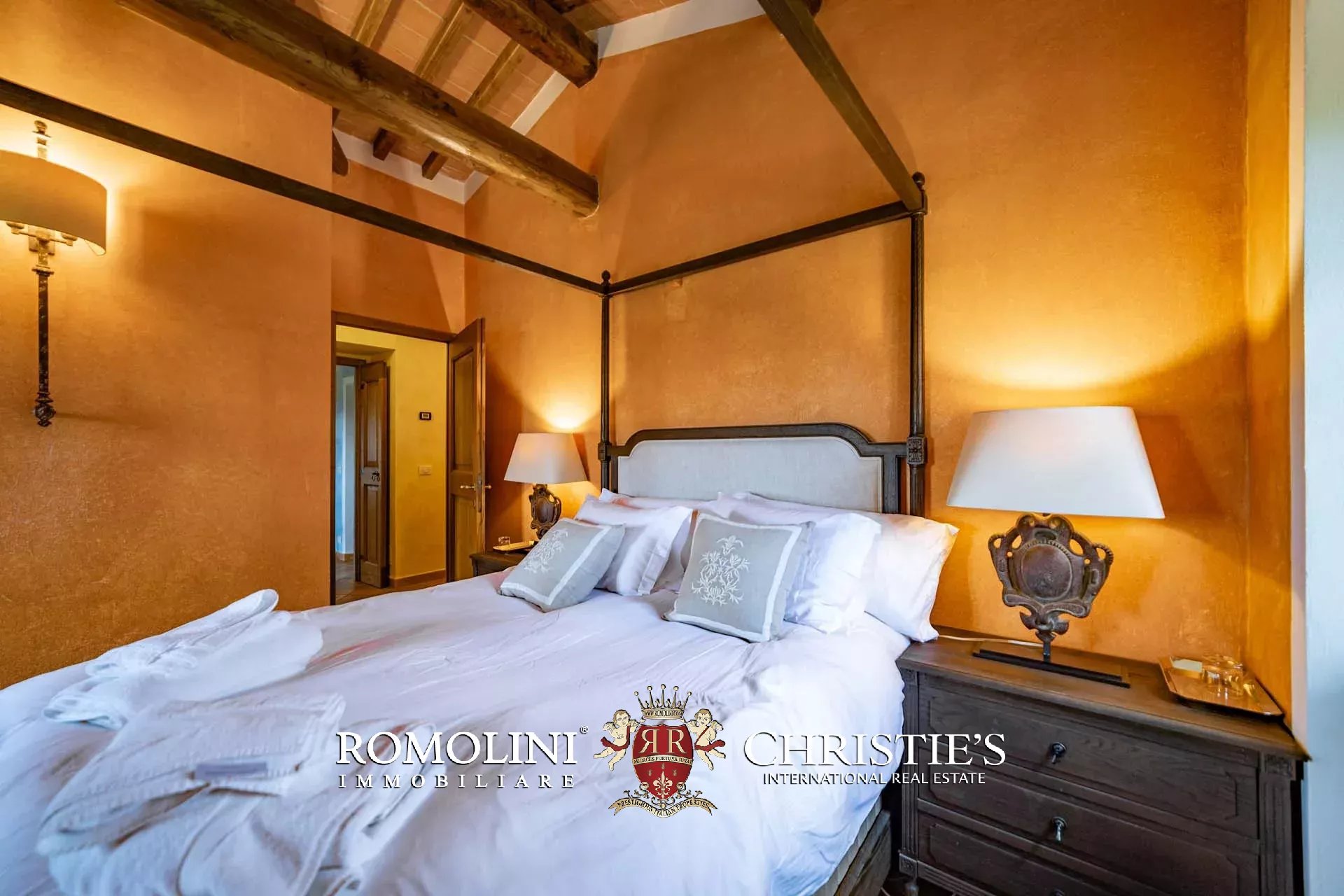 In posizione più privata e riservata, ma non meno panoramica, rispetto alla cantina si trova poi la villa storica (circa 600 m²), risalente al 1490, con i relativi annessi. L’edificio principale (dalla forma a ferro di cavallo e realizzato in pietra locale) è stato interamente ristrutturato, mantenendone tuttavia inalterate le caratteristiche salienti, e ospita oggi delle bellissime zone giorno e sette camere con bagno privato. All’esterno, la villa dispone di logge e terrazze pavimentate ideali per cene o piacevoli momenti di relax. Sotto la terrazza principale della villa si trova un garage.