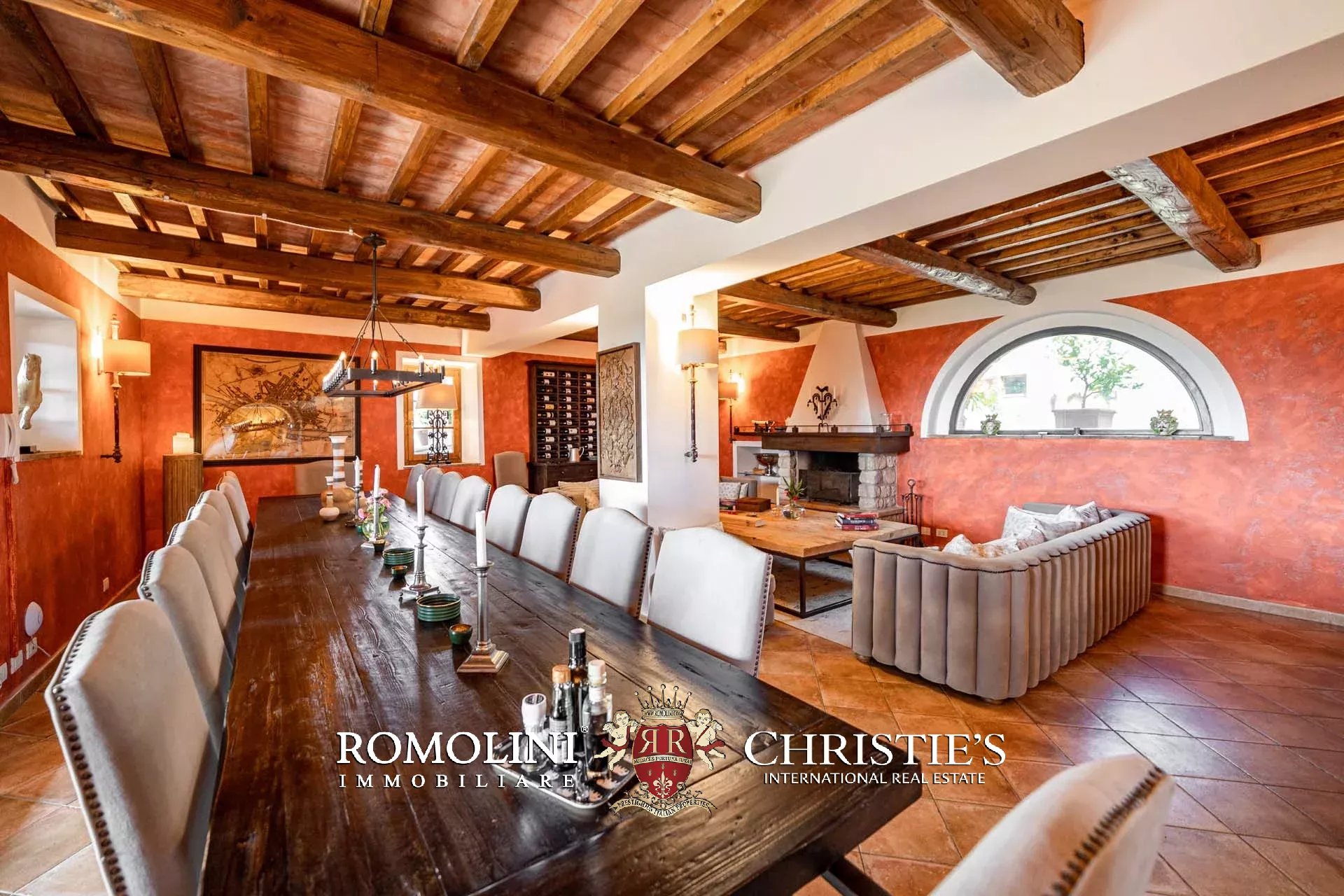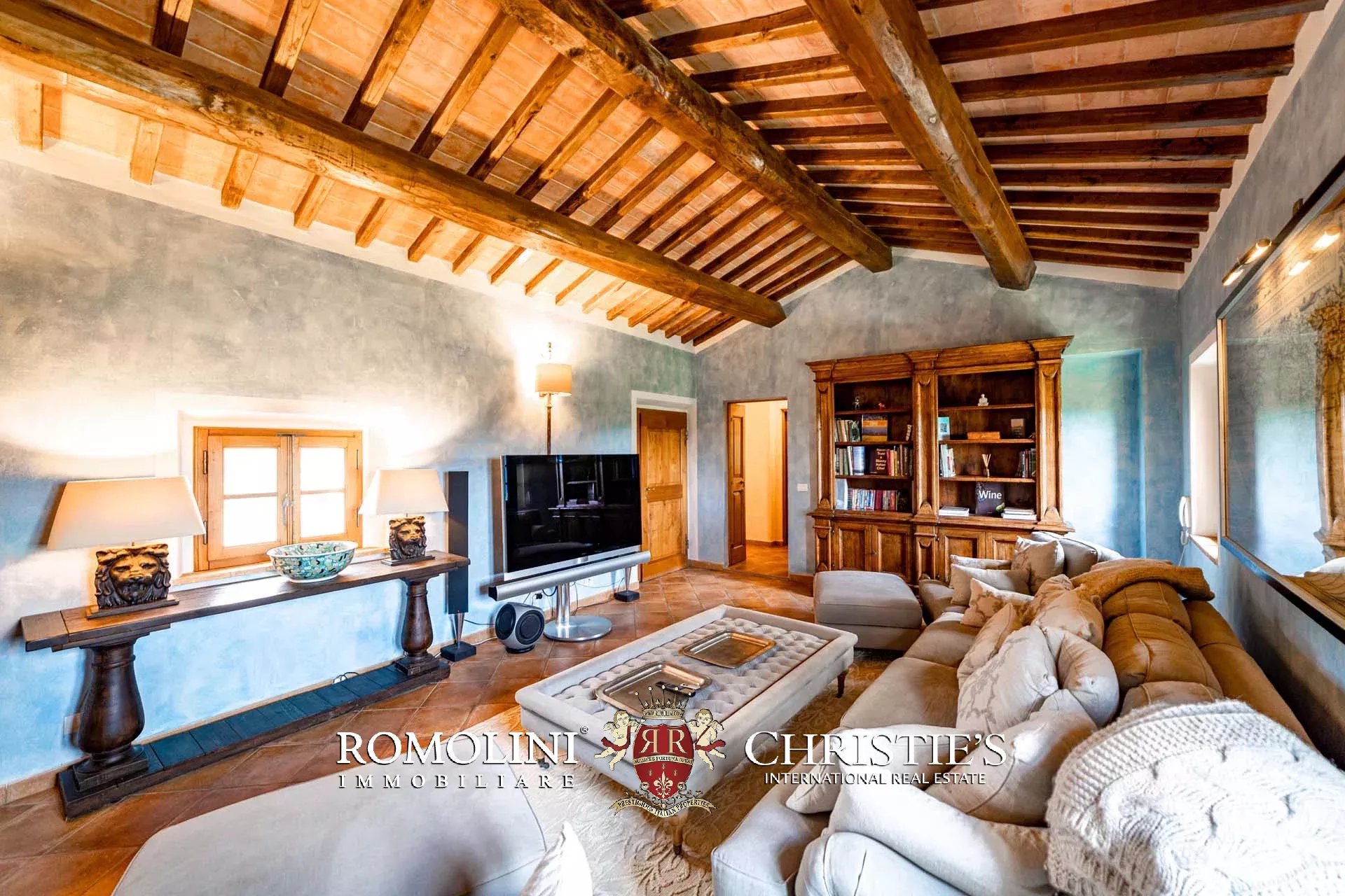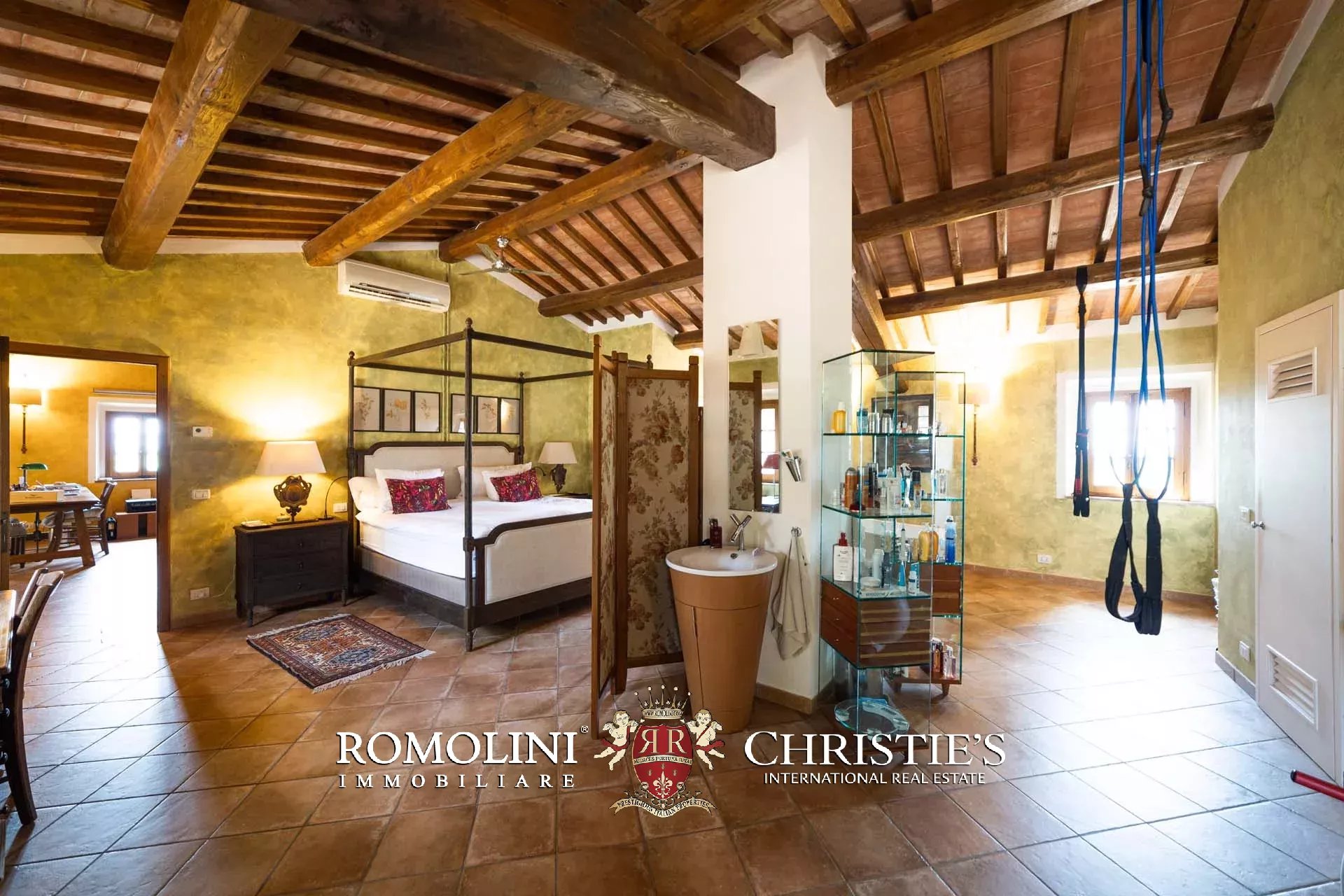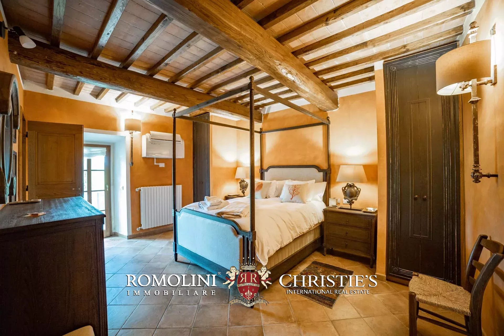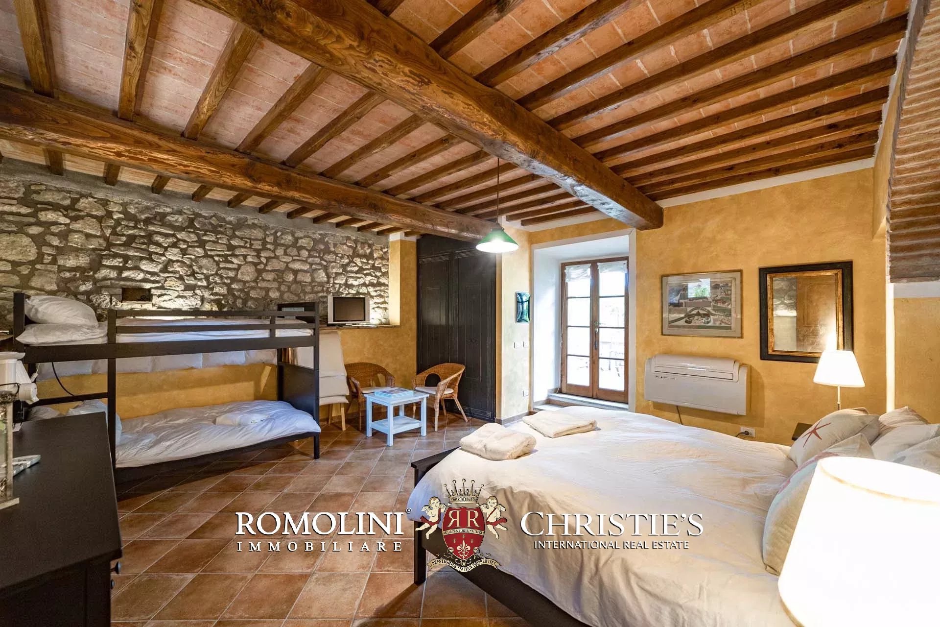 In posizione più privata e riservata, ma non meno panoramica, rispetto alla cantina si trova poi la villa storica (circa 600 m²), risalente al 1490, con i relativi annessi. L’edificio principale (dalla forma a ferro di cavallo e realizzato in pietra locale) è stato interamente ristrutturato, mantenendone tuttavia inalterate le caratteristiche salienti, e ospita oggi delle bellissime zone giorno e sette camere con bagno privato. All’esterno, la villa dispone di logge e terrazze pavimentate ideali per cene o piacevoli momenti di relax. Sotto la terrazza principale della villa si trova un garage.