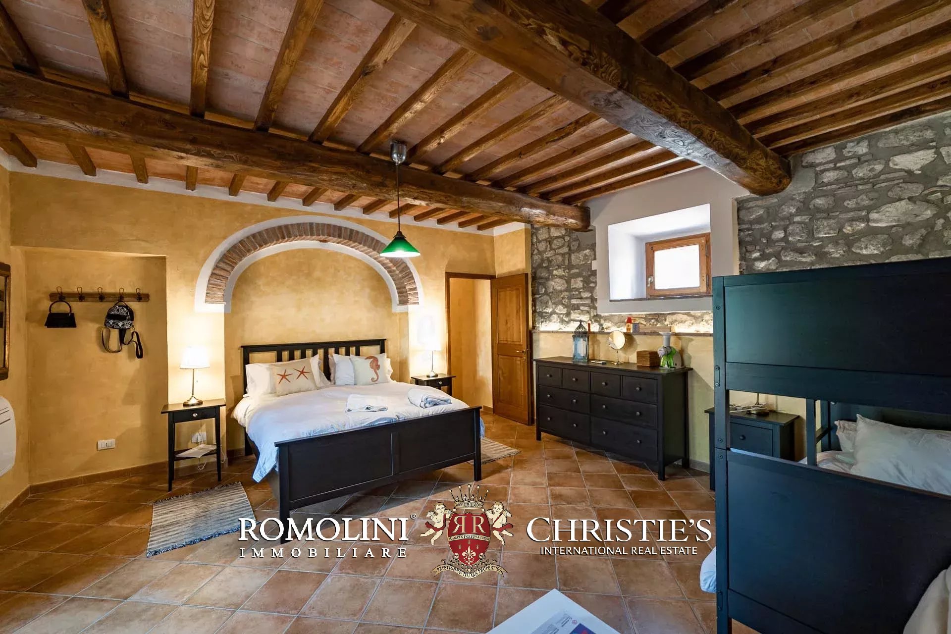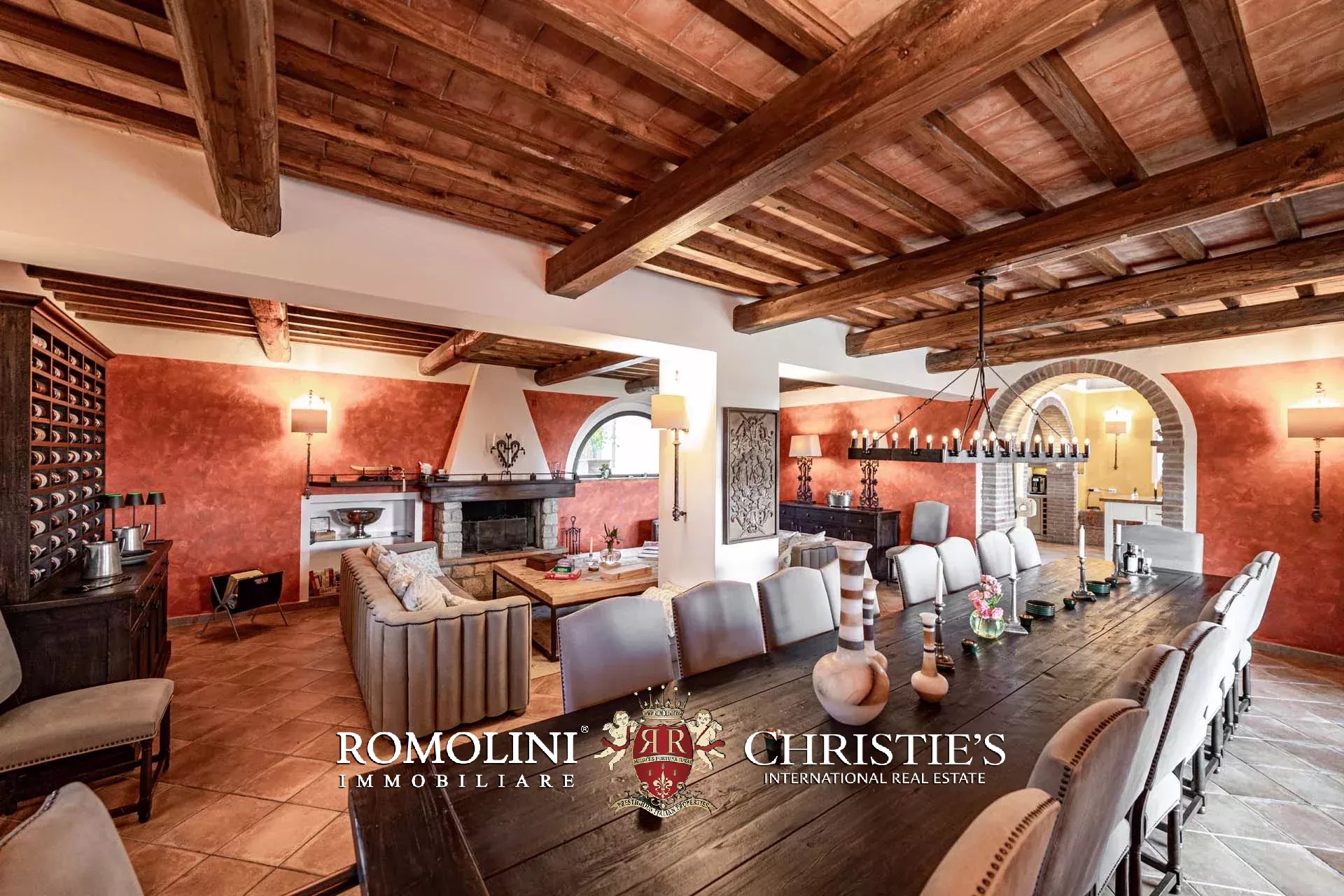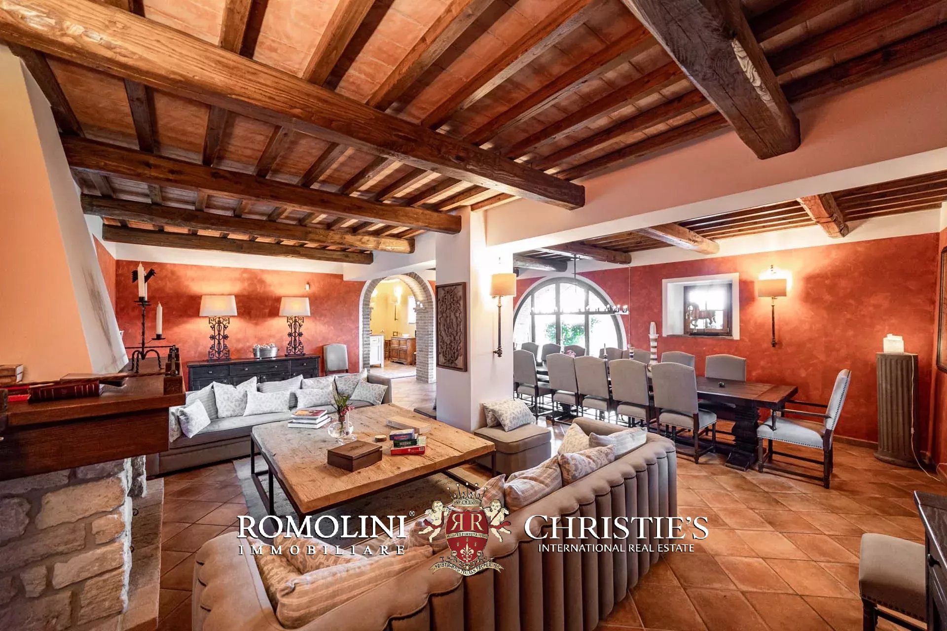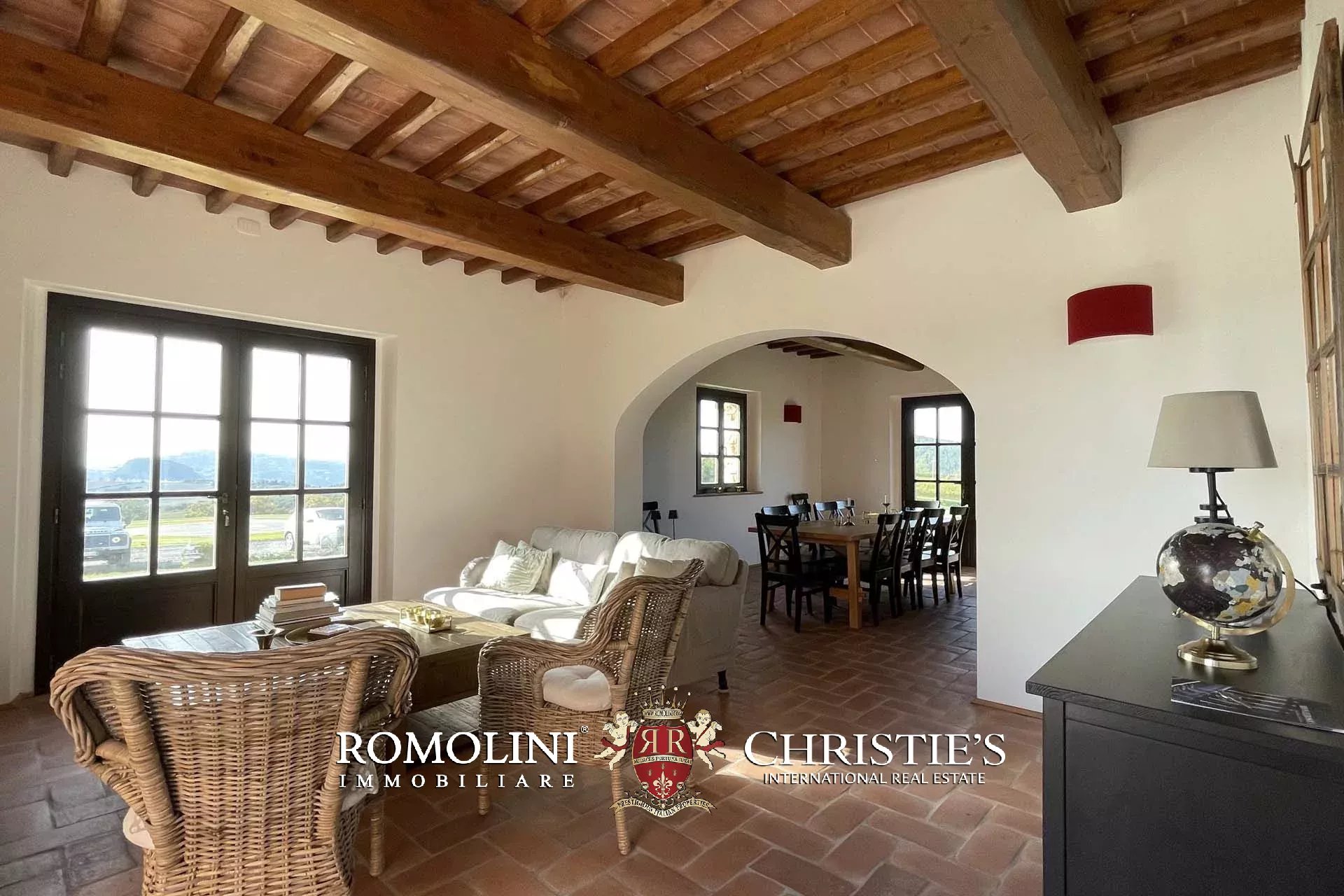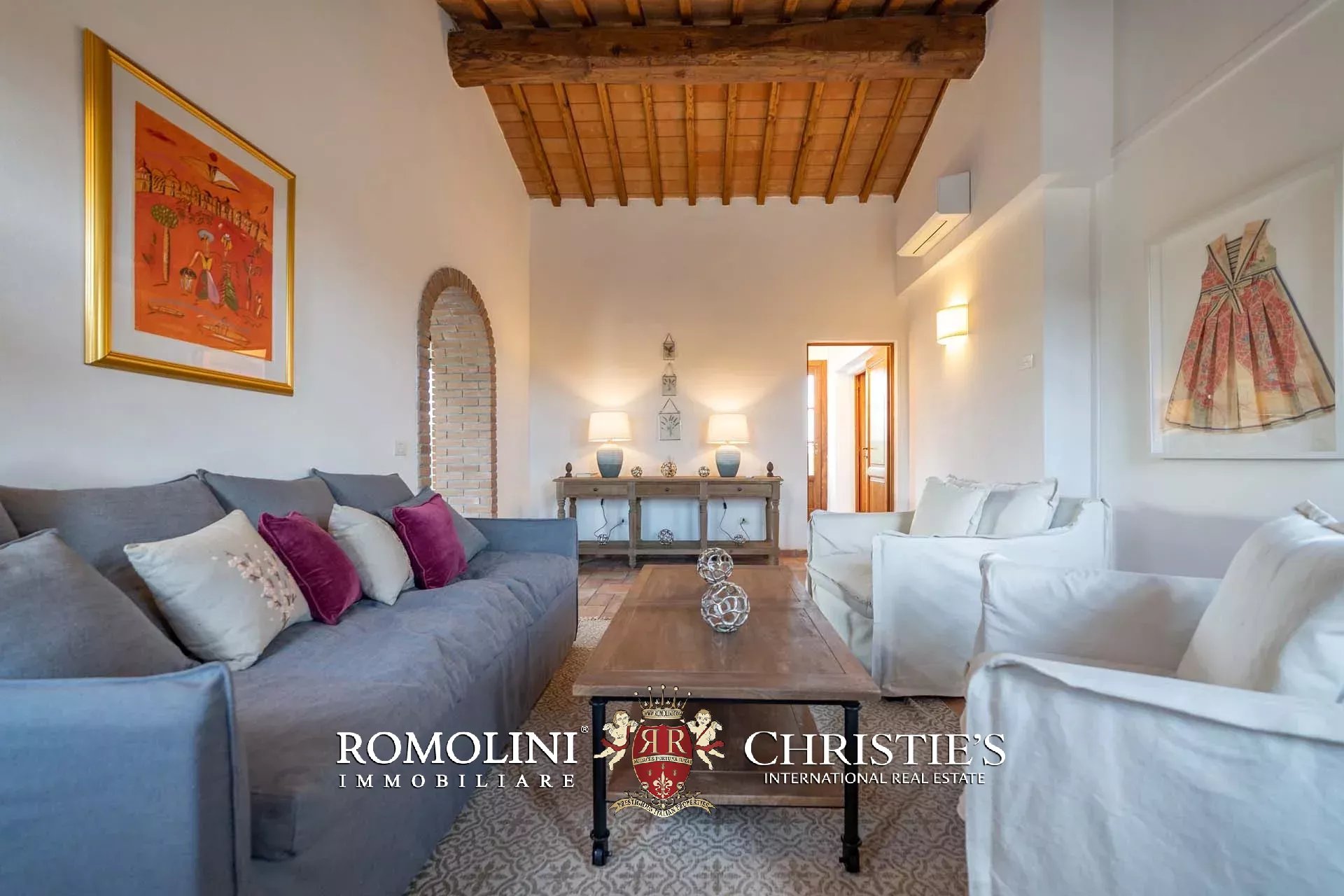 In posizione più privata e riservata, ma non meno panoramica, rispetto alla cantina si trova poi la villa storica (circa 600 m²), risalente al 1490, con i relativi annessi. L’edificio principale (dalla forma a ferro di cavallo e realizzato in pietra locale) è stato interamente ristrutturato, mantenendone tuttavia inalterate le caratteristiche salienti, e ospita oggi delle bellissime zone giorno e sette camere con bagno privato. All’esterno, la villa dispone di logge e terrazze pavimentate ideali per cene o piacevoli momenti di relax. Sotto la terrazza principale della villa si trova un garage.