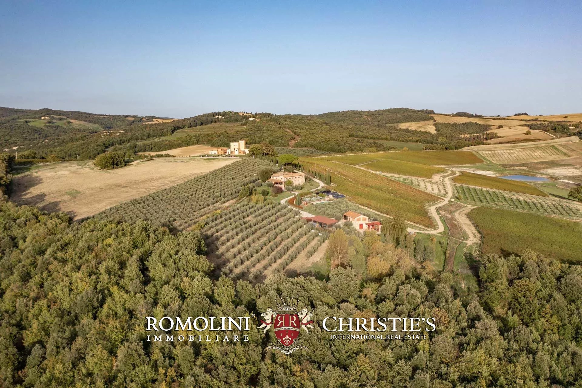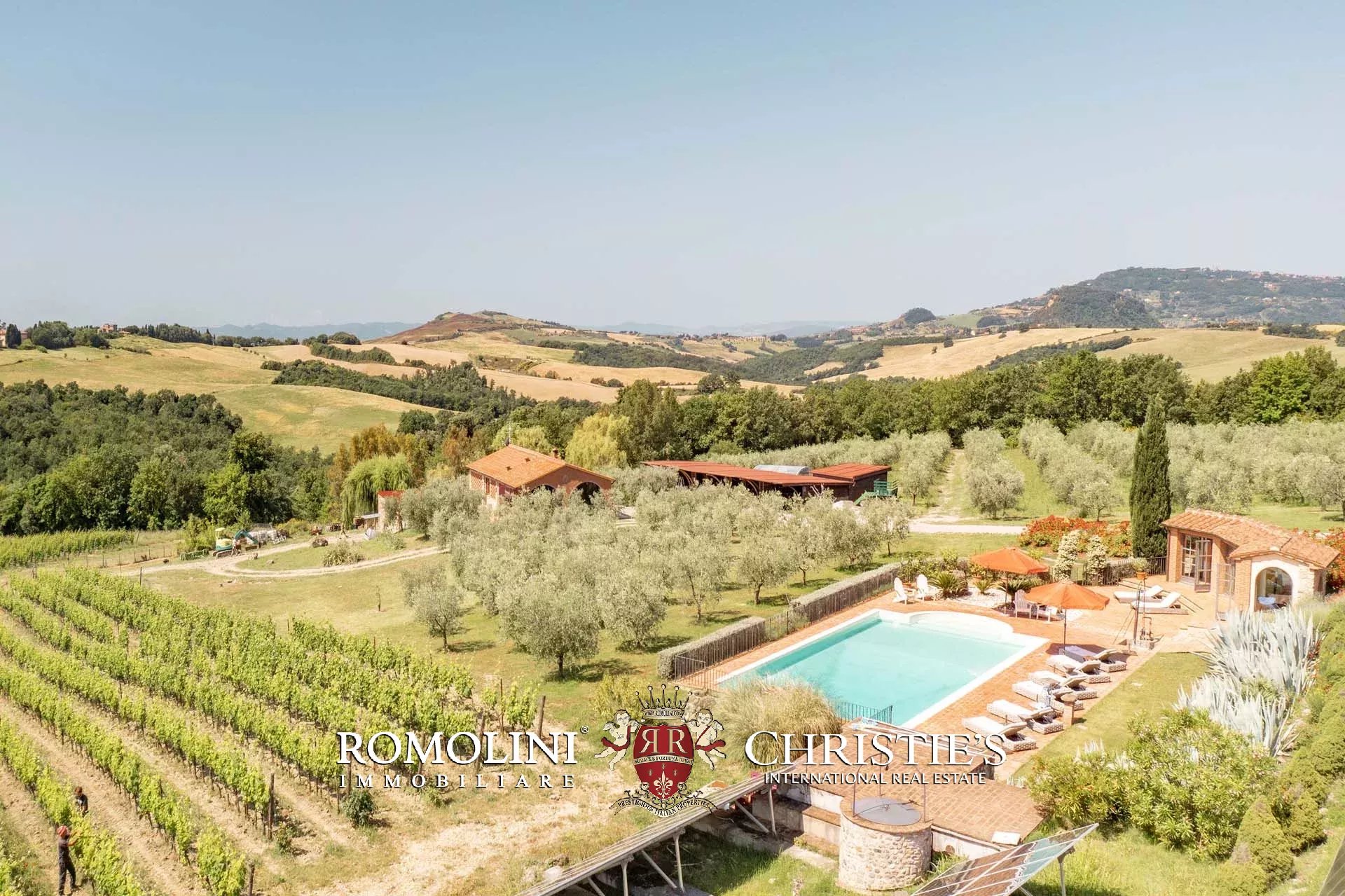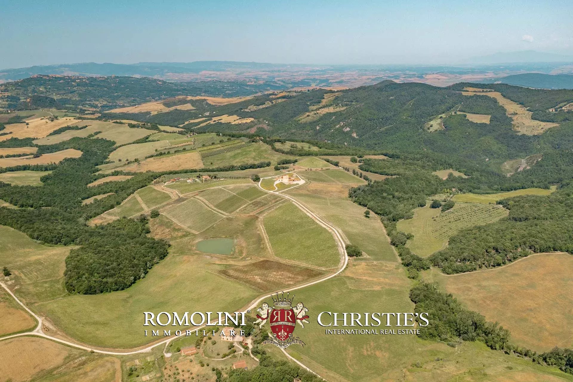 Questa azienda agricola vitivinicola di 124,4 ettari si trova sulle colline di Volterra, in una posizione di rara bellezza e che gode di privacy e tranquillità impareggiabili. Costruita tra il 2013 e il 2019, la cantina supertecnologica dell’azienda è un vero e proprio capolavoro architettonico, organizzato secondo principi ecosostenibili che si riflettono anche nella qualità eccelsa dei vini. Con oltre 23,5 ettari di vigneto, l’azienda produce attualmente circa 70.000 bottiglie di vino (rossi e bianchi) con l’idea di raggiungere le 130.000 bottiglie annue. A corredo dell’attività di trova una bellissima villa storica del 1490, interamente ristrutturata, posta non lontano dalla cantina e circondata dai vigneti che incorniciano anche la piscina.