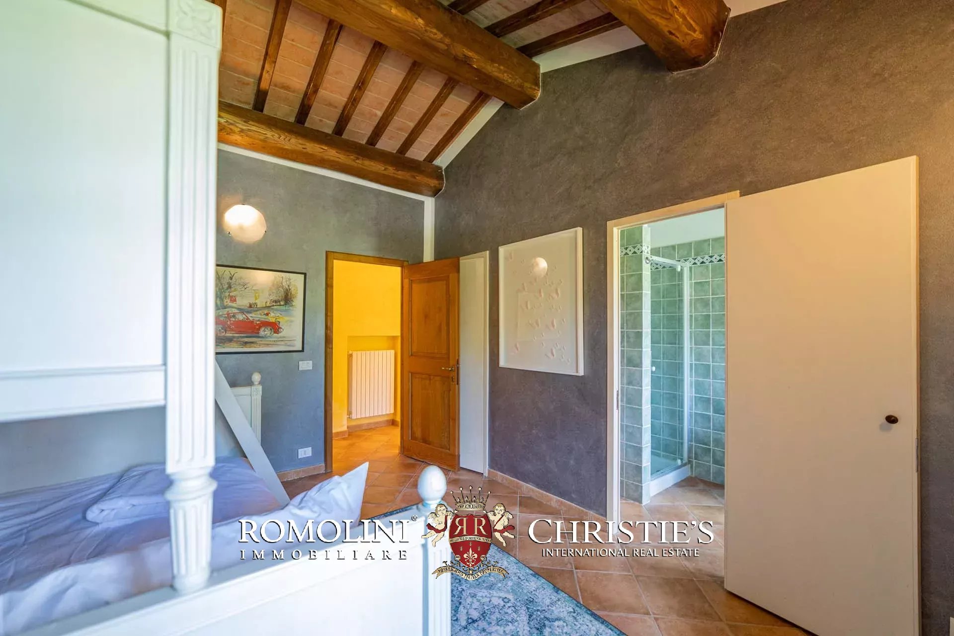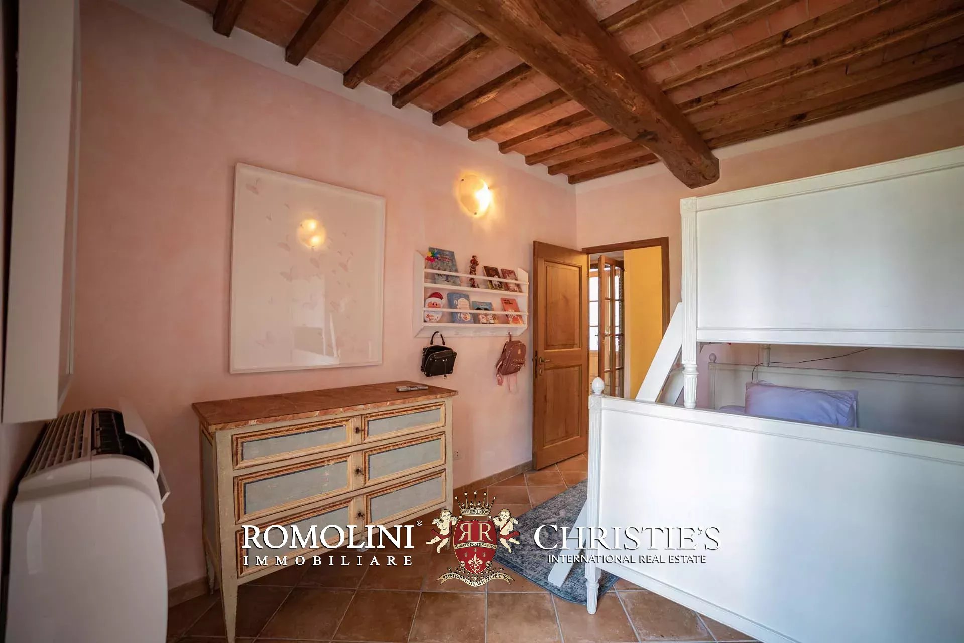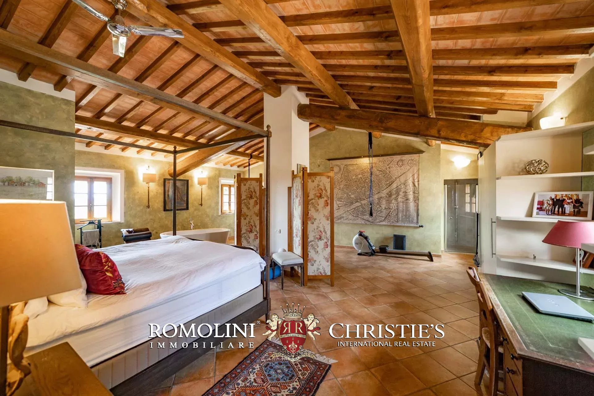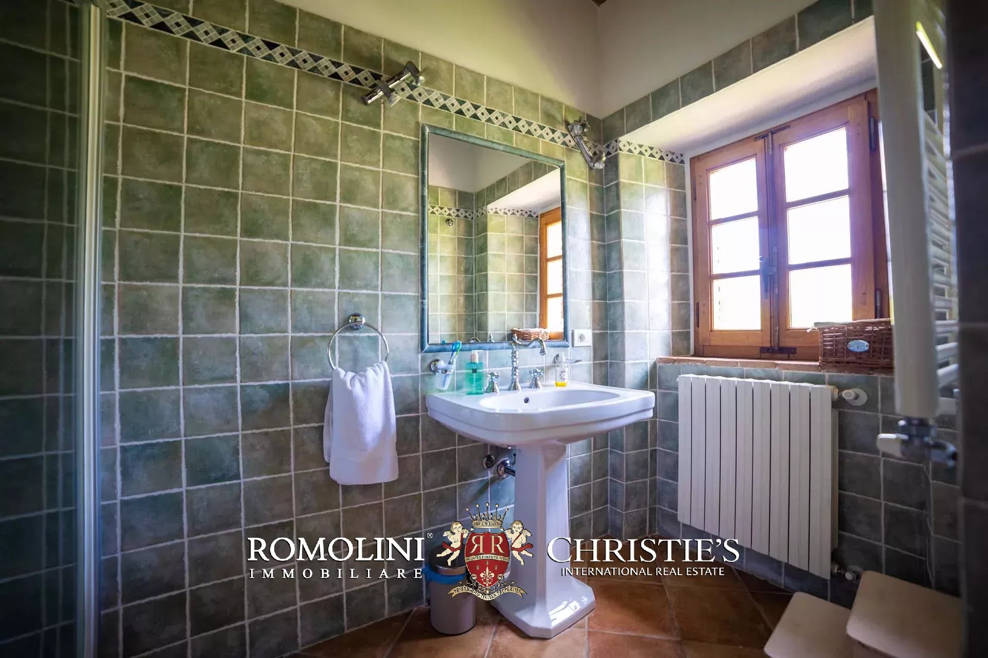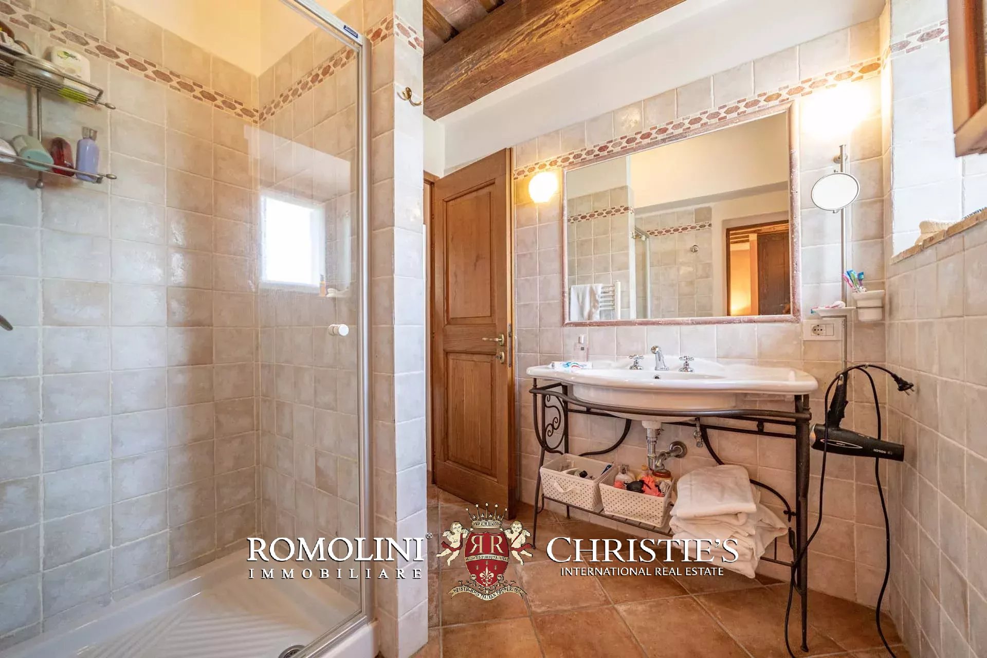 Appena sotto la villa, immersa nel parco tra i vigneti, si trova la piscina 14 × 7 m con scala romana. Una pool house è stata costruita di recente vicino alla vasca e ospita spogliatoi e docce. Il grande solarium in cotto della piscina permette di godersi il sole della Toscana con una vista incredibile sui vigneti della tenuta.