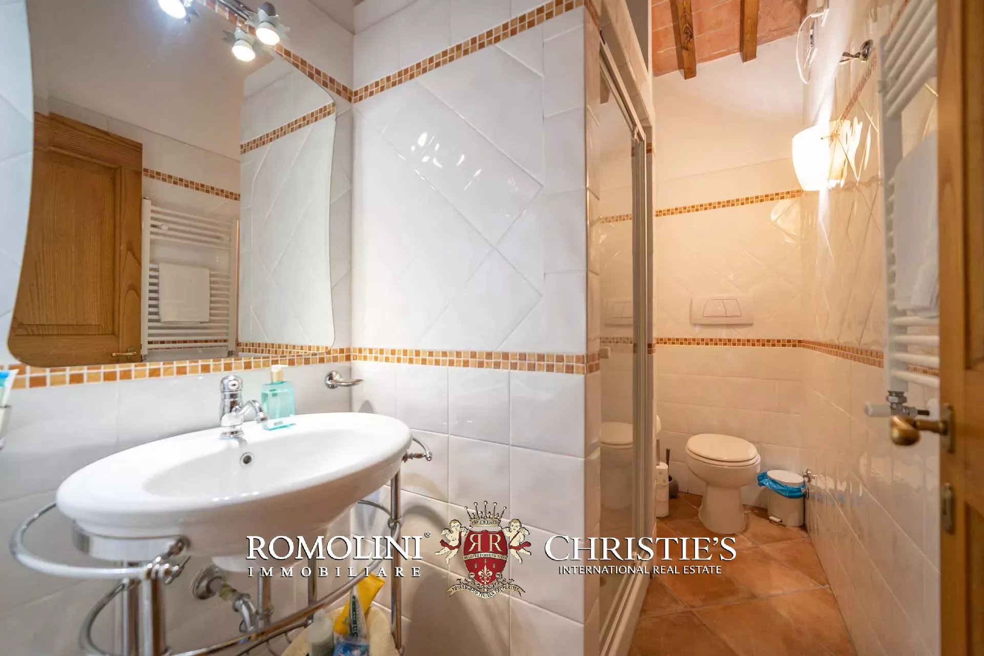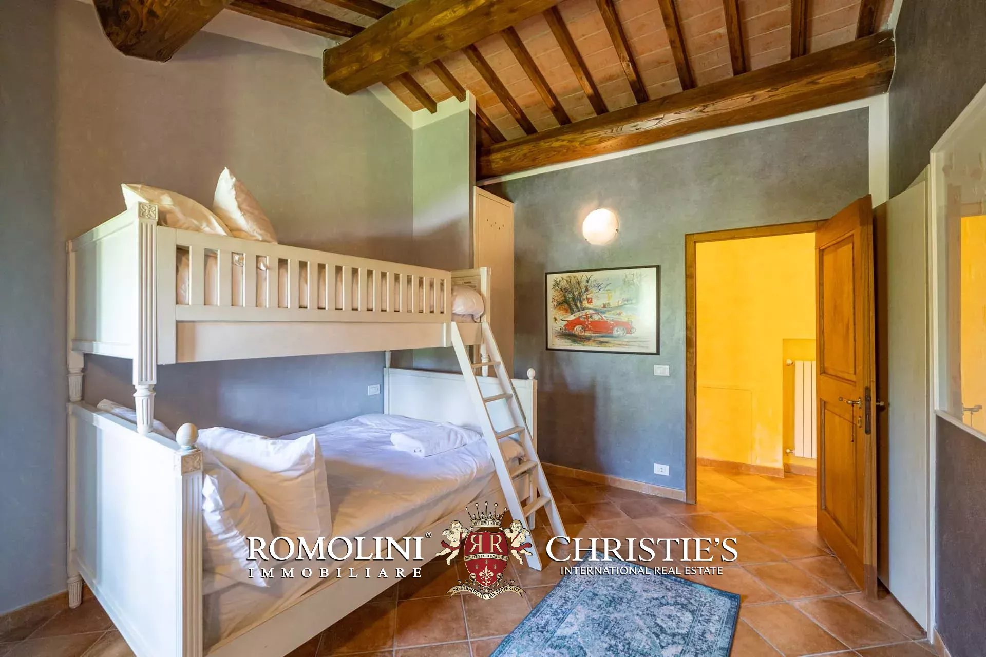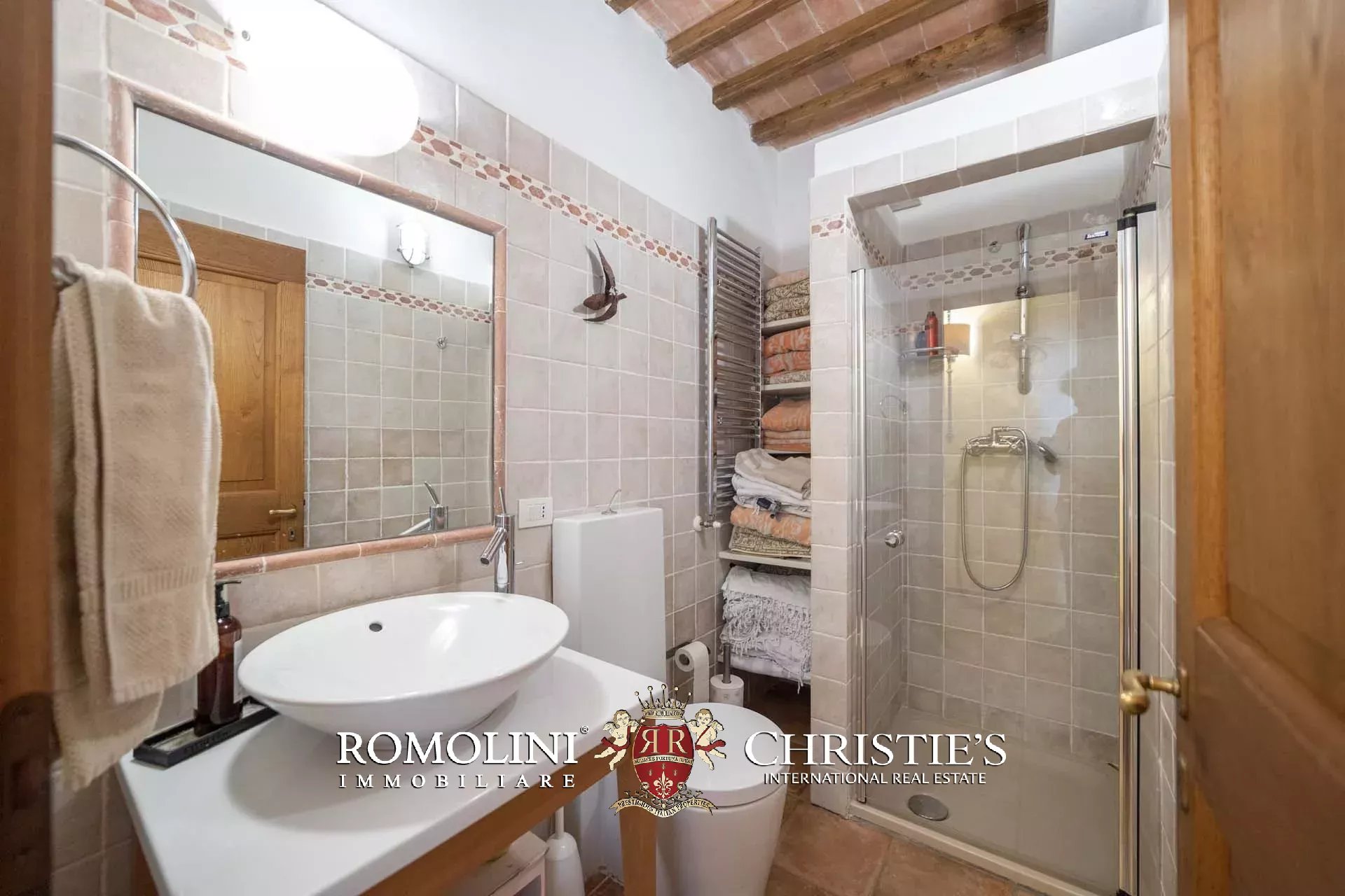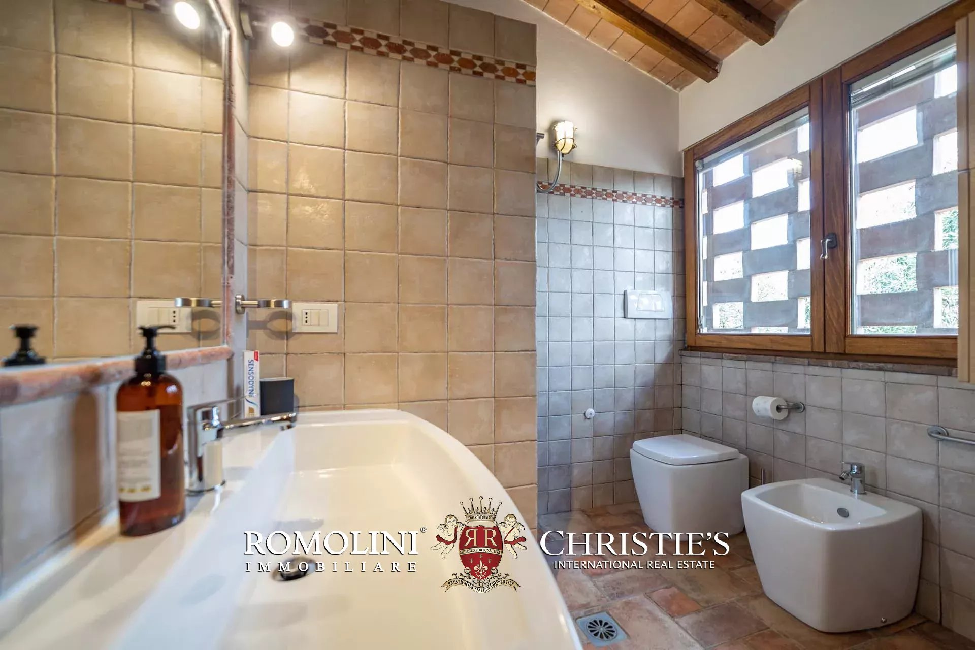 Appena sotto la villa, immersa nel parco tra i vigneti, si trova la piscina 14 × 7 m con scala romana. Una pool house è stata costruita di recente vicino alla vasca e ospita spogliatoi e docce. Il grande solarium in cotto della piscina permette di godersi il sole della Toscana con una vista incredibile sui vigneti della tenuta.
