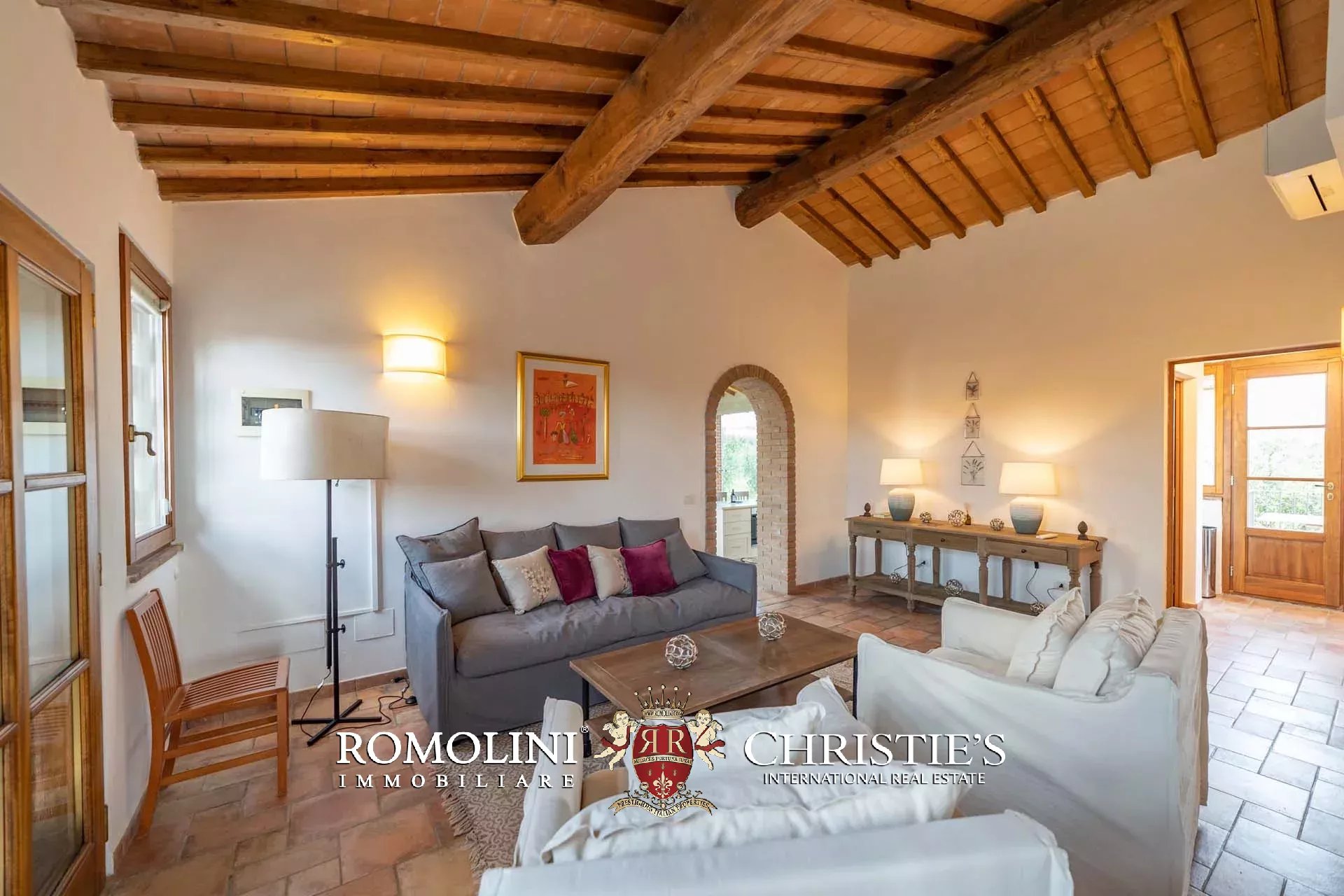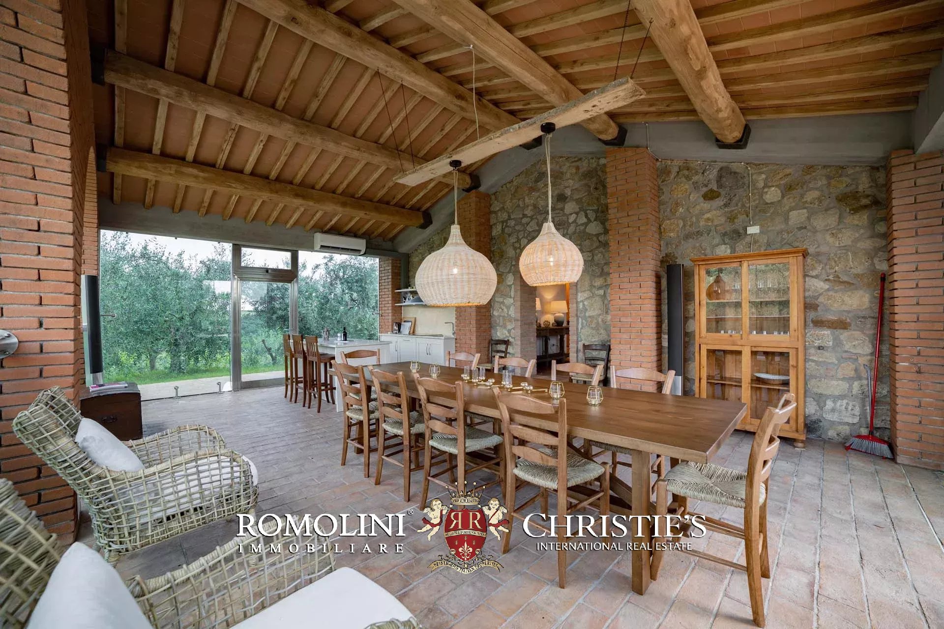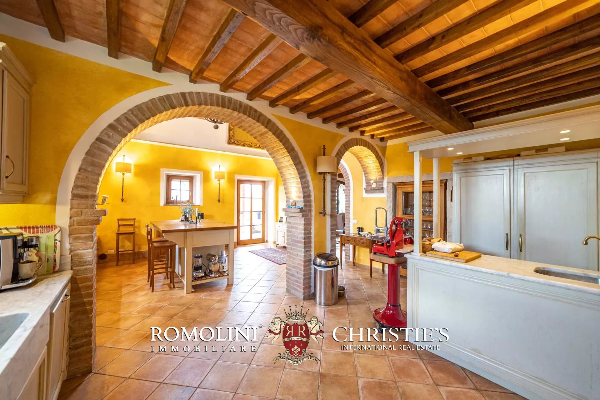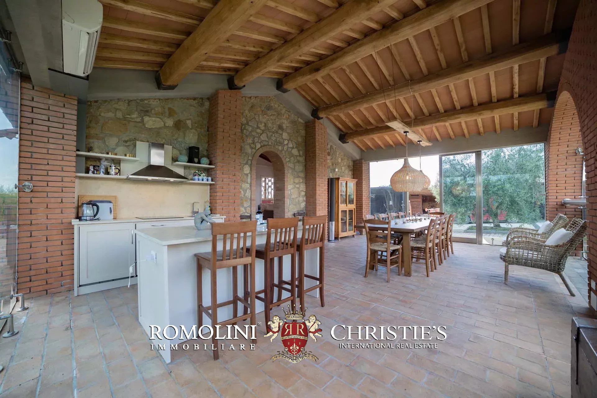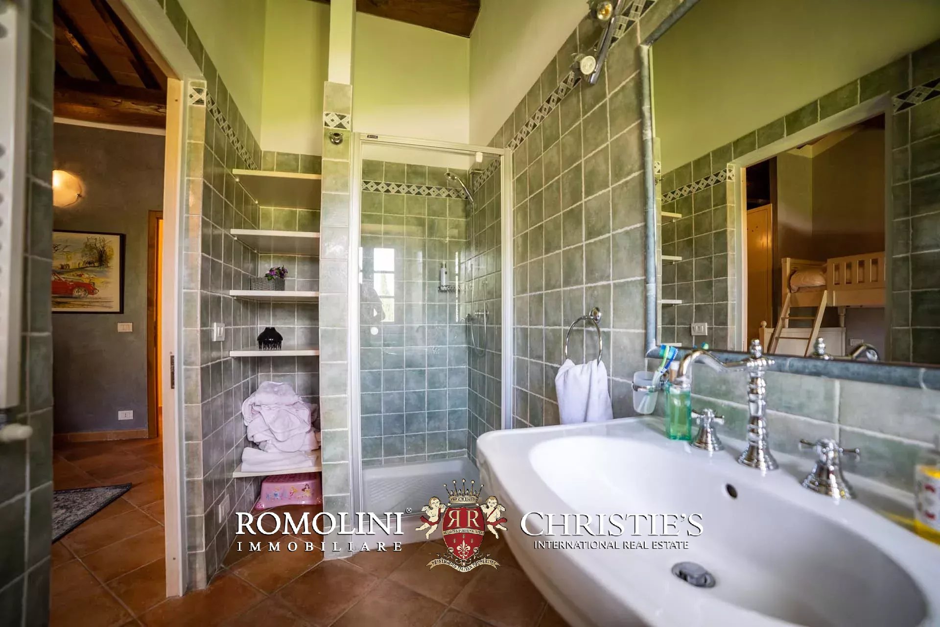 Appena sotto la villa, immersa nel parco tra i vigneti, si trova la piscina 14 × 7 m con scala romana. Una pool house è stata costruita di recente vicino alla vasca e ospita spogliatoi e docce. Il grande solarium in cotto della piscina permette di godersi il sole della Toscana con una vista incredibile sui vigneti della tenuta.