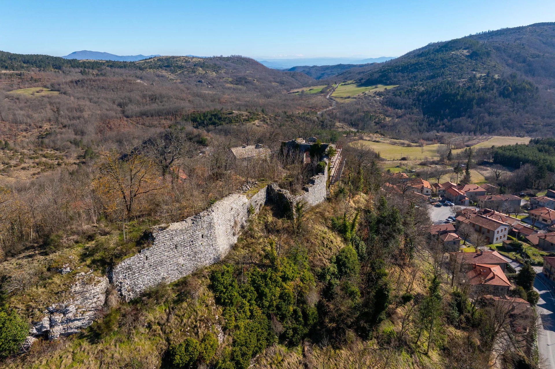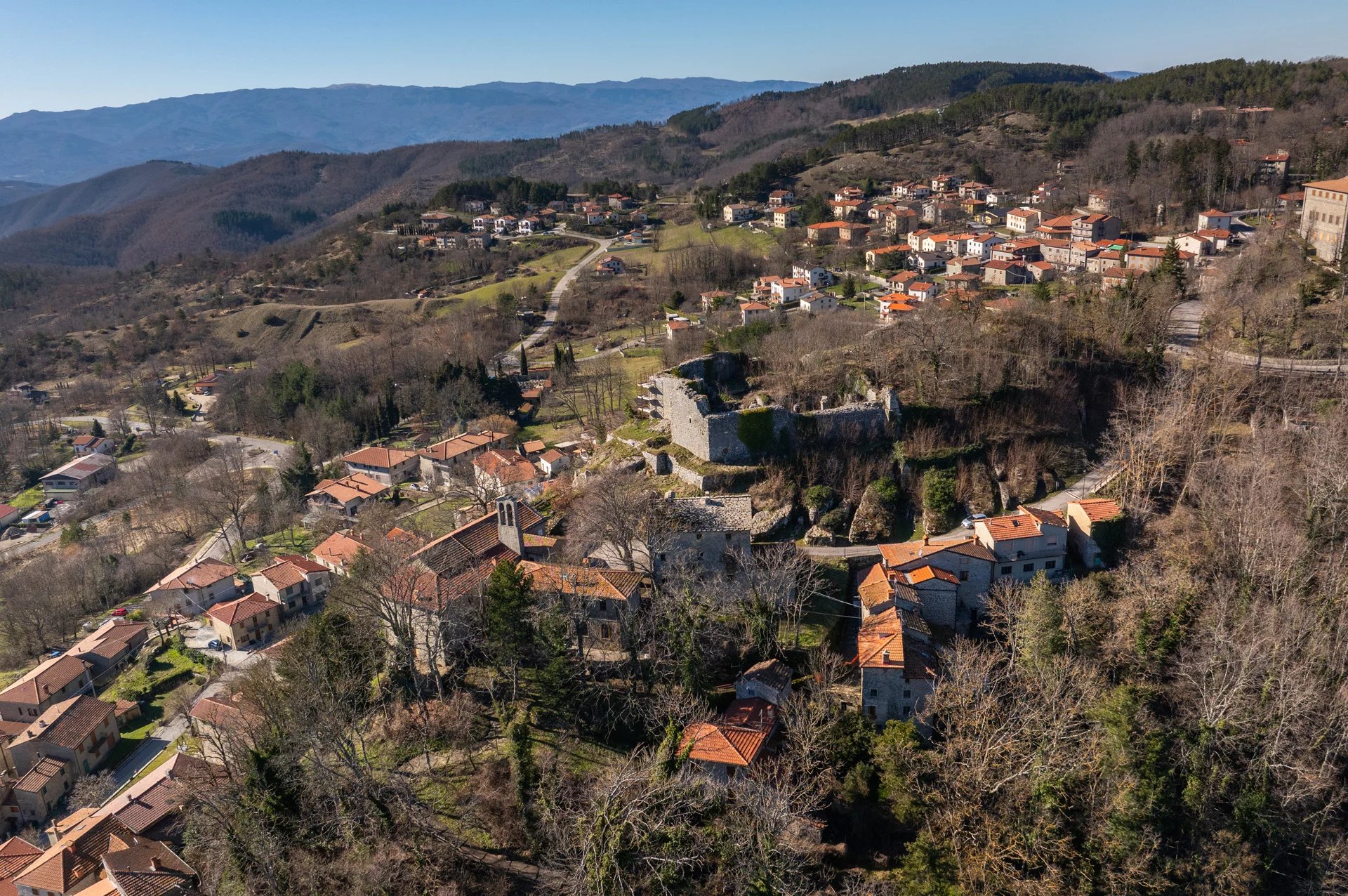 Oltre ai terreni la proprietà include tre fabbricati diruti (anticamente casali e fienili) e i ruderi del Castello del Conte Orlando Cattani, proprio nel paese di Chiusi, da cui si ha vista ininterrotta su buona parte dei terreni di proprietà.