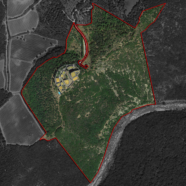 Il terreno che circonda il castello (circa 21,9 ha) è coperto quasi interamente da boschi e assicura notevole privacy, oltre a luoghi perfetti per camminate ed escursioni. La vista dal castello abbraccia la Val d’Orcia con i suoi borghi e spazia fino alle prima colline della Maremma.