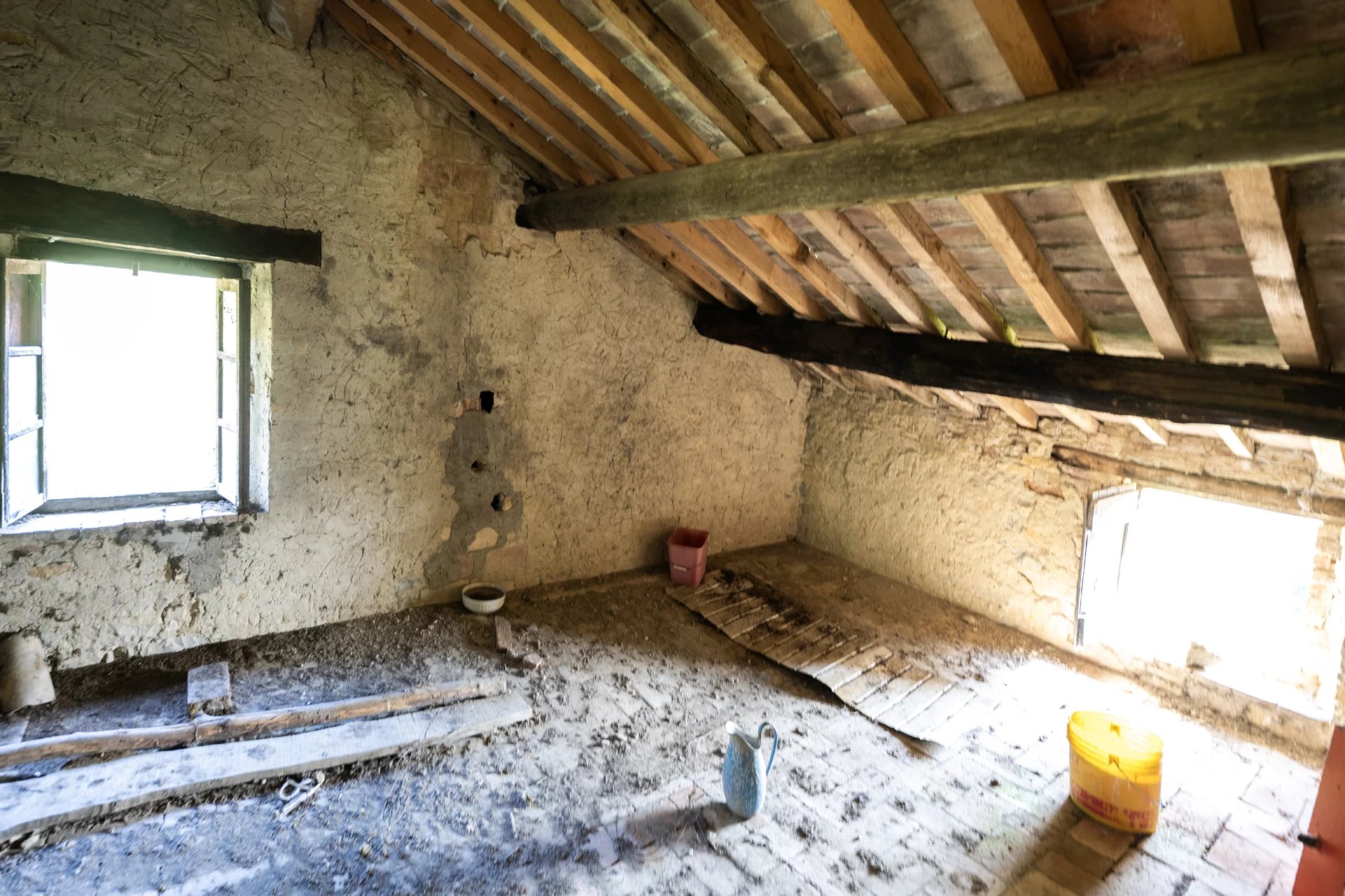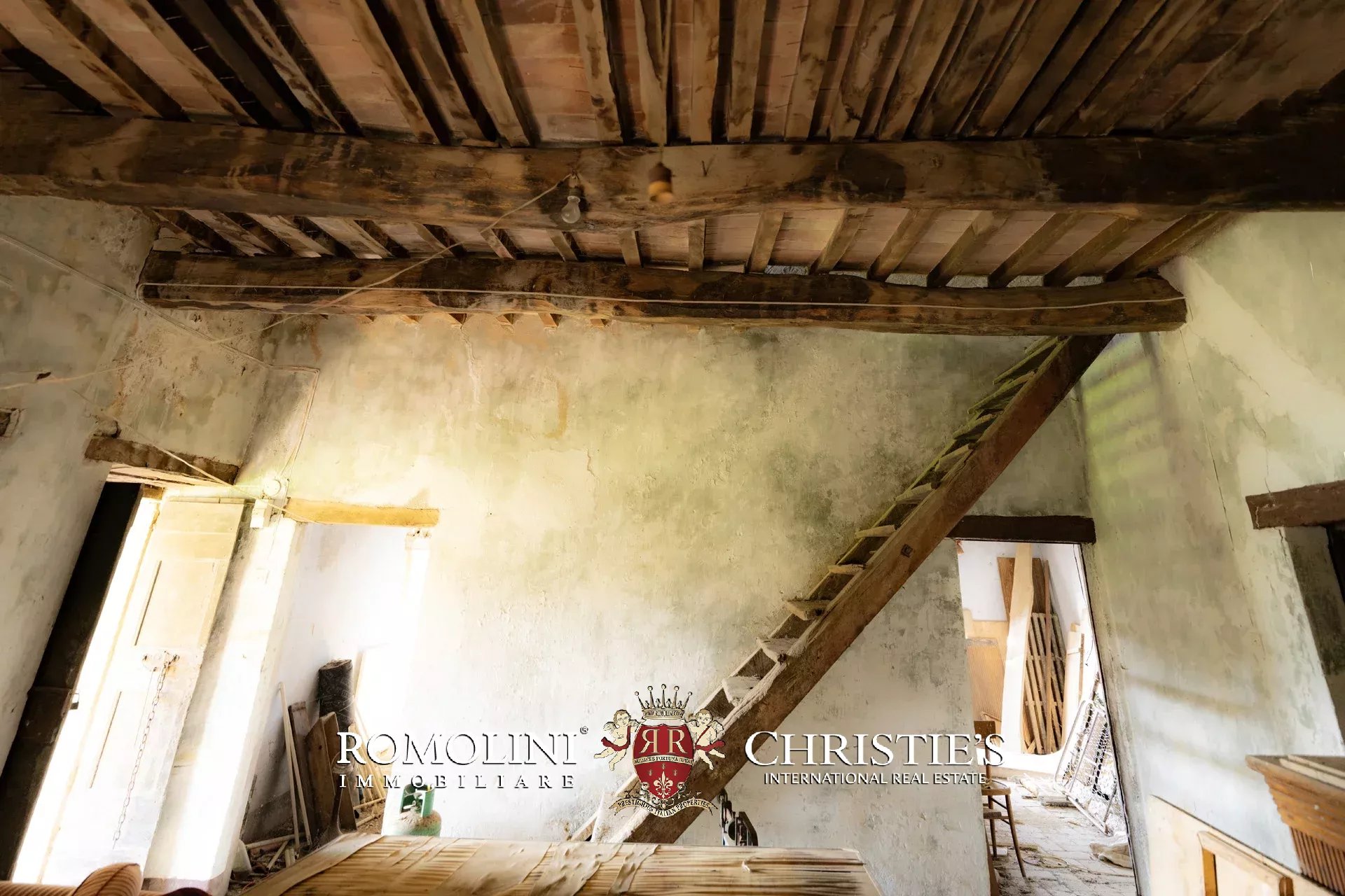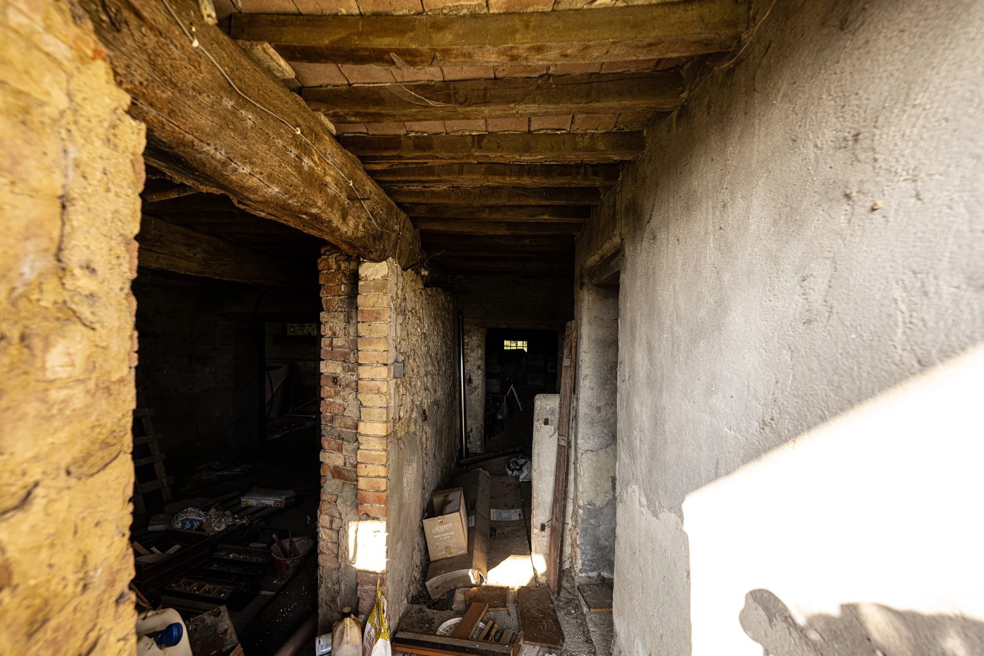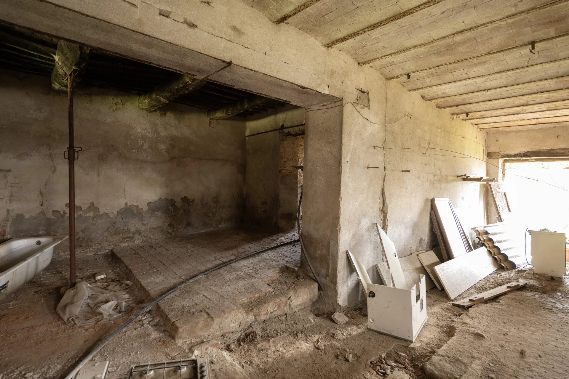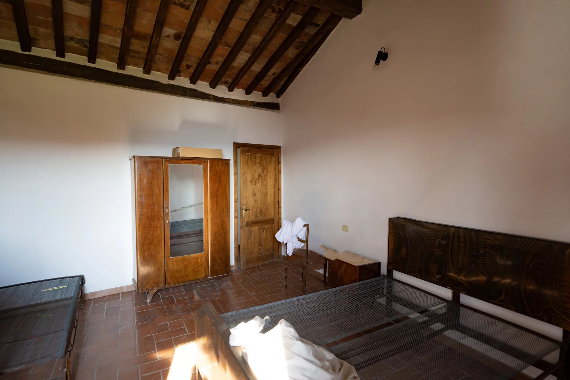 La porzione da ristrutturare (420 m²) è invece strutturata su tre livelli ed è composta da un totale di tredici stanze (incluse le vecchie stalle al piano terra) che garantiscono grande flessibilità nella ristrutturazione, con potenziale per espandere ulteriormente l’attività ricettiva. Pur avendo murature esterne e coperture in buone condizioni, questa sezione necessita di interventi di ristrutturazione che potranno valorizzare ulteriormente gli spazi interni e preservare gli elementi tipici del casale, come i pavimenti in cotto antico, i soffitti con travi in legno e i camini originali.