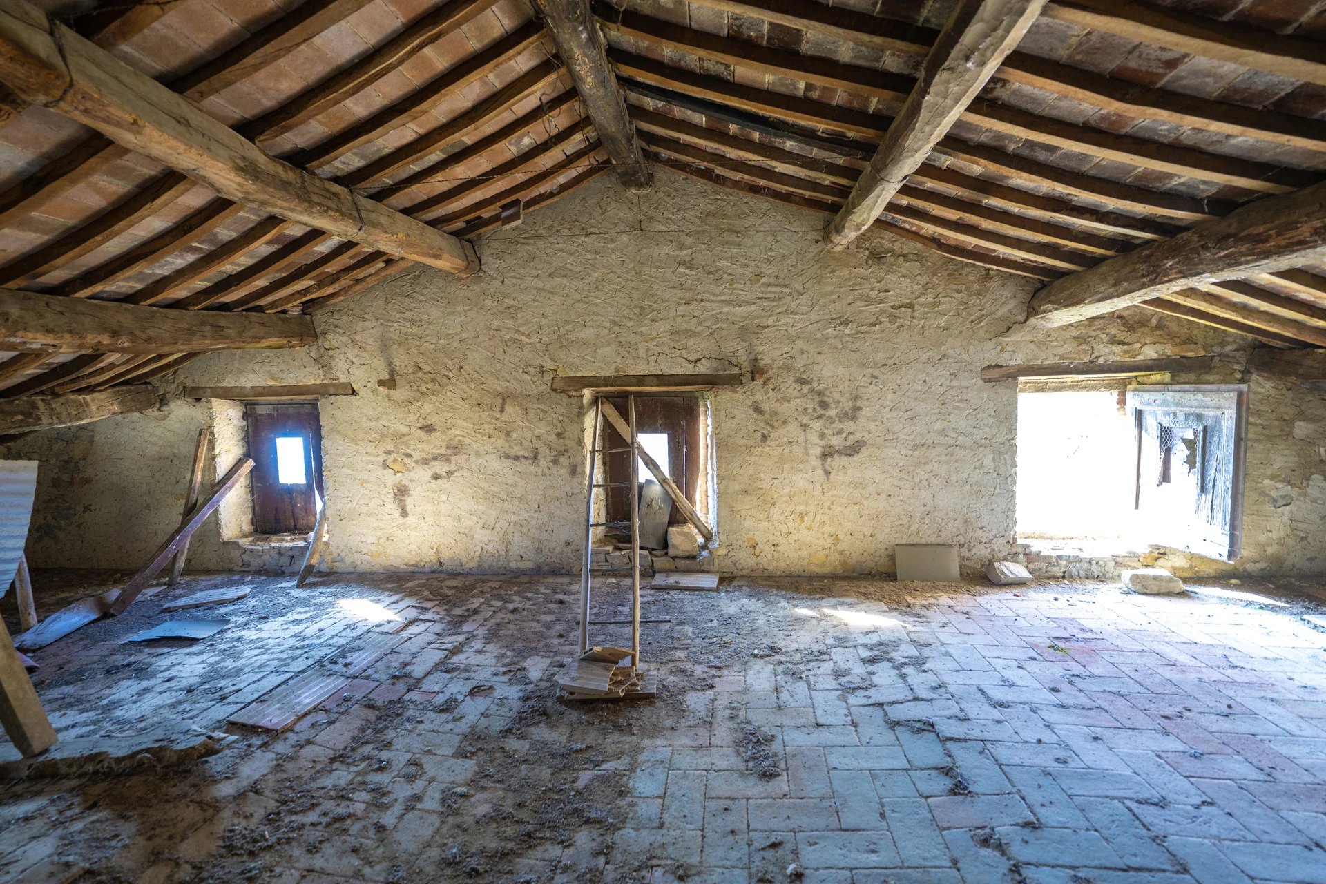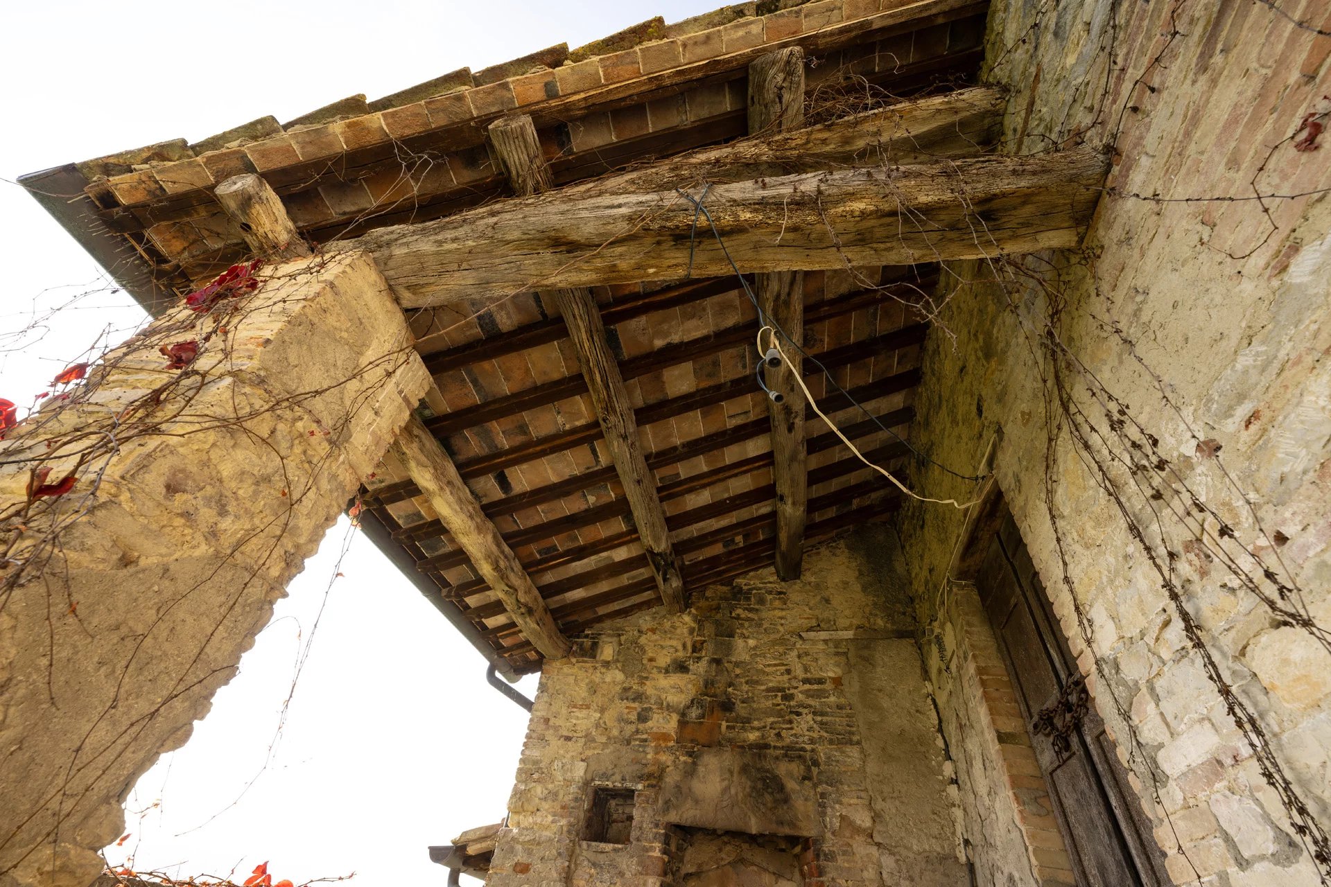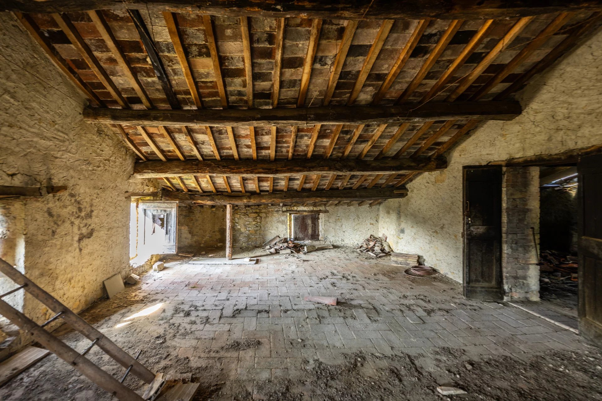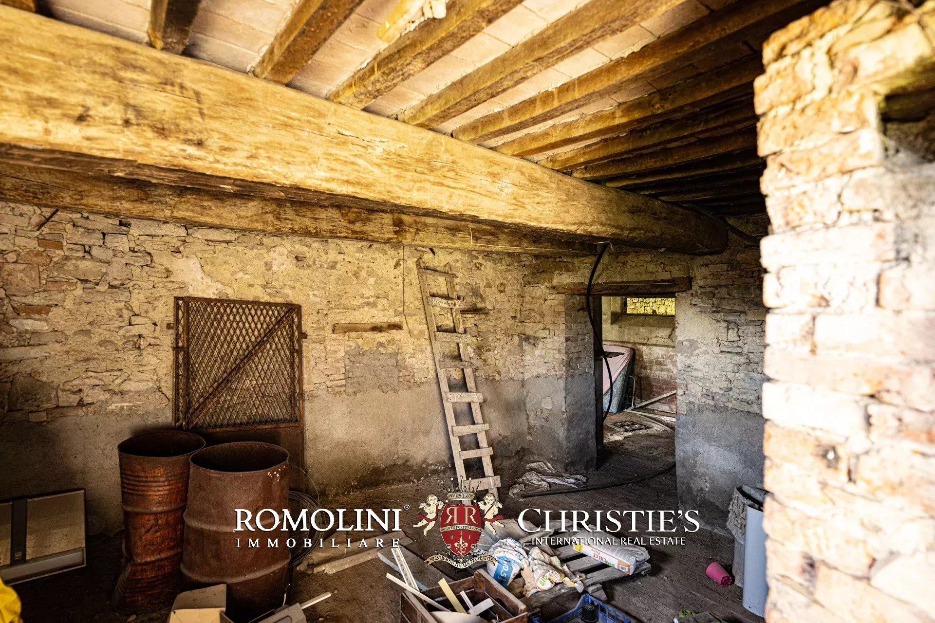 La porzione da ristrutturare (420 m²) è invece strutturata su tre livelli ed è composta da un totale di tredici stanze (incluse le vecchie stalle al piano terra) che garantiscono grande flessibilità nella ristrutturazione, con potenziale per espandere ulteriormente l’attività ricettiva. Pur avendo murature esterne e coperture in buone condizioni, questa sezione necessita di interventi di ristrutturazione che potranno valorizzare ulteriormente gli spazi interni e preservare gli elementi tipici del casale, come i pavimenti in cotto antico, i soffitti con travi in legno e i camini originali.